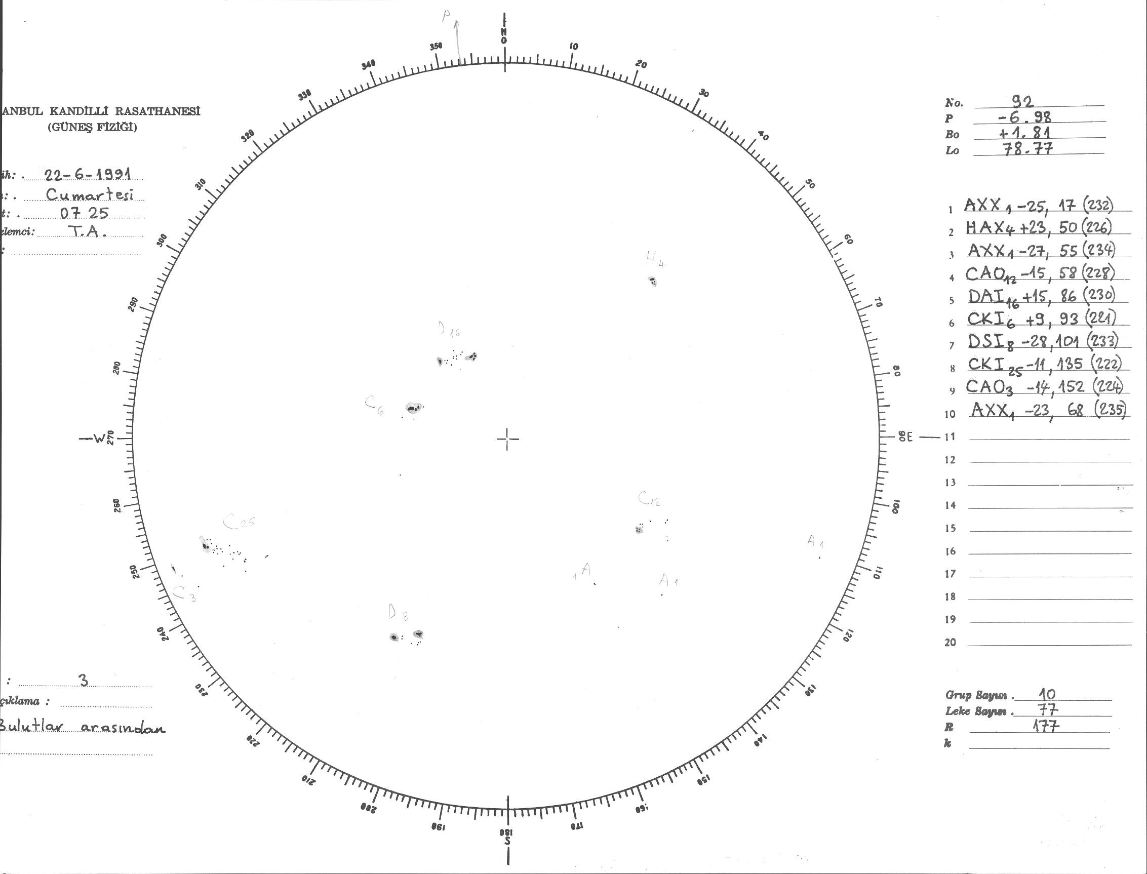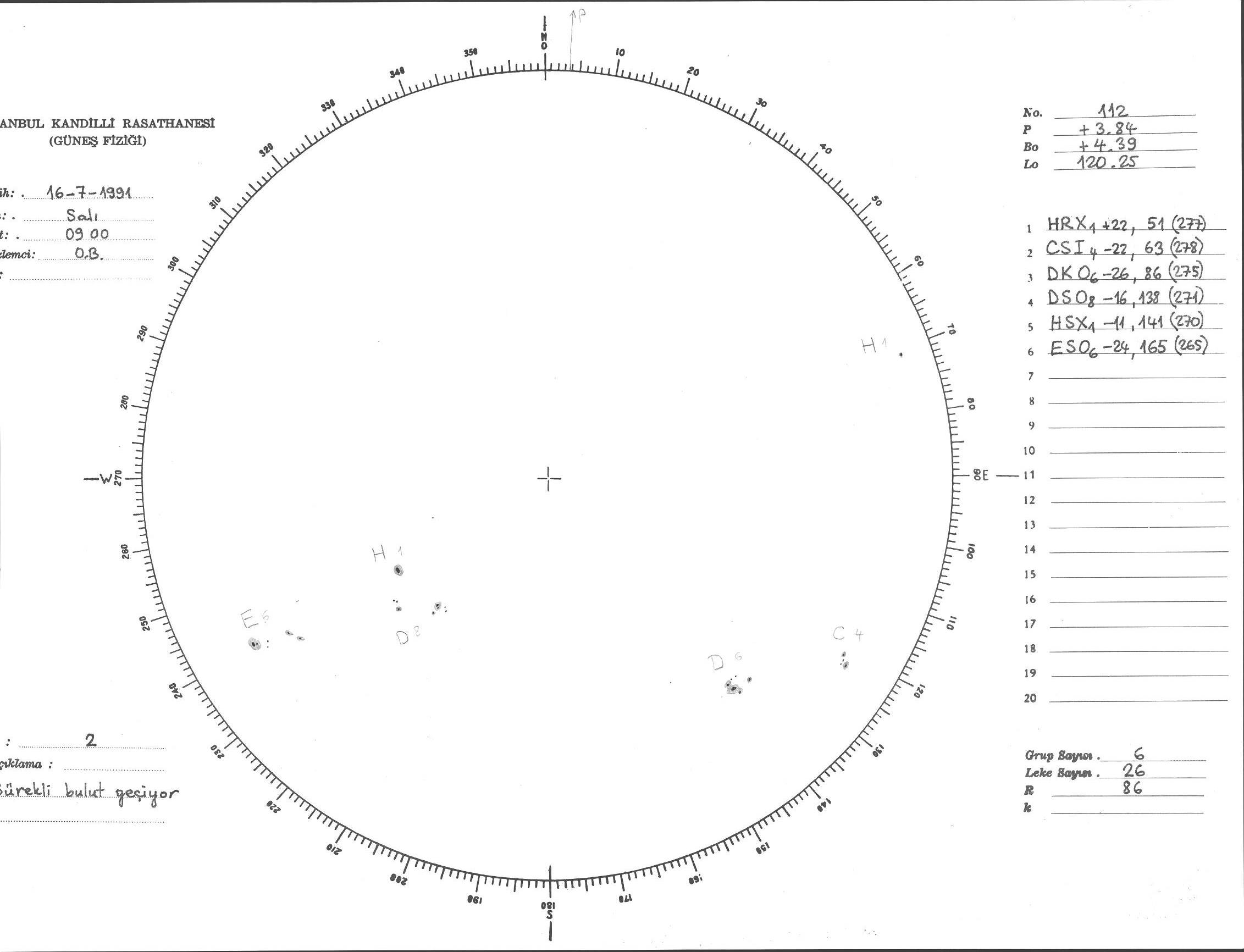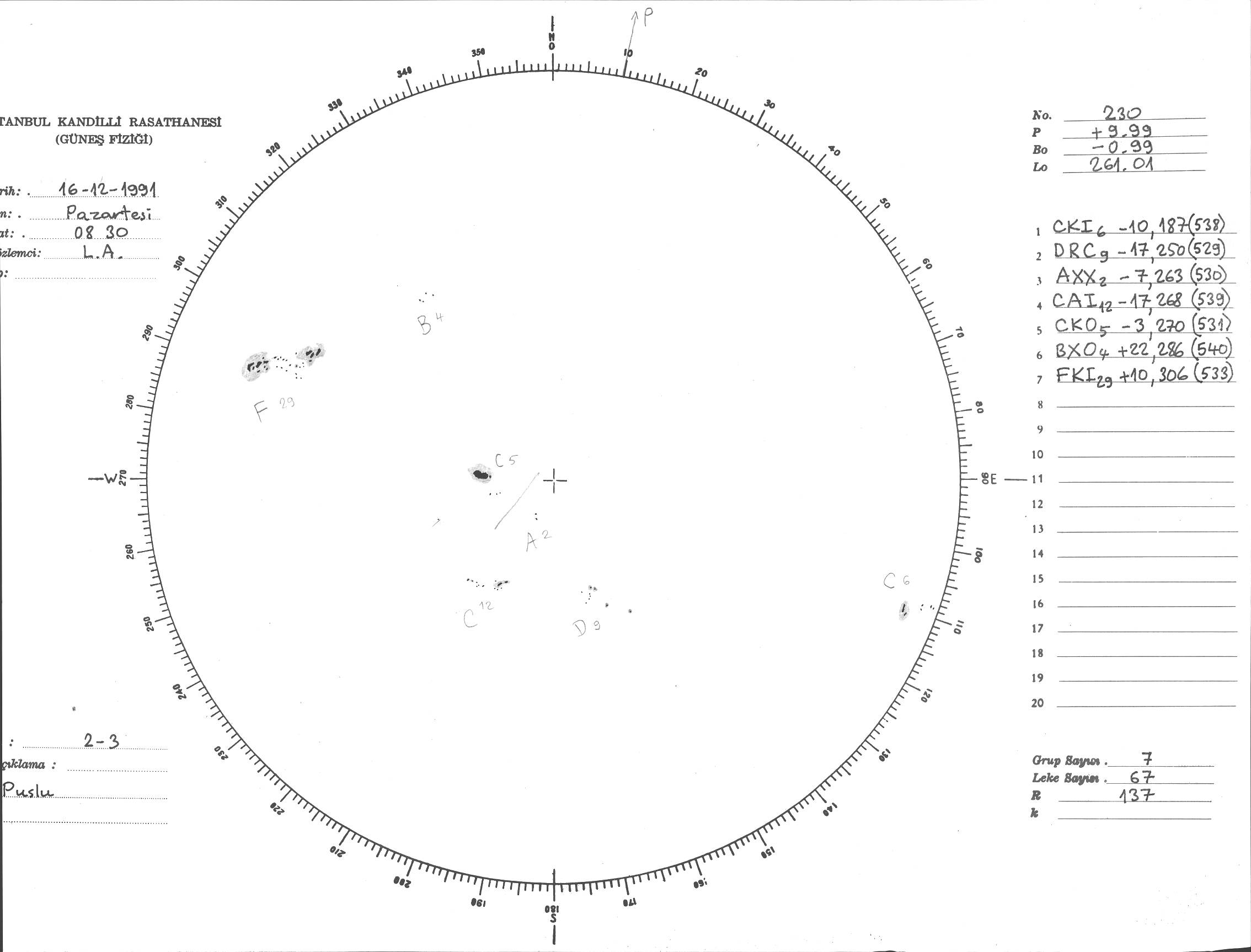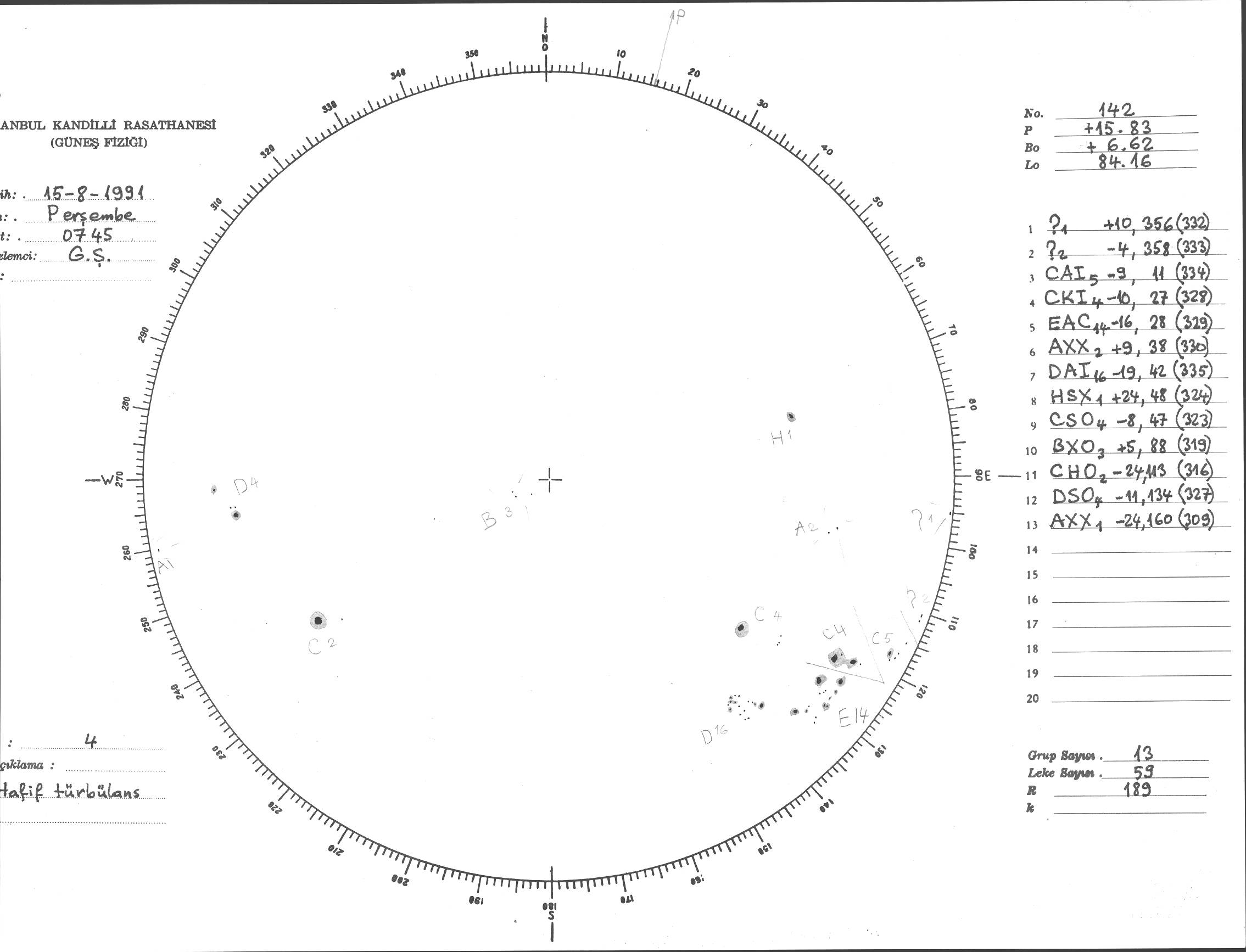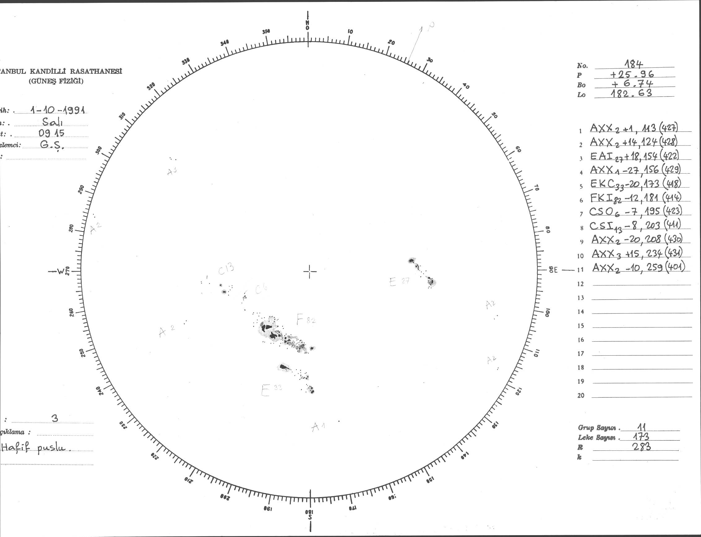 Güneş Lekesi Çizimleri / Kandilli Sunspot Drawings