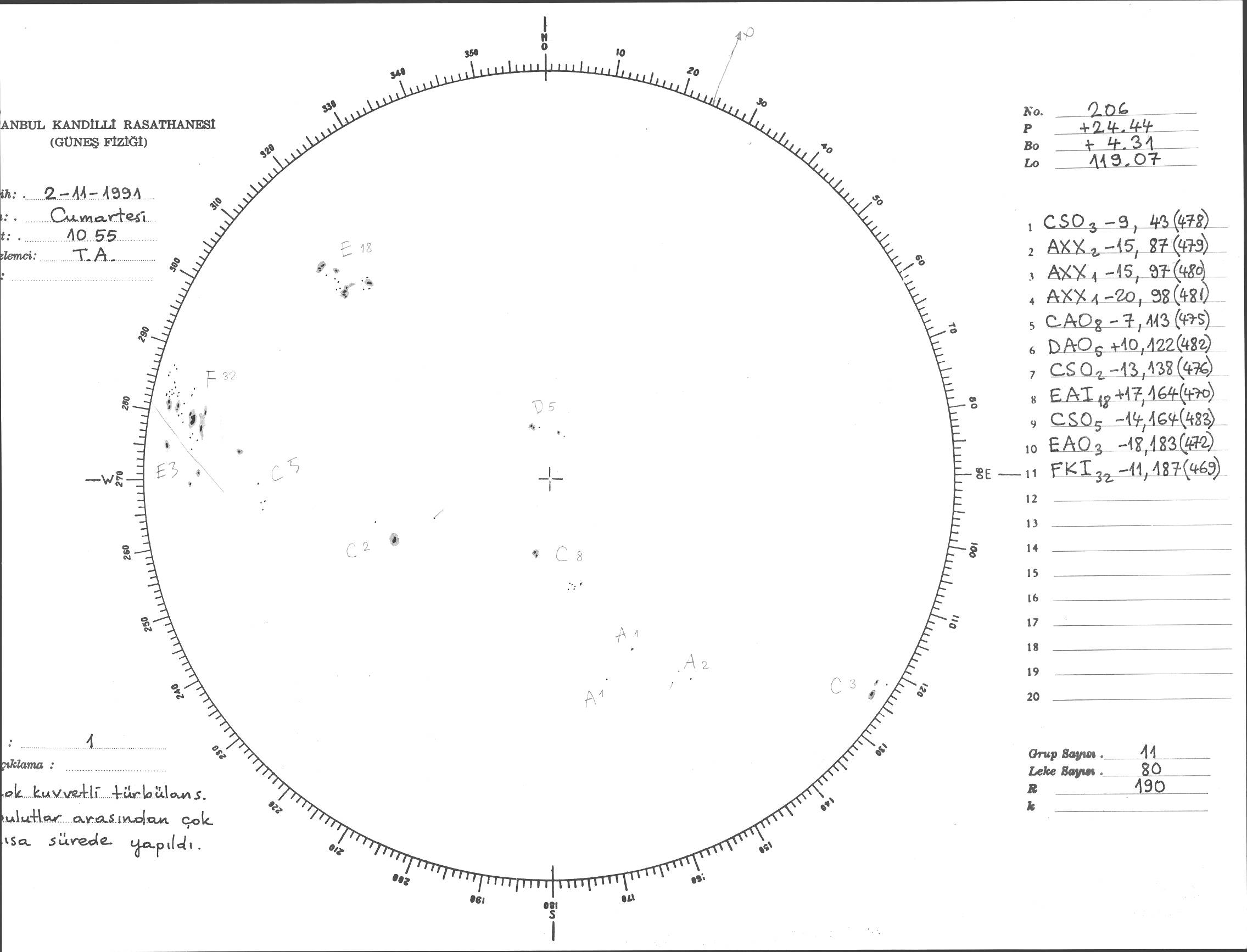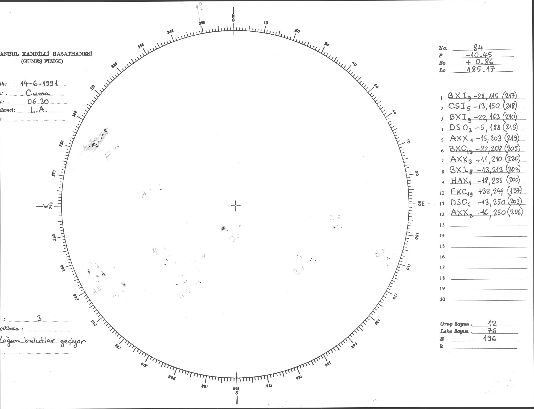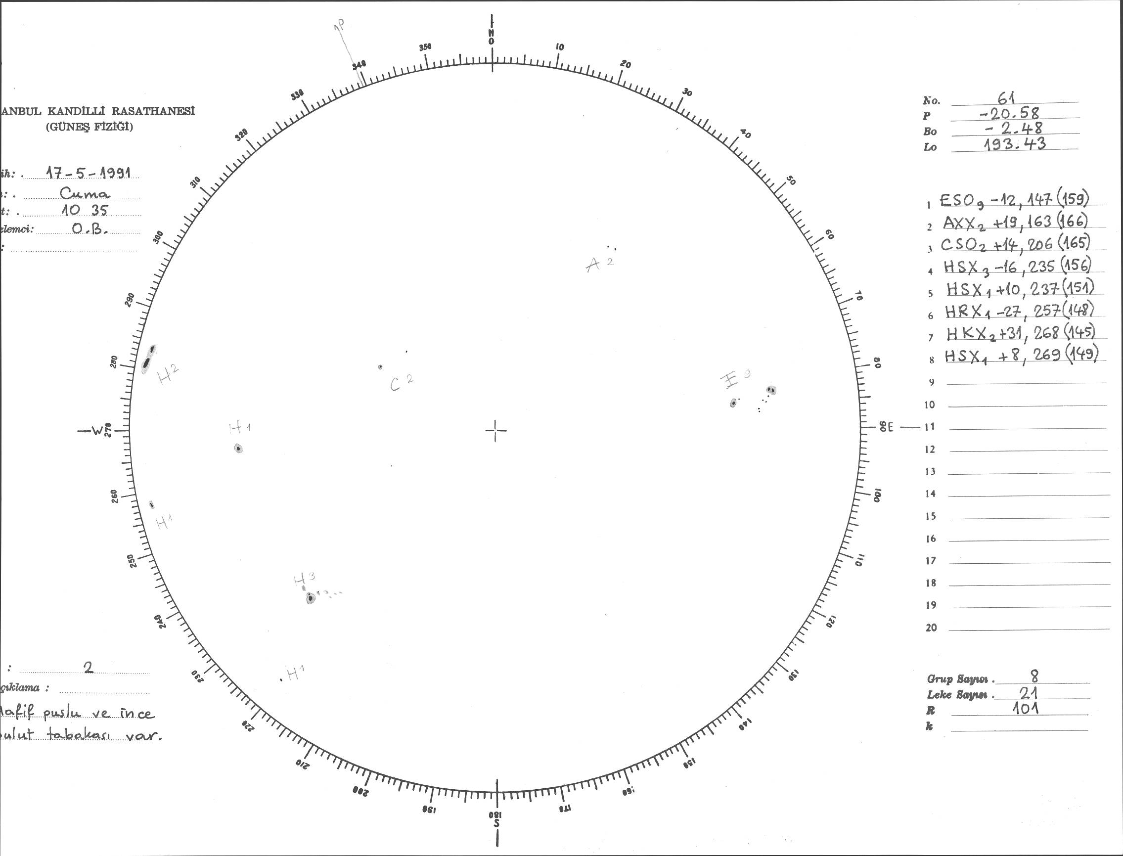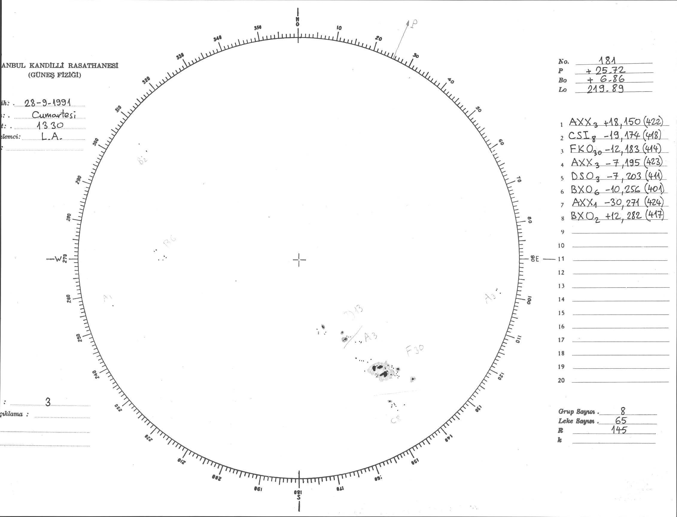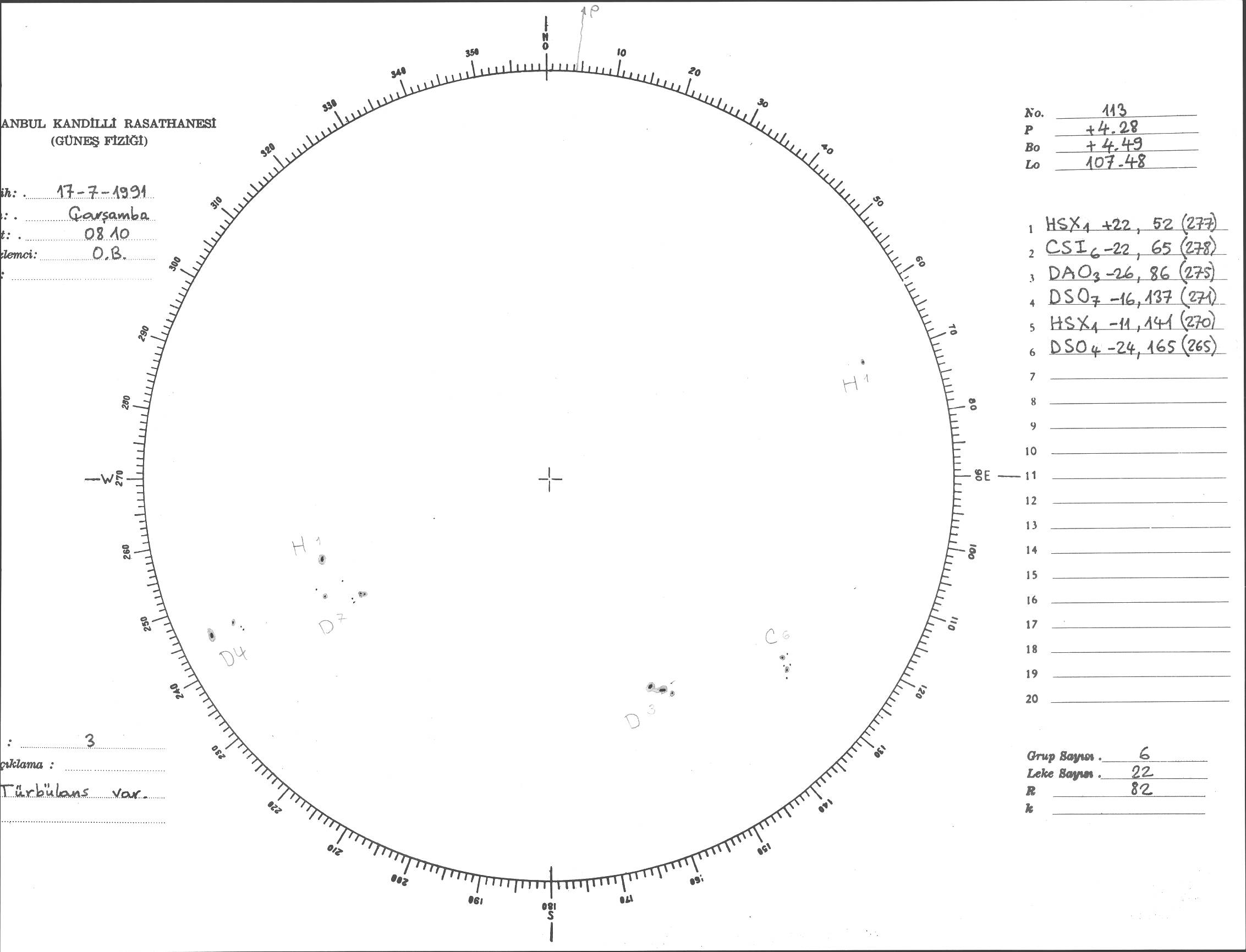 Güneş Lekesi Çizimleri / Kandilli Sunspot Drawings