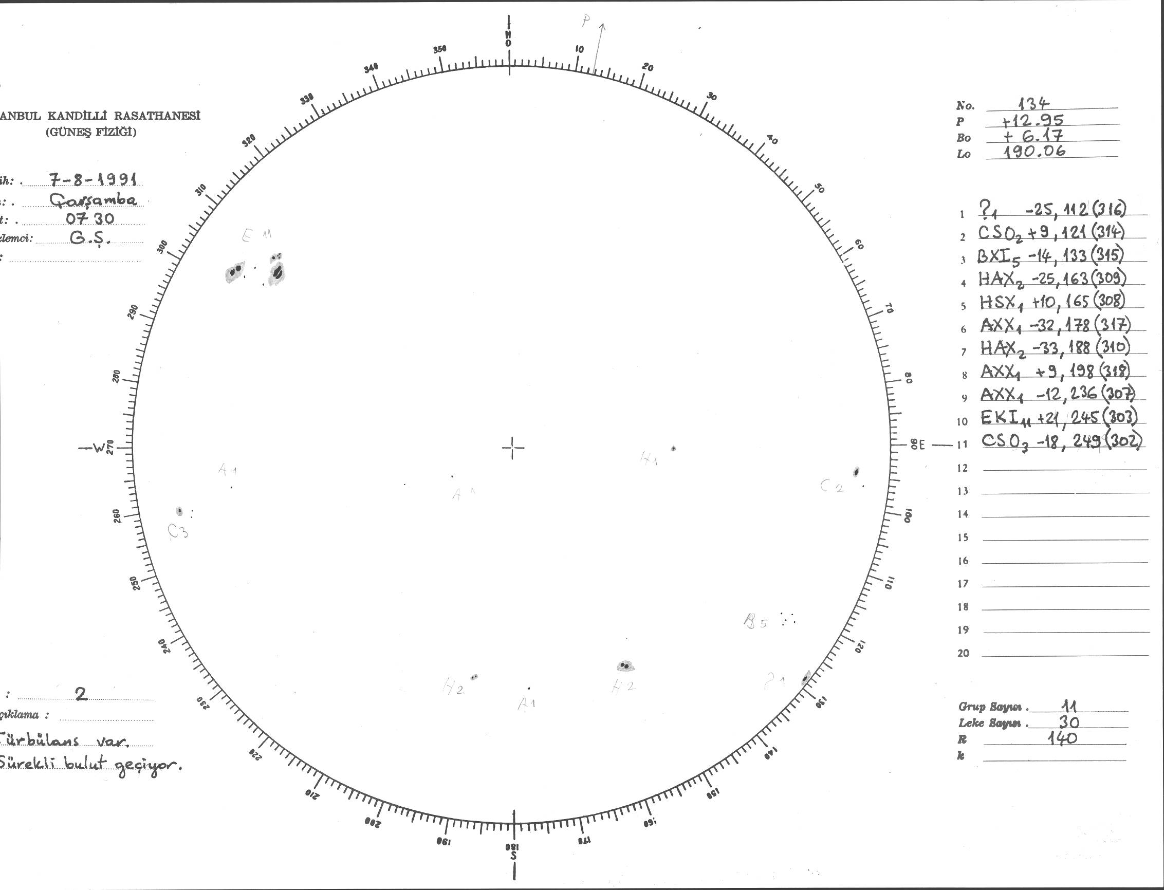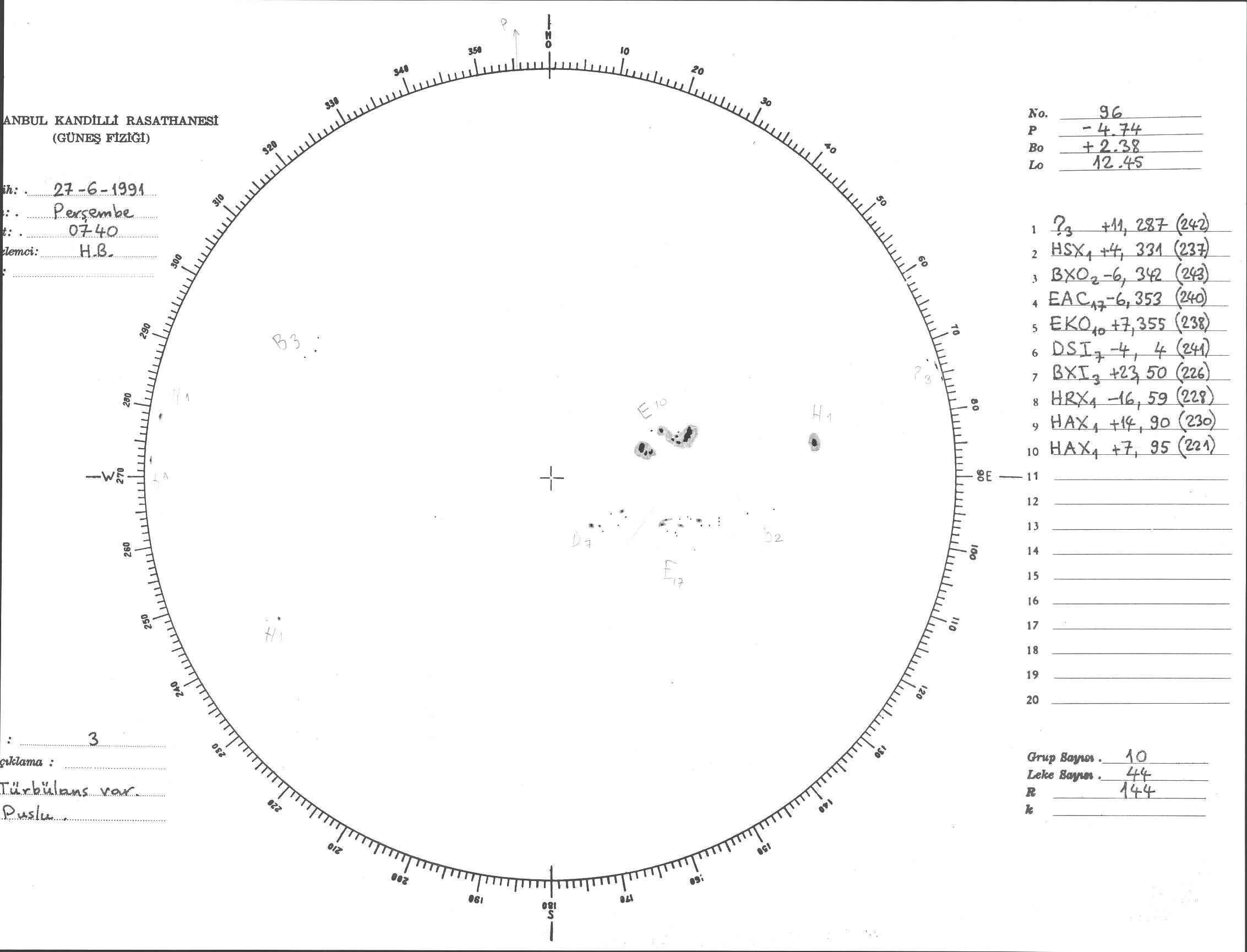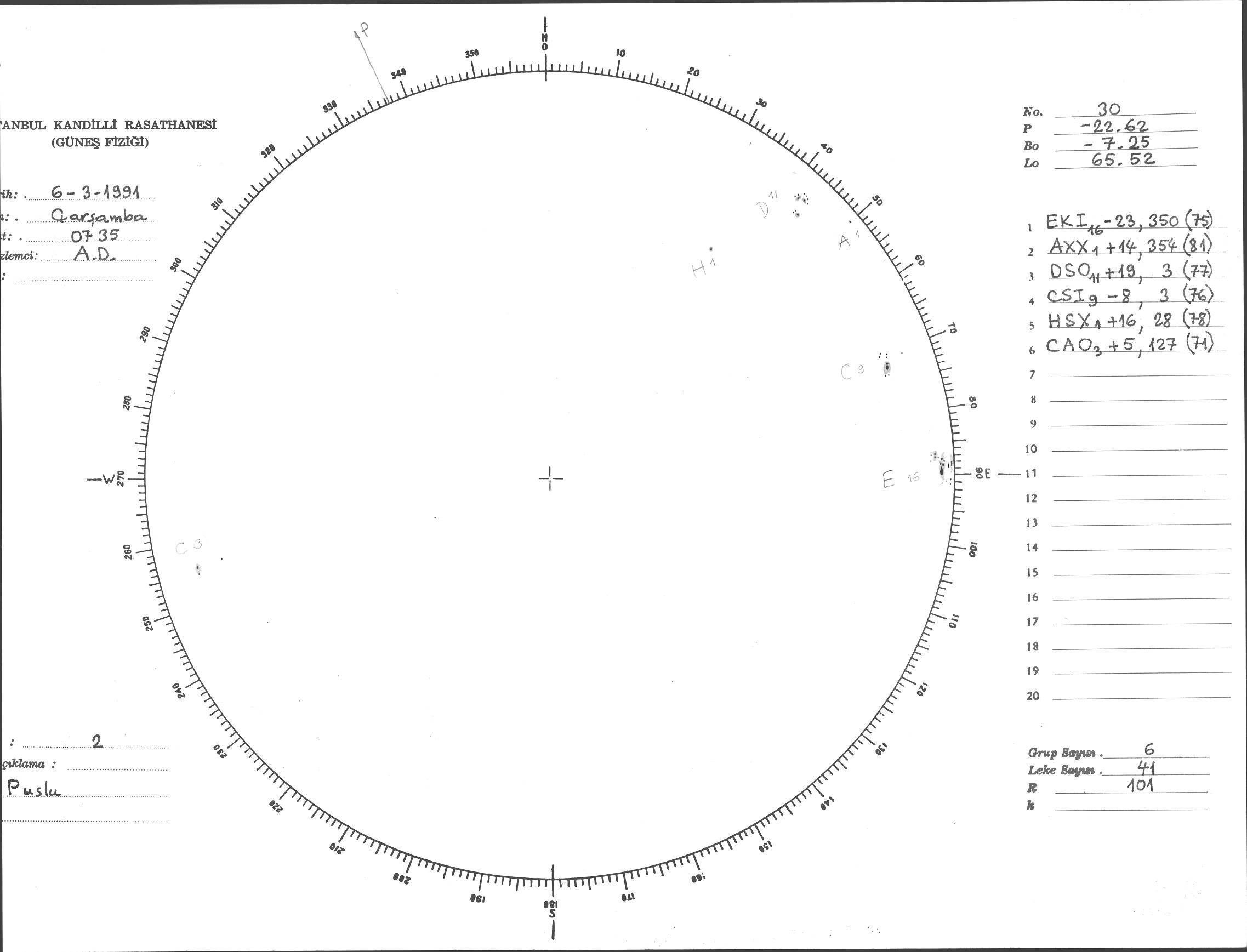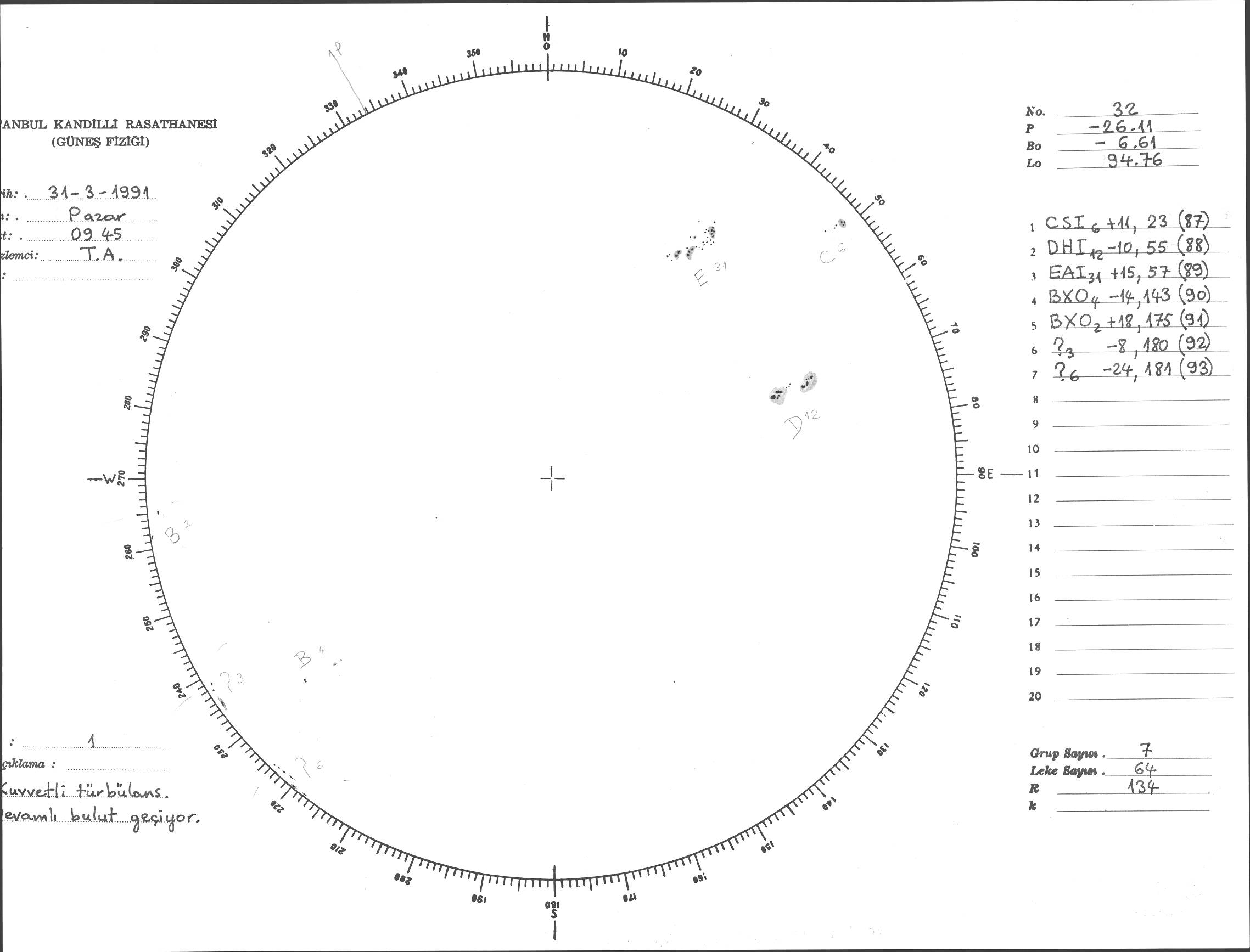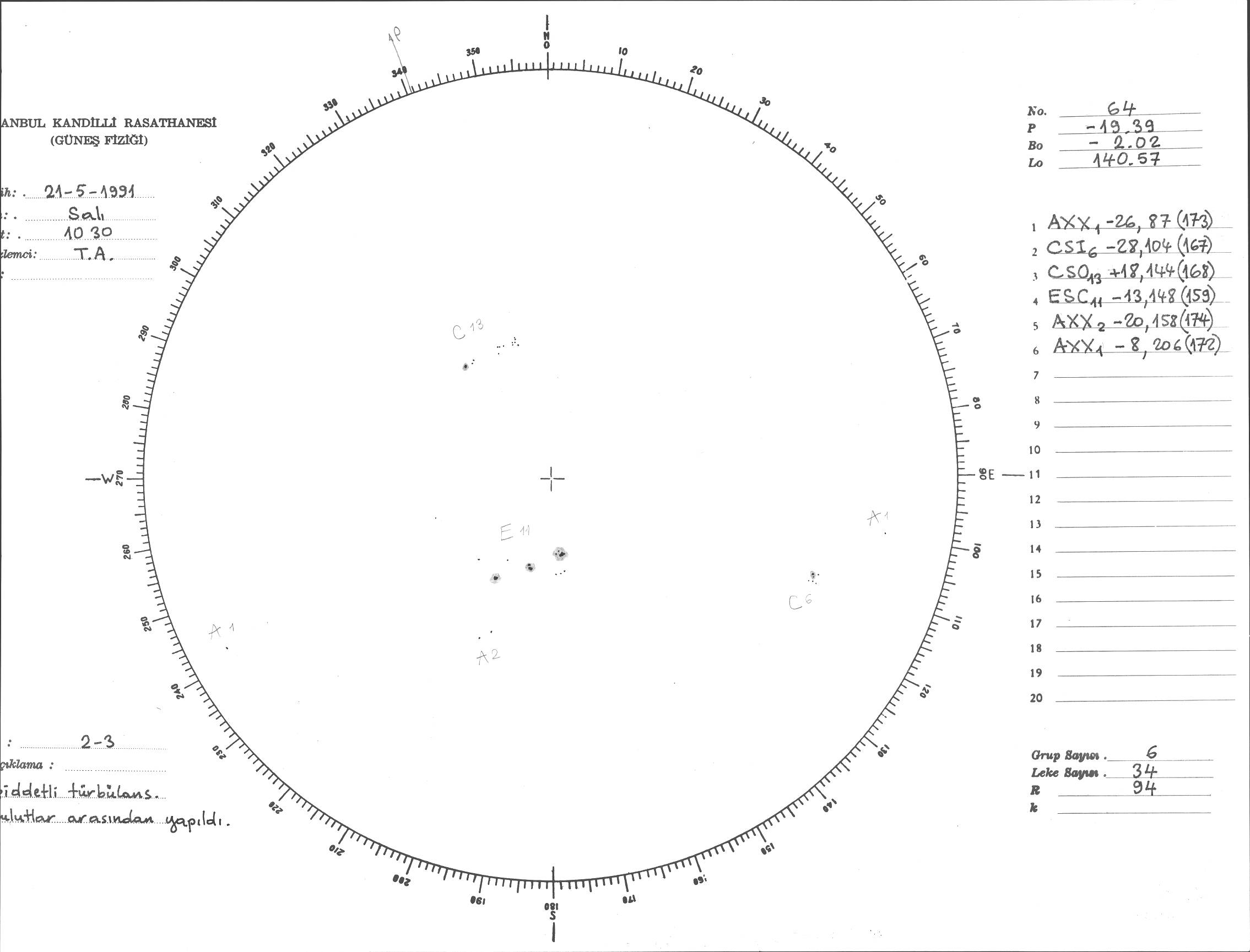 Güneş Lekesi Çizimleri / Kandilli Sunspot Drawings