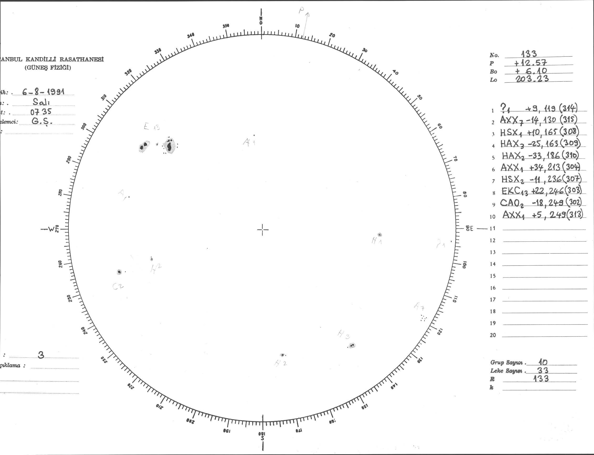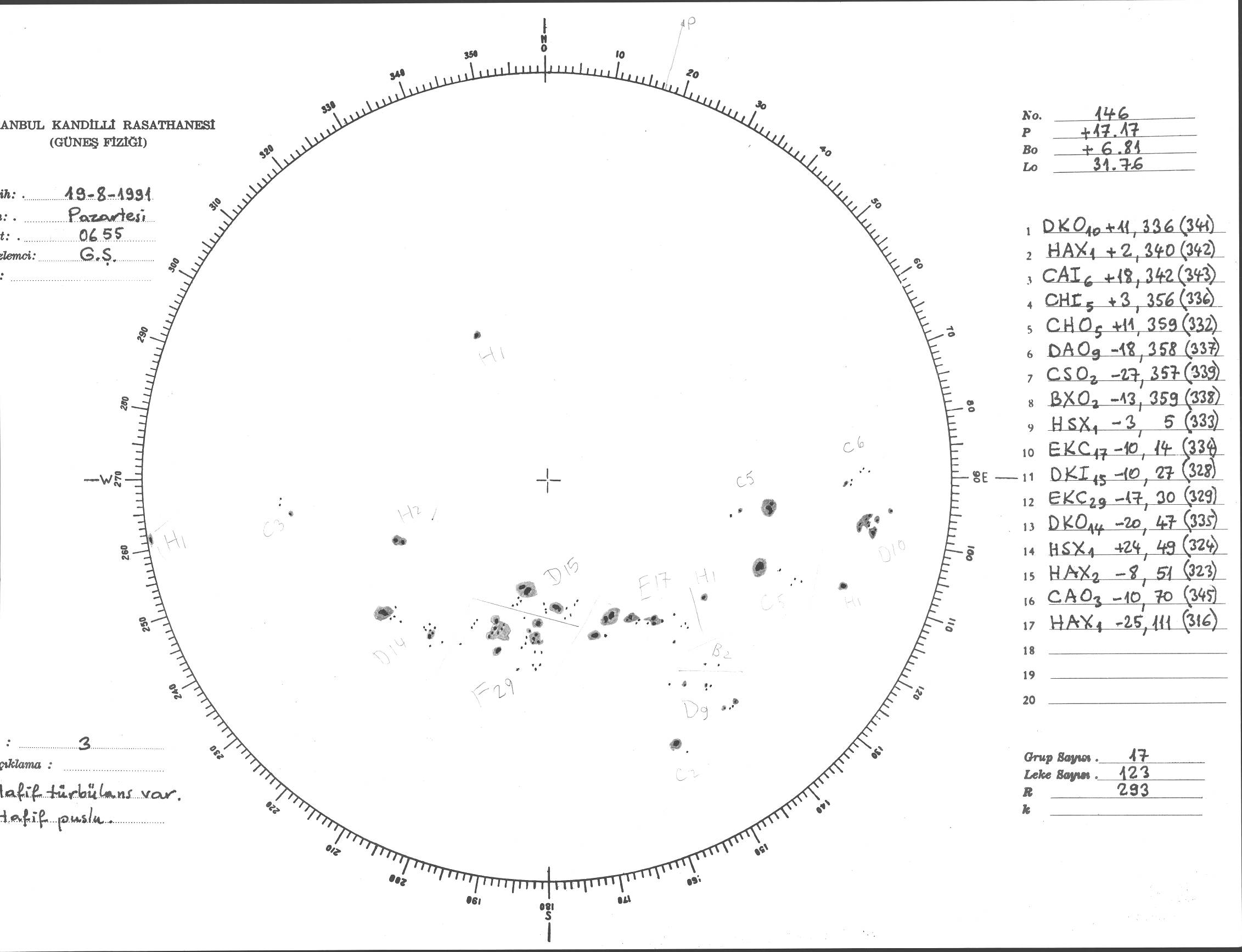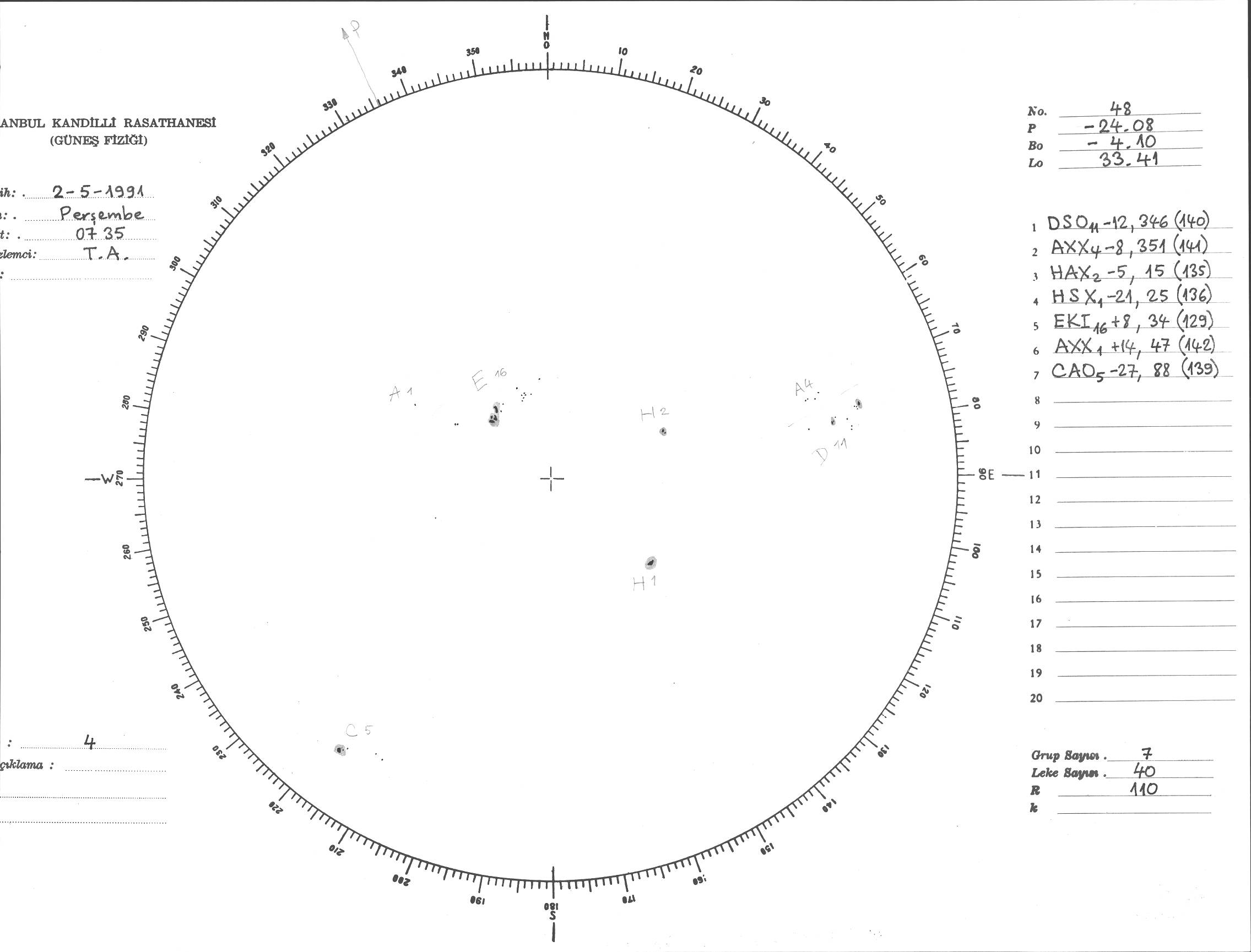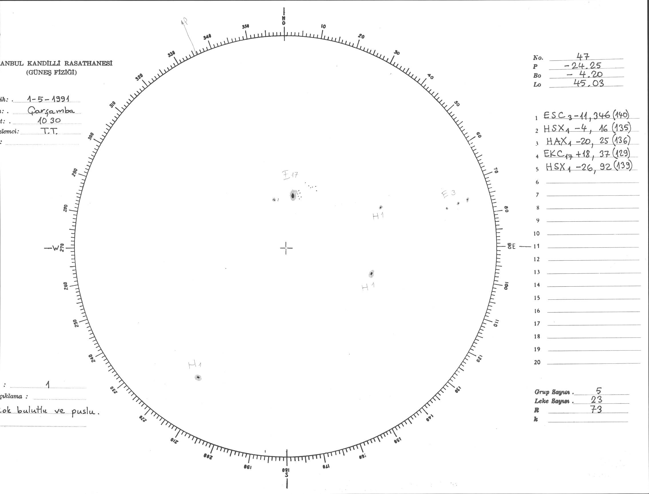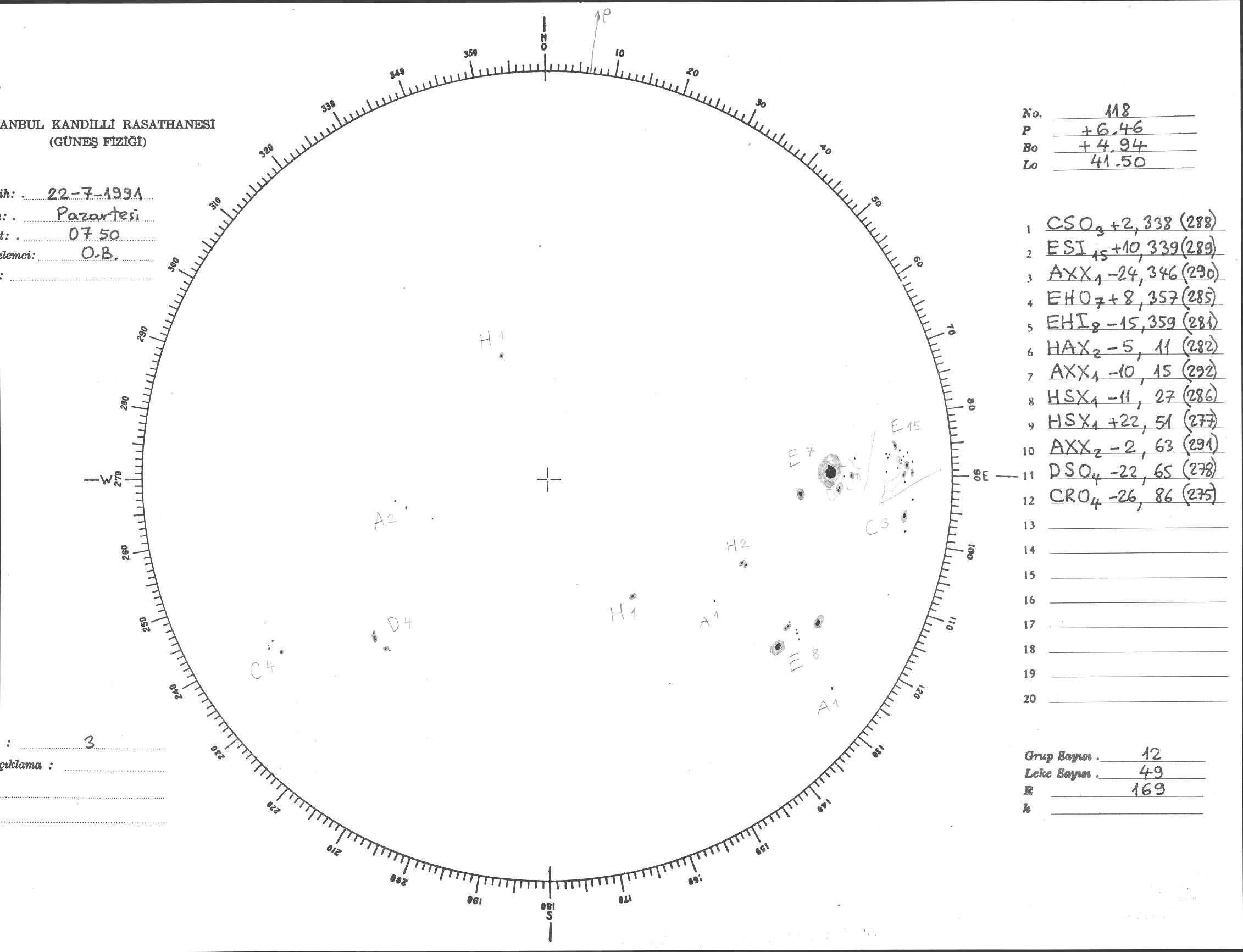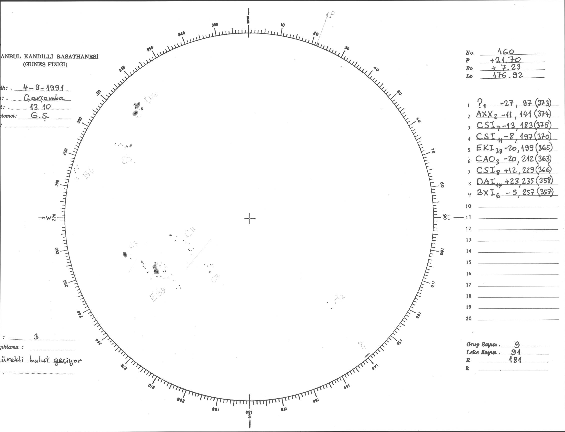 Güneş Lekesi Çizimleri / Kandilli Sunspot Drawings