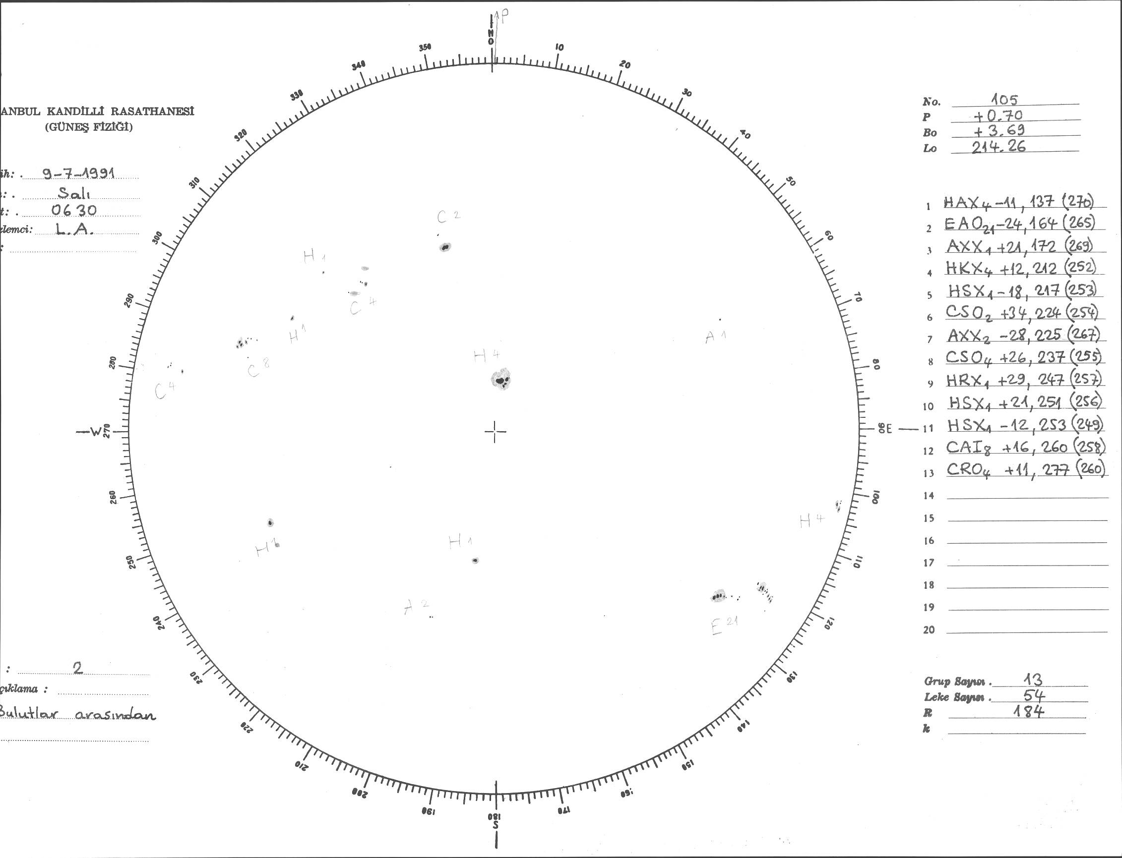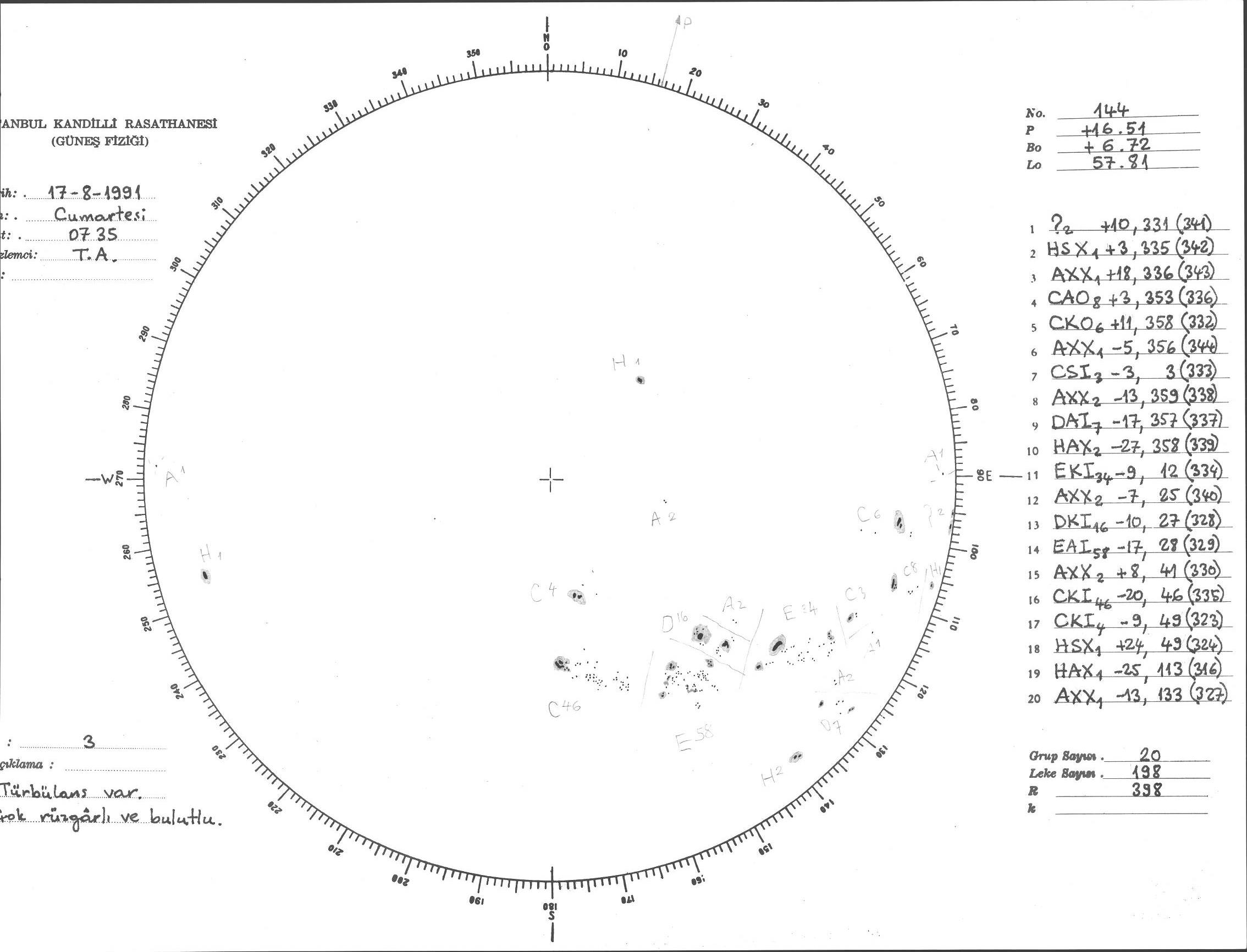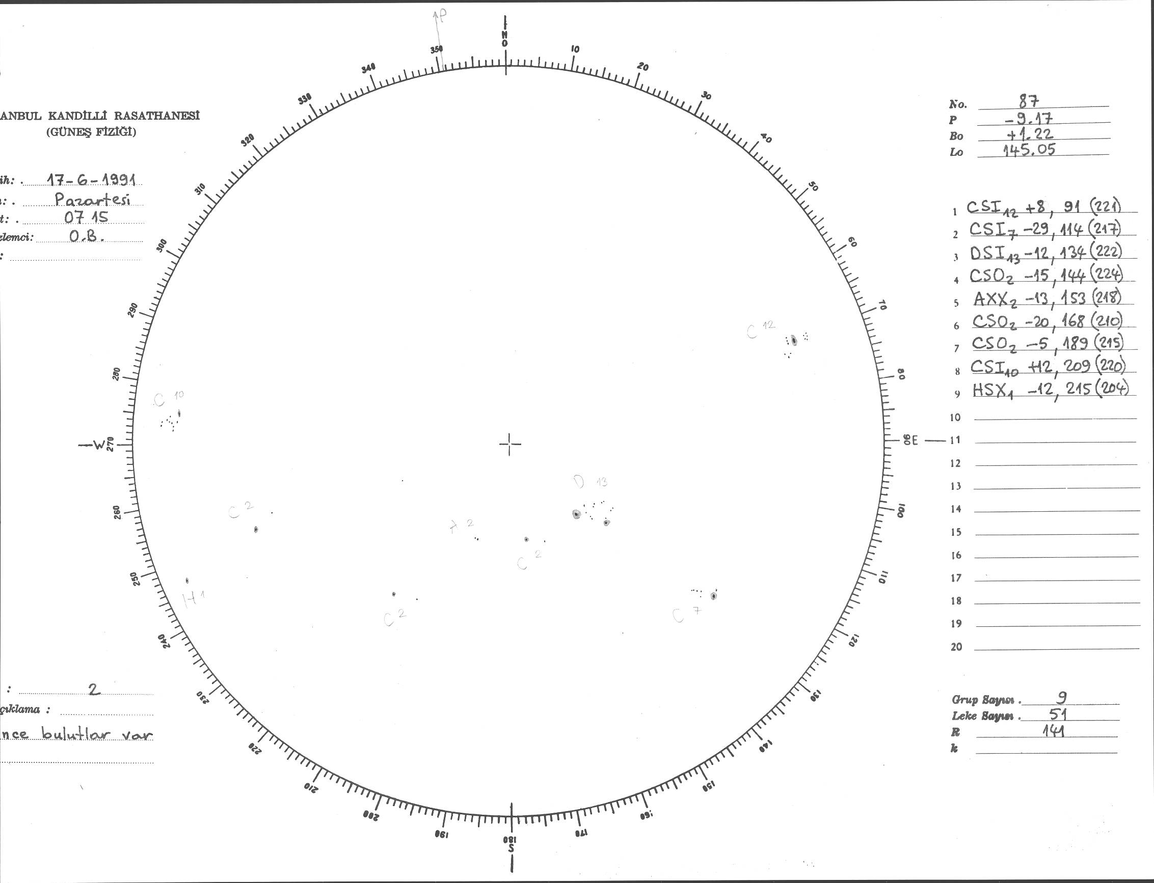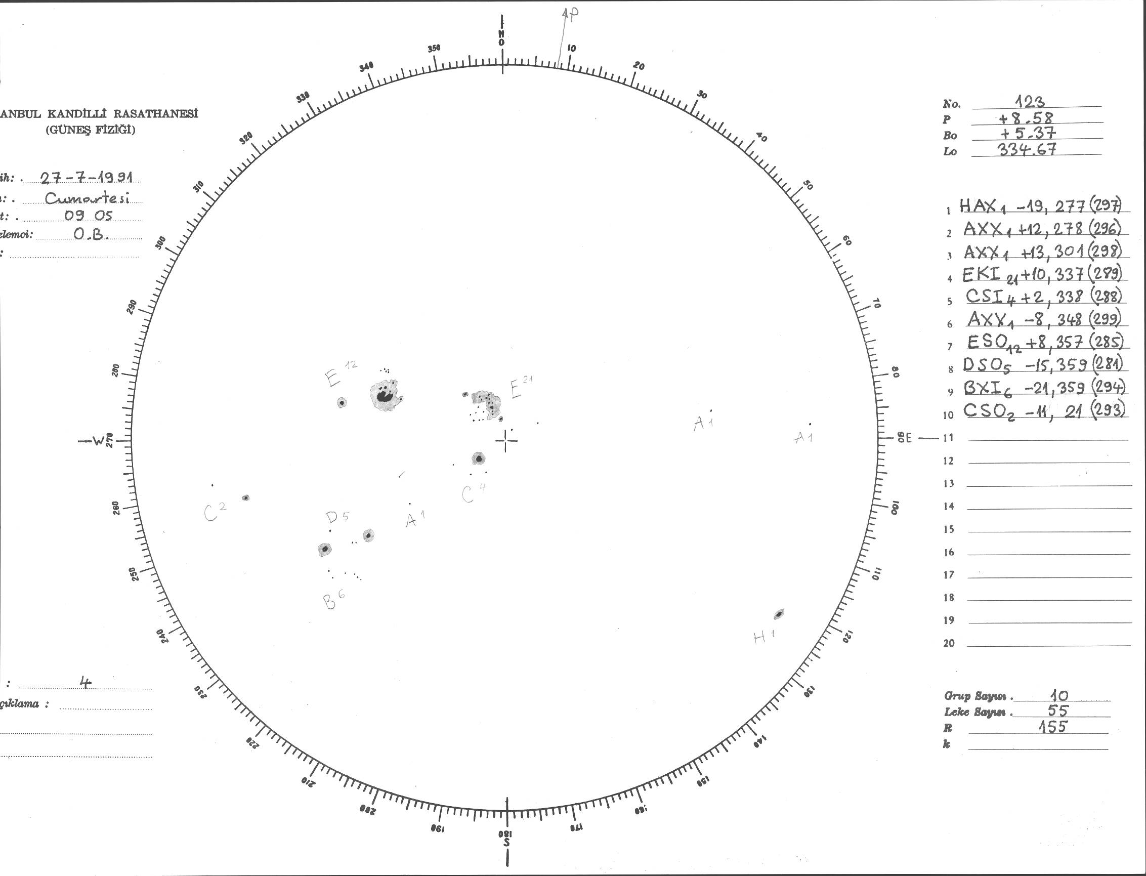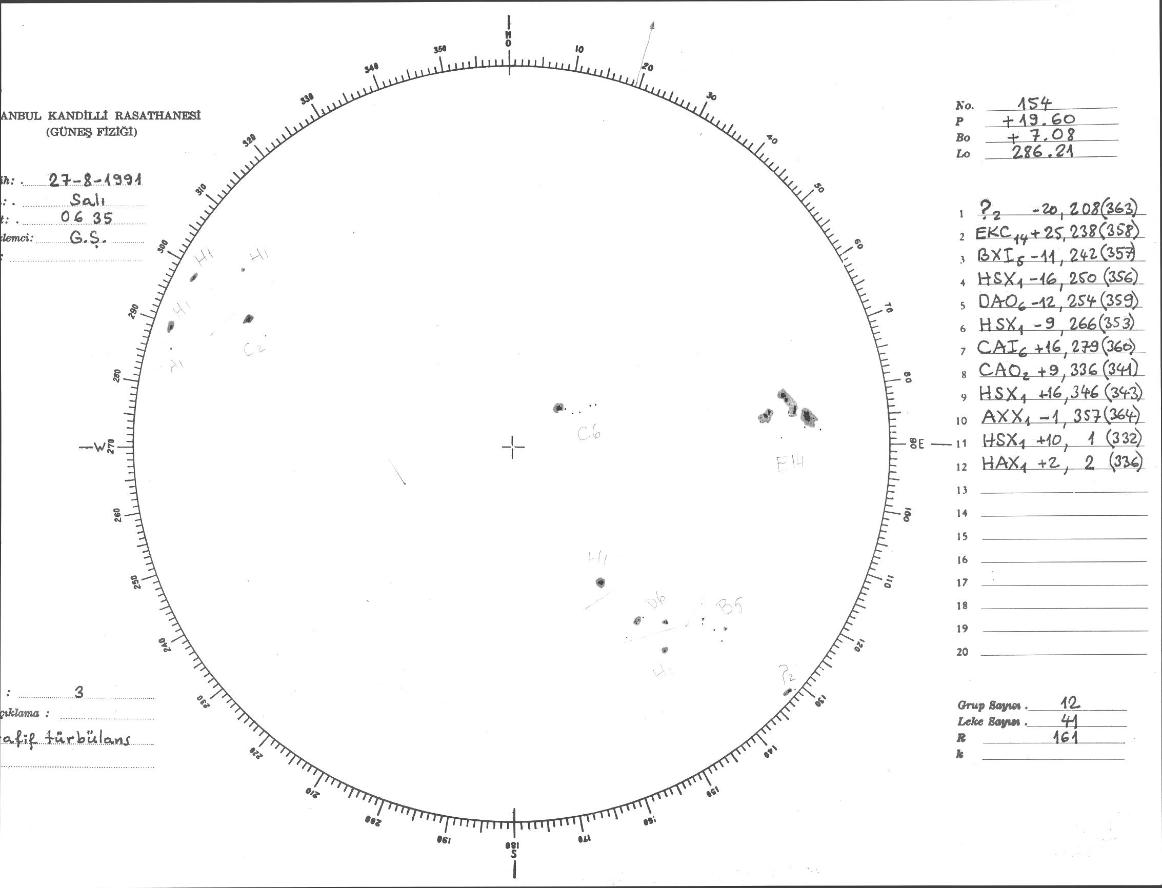 Güneş Lekesi Çizimleri / Kandilli Sunspot Drawings