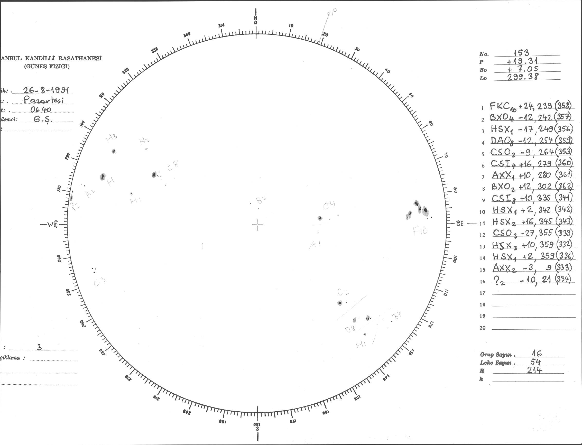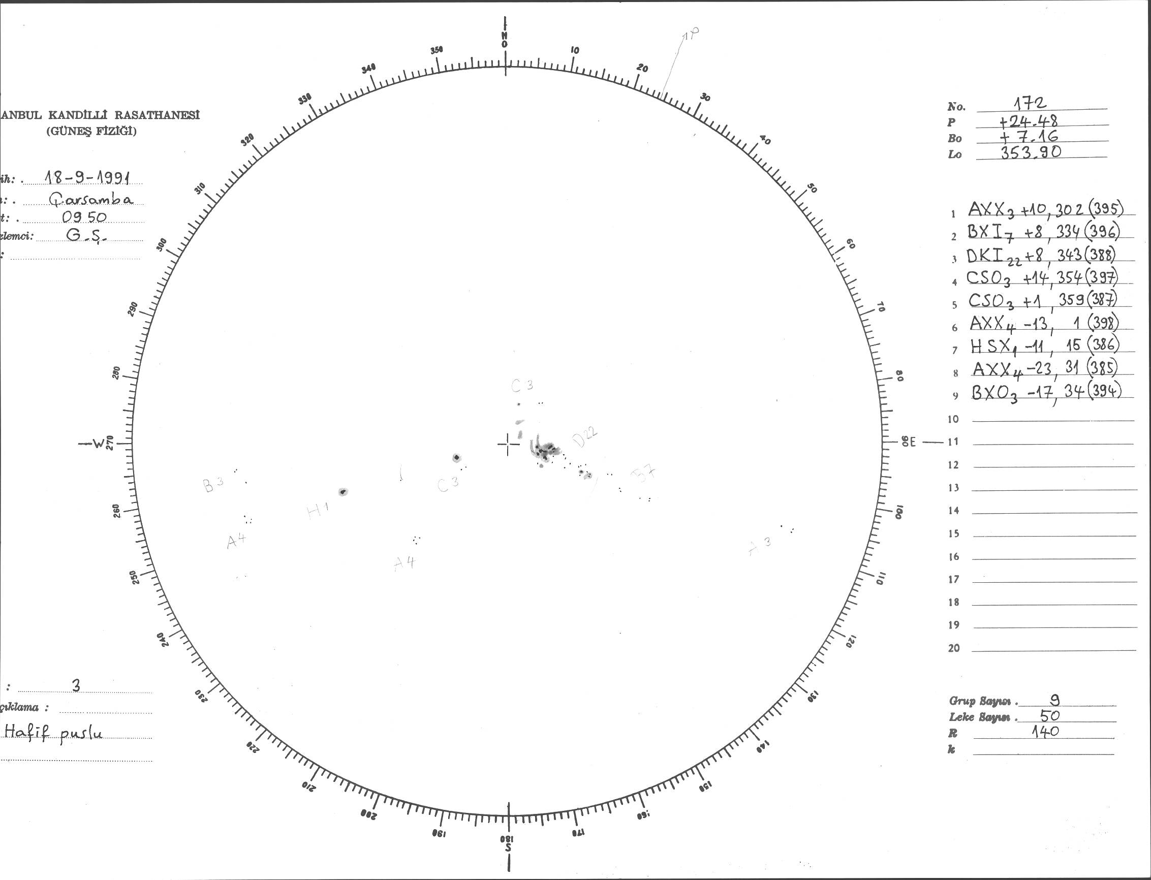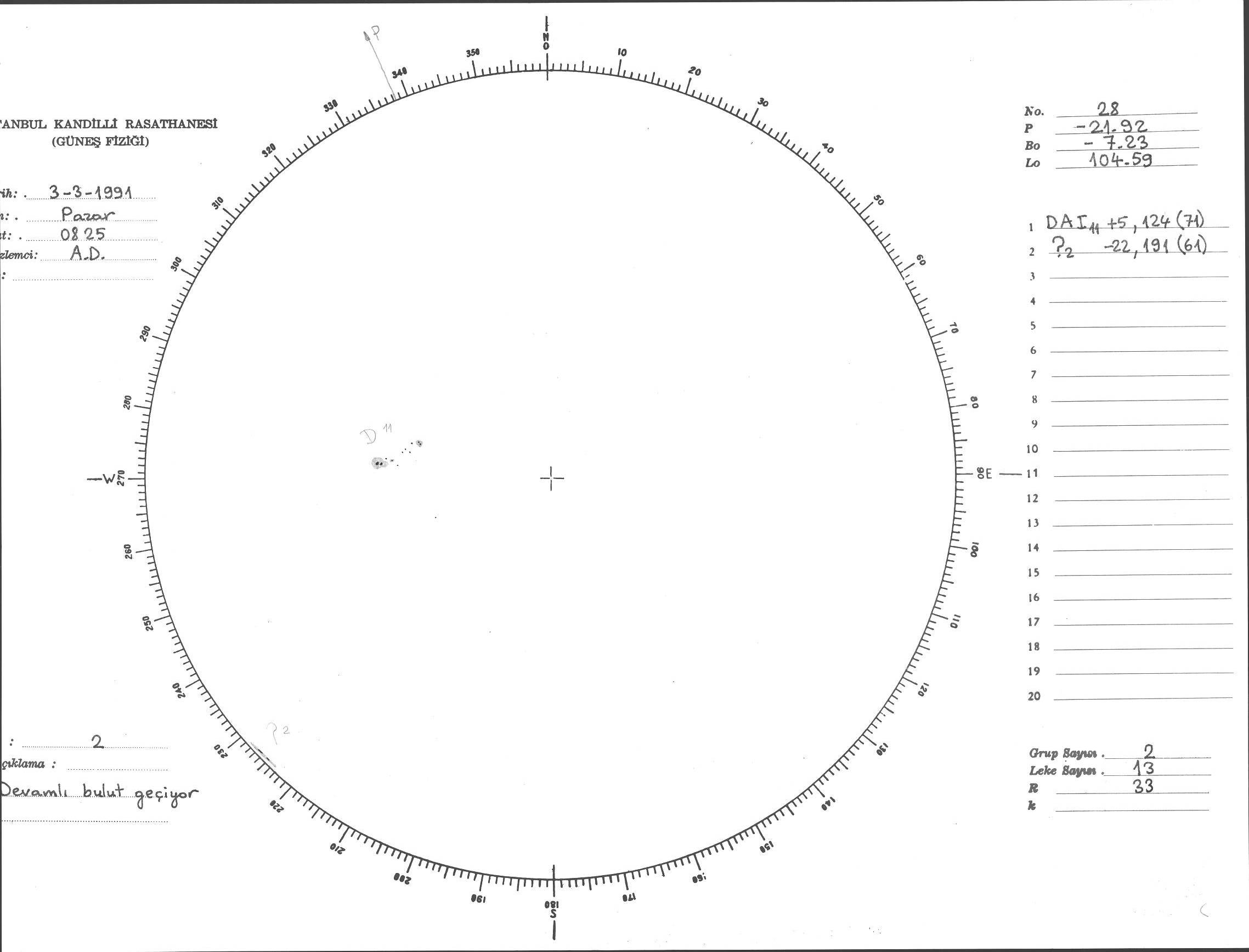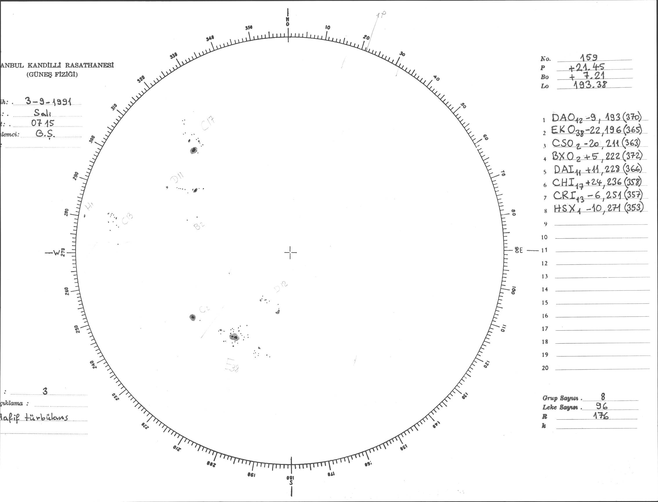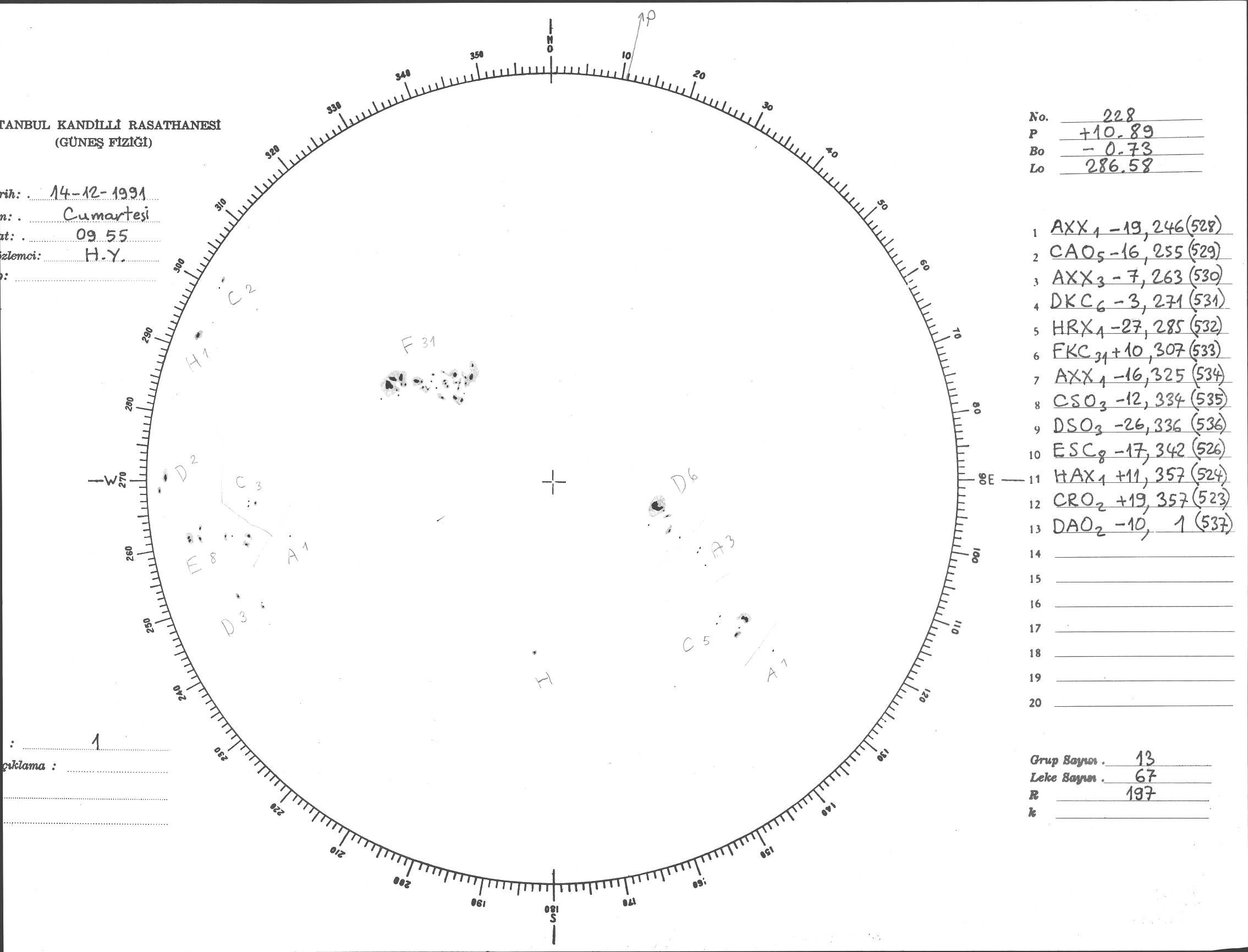 Güneş Lekesi Çizimleri / Kandilli Sunspot Drawings
