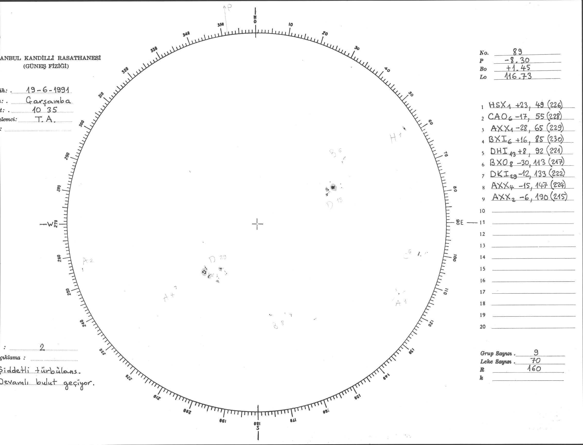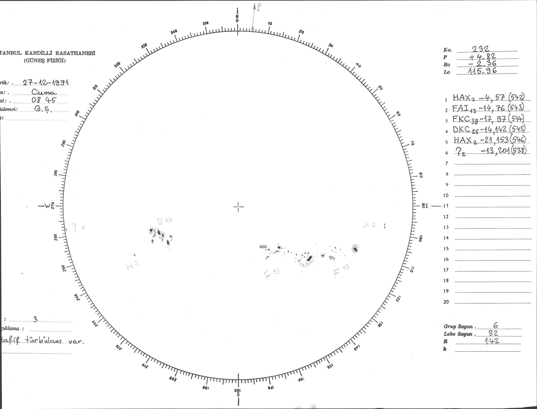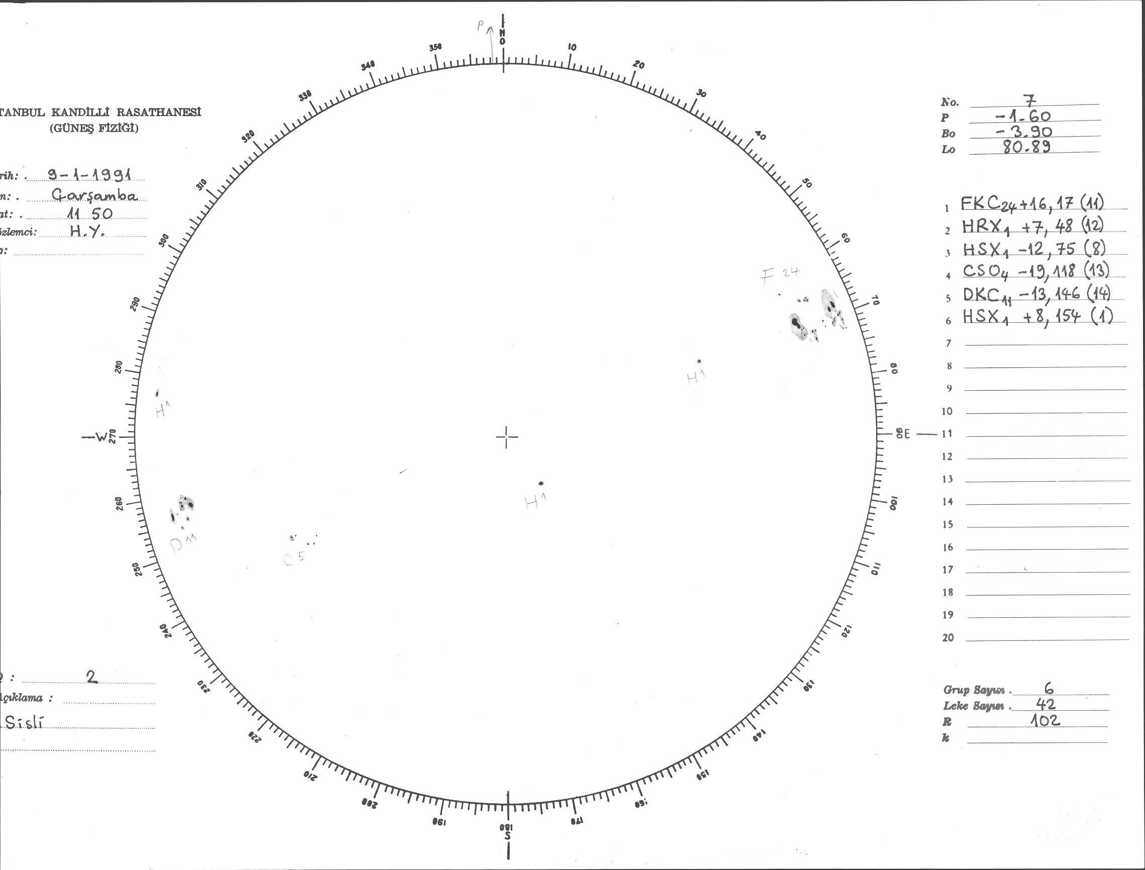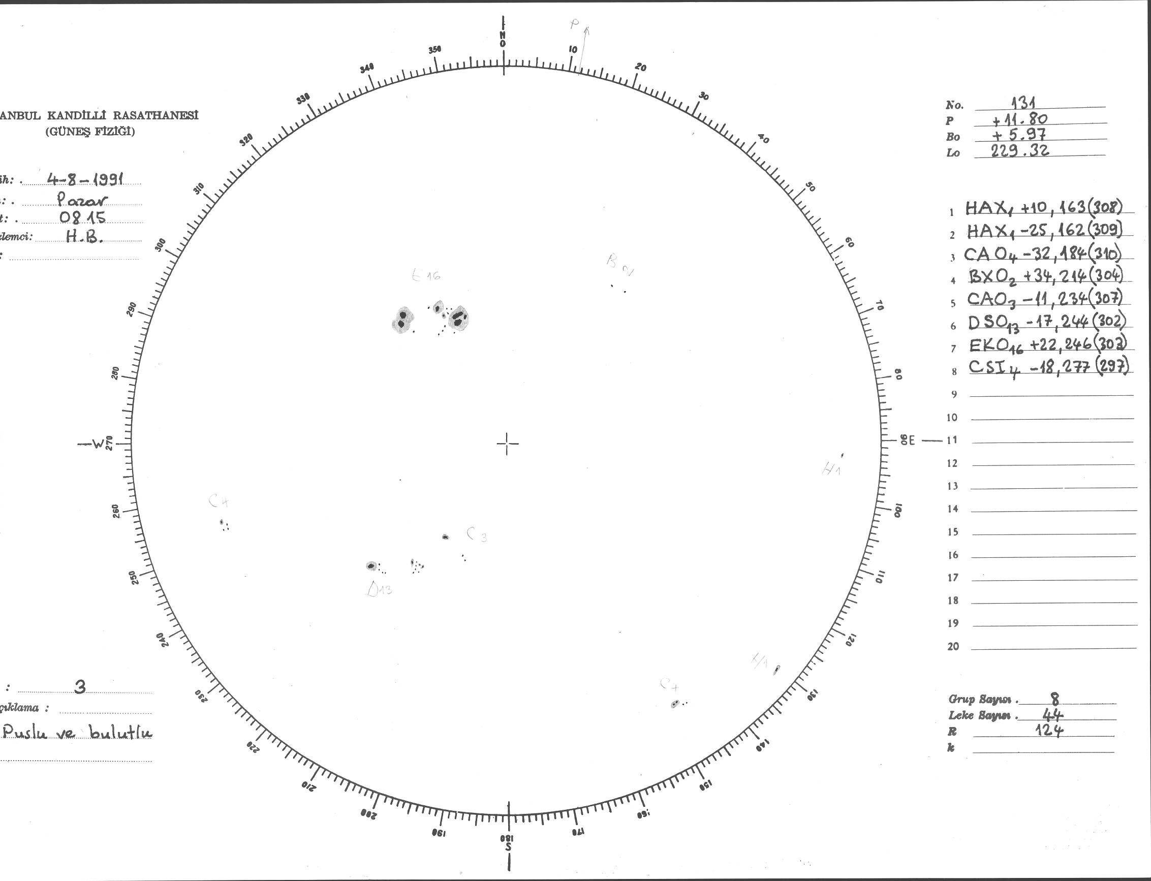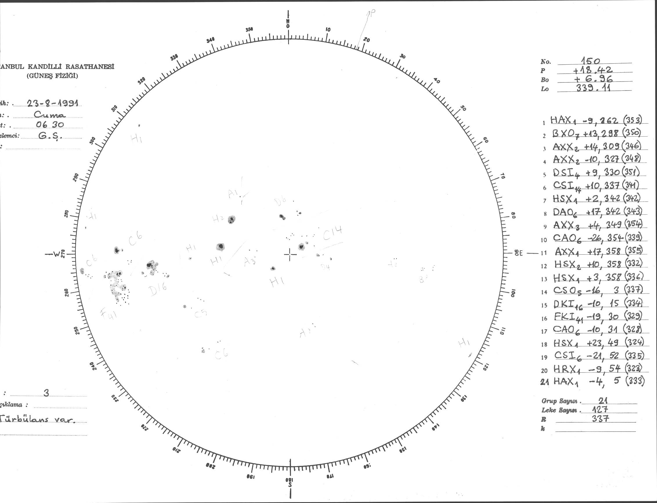 Güneş Lekesi Çizimleri / Kandilli Sunspot Drawings