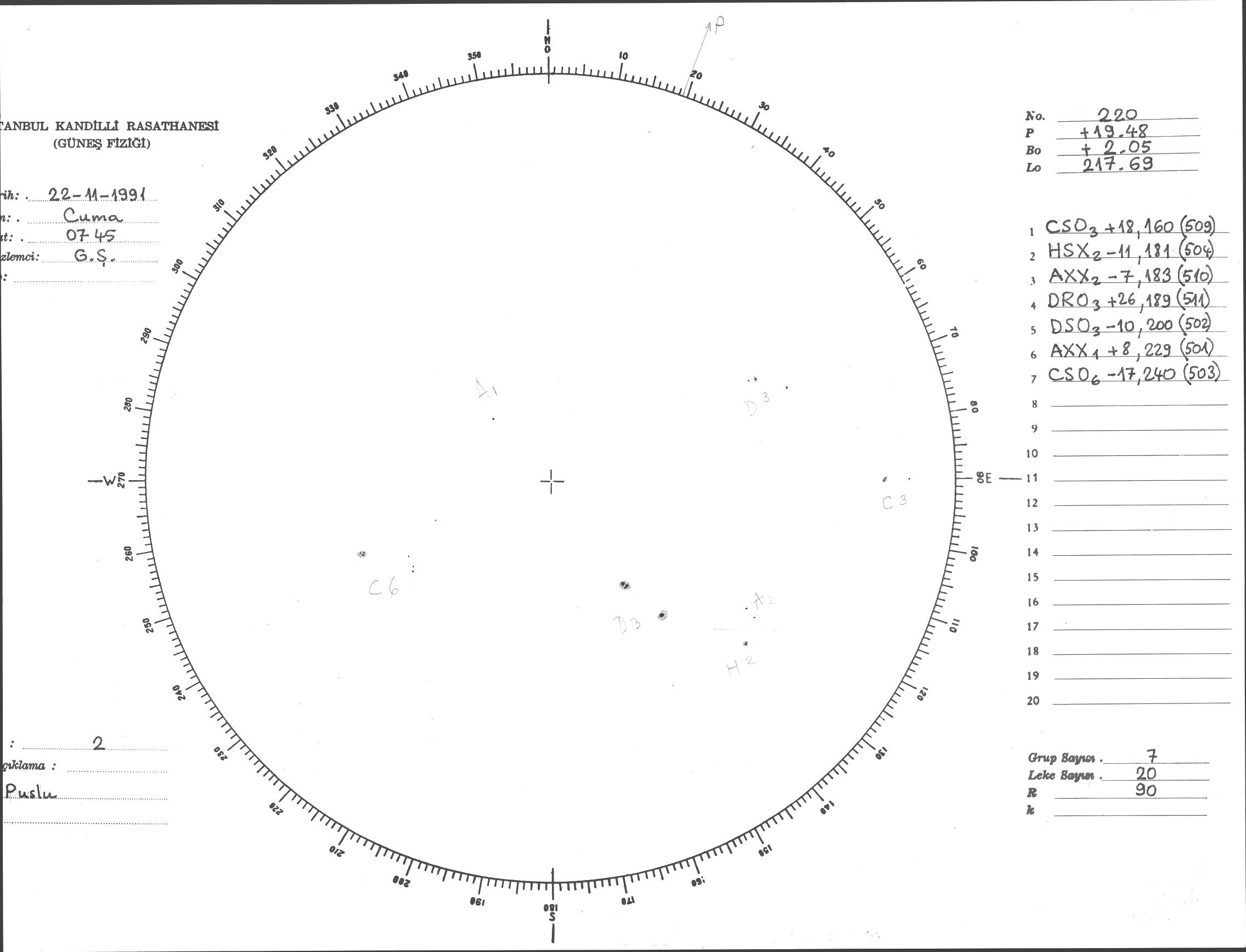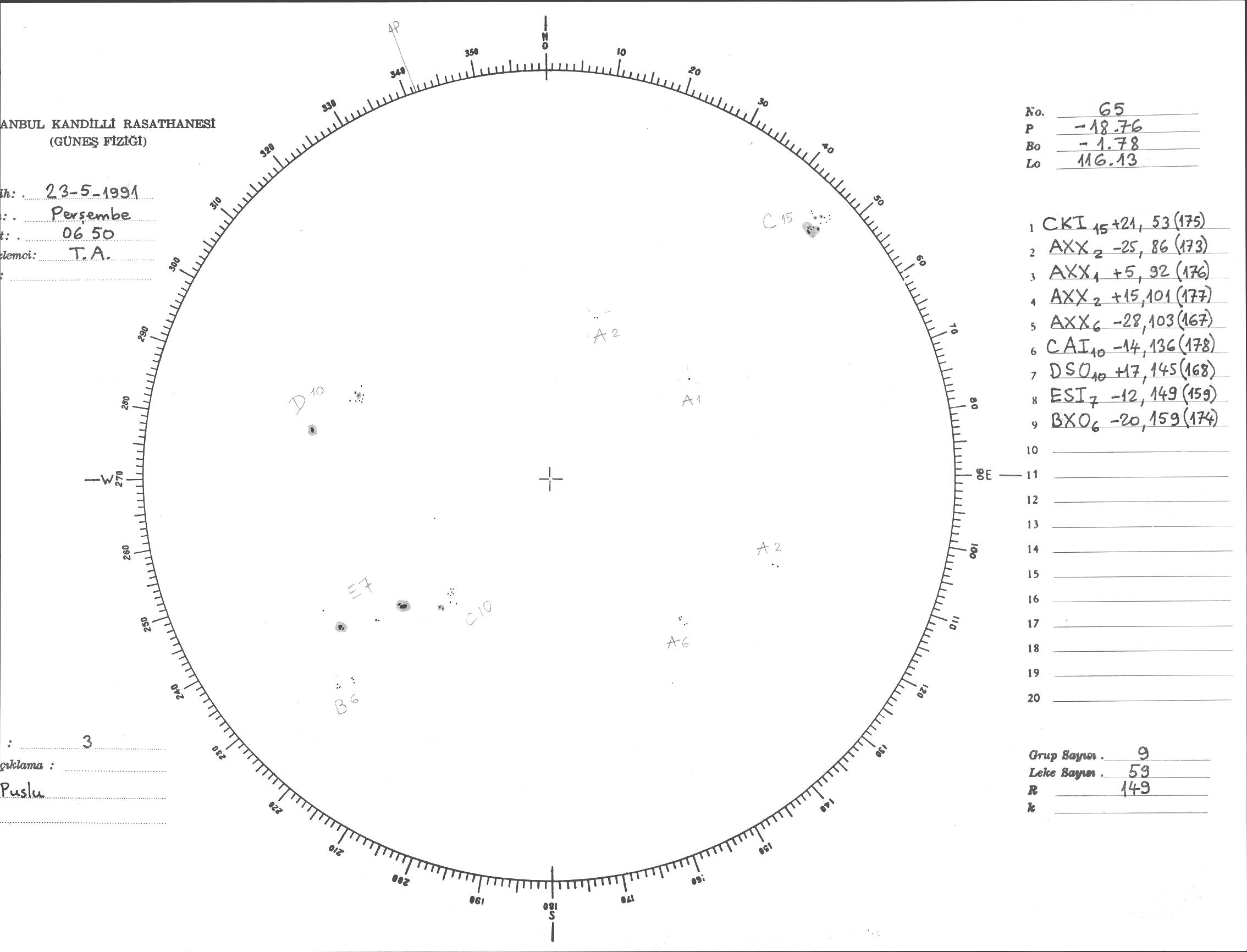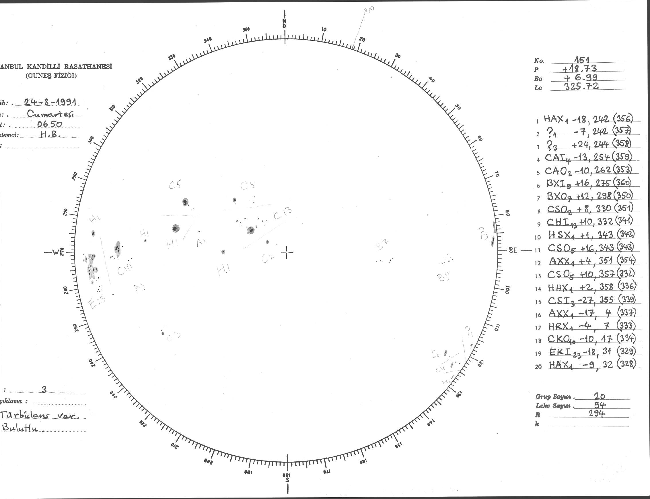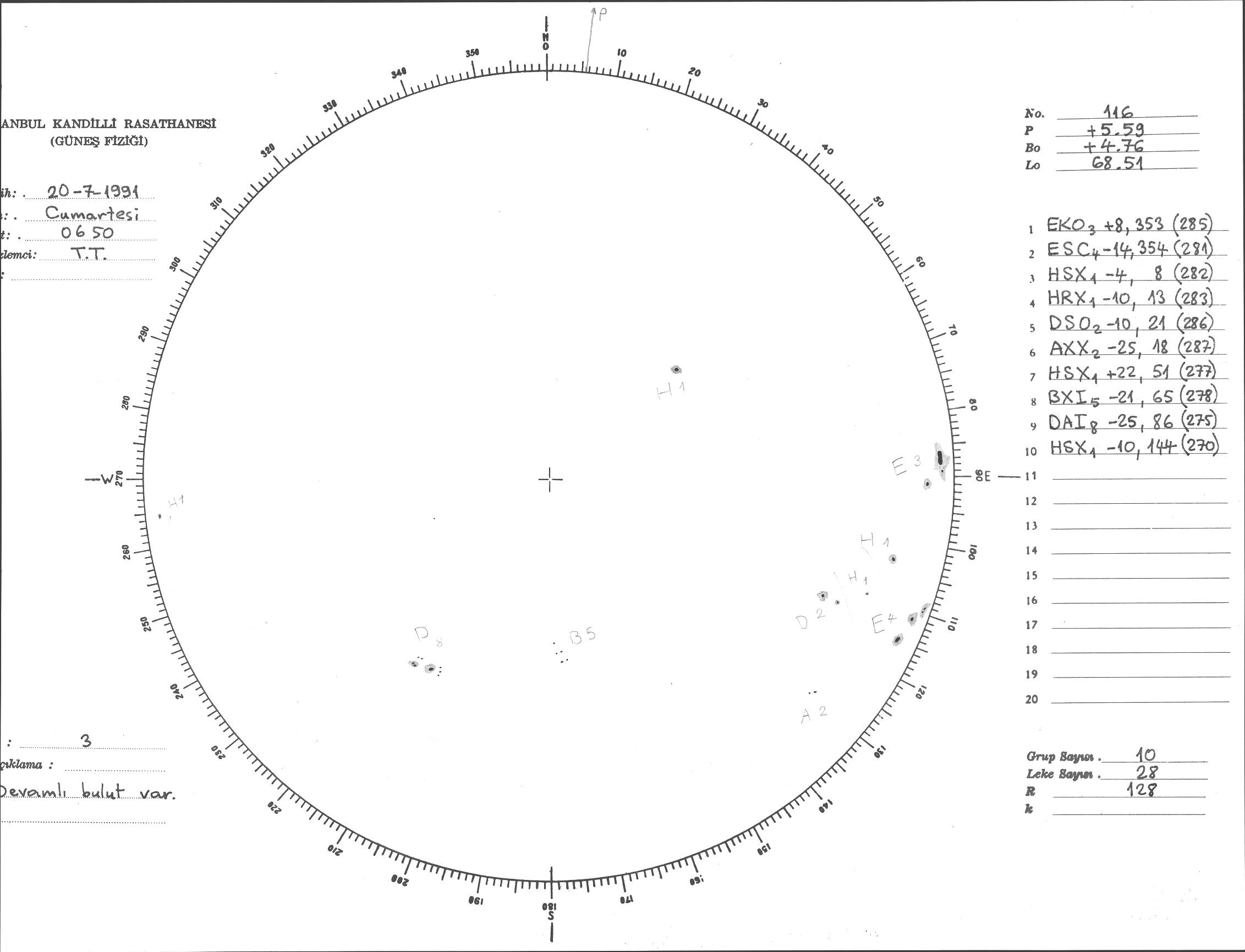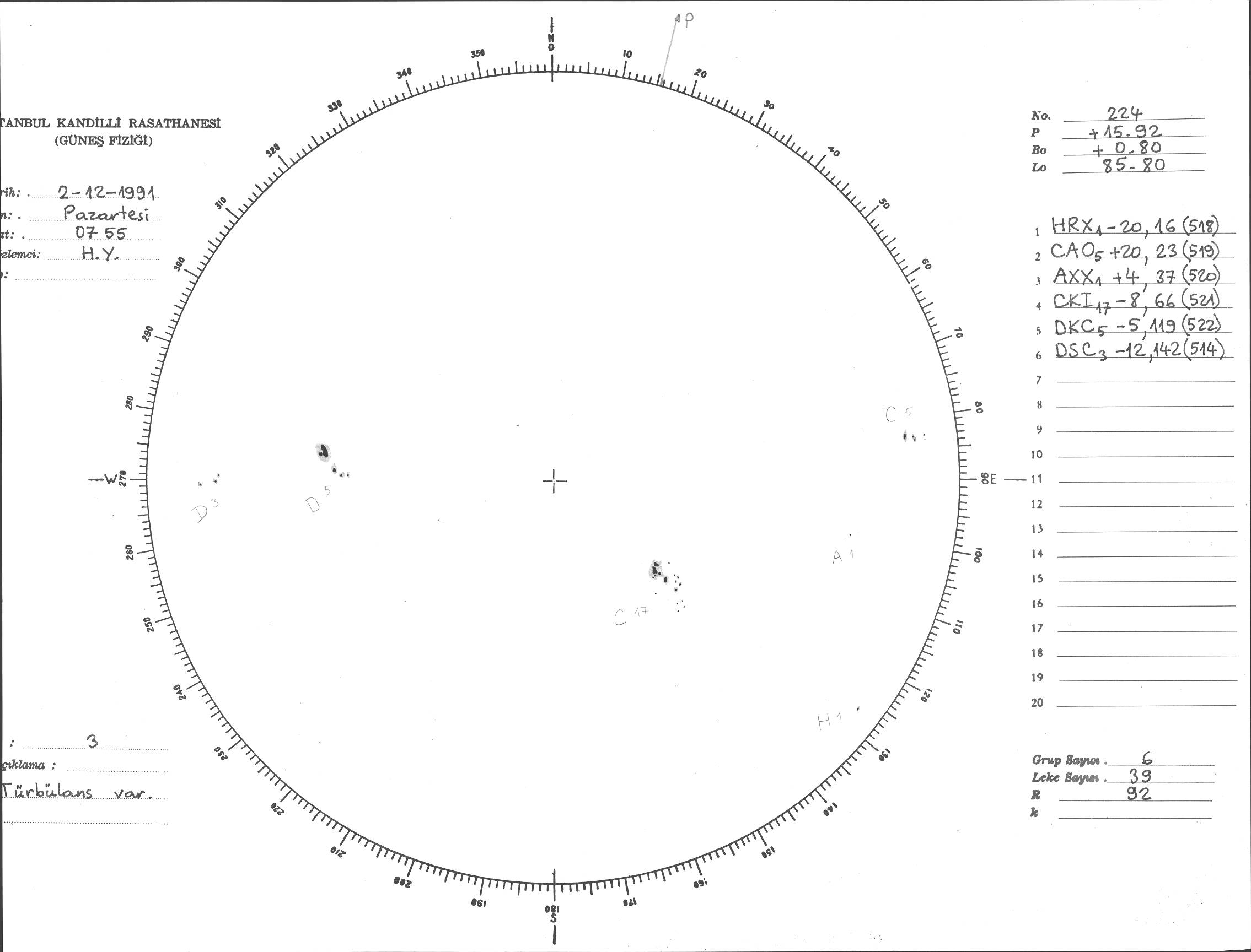 Güneş Lekesi Çizimleri / Kandilli Sunspot Drawings