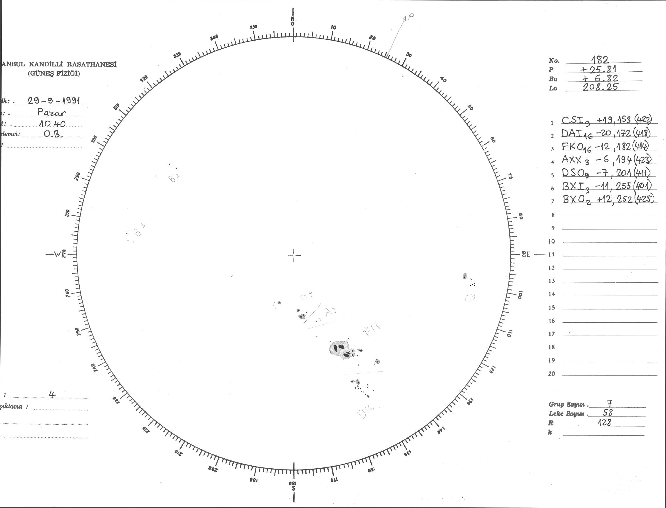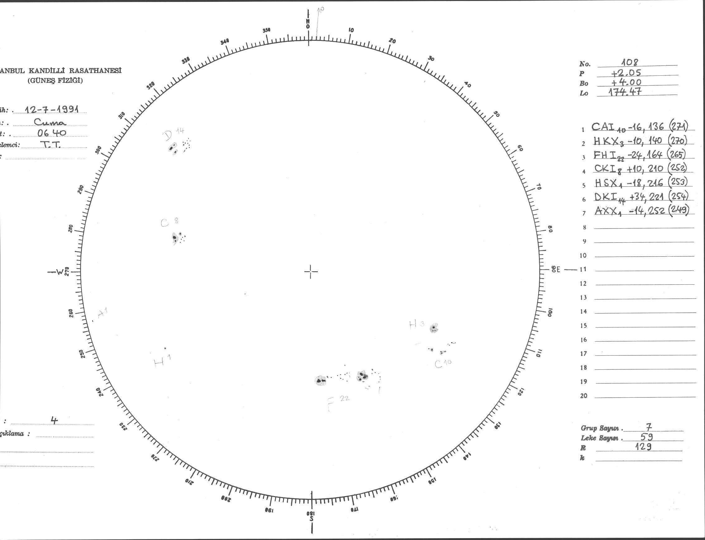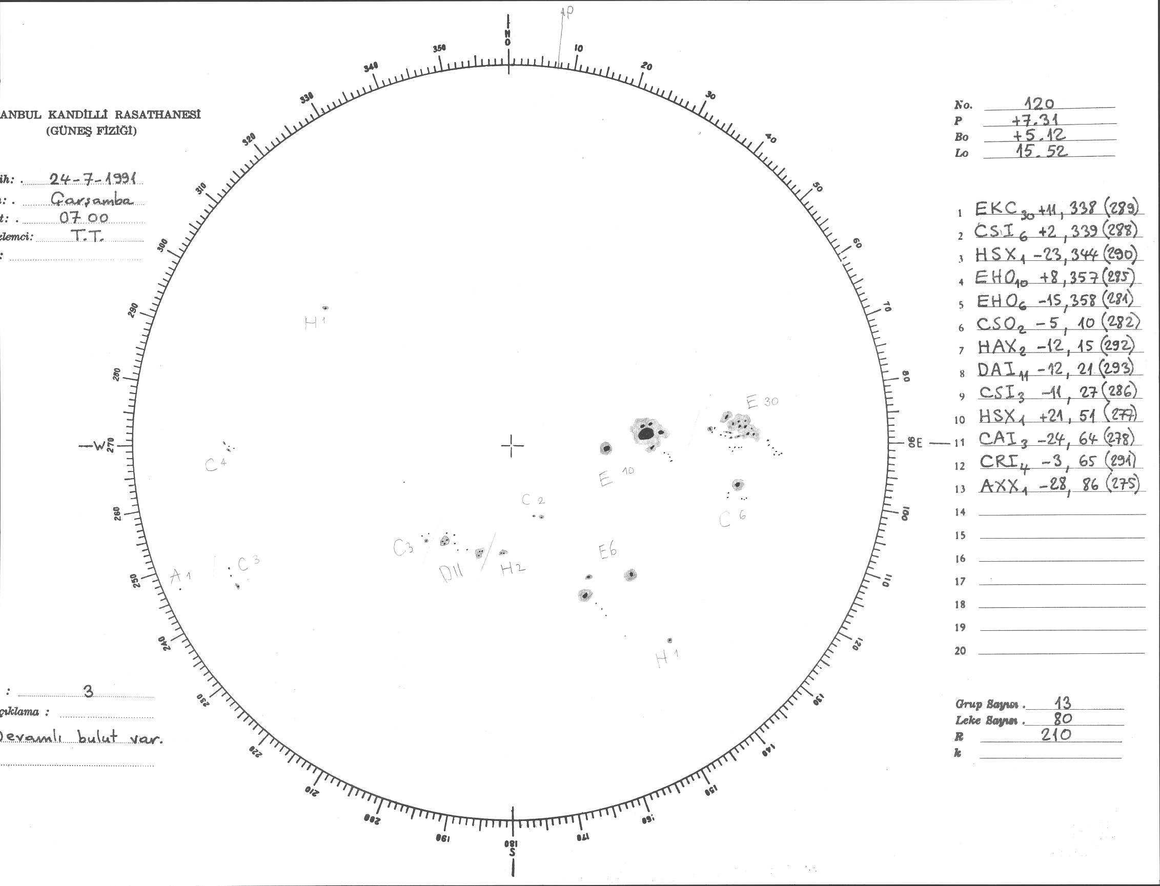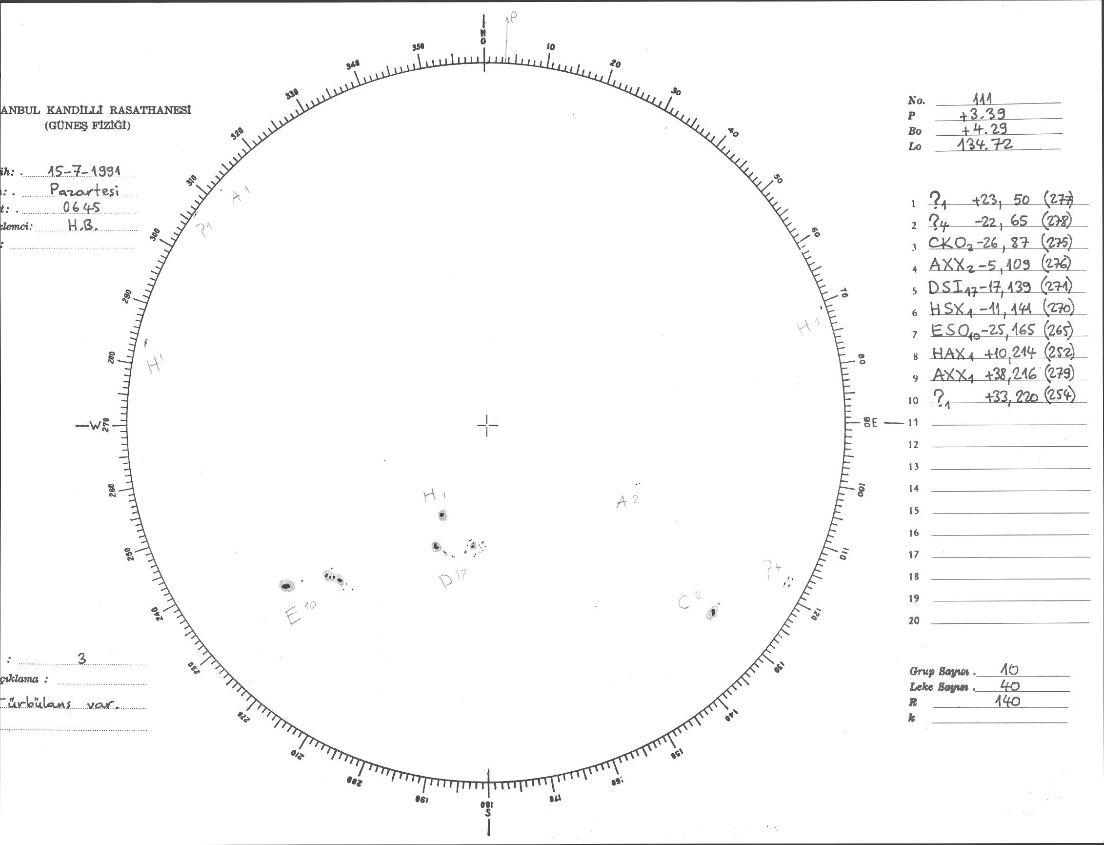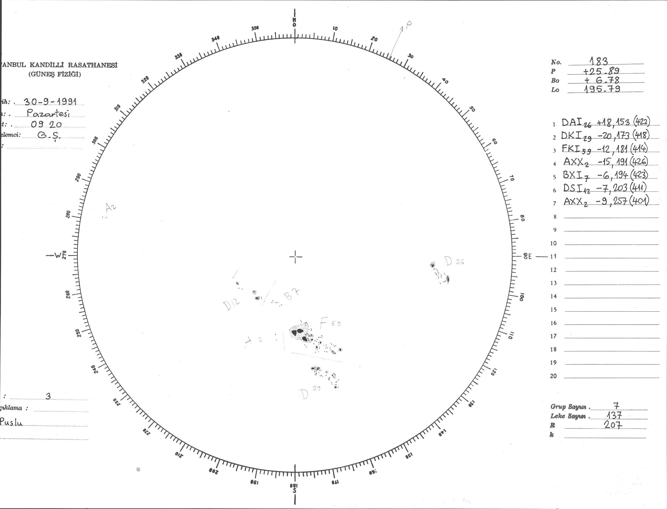 Güneş Lekesi Çizimleri / Kandilli Sunspot Drawings