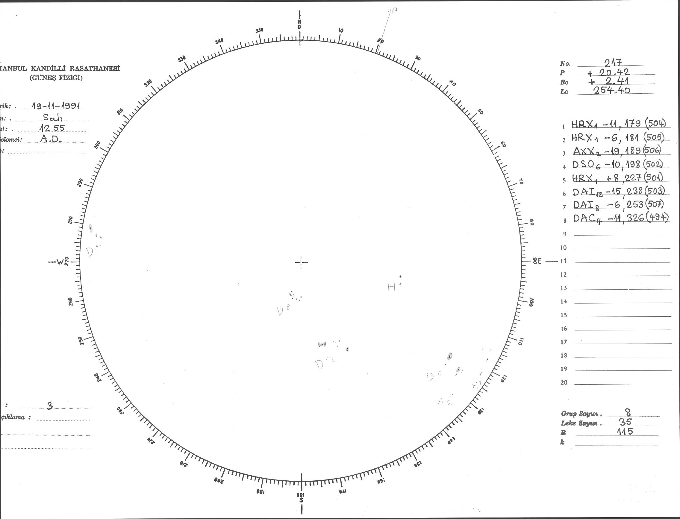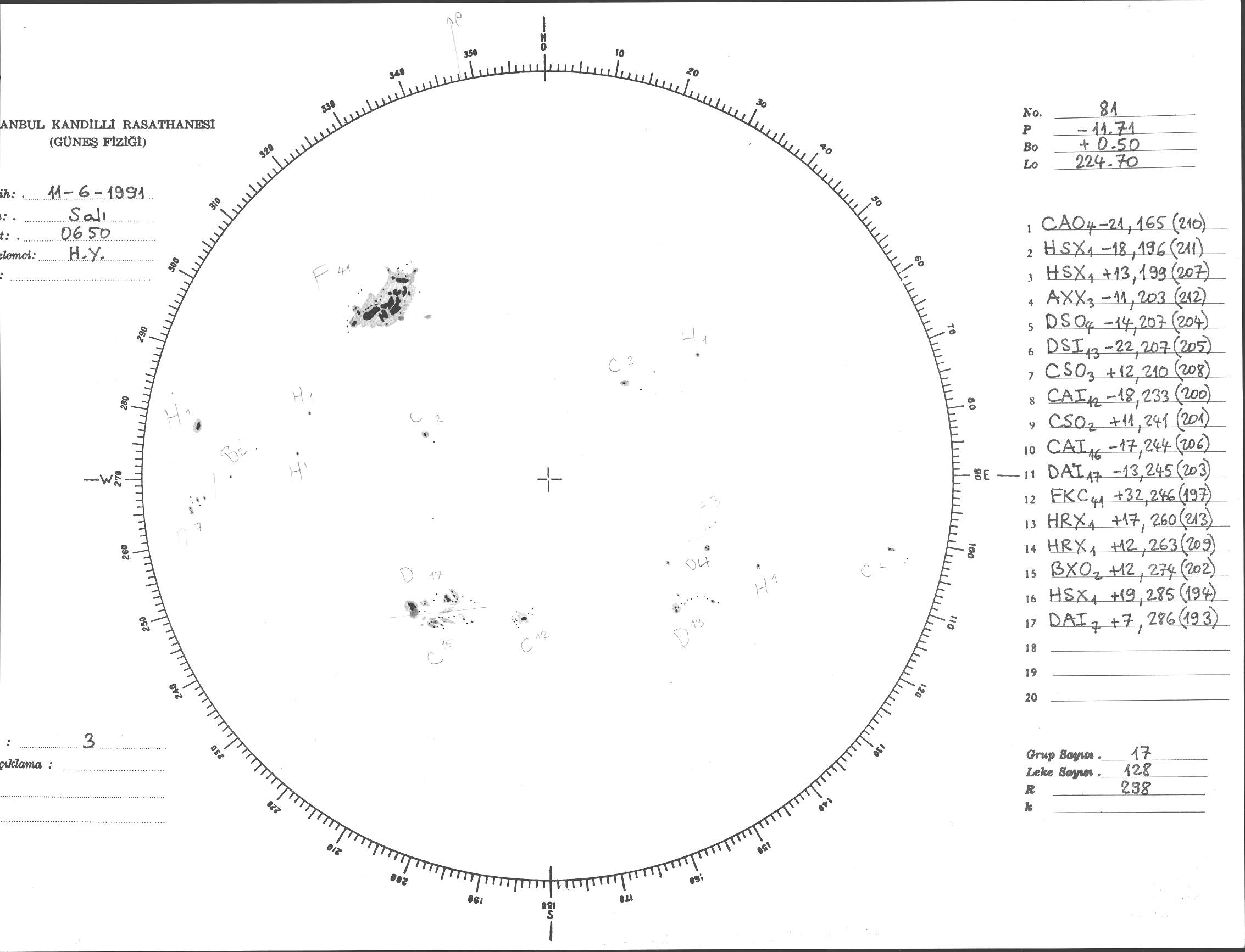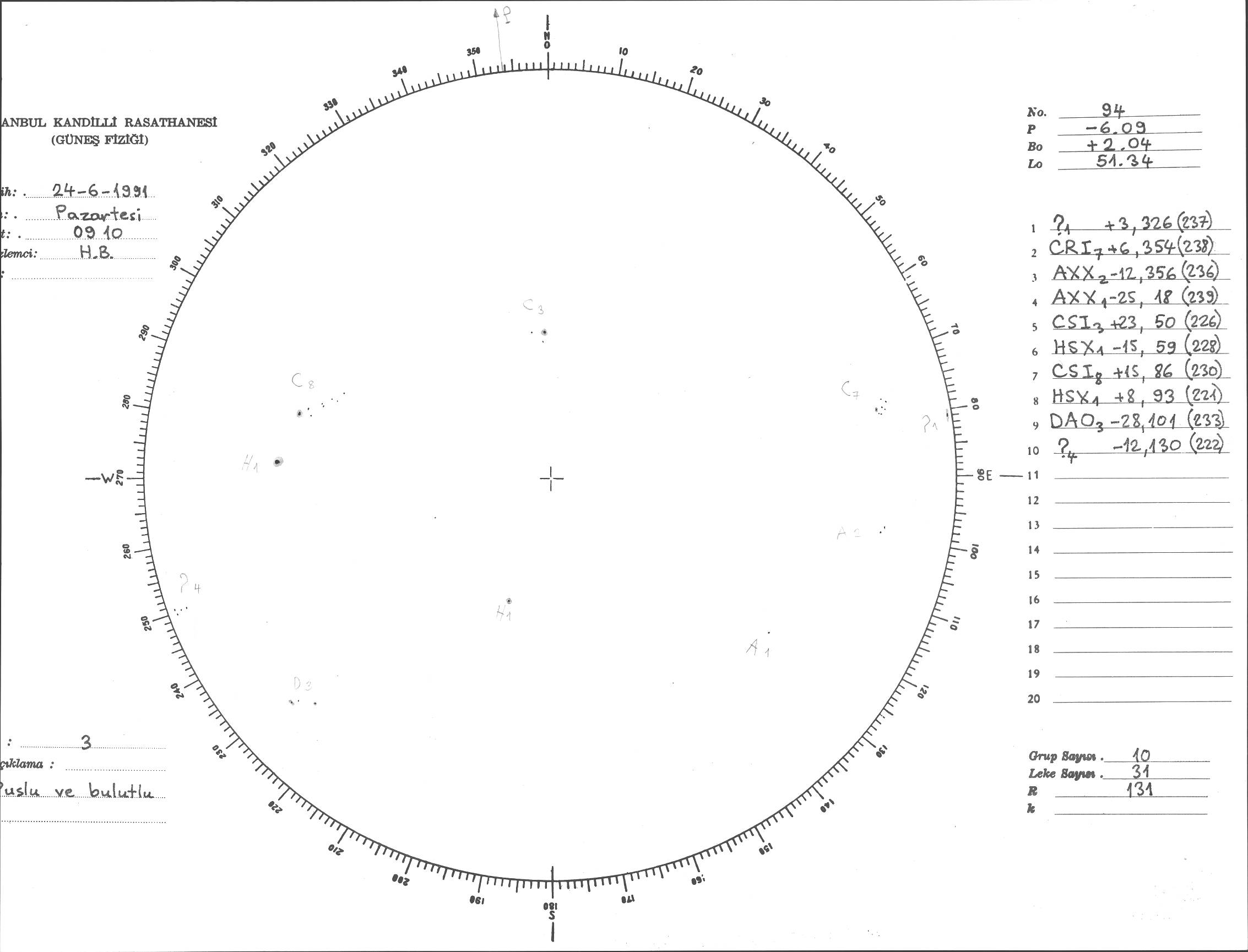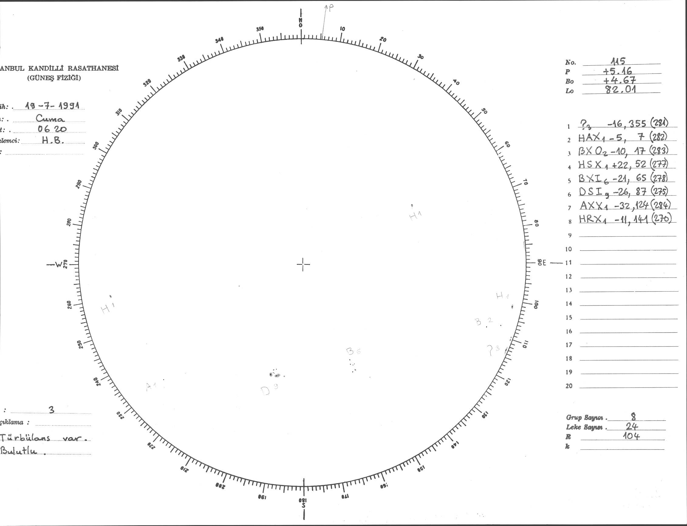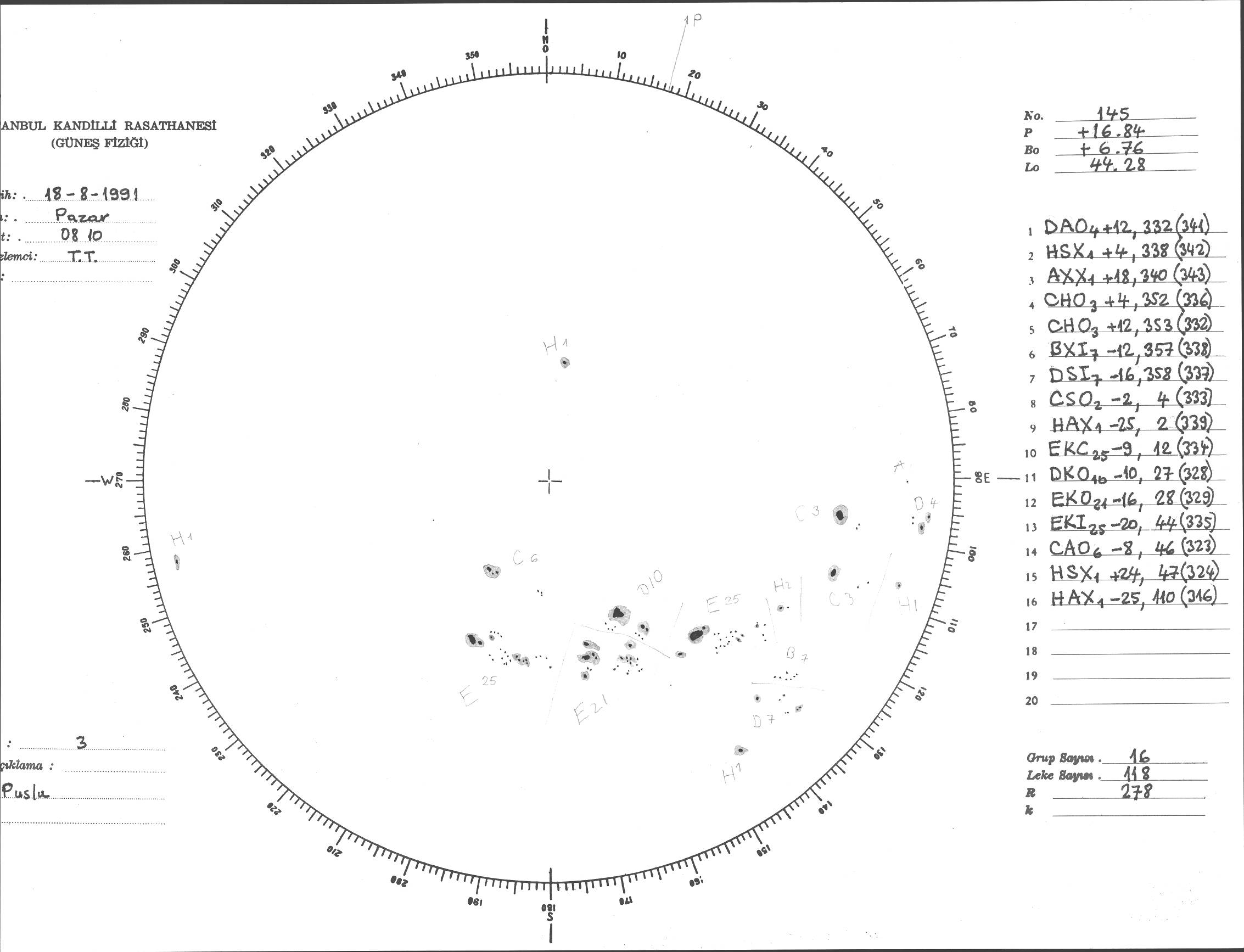Güneş Lekesi Çizimleri / Kandilli Sunspot Drawings