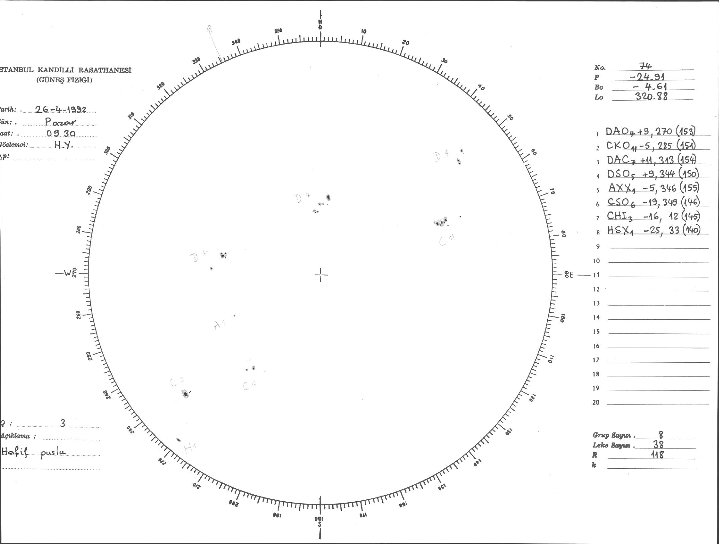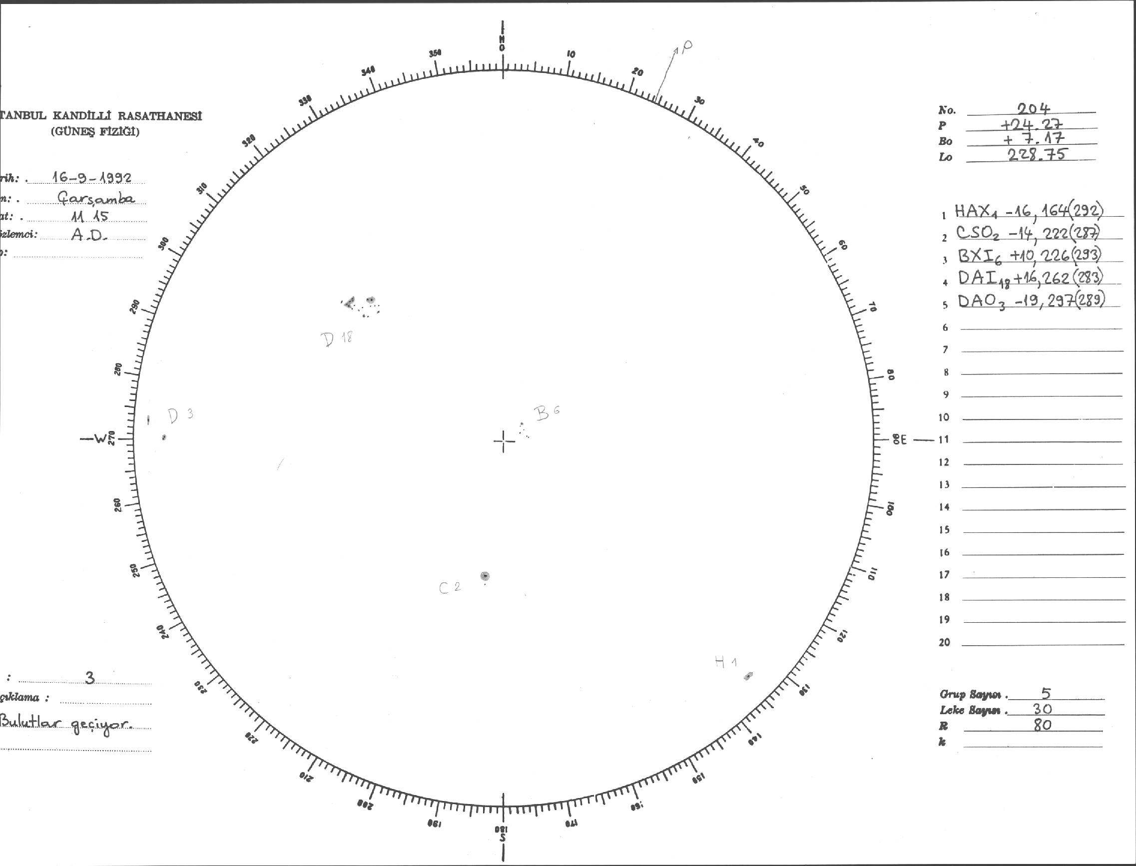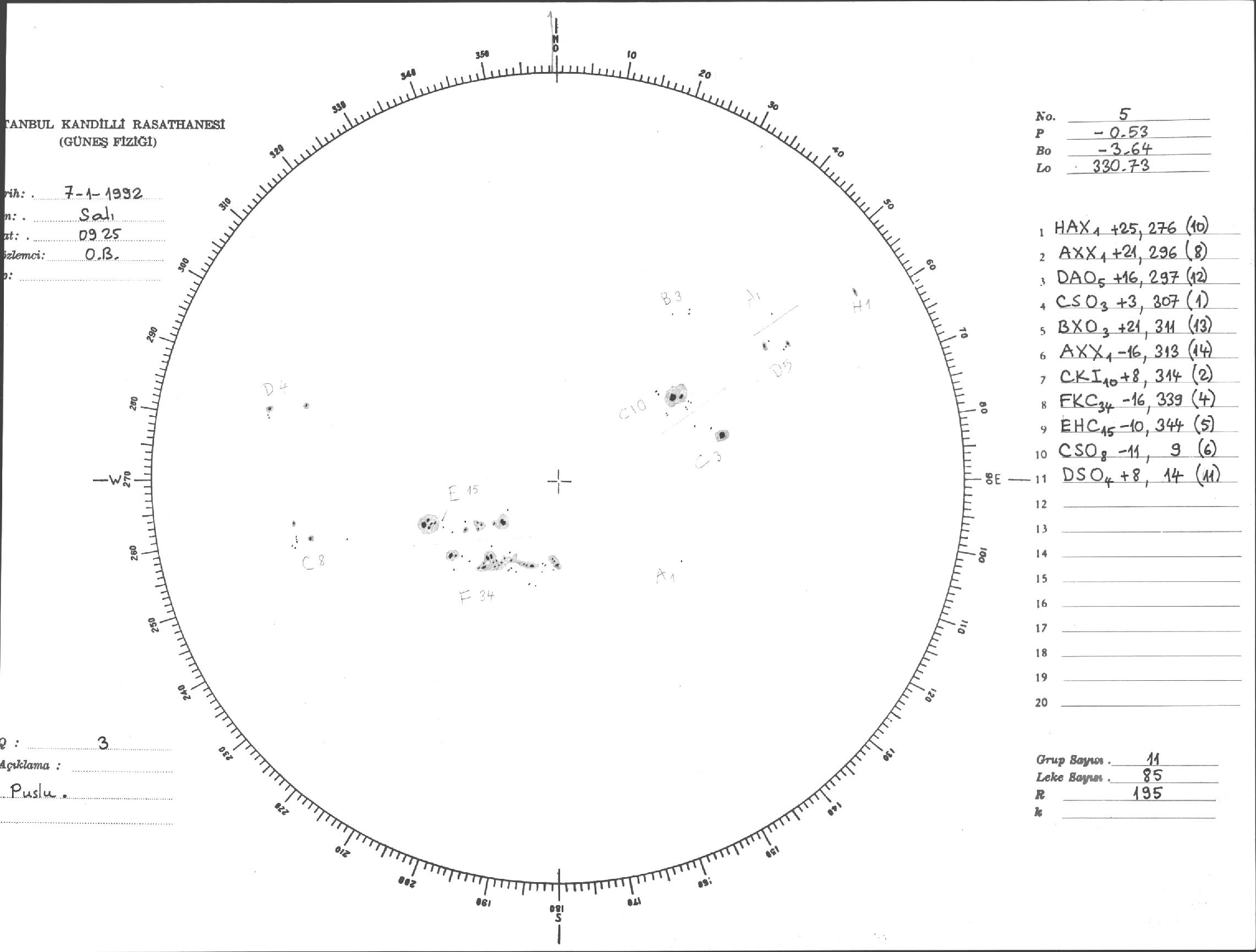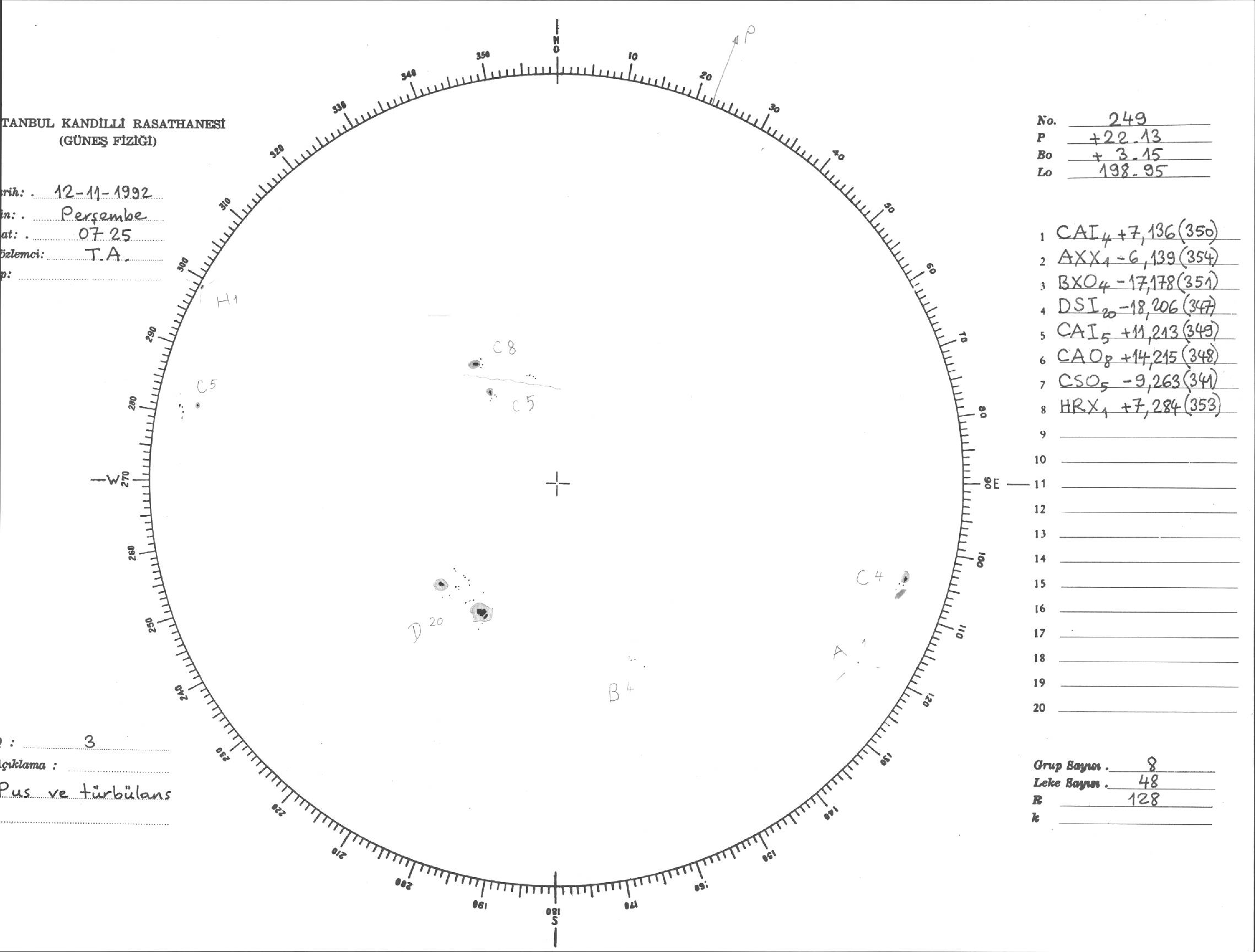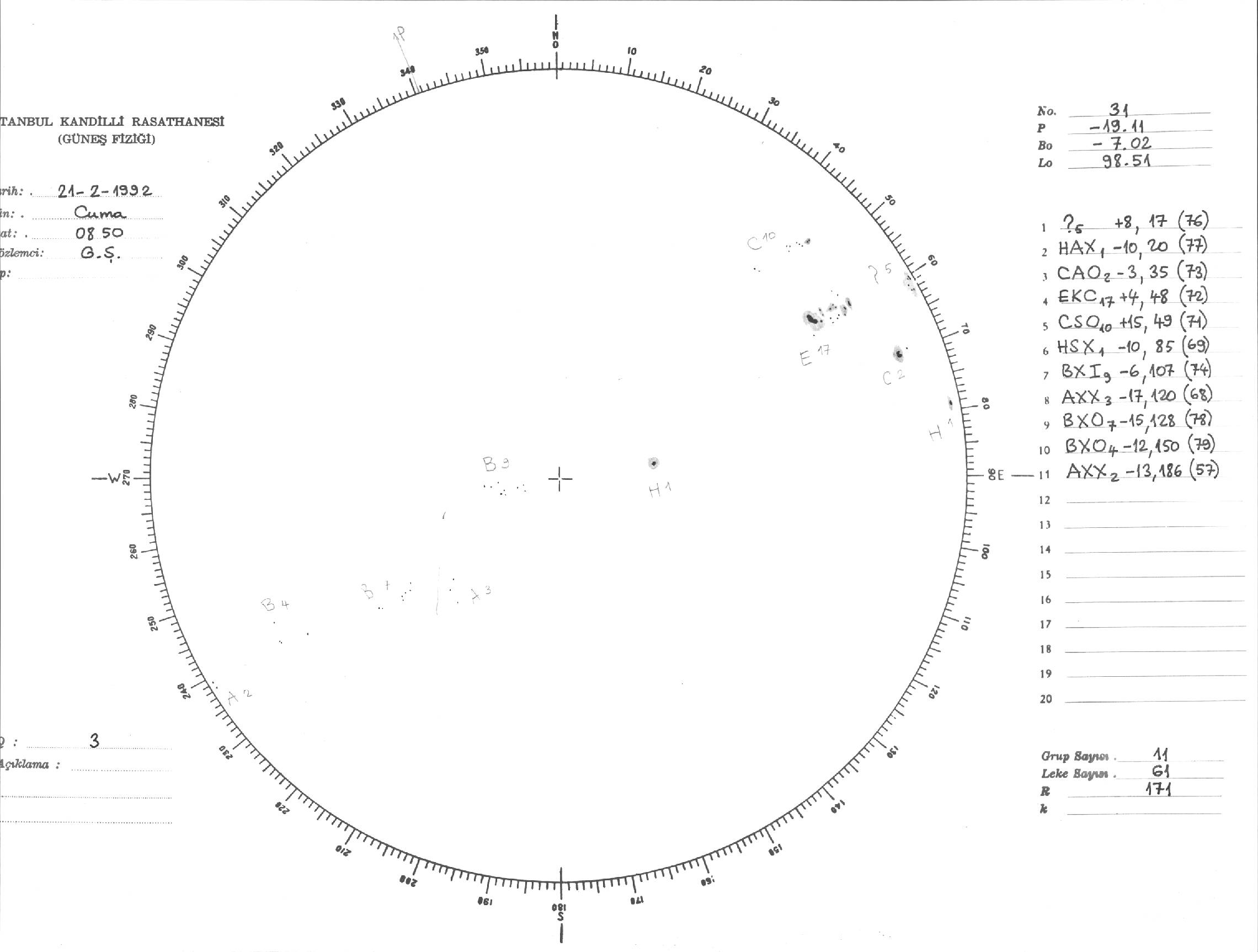 Güneş Lekesi Çizimleri / Kandilli Sunspot Drawings