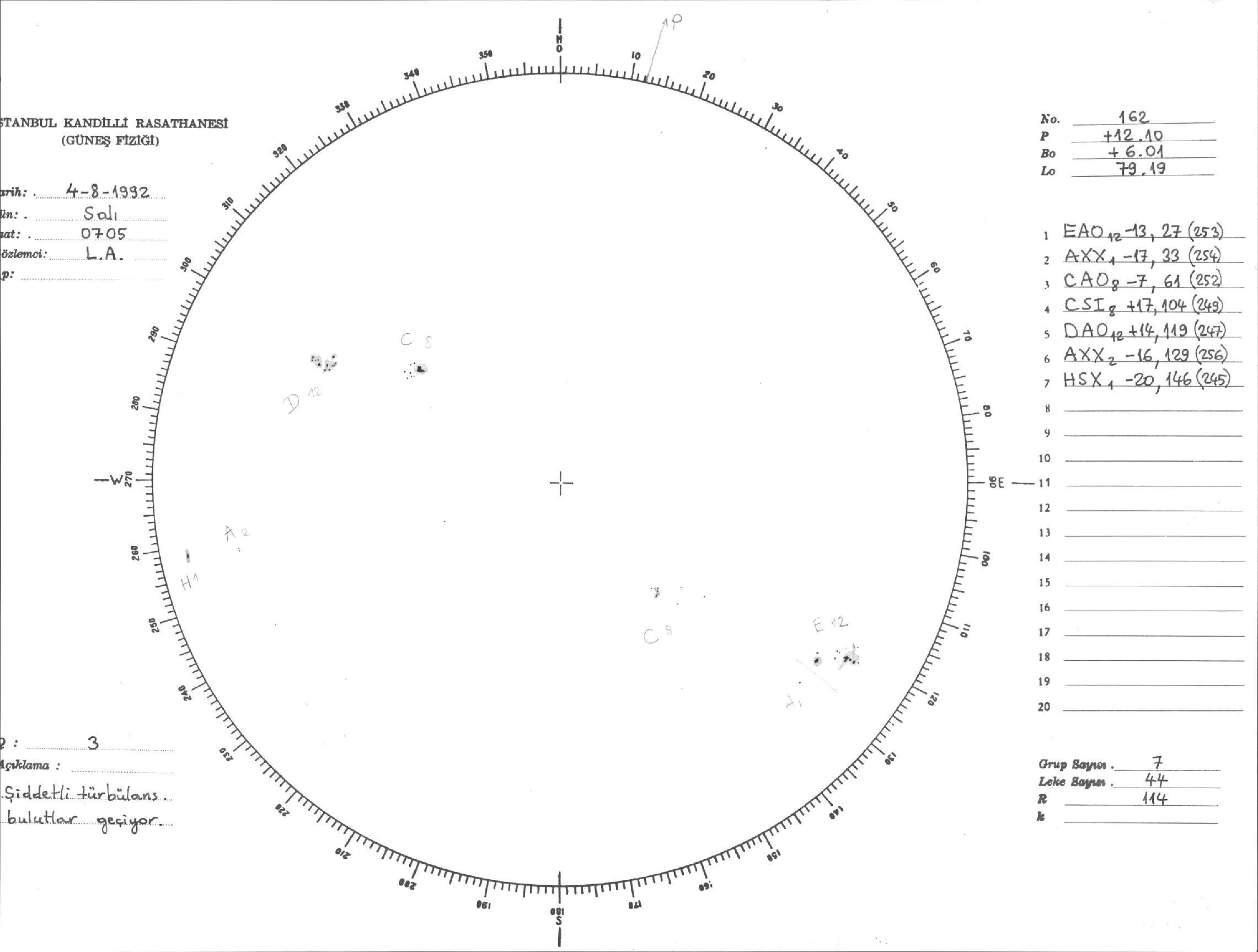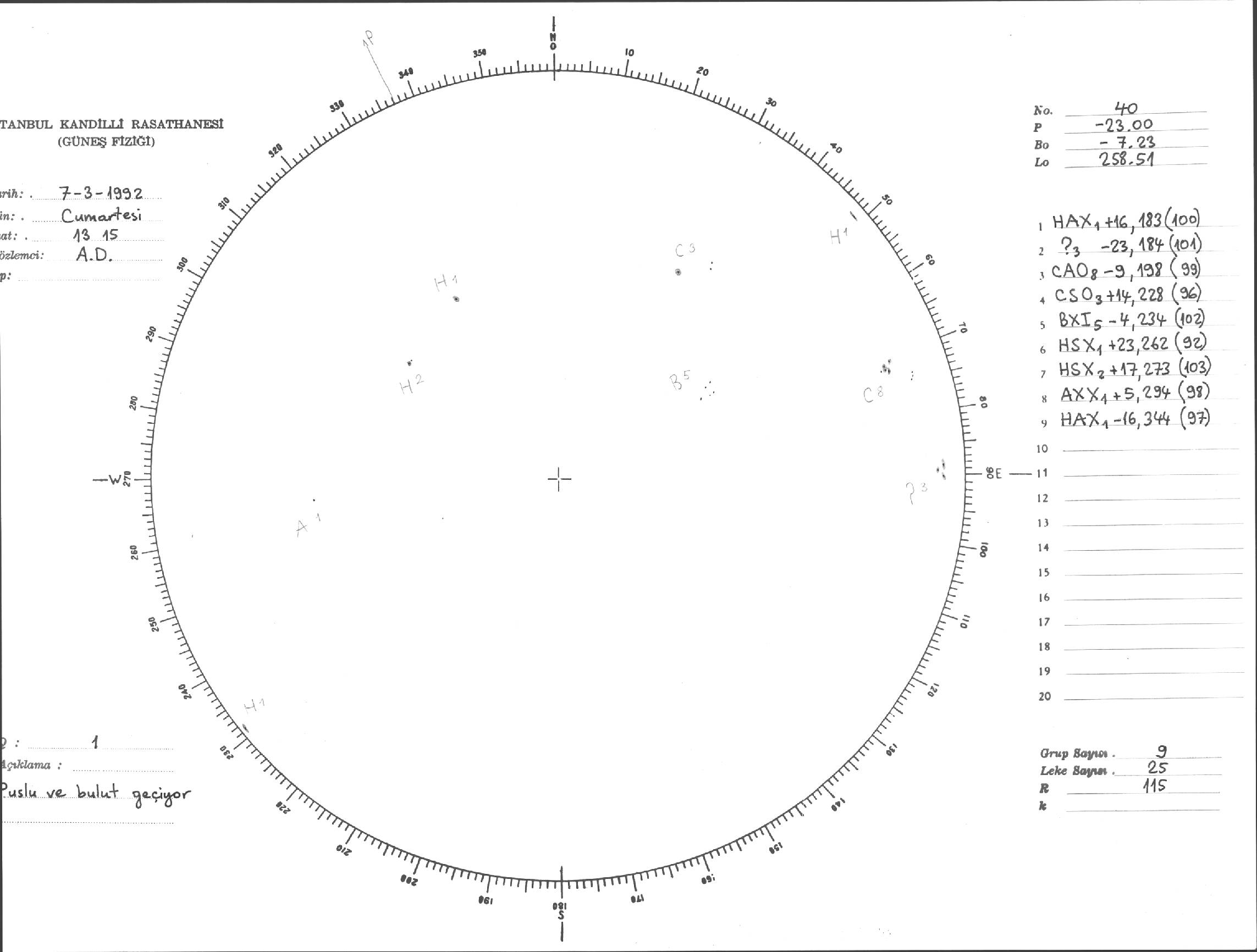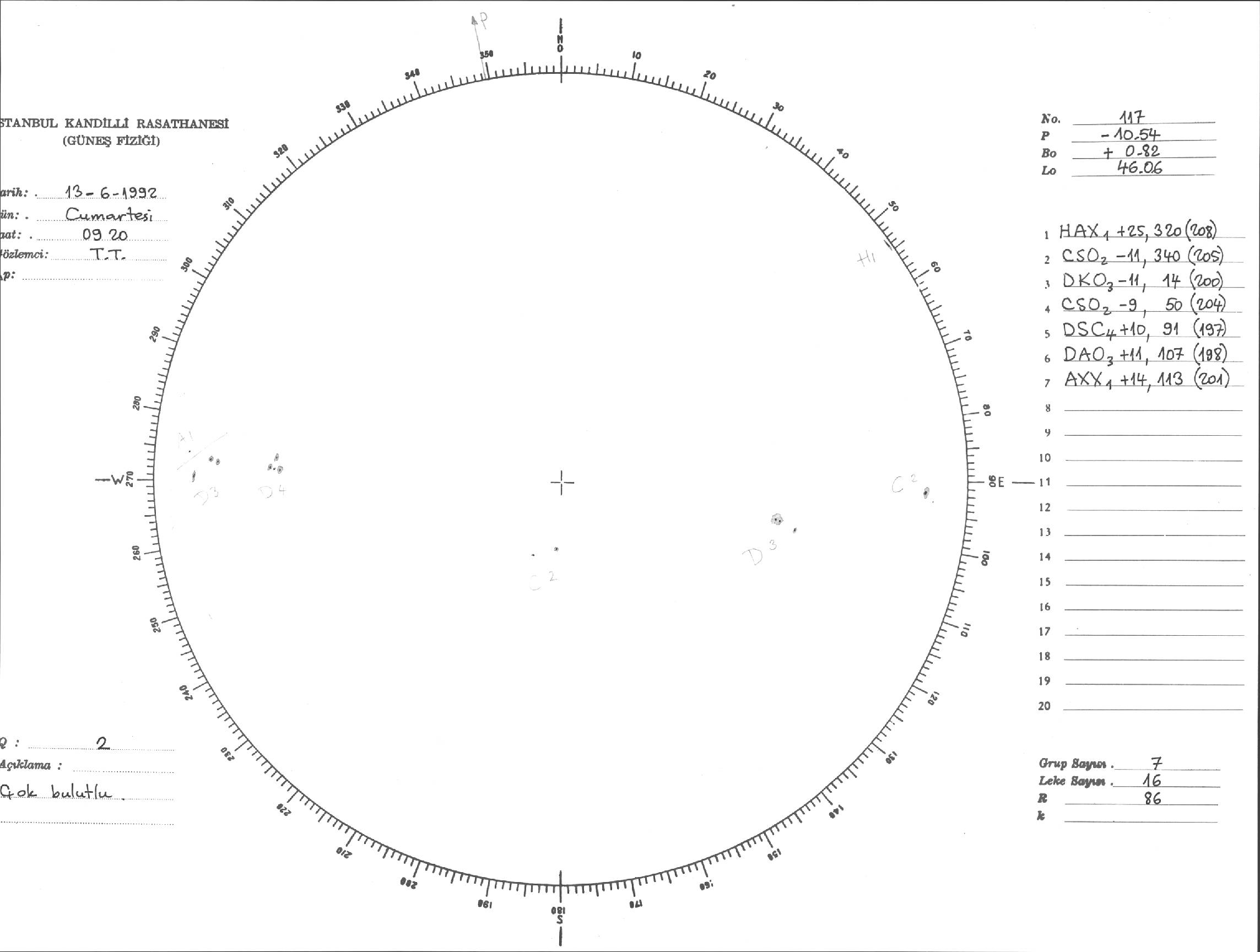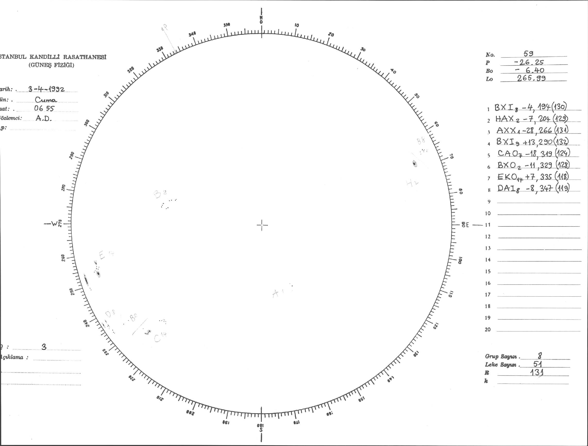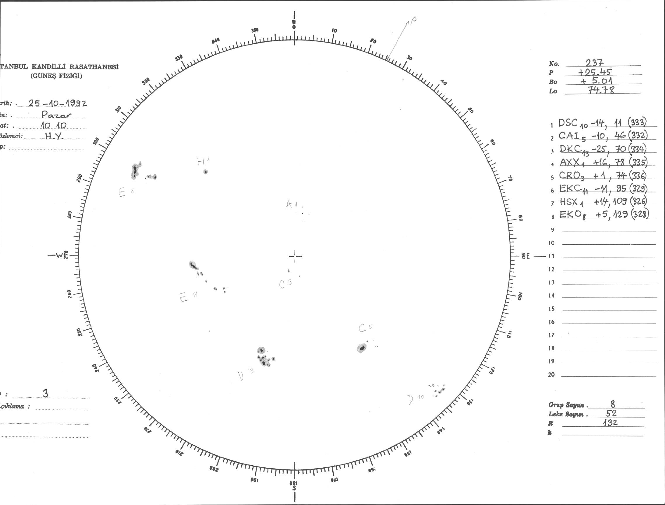 Güneş Lekesi Çizimleri / Kandilli Sunspot Drawings
