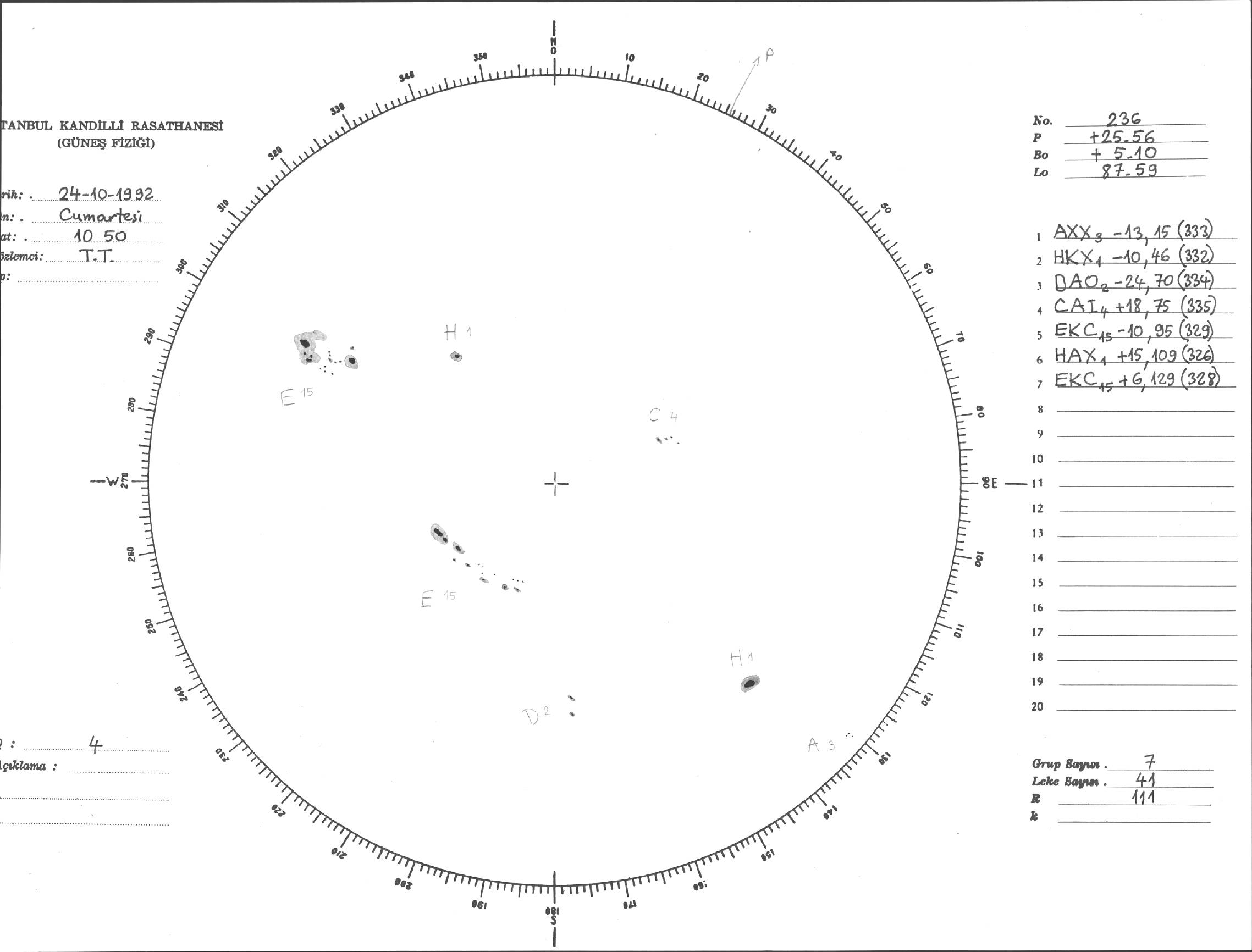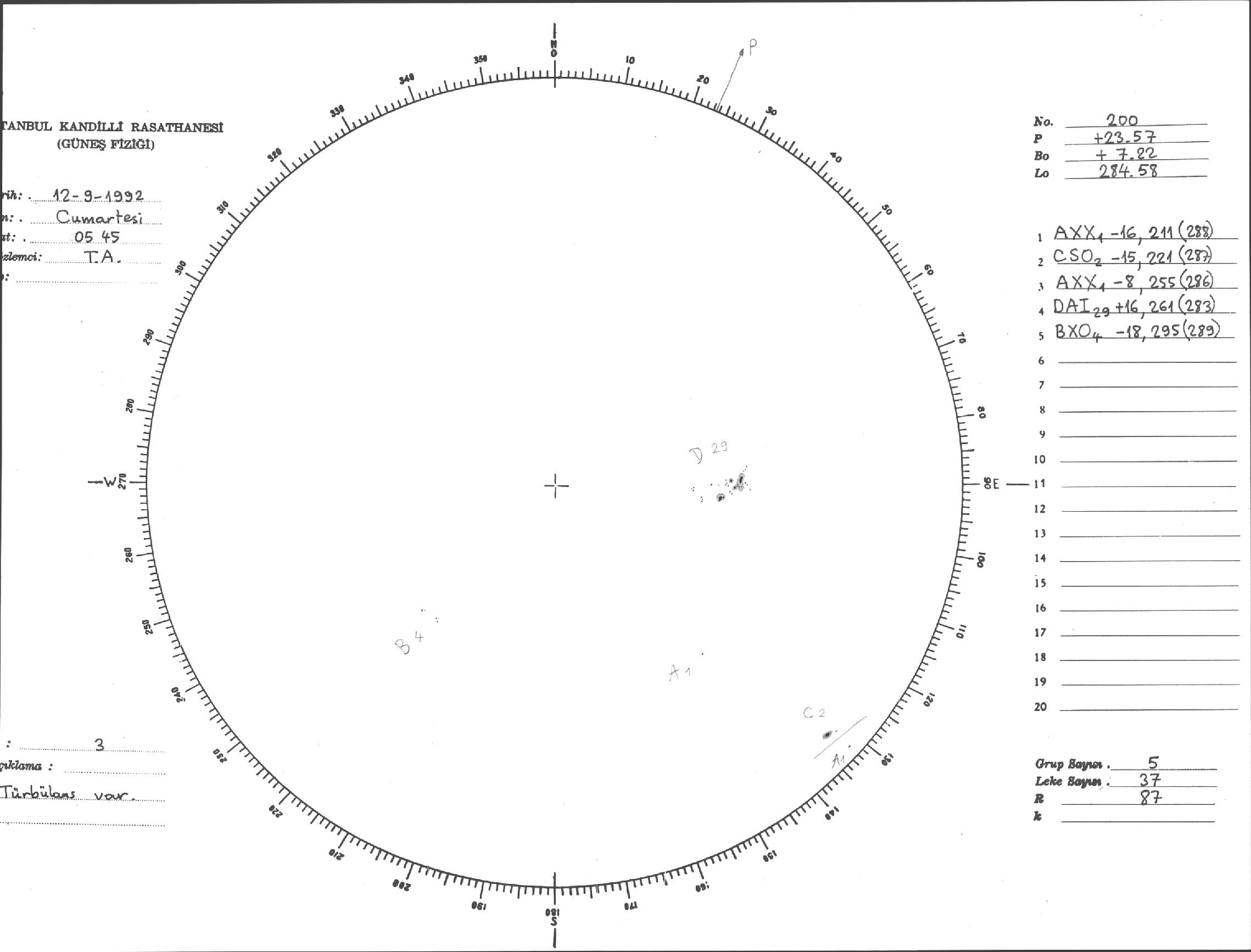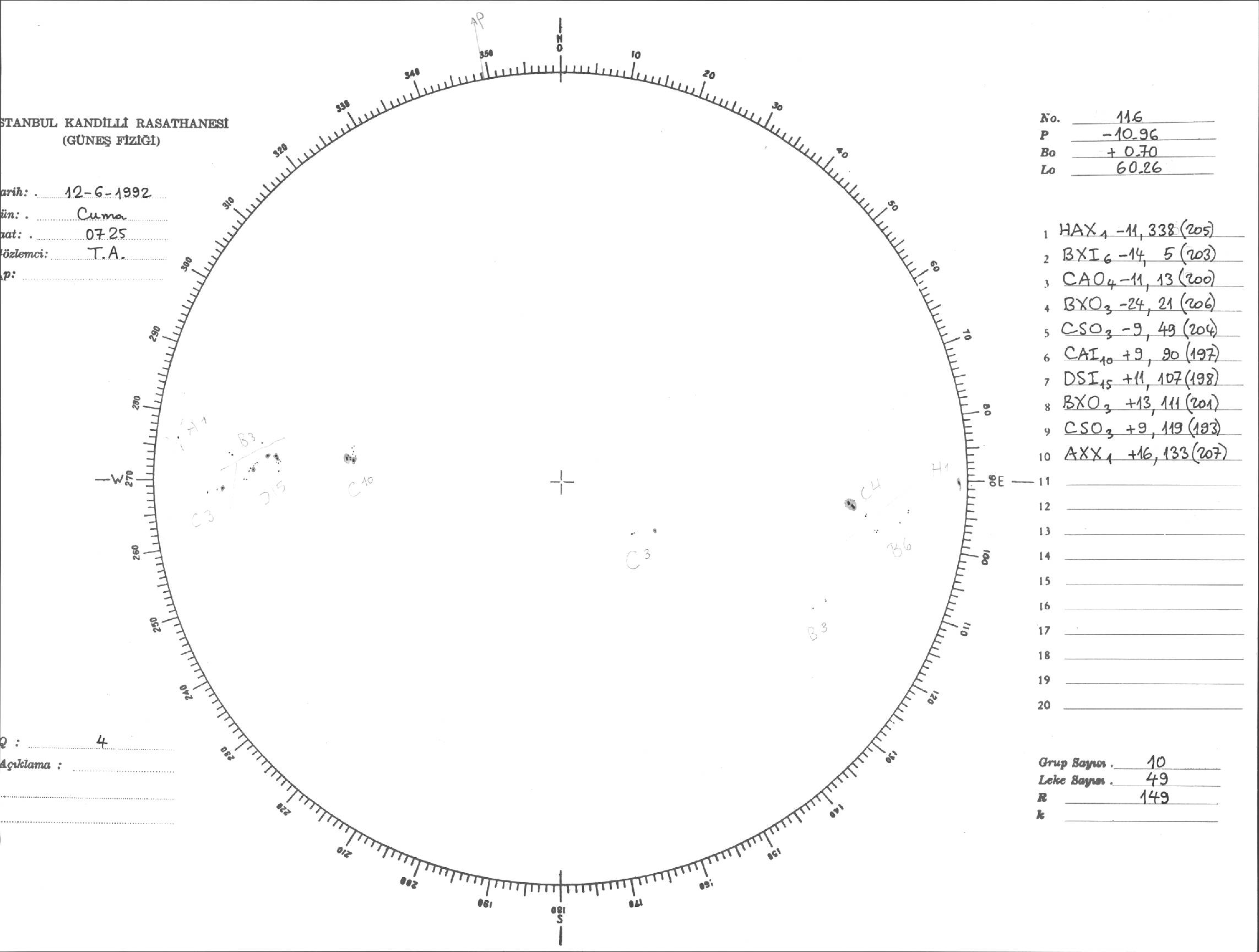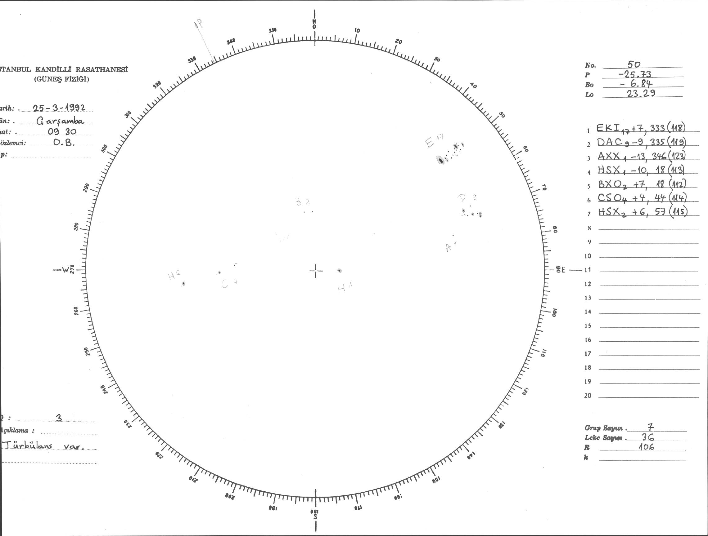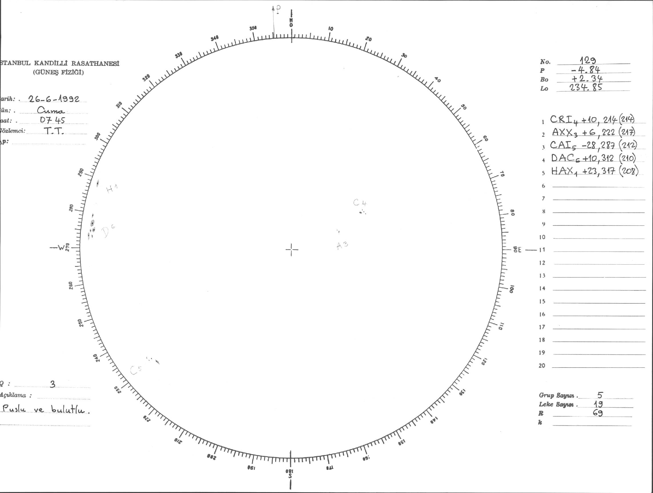 Güneş Lekesi Çizimleri / Kandilli Sunspot Drawings