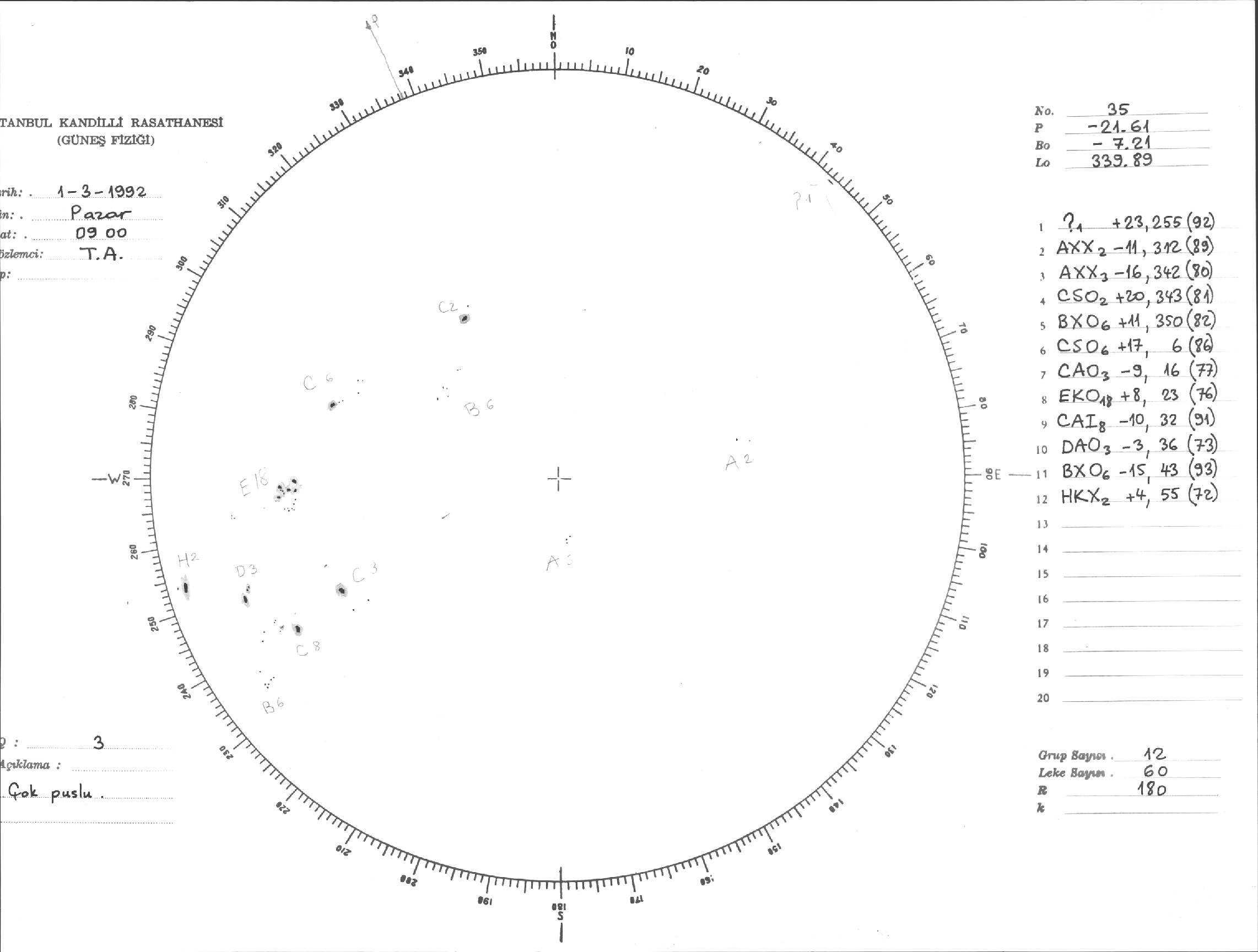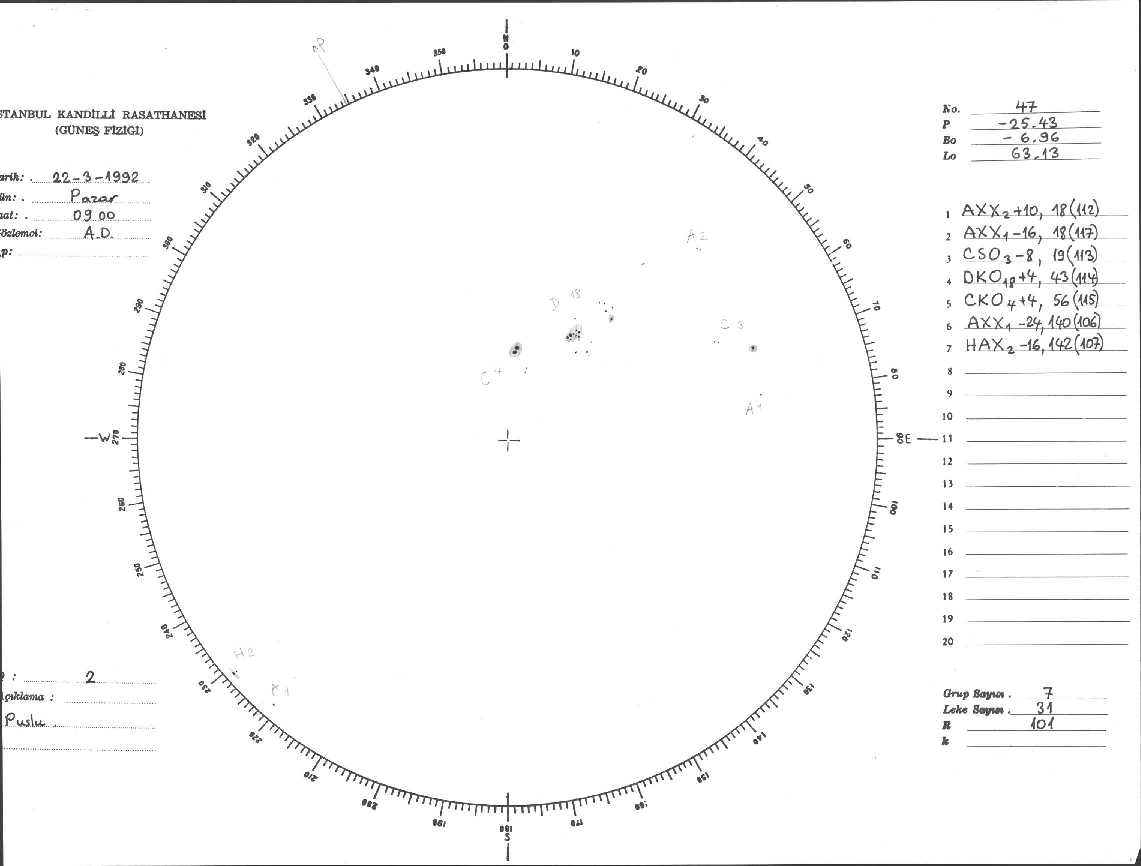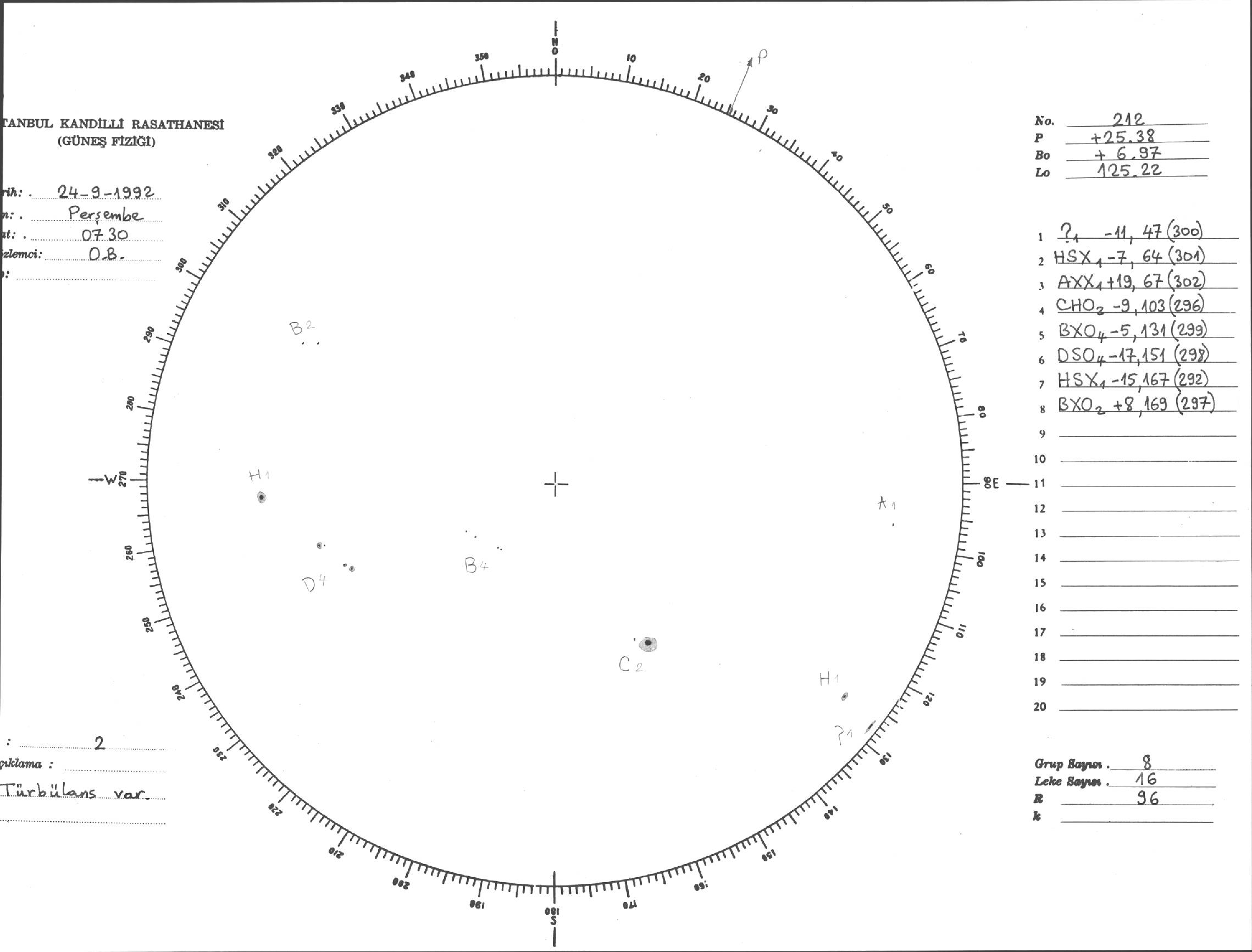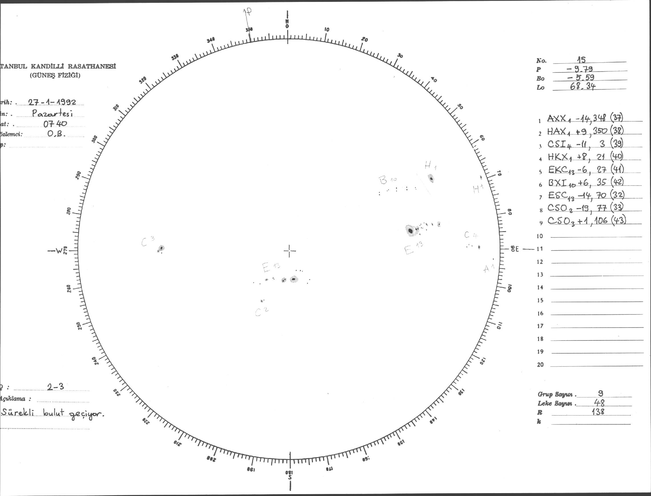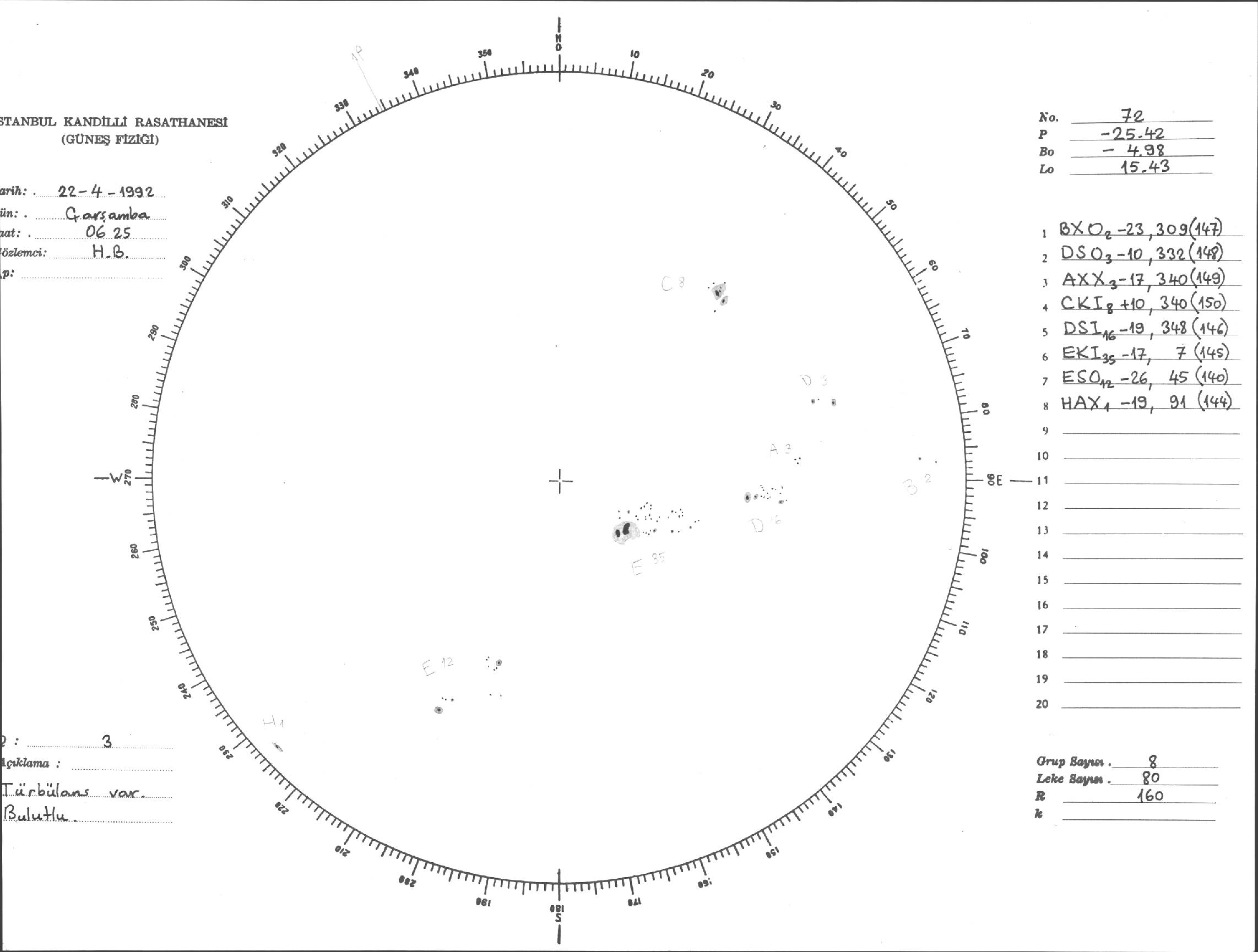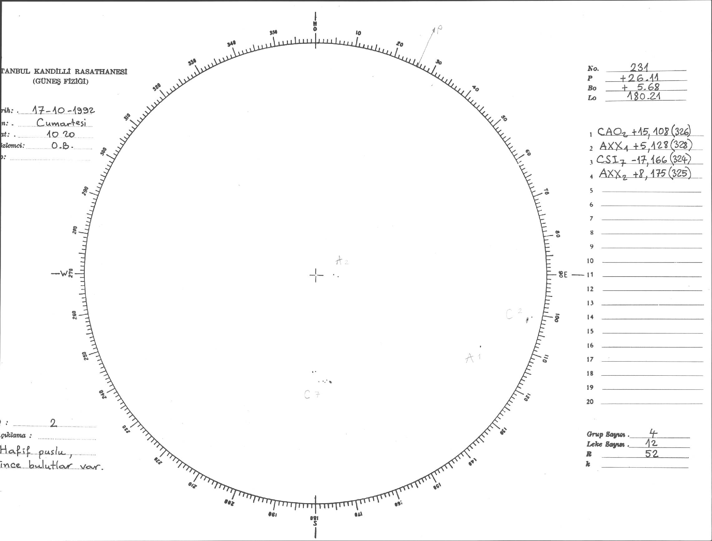 Güneş Lekesi Çizimleri / Kandilli Sunspot Drawings