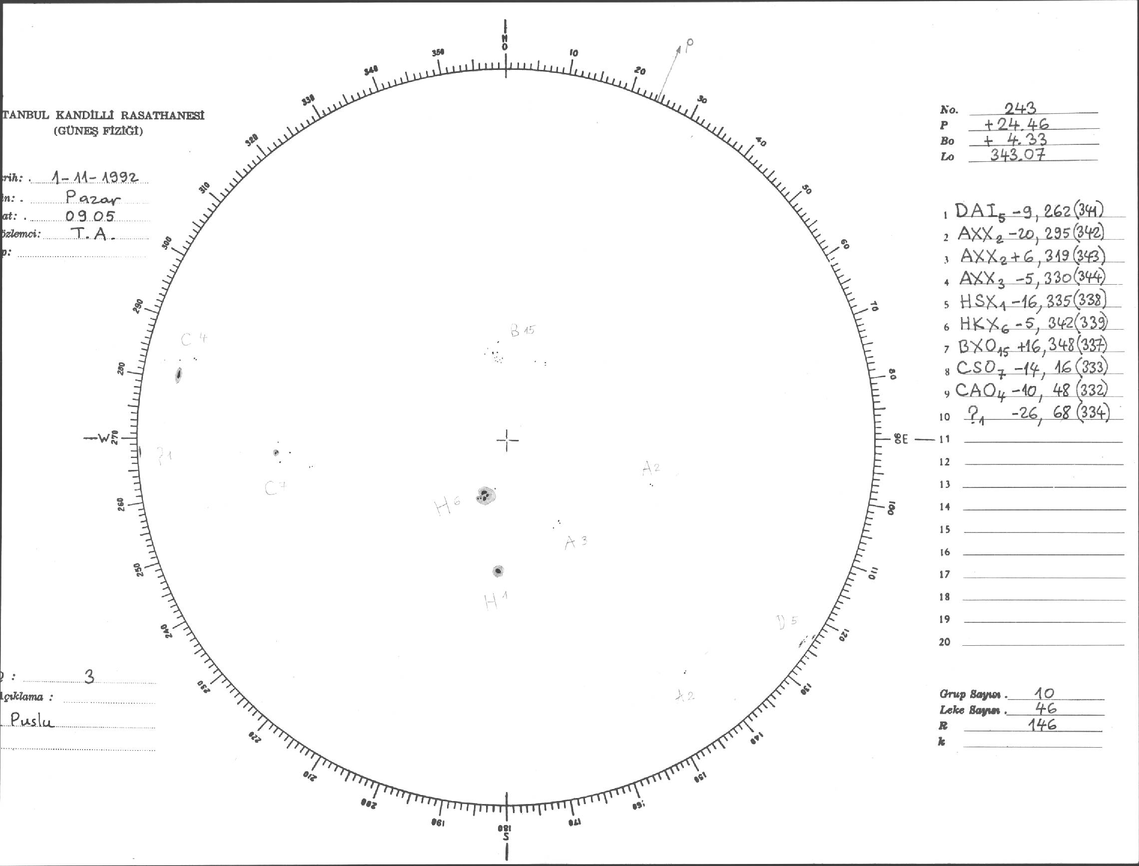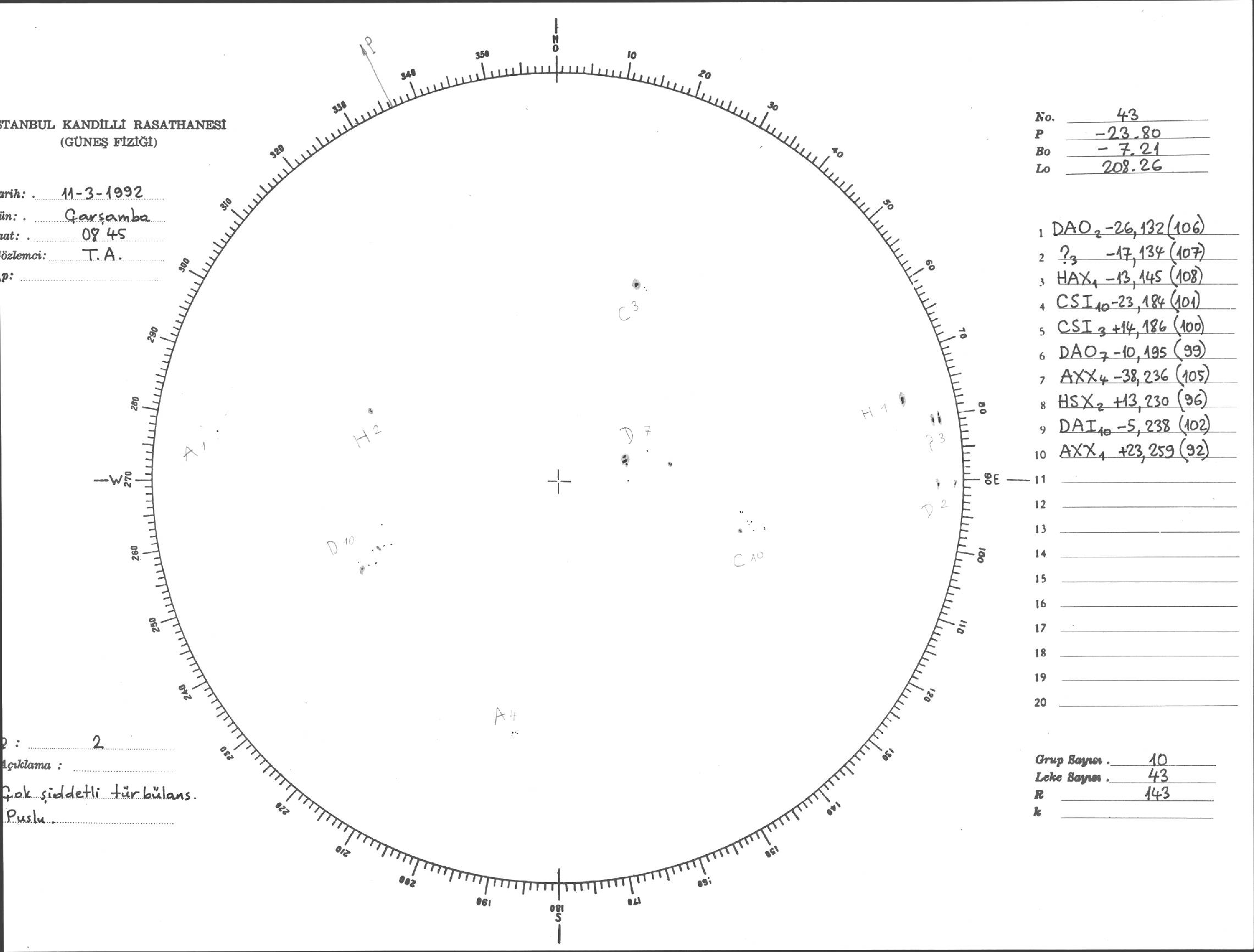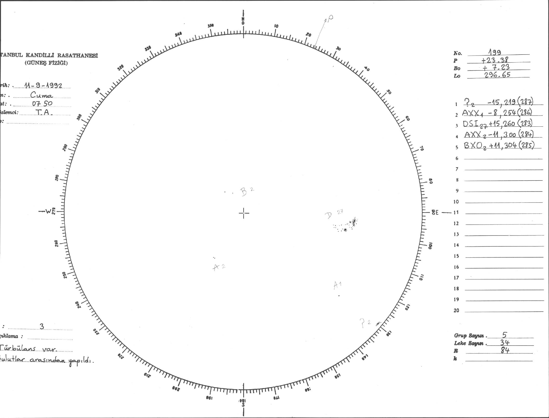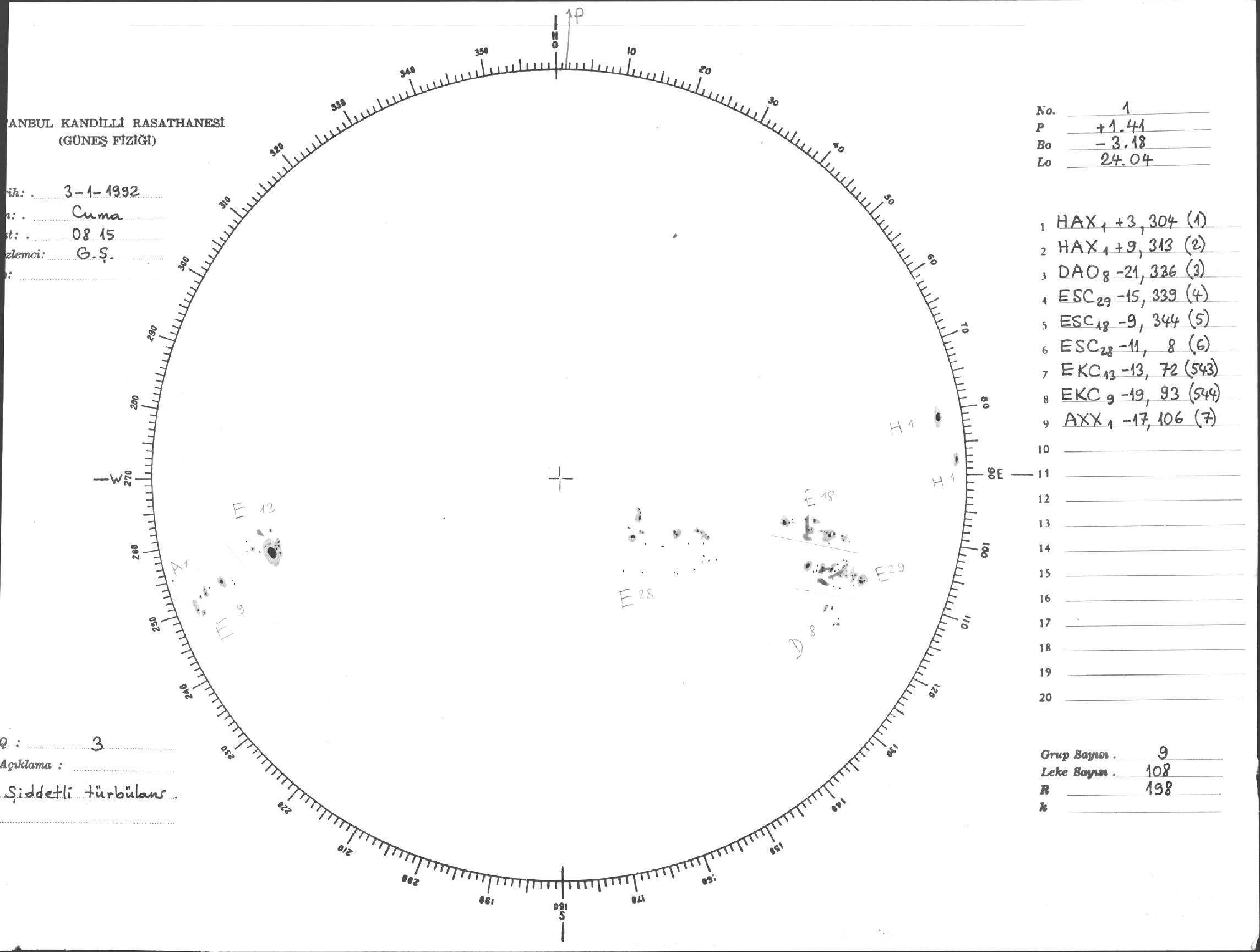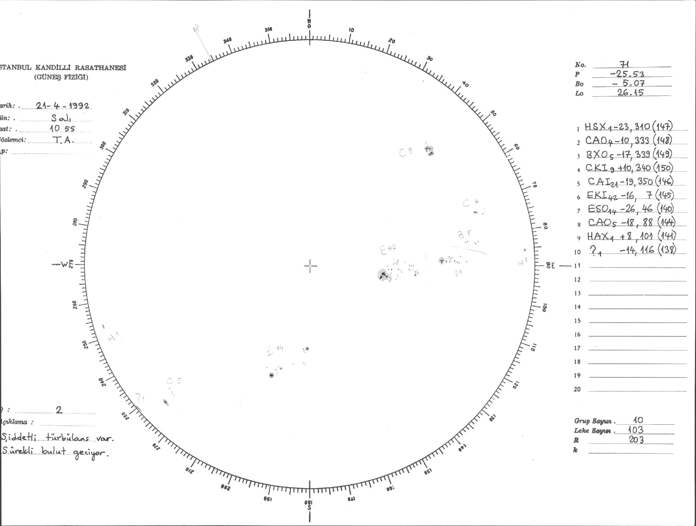 Güneş Lekesi Çizimleri / Kandilli Sunspot Drawings