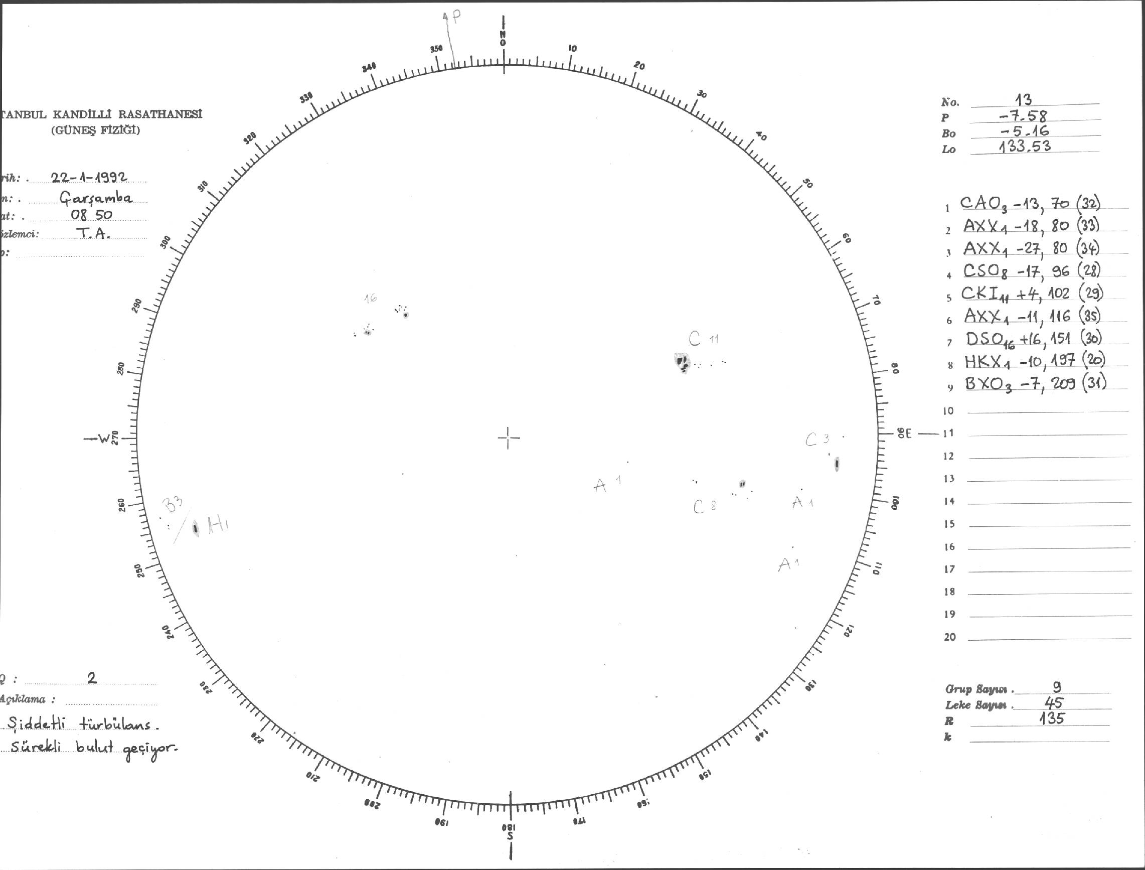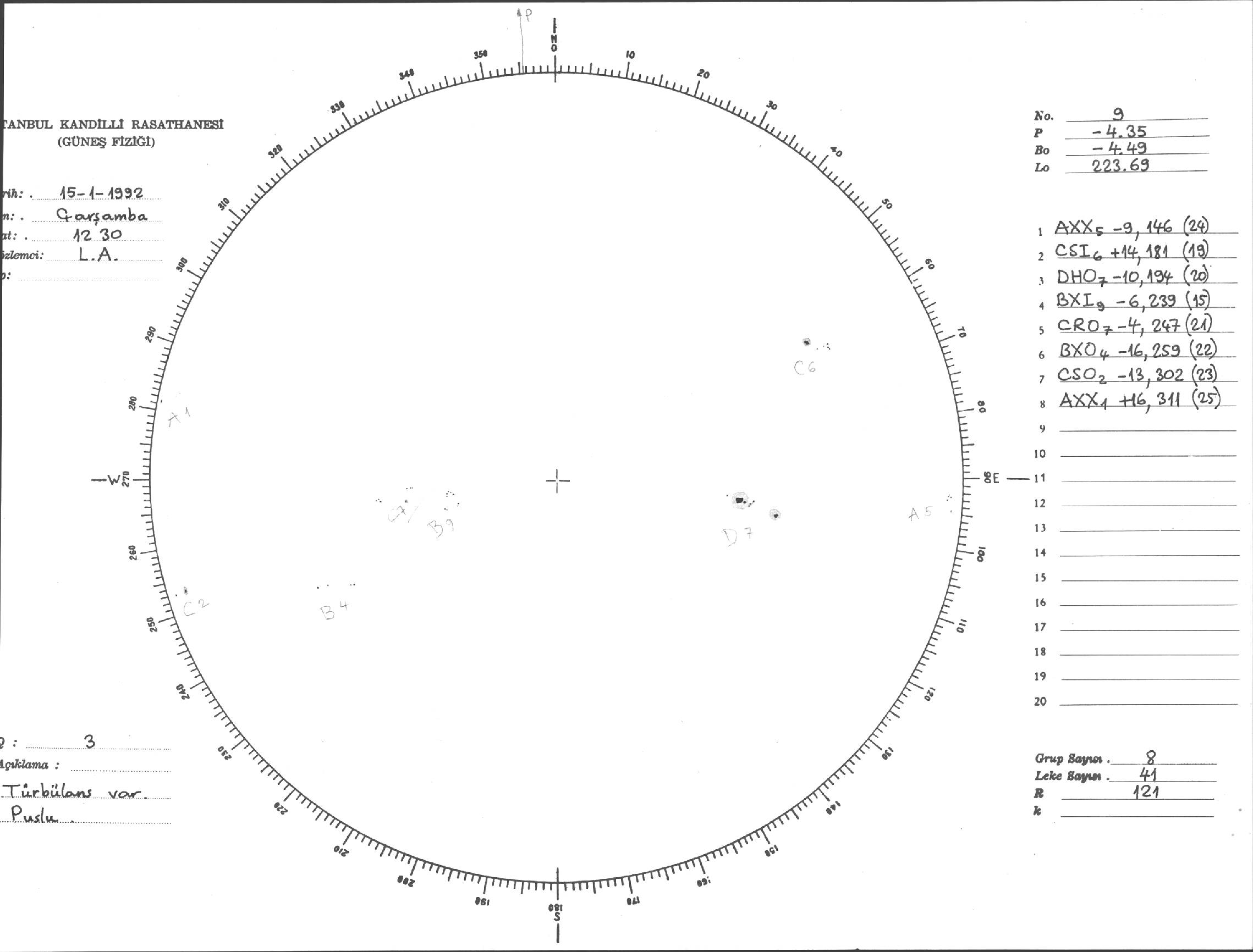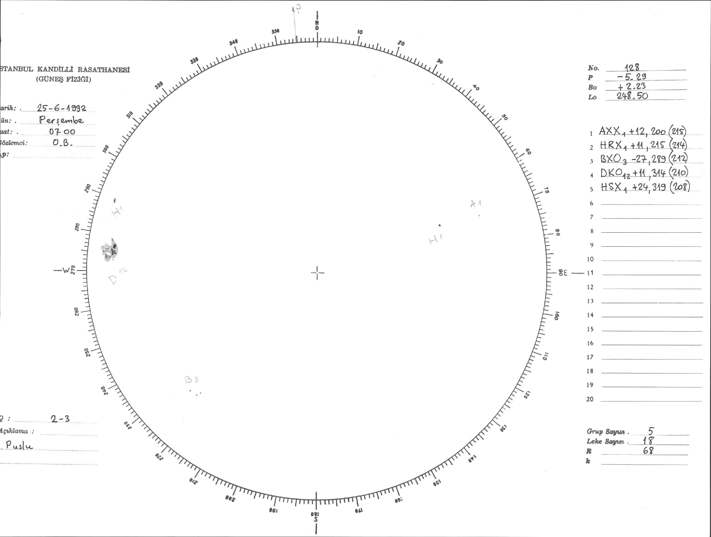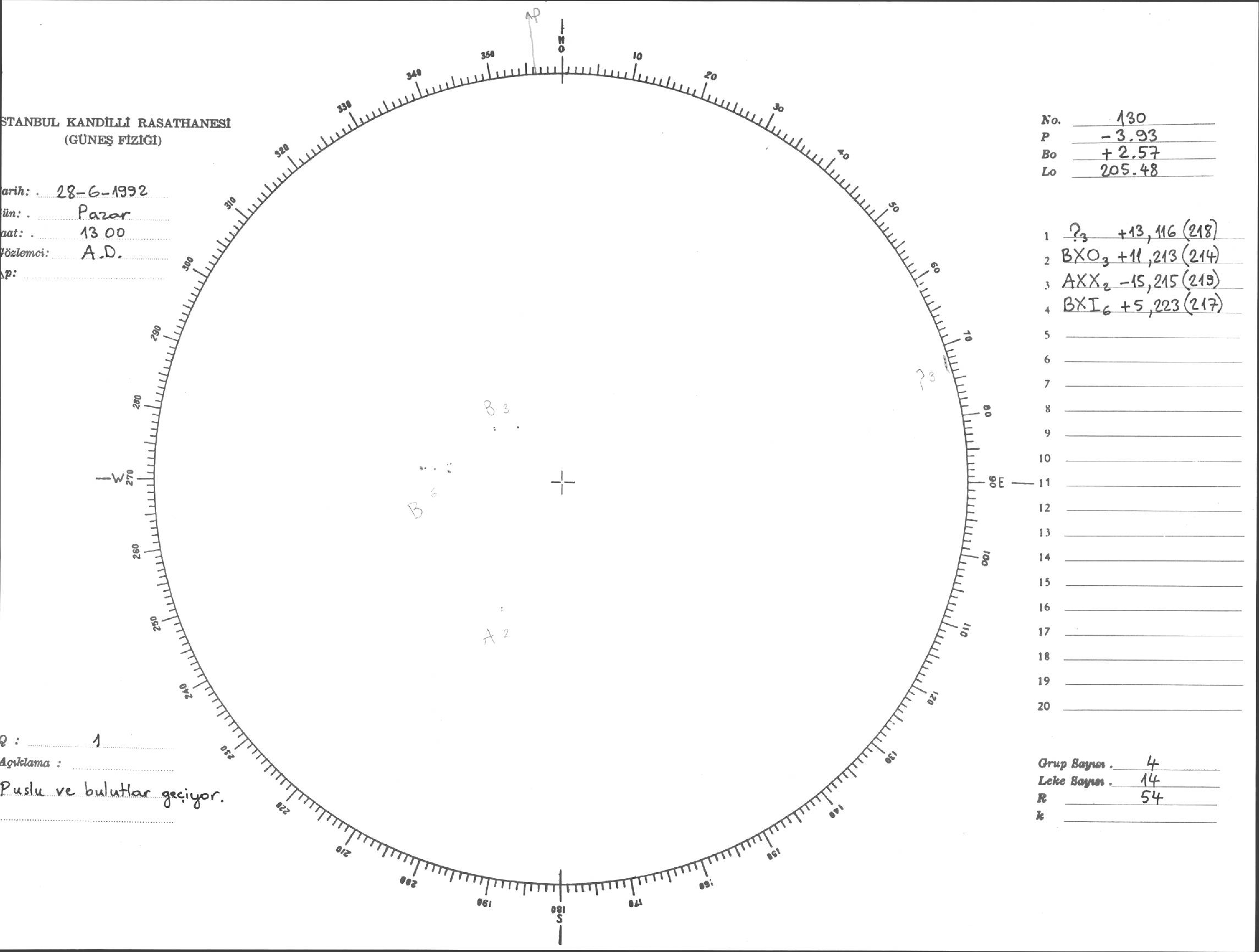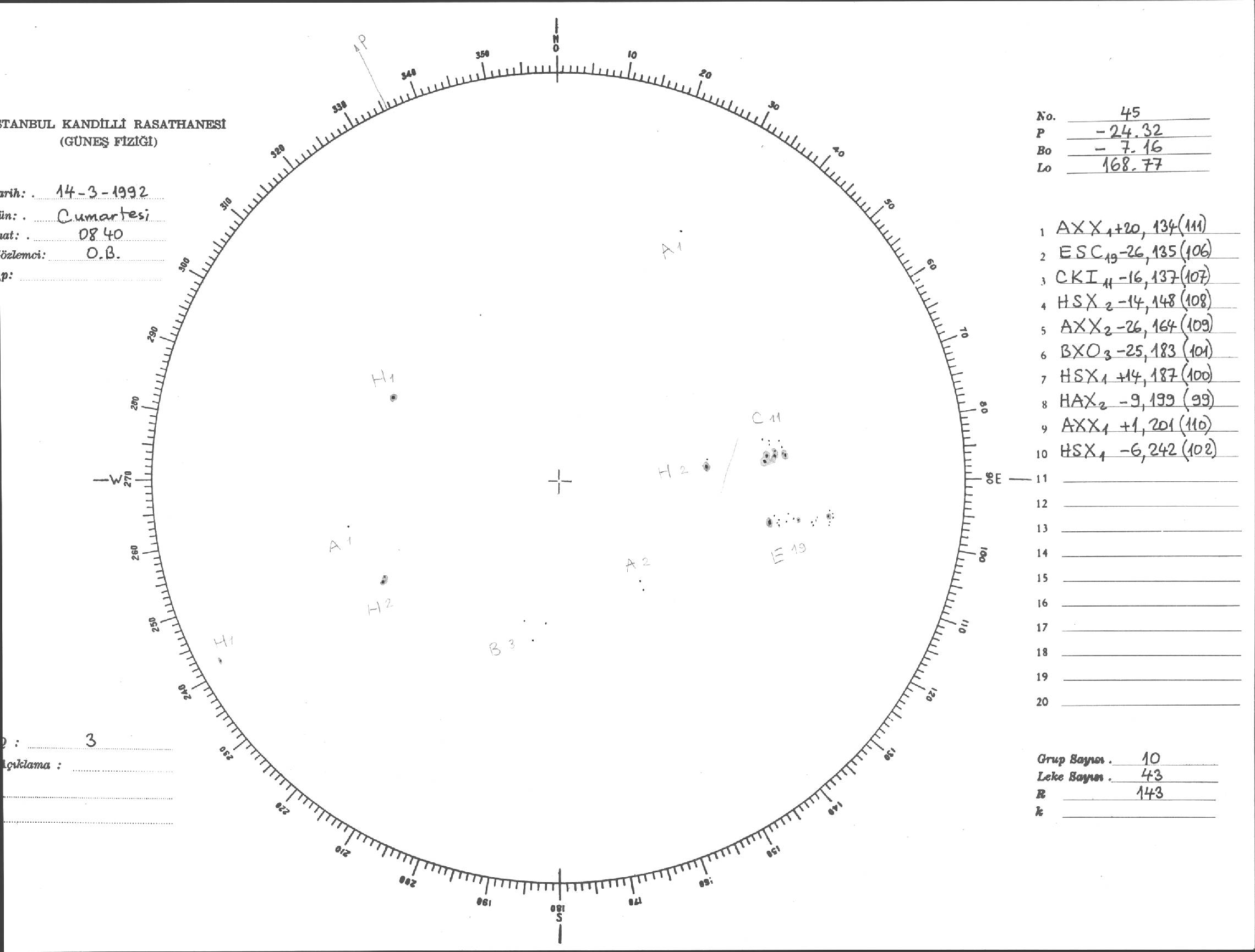 Güneş Lekesi Çizimleri / Kandilli Sunspot Drawings