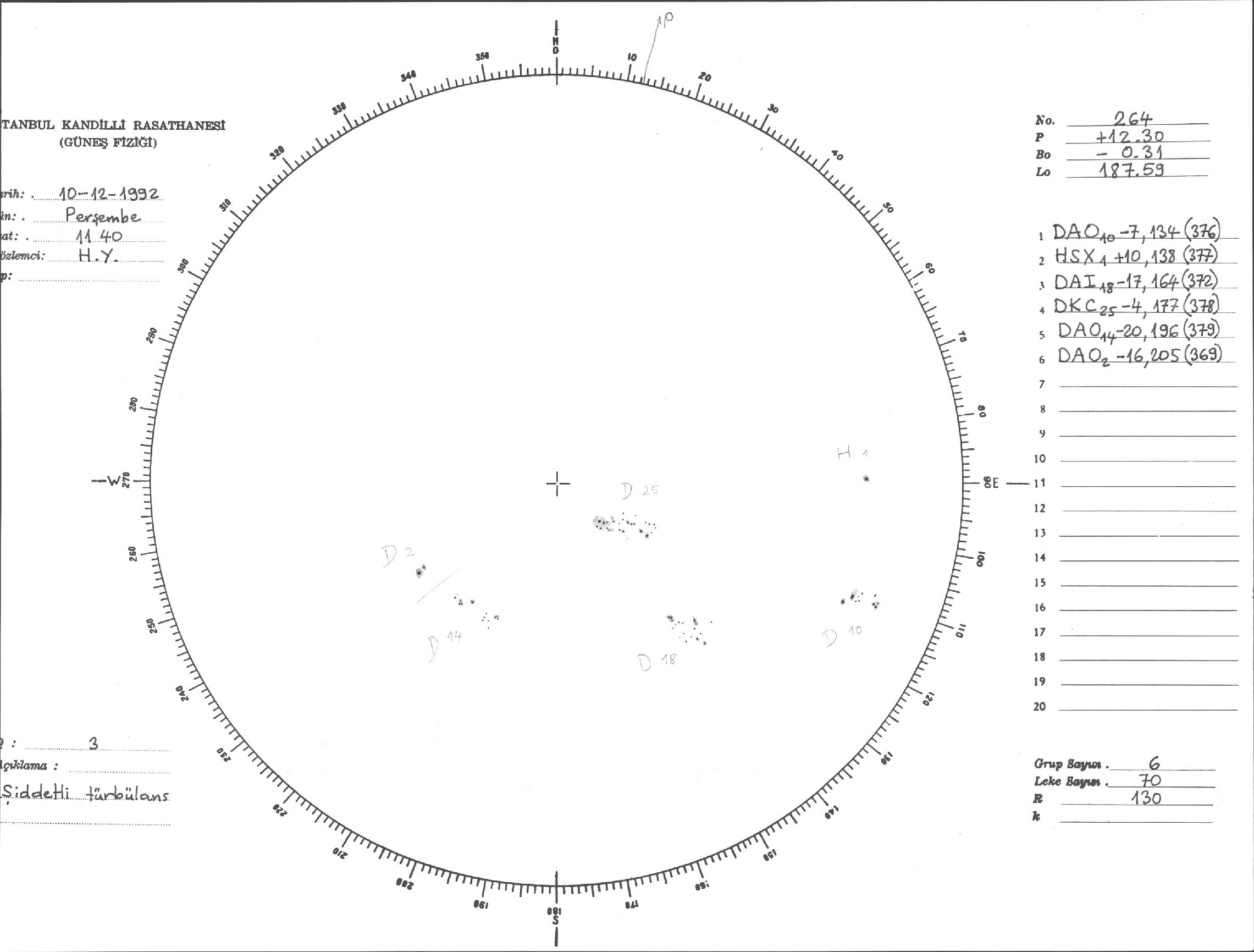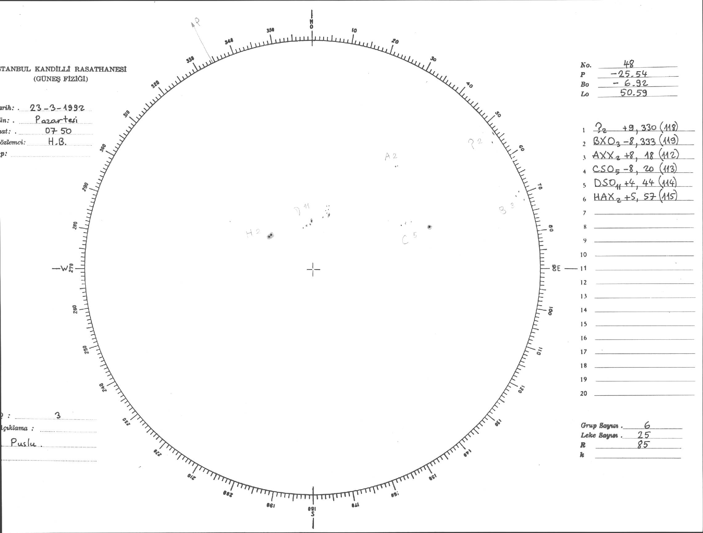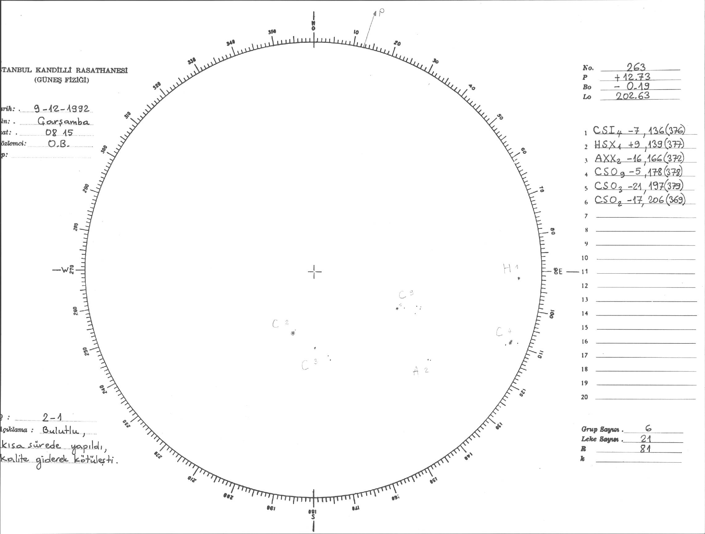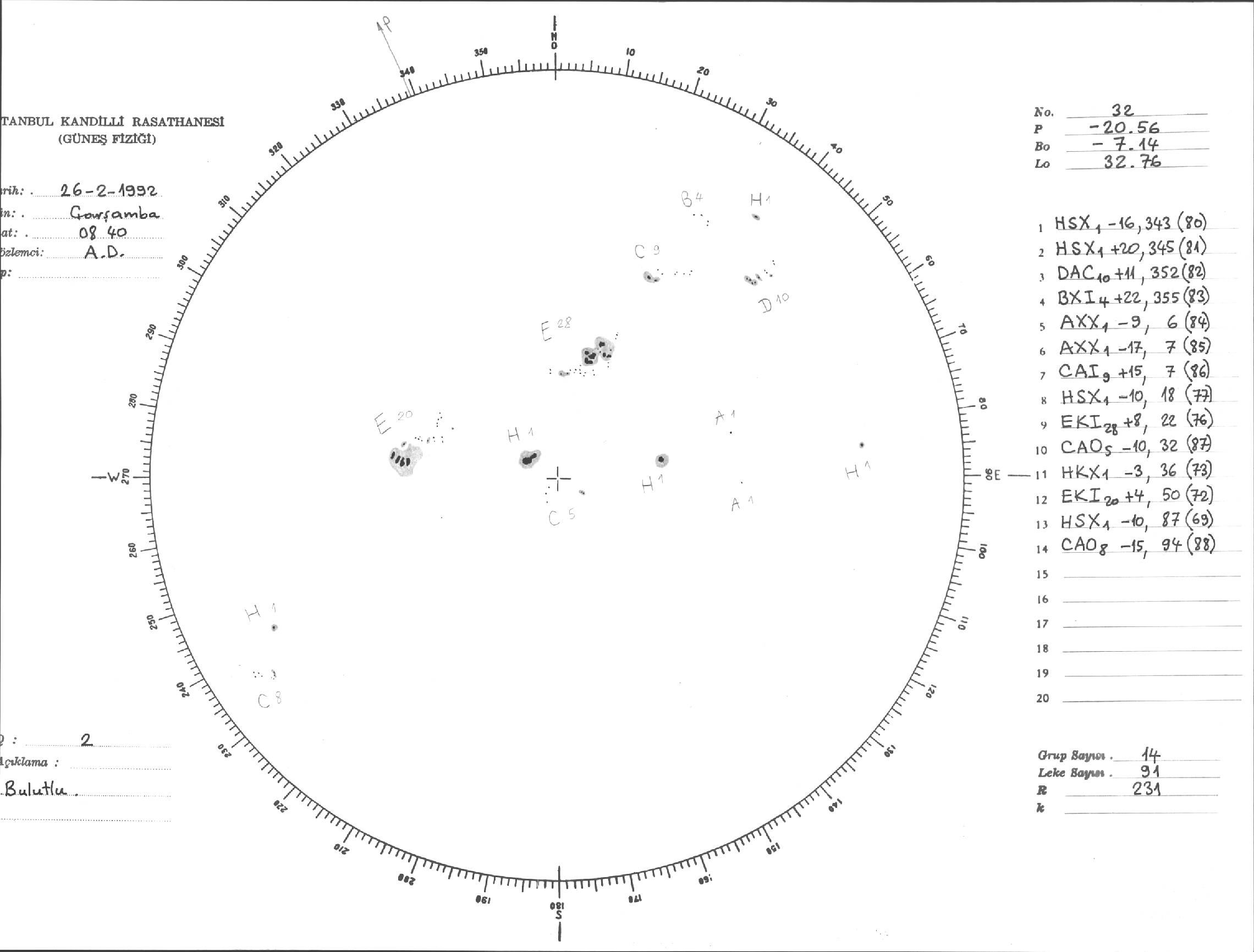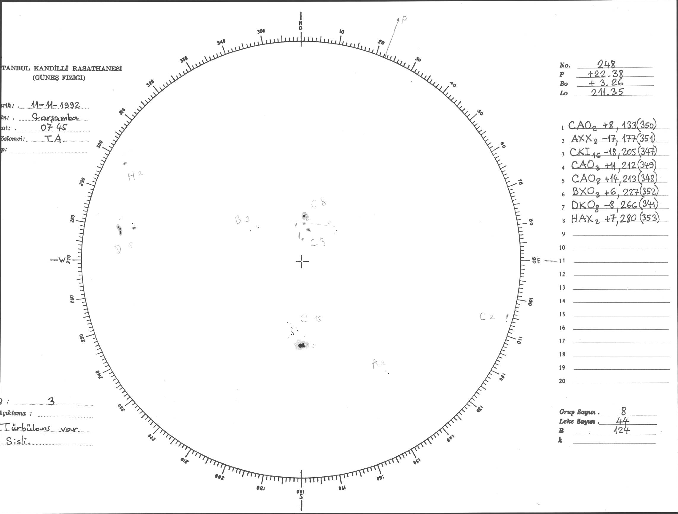Güneş Lekesi Çizimleri / Kandilli Sunspot Drawings