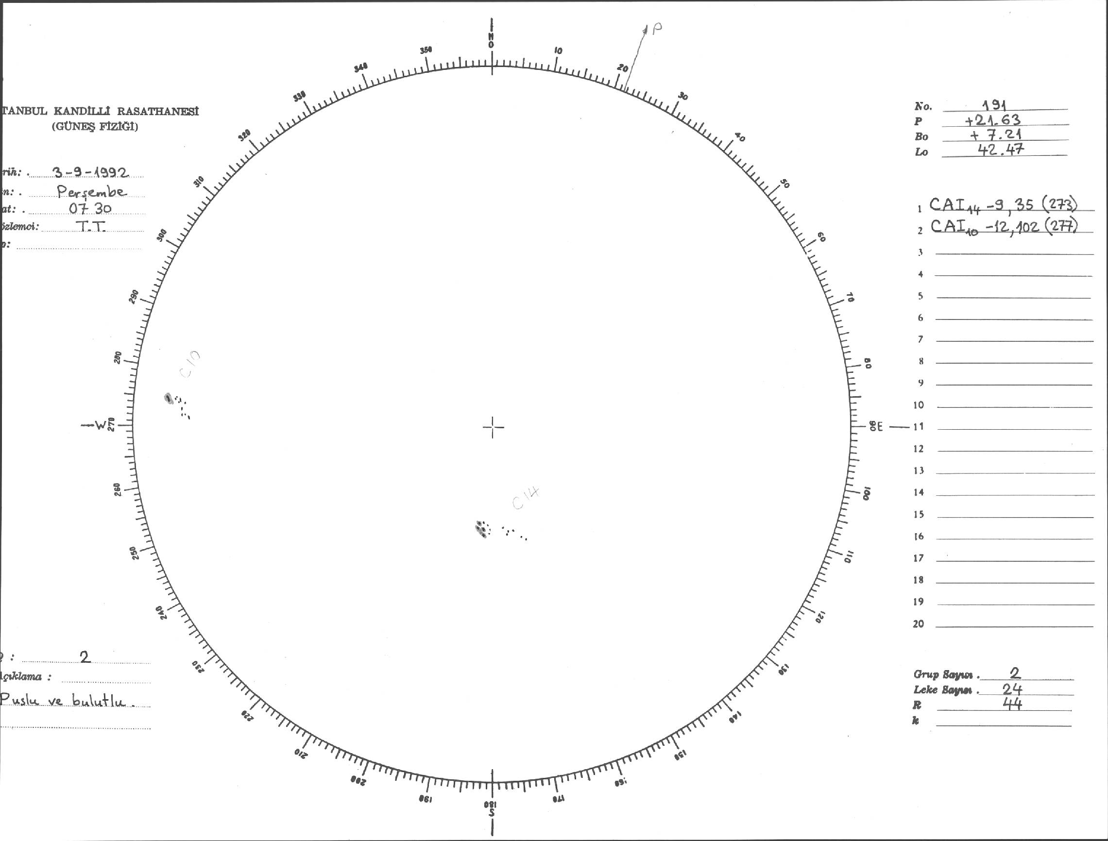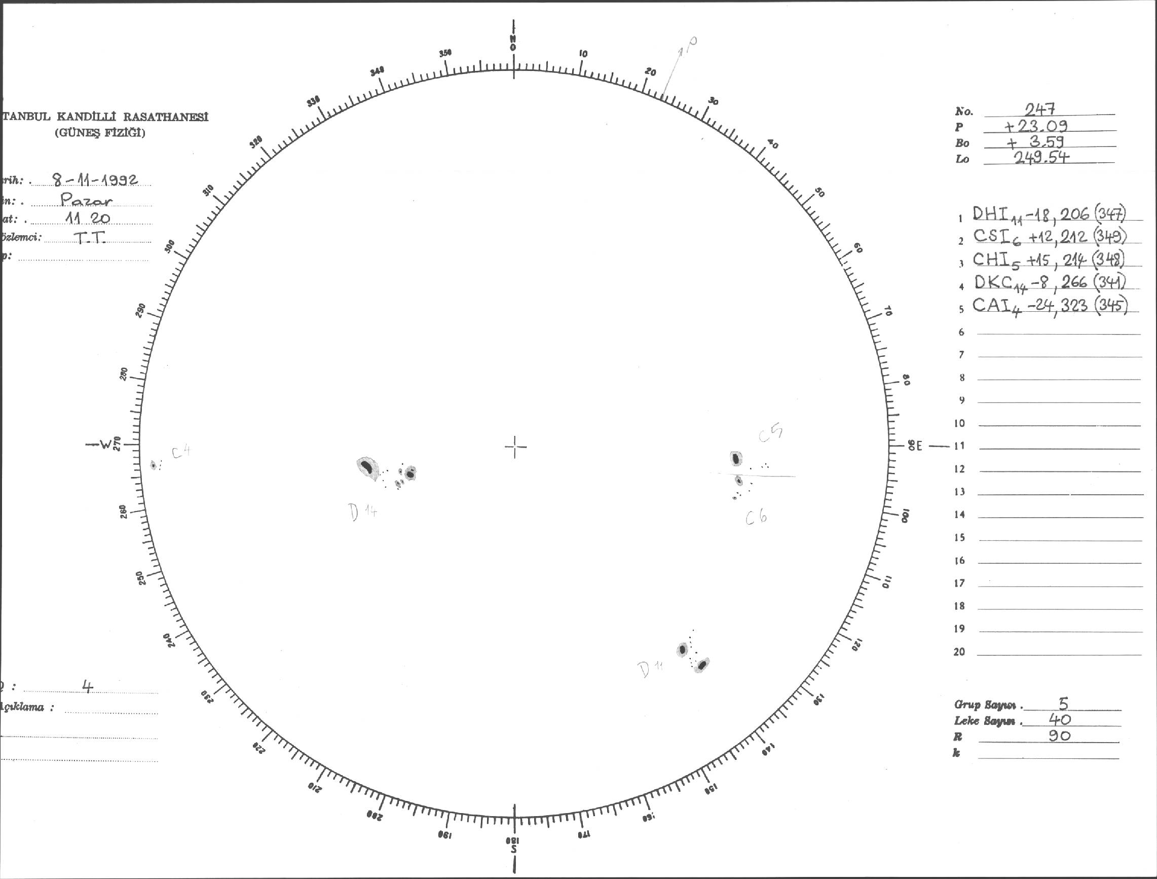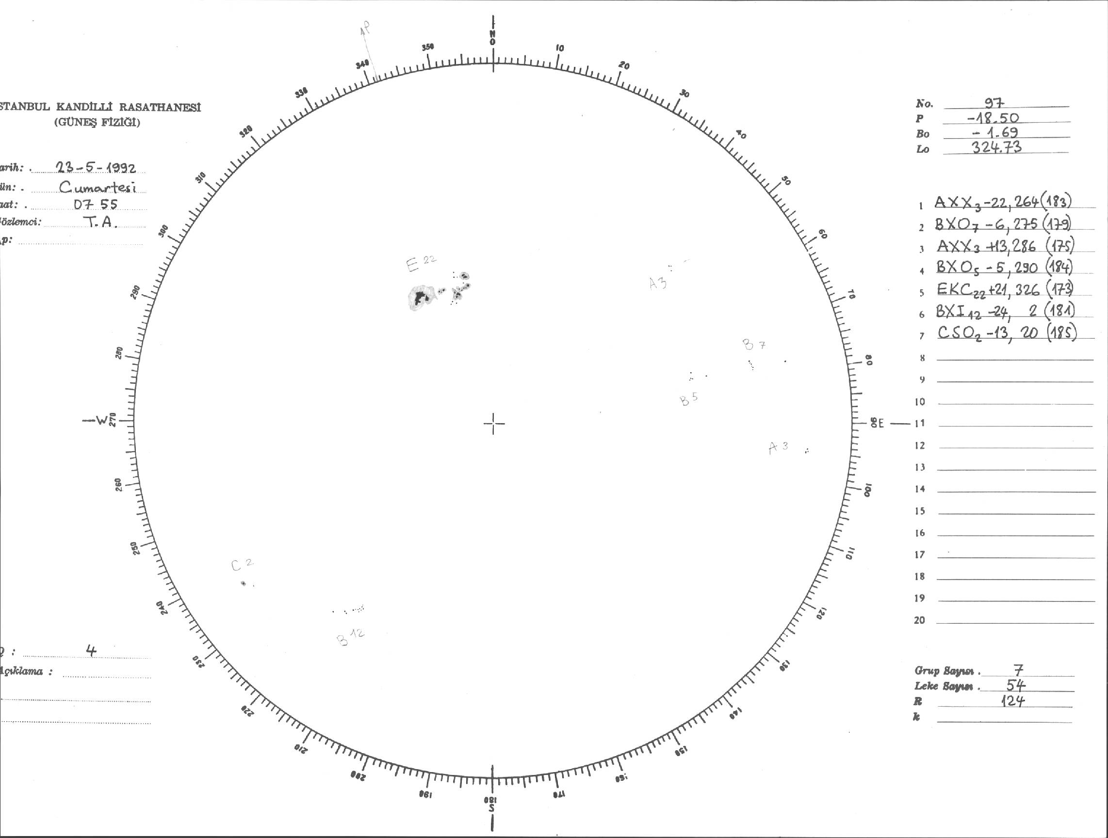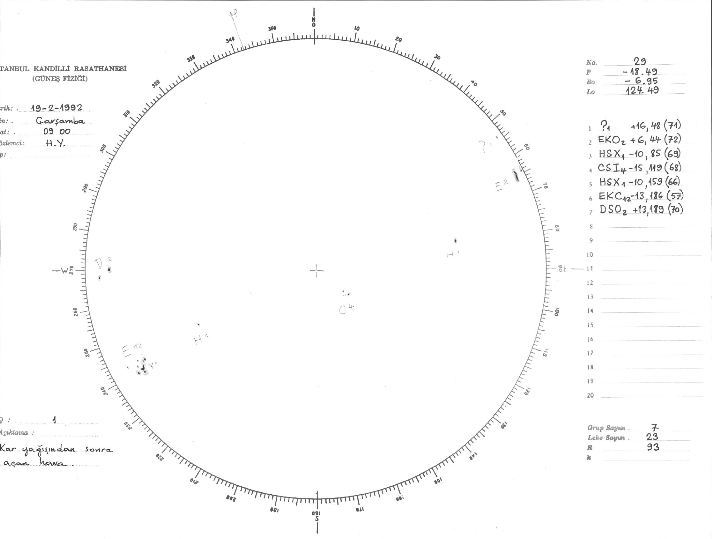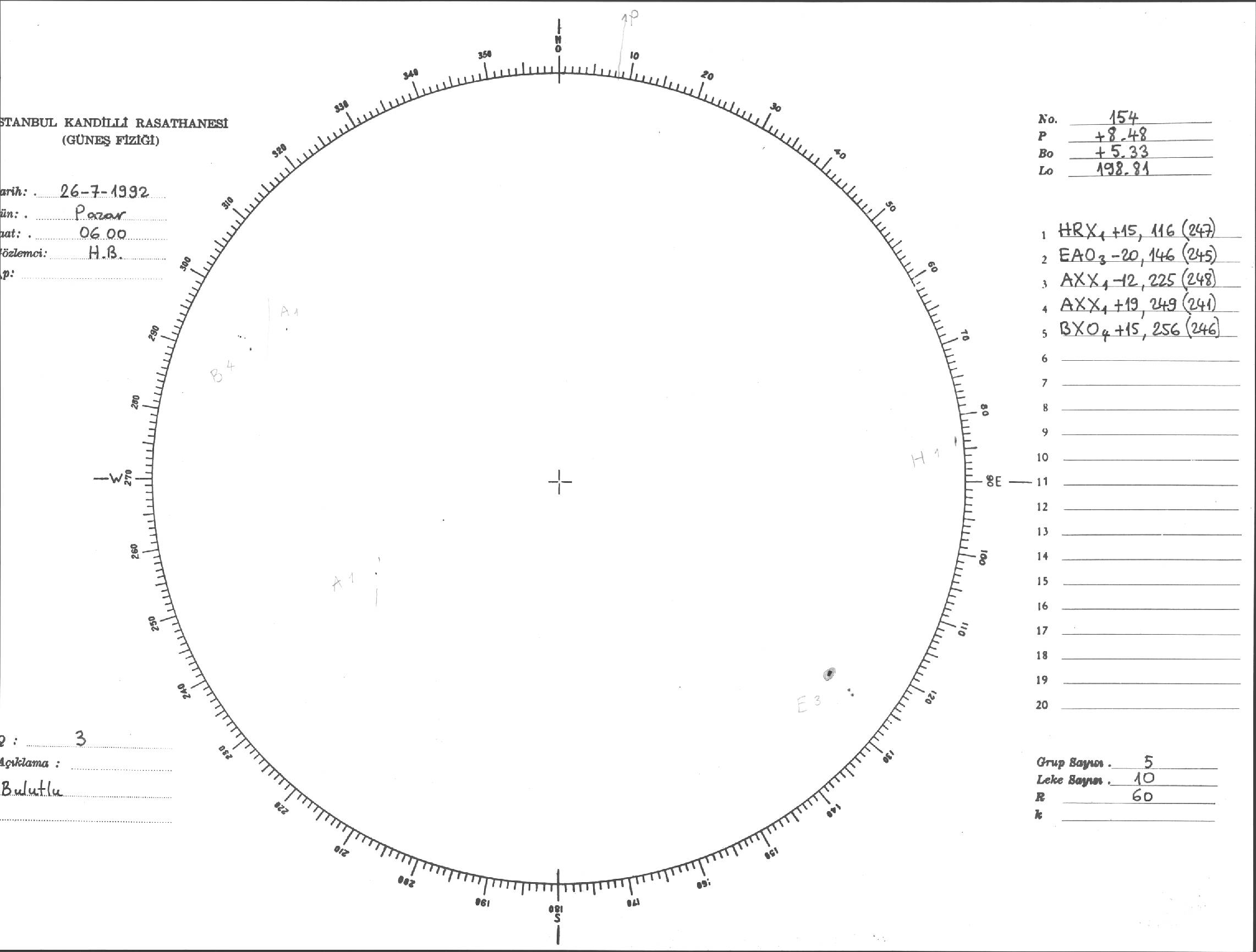 Güneş Lekesi Çizimleri / Kandilli Sunspot Drawings