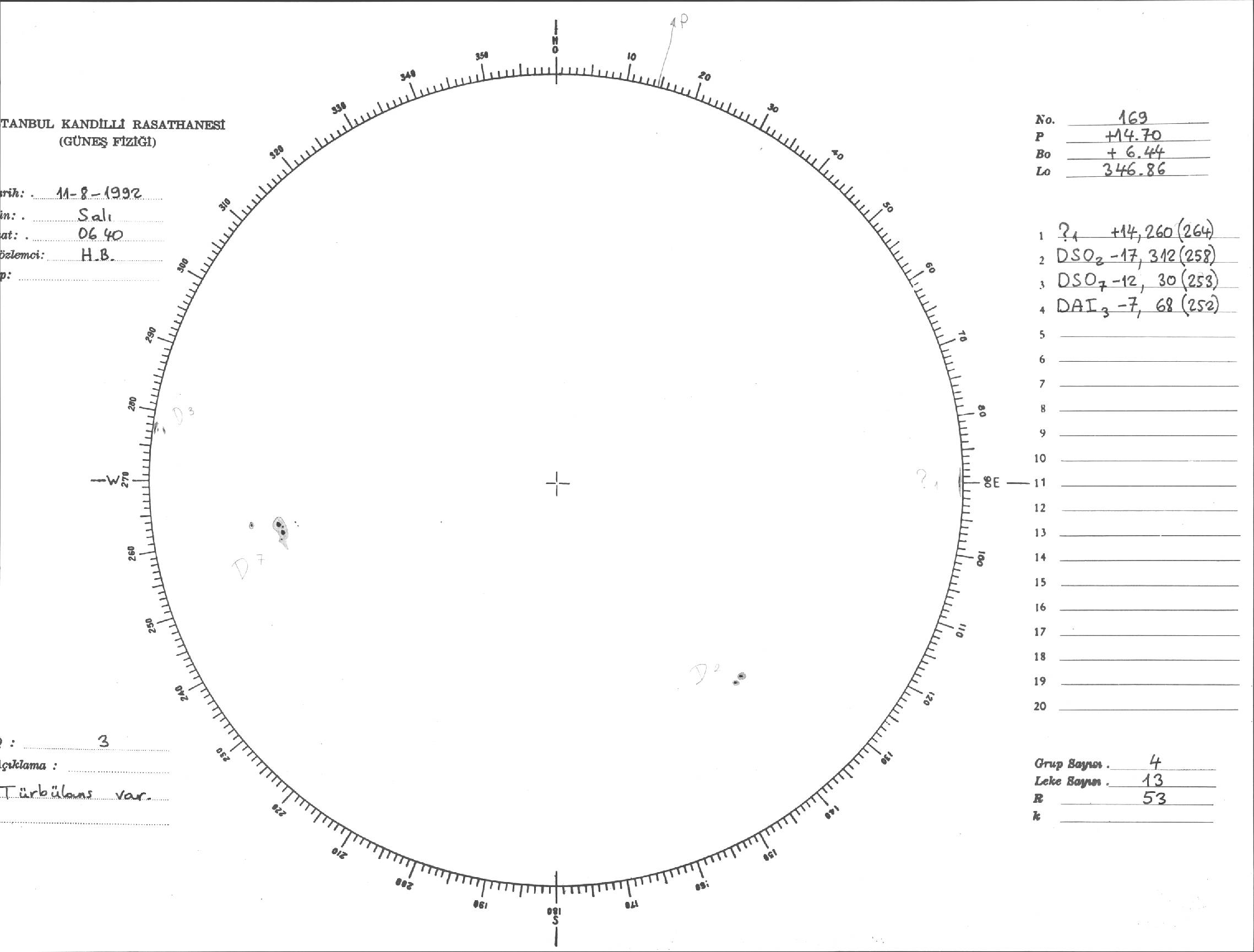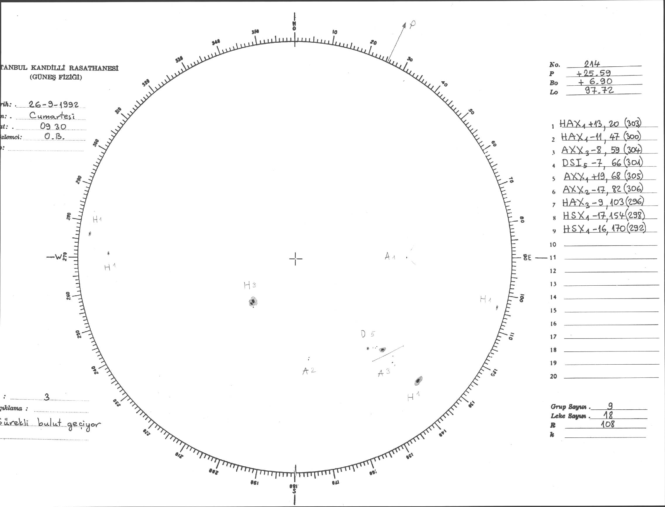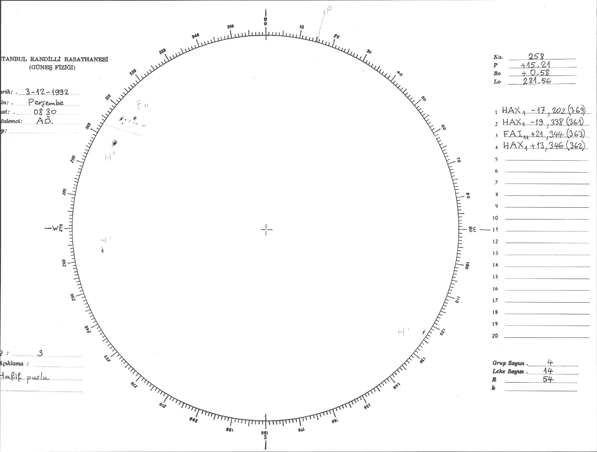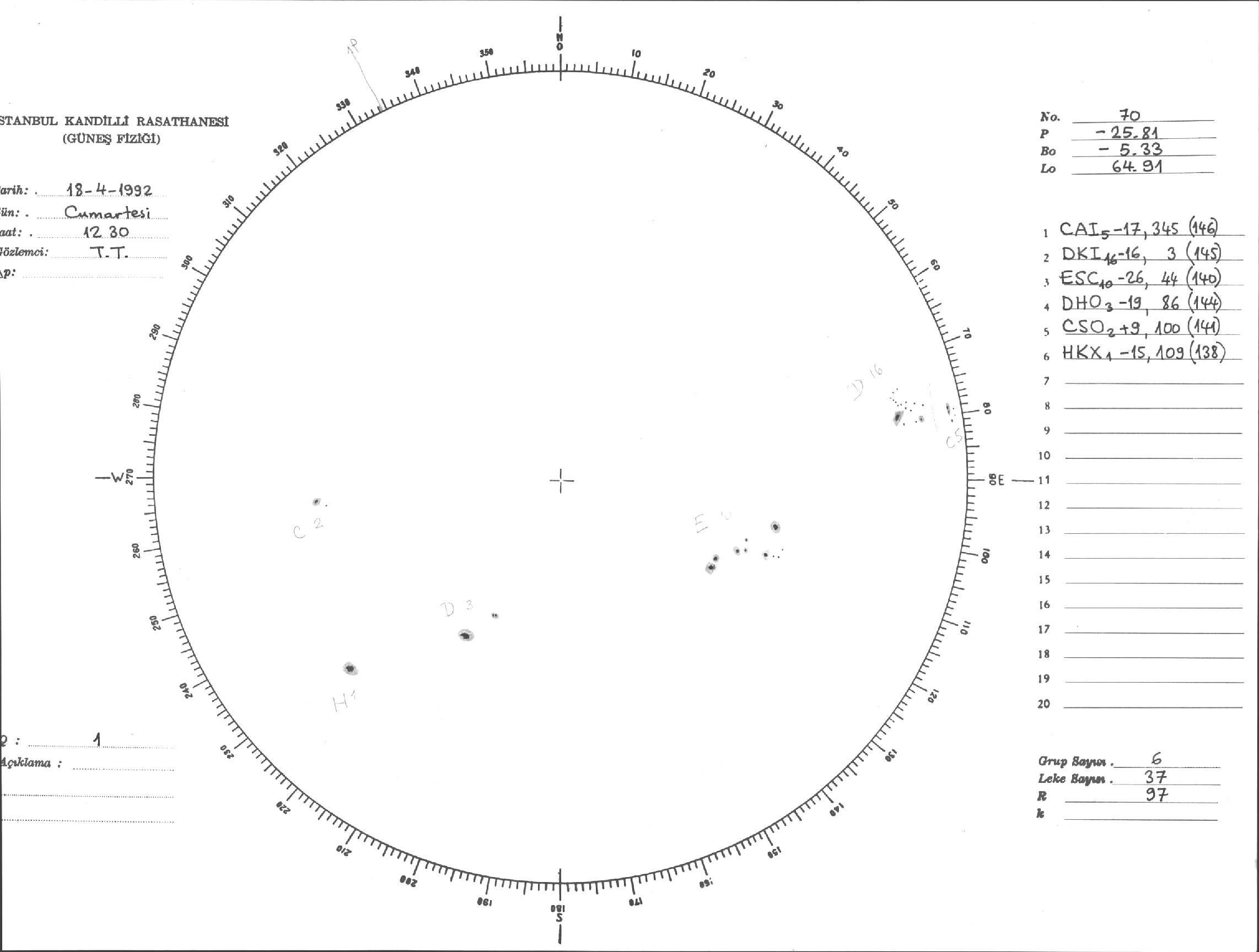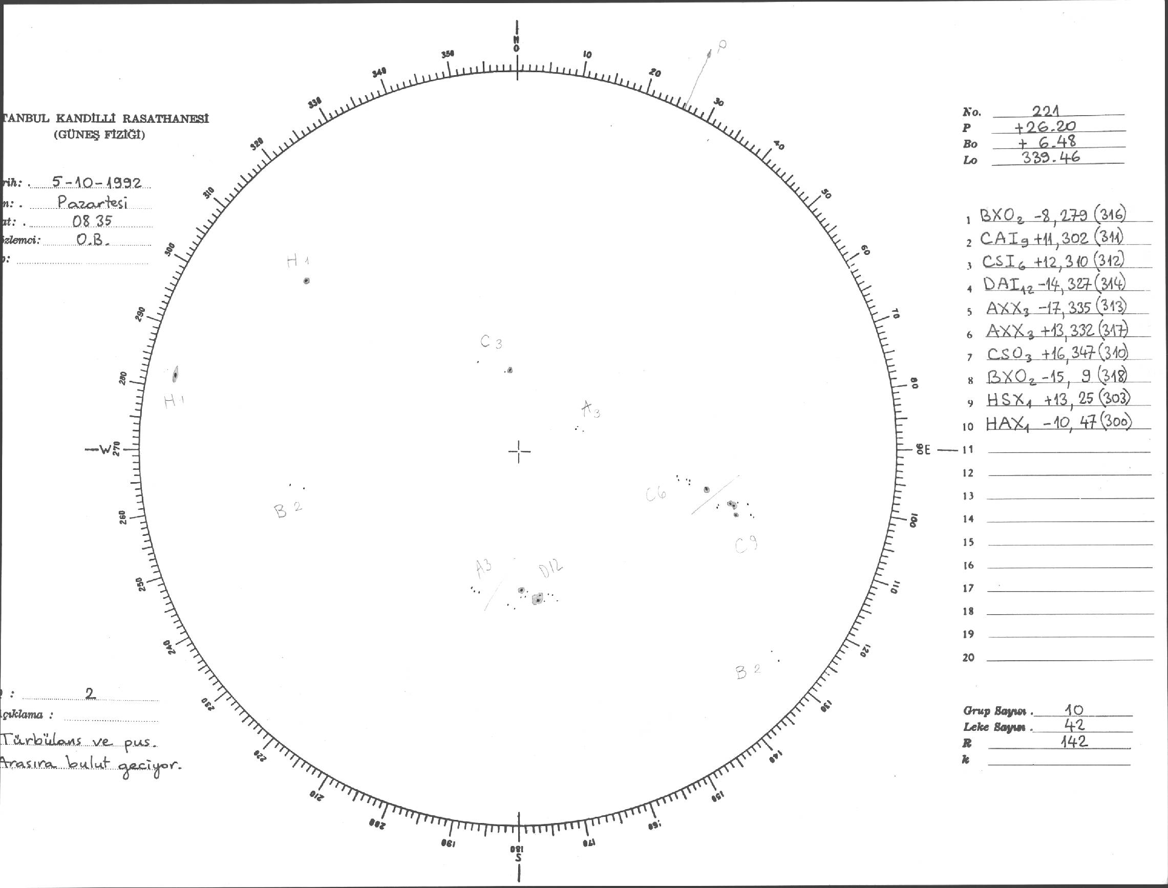 Güneş Lekesi Çizimleri / Kandilli Sunspot Drawings