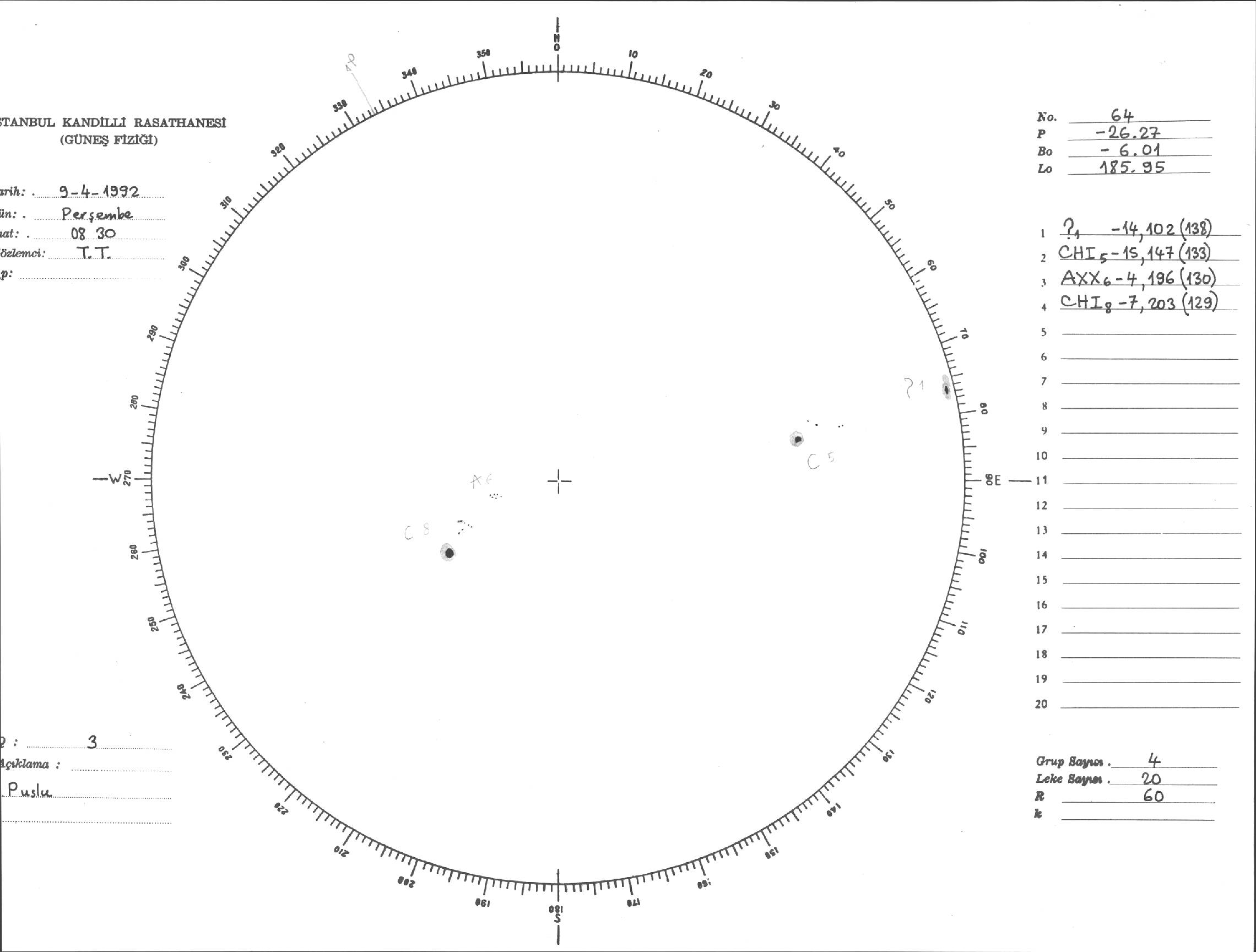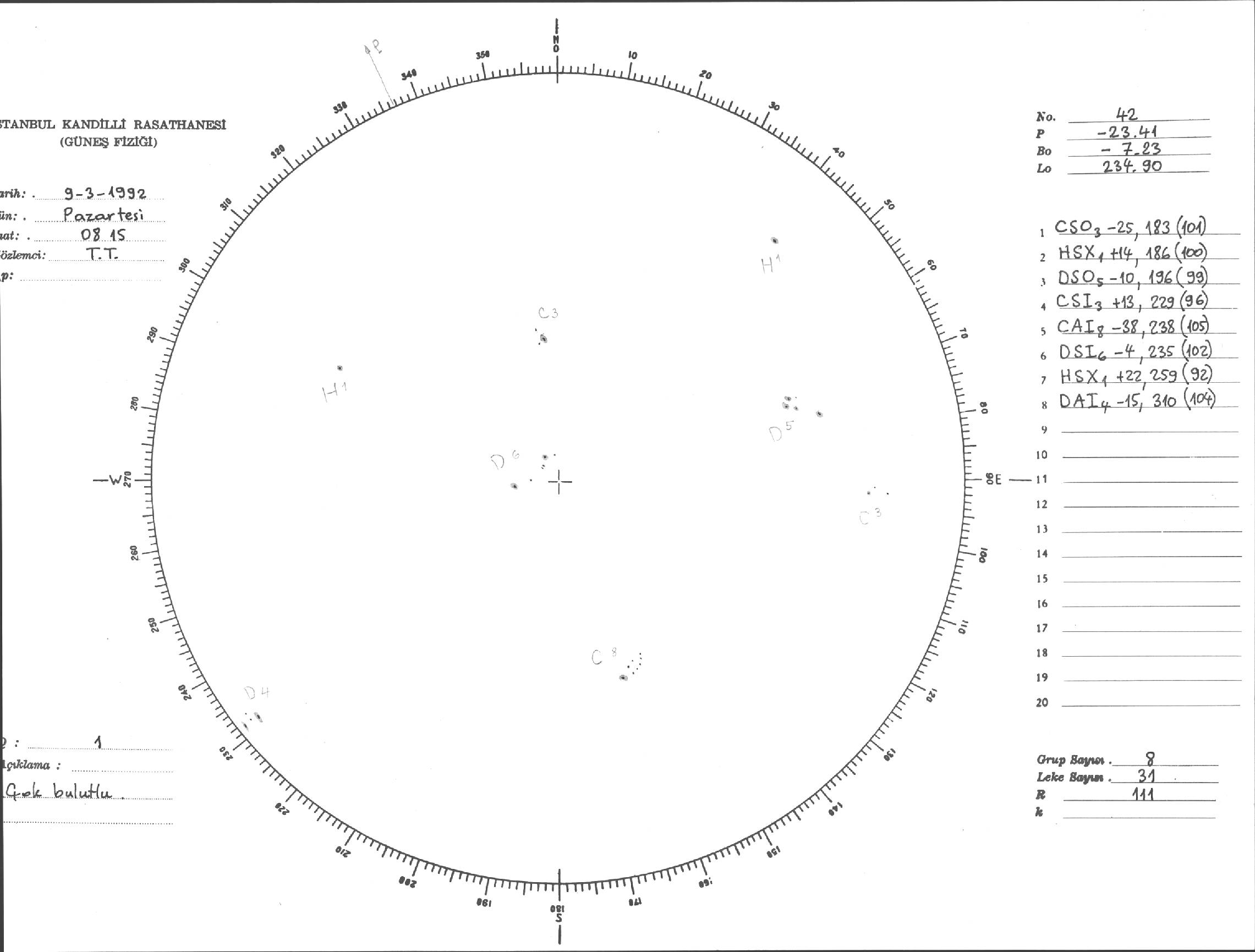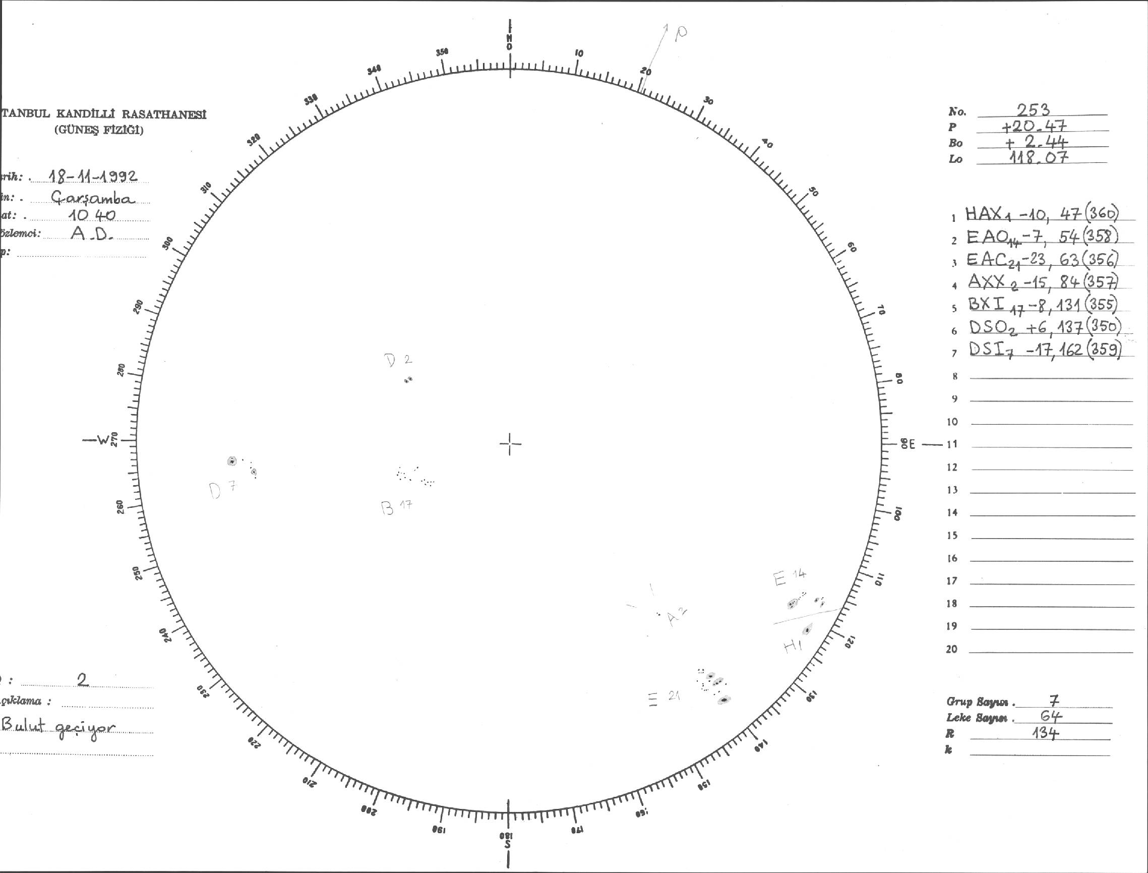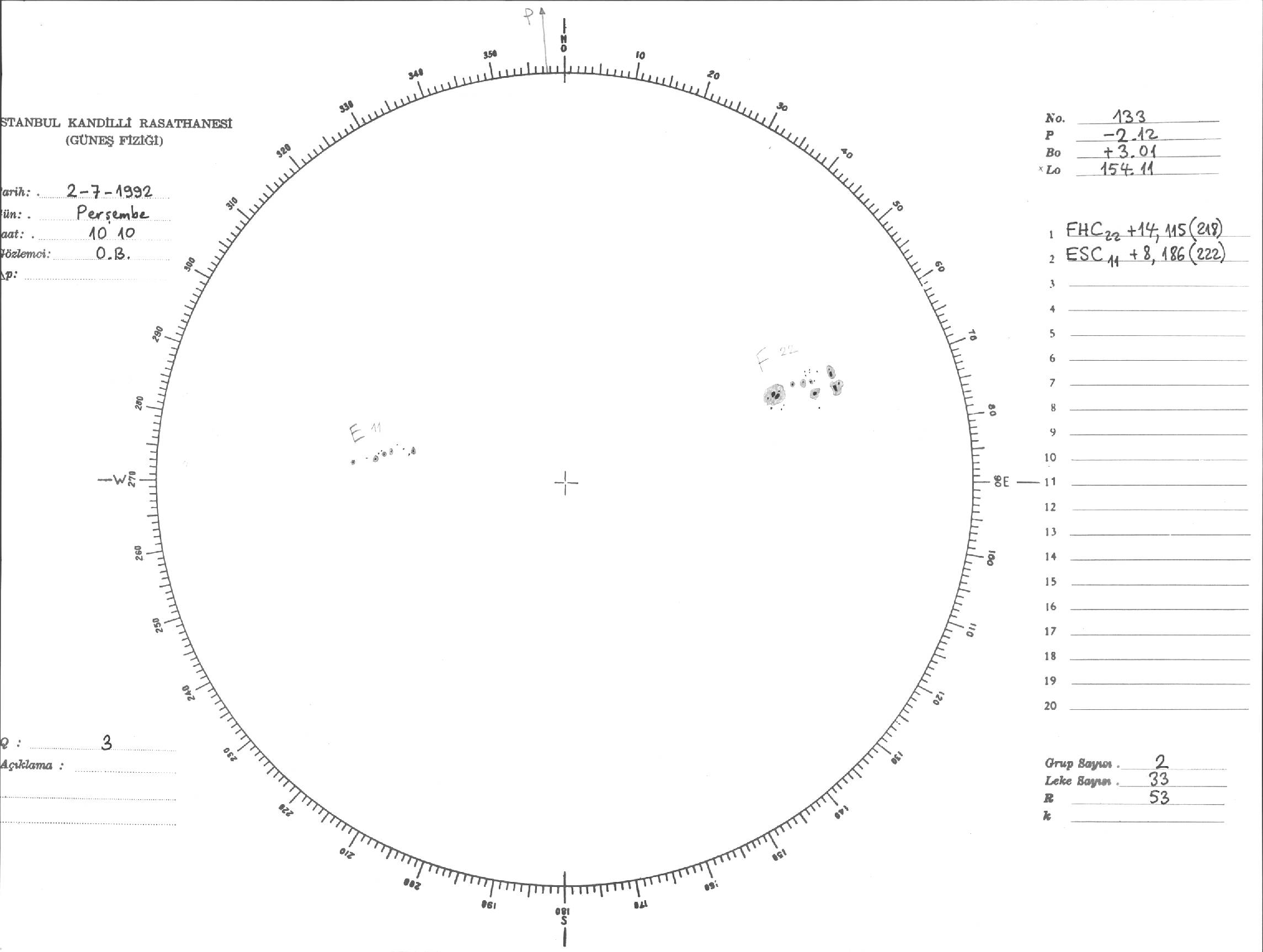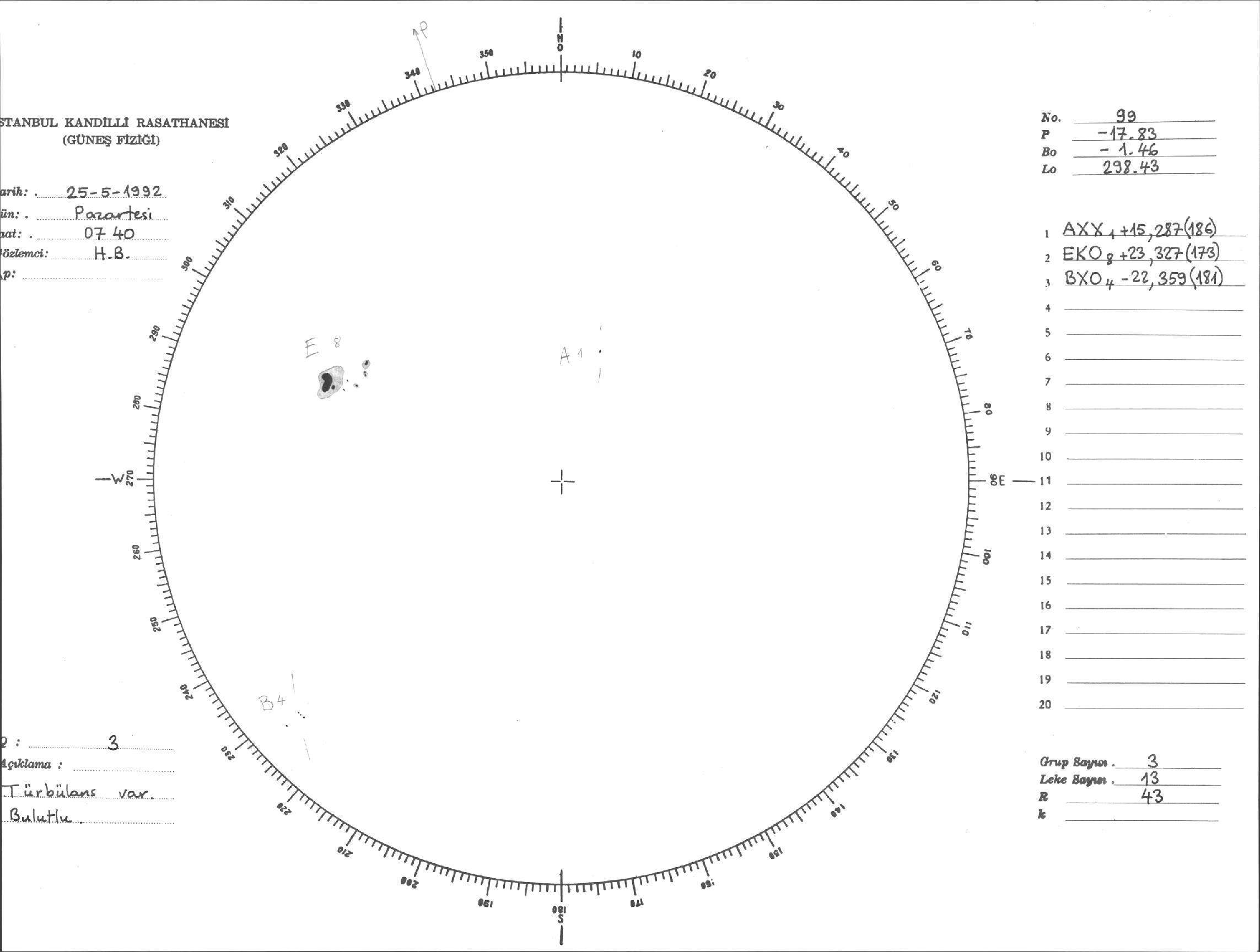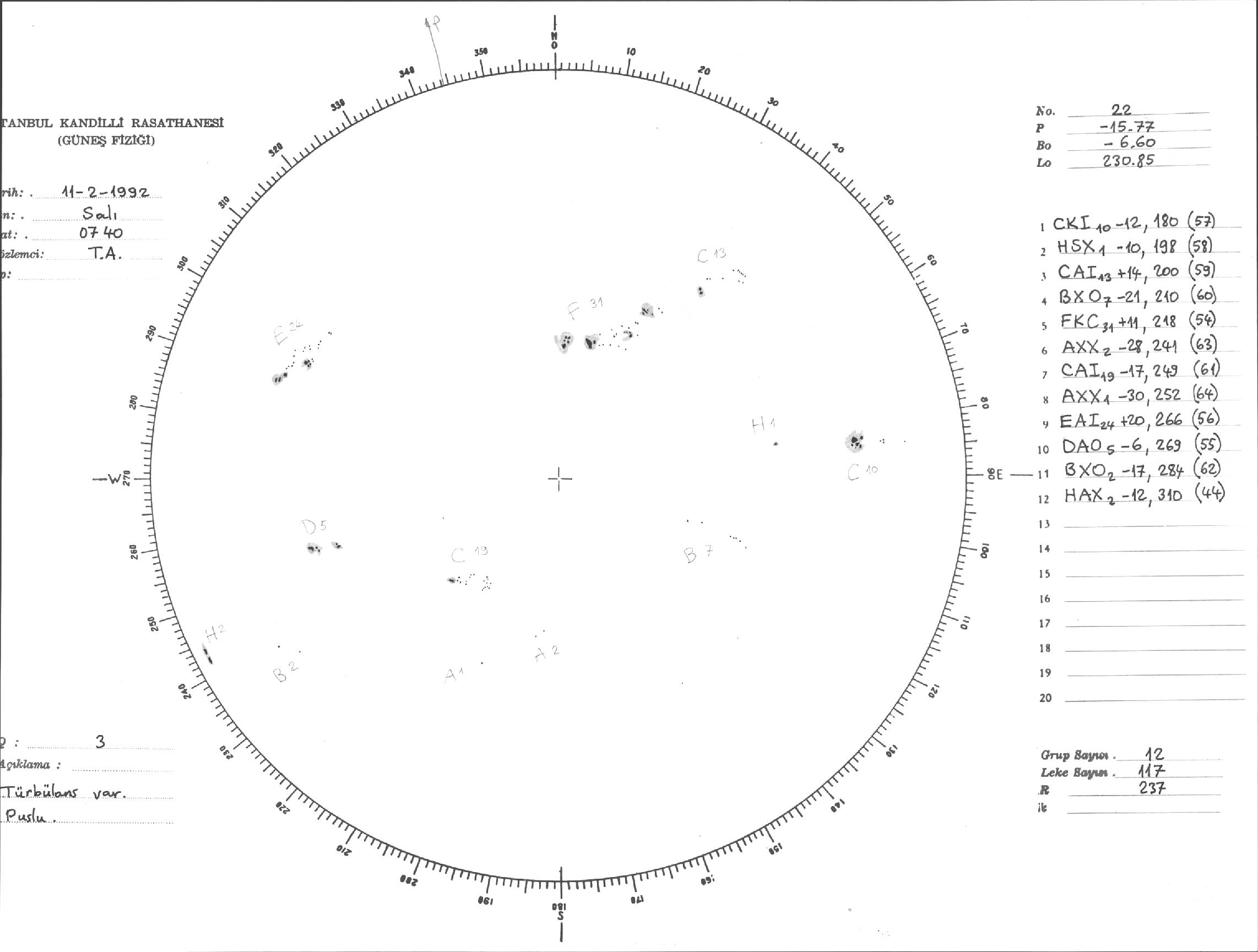 Güneş Lekesi Çizimleri / Kandilli Sunspot Drawings