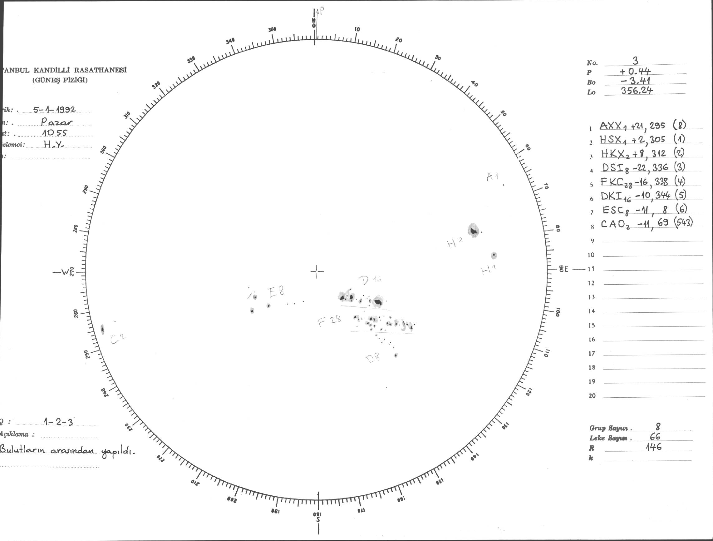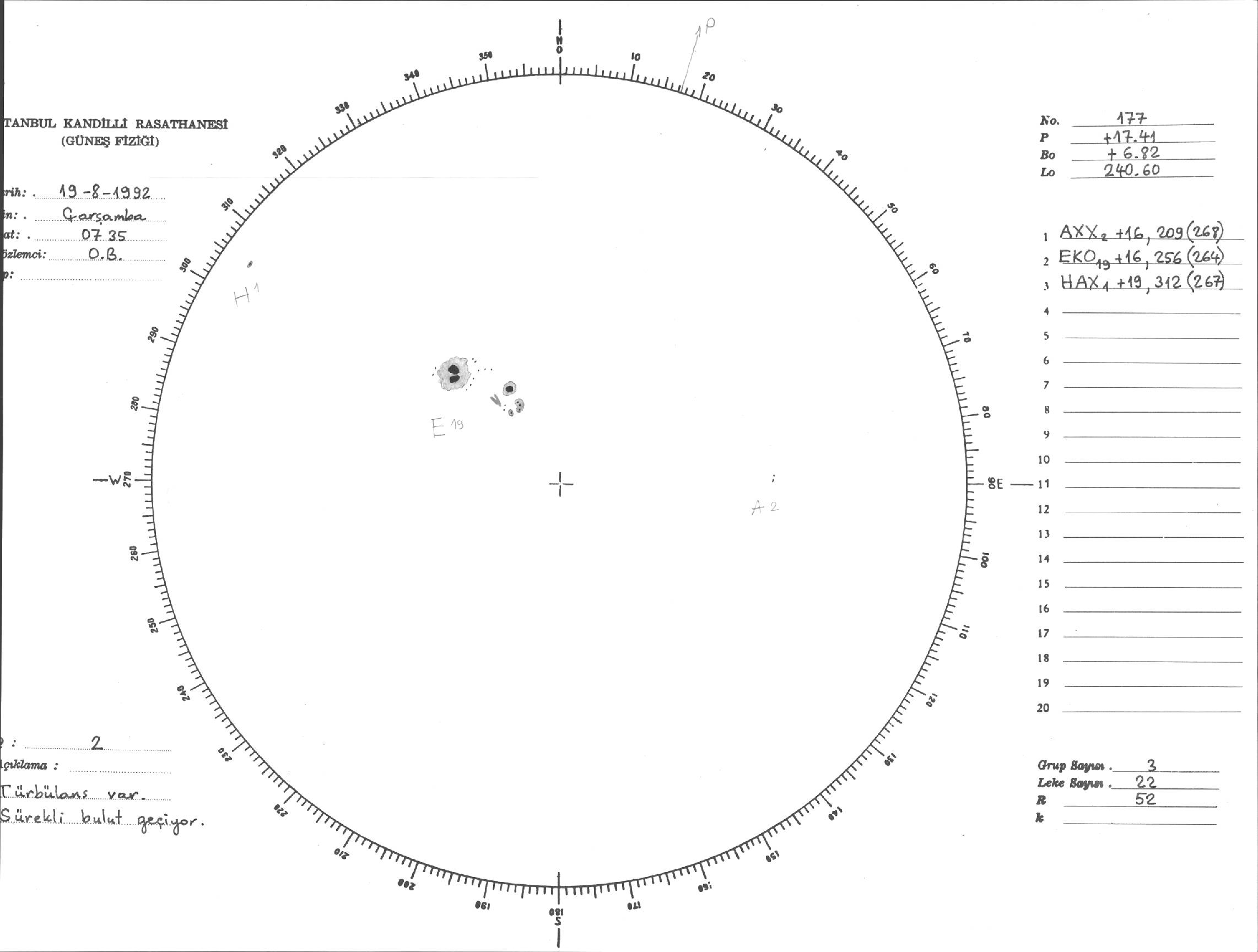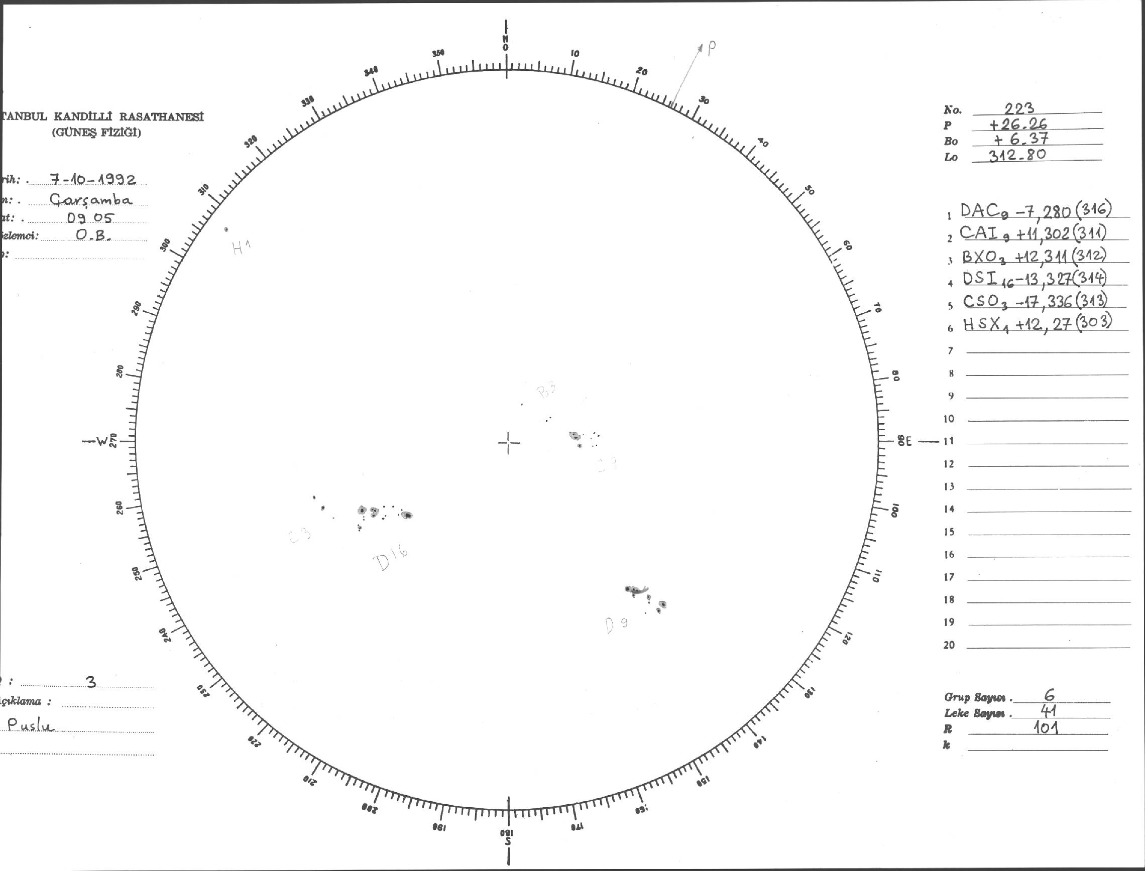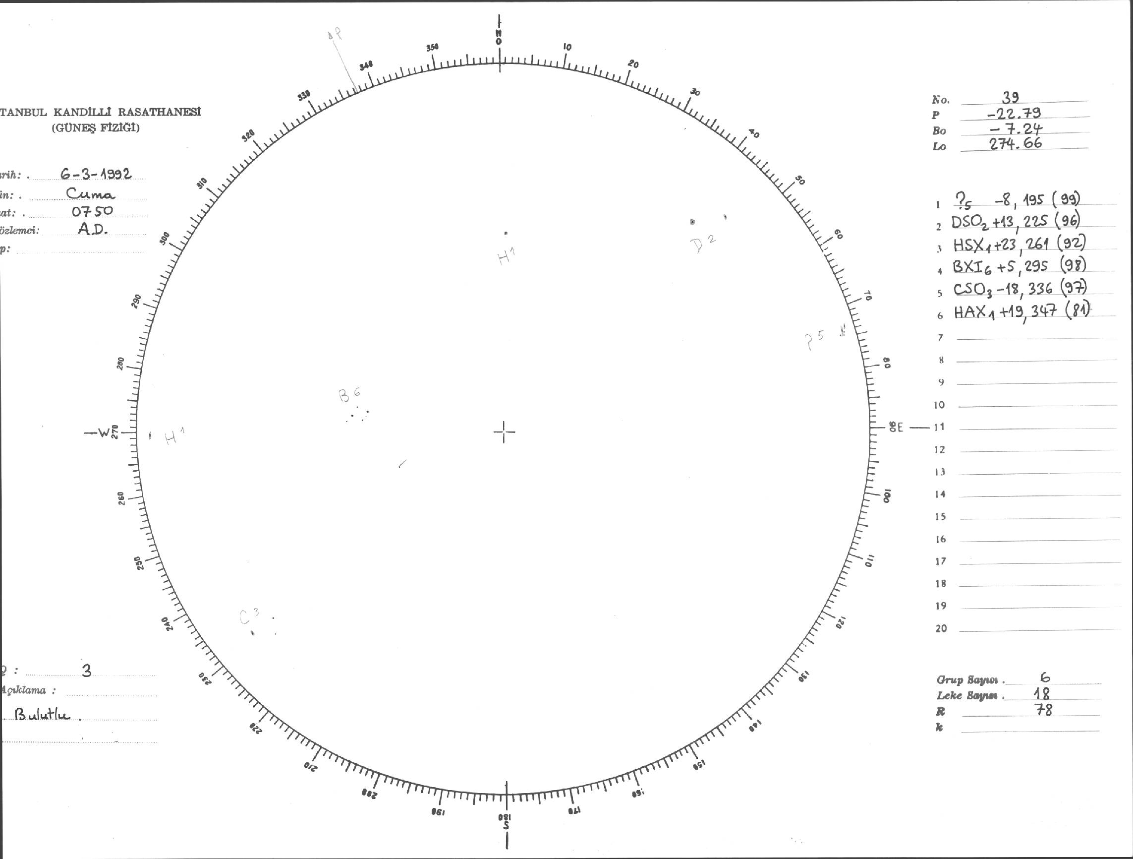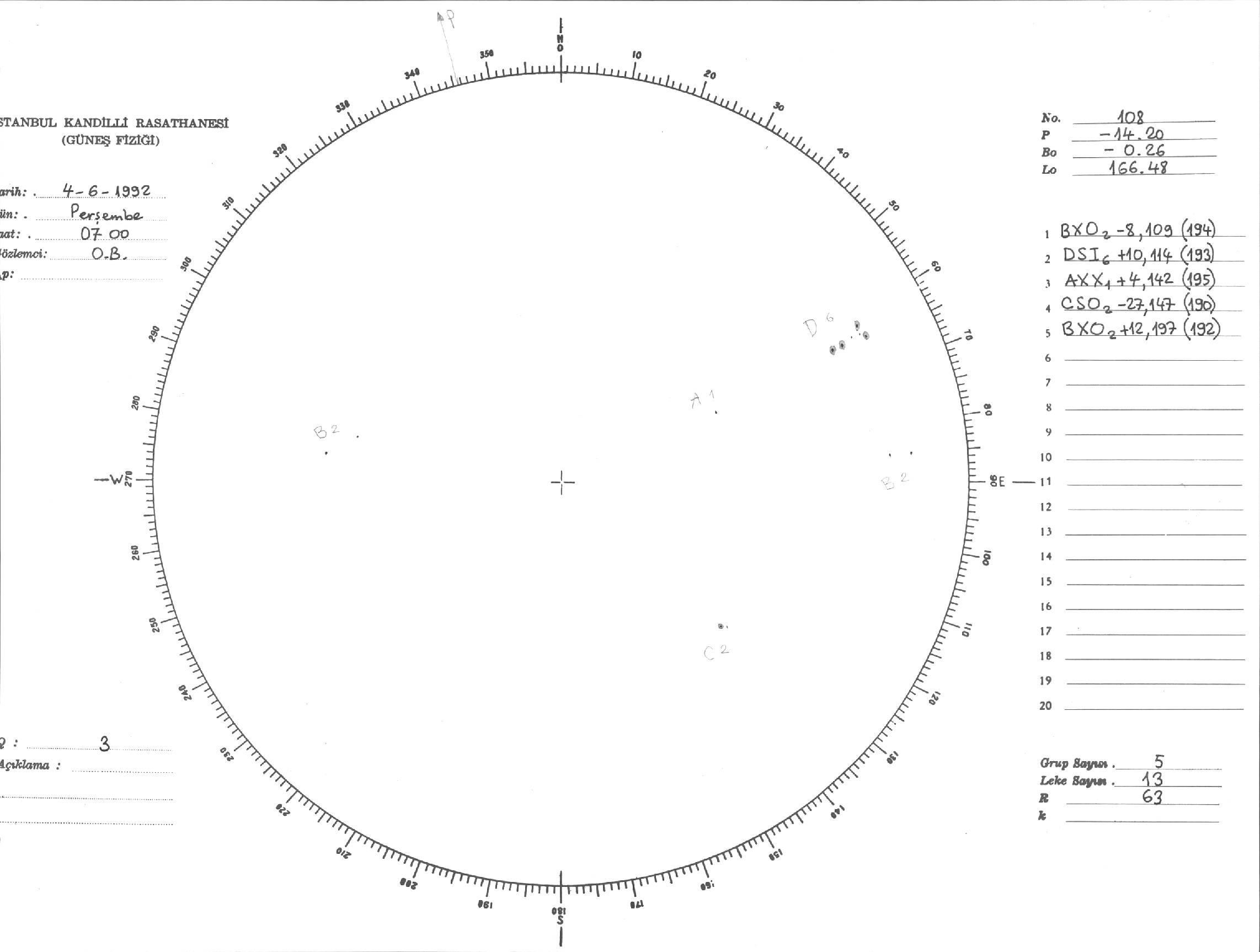 Güneş Lekesi Çizimleri / Kandilli Sunspot Drawings