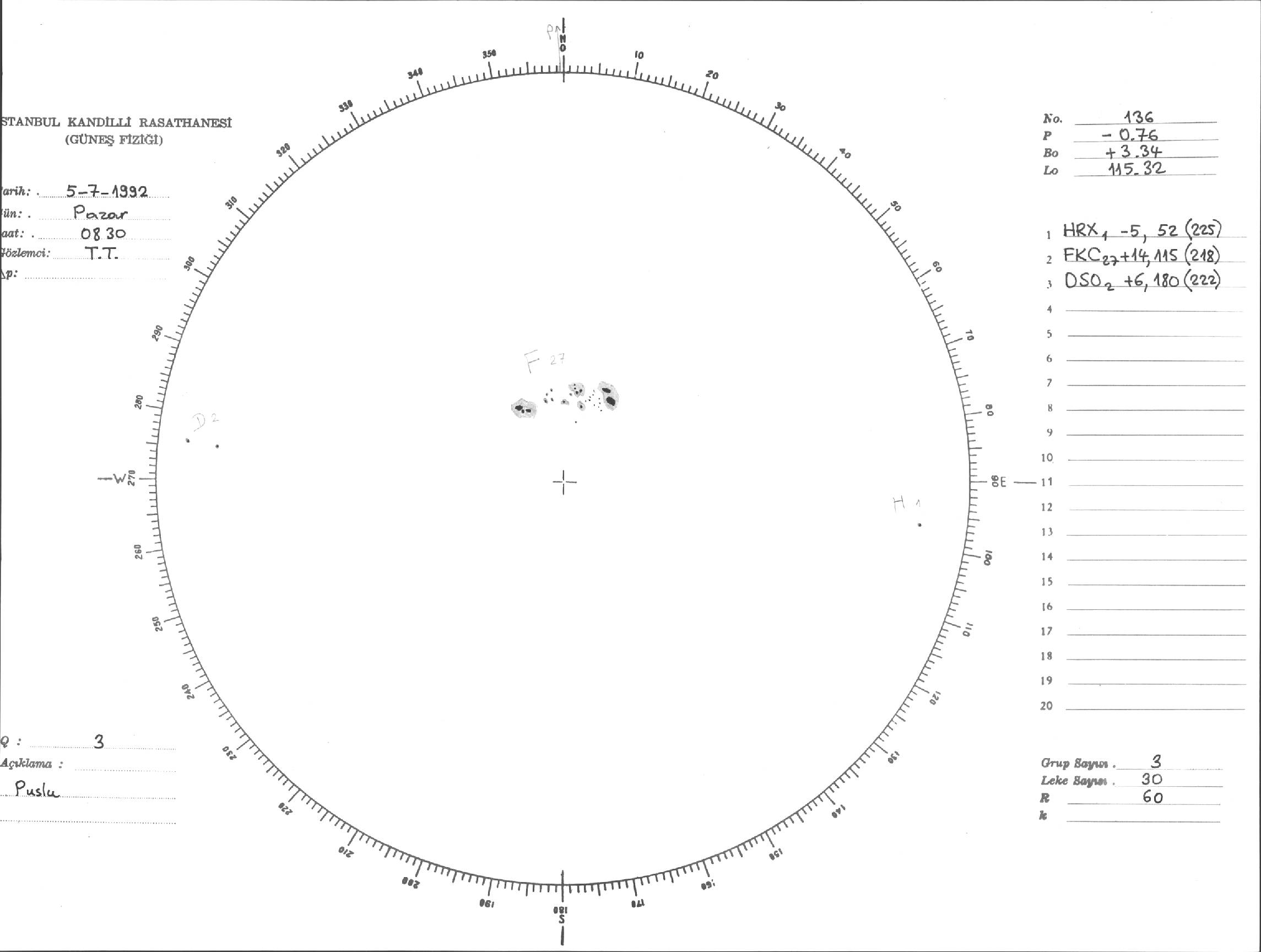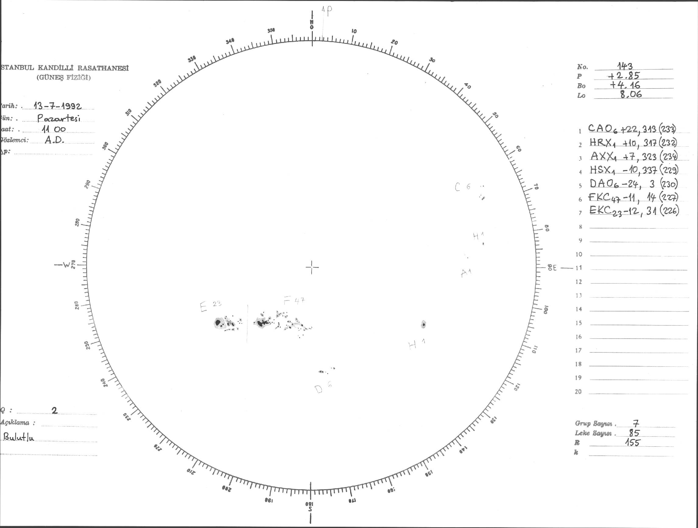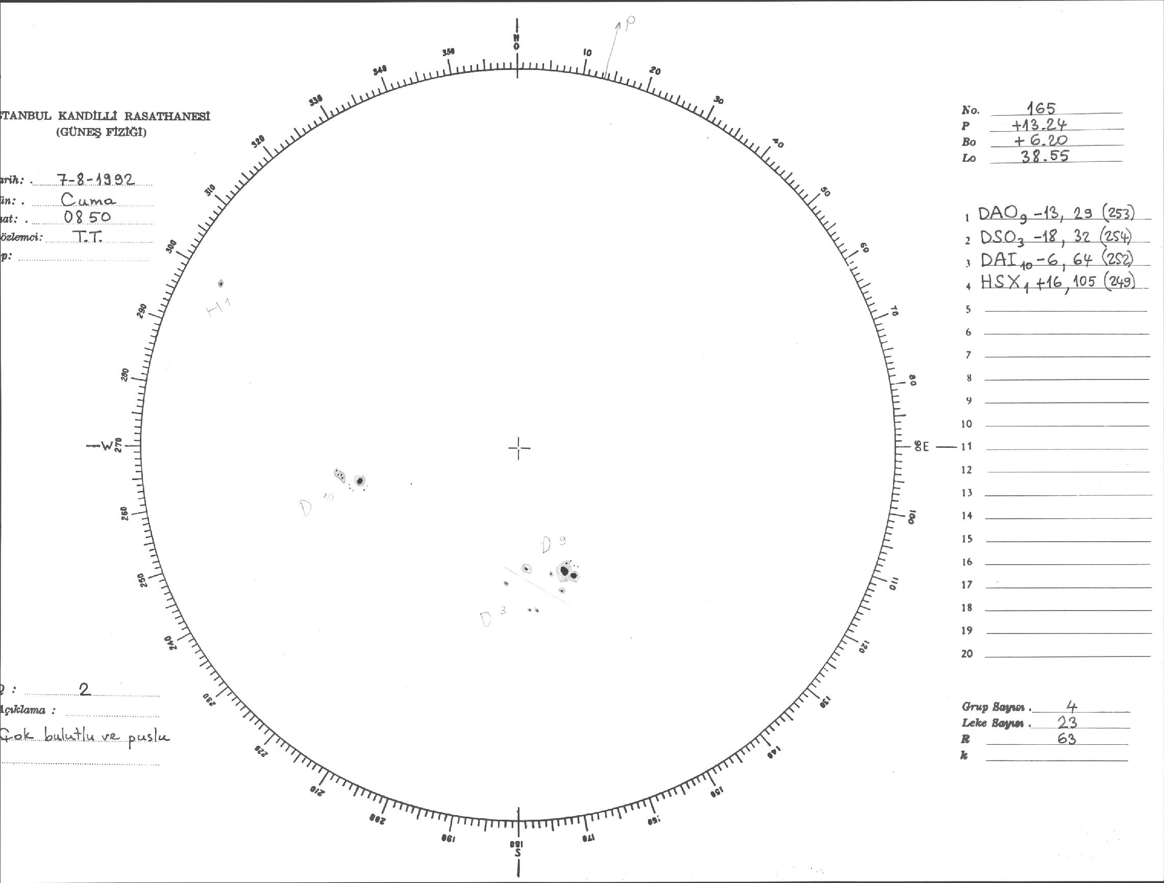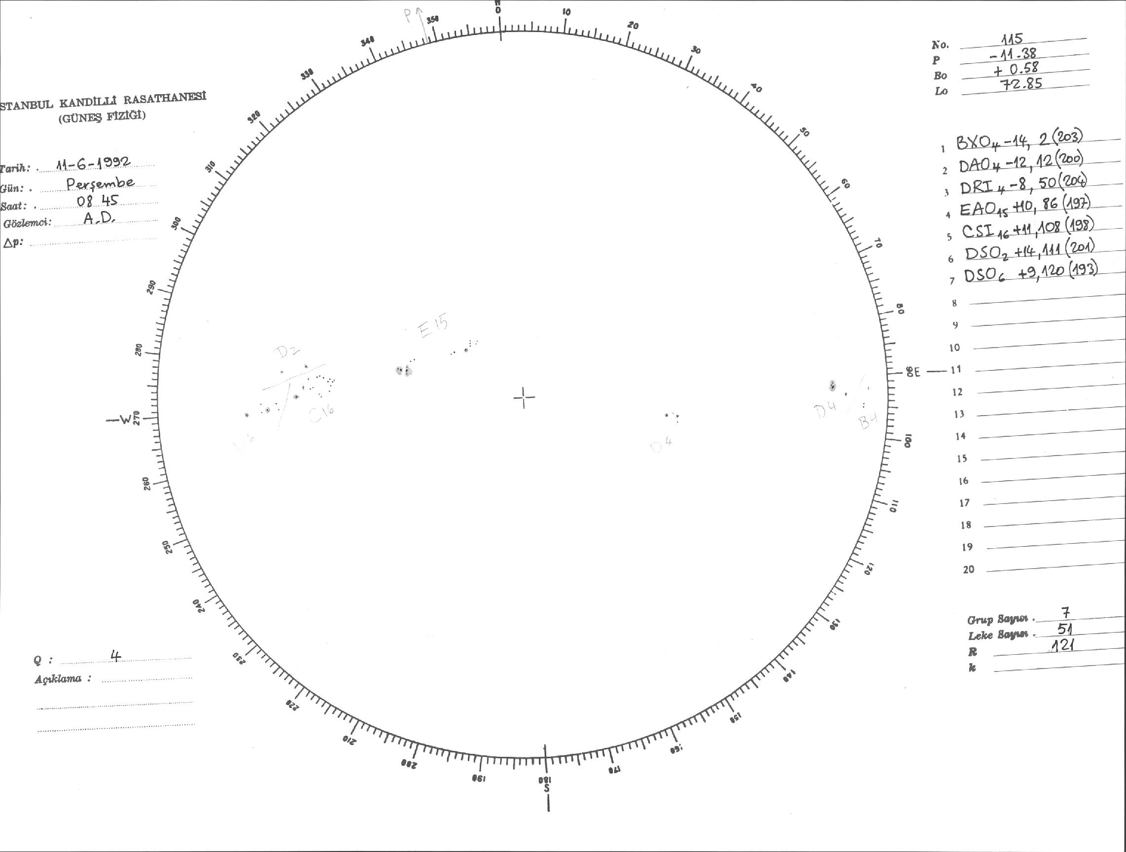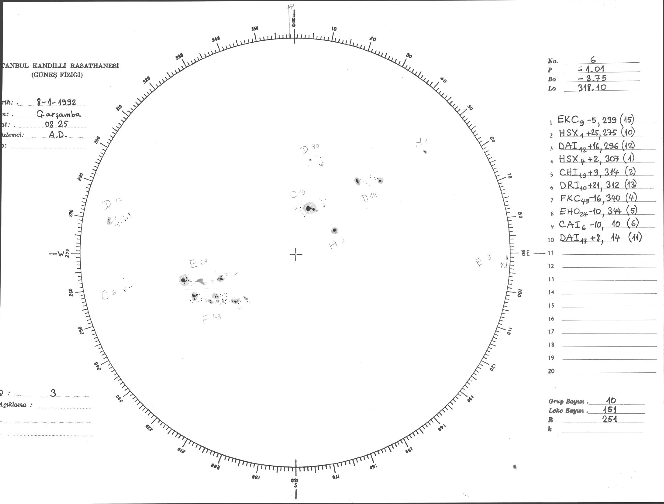Güneş Lekesi Çizimleri / Kandilli Sunspot Drawings
