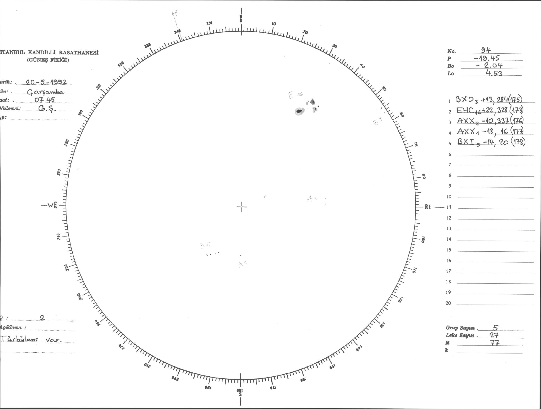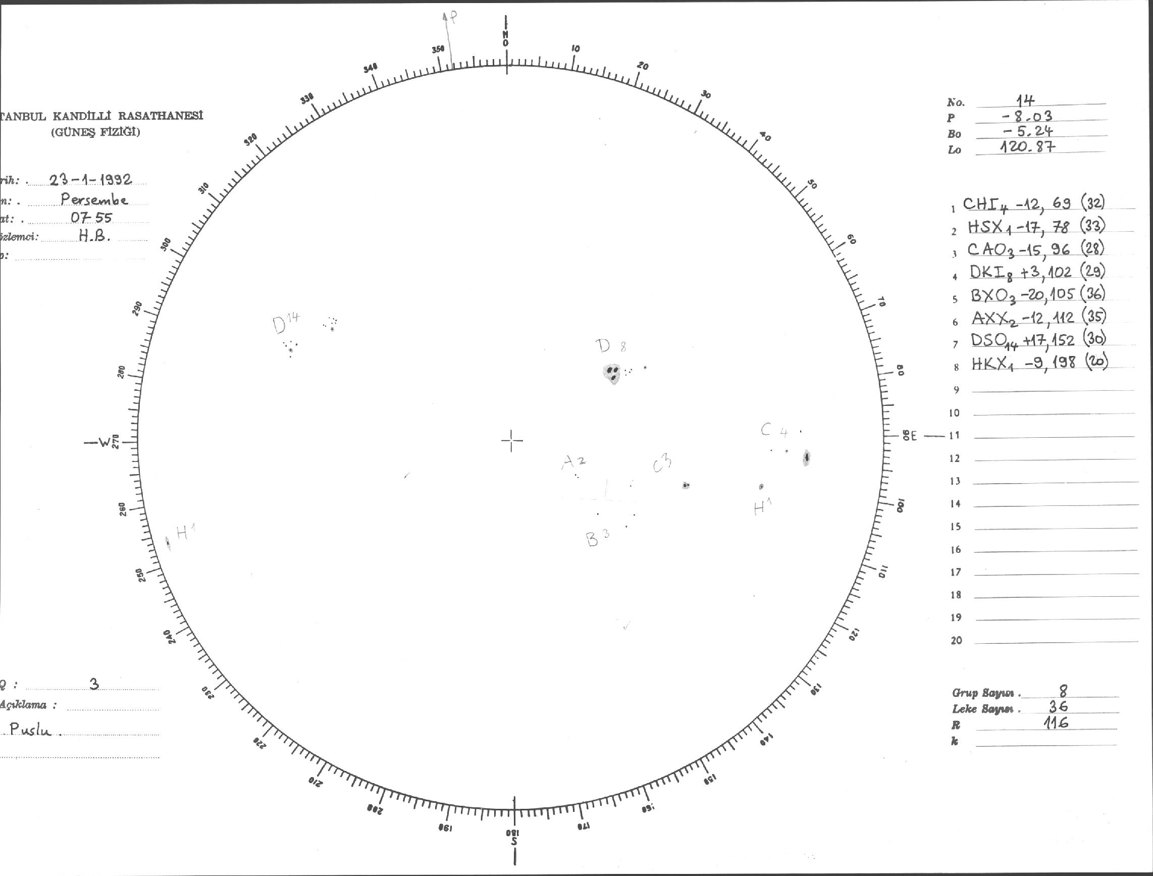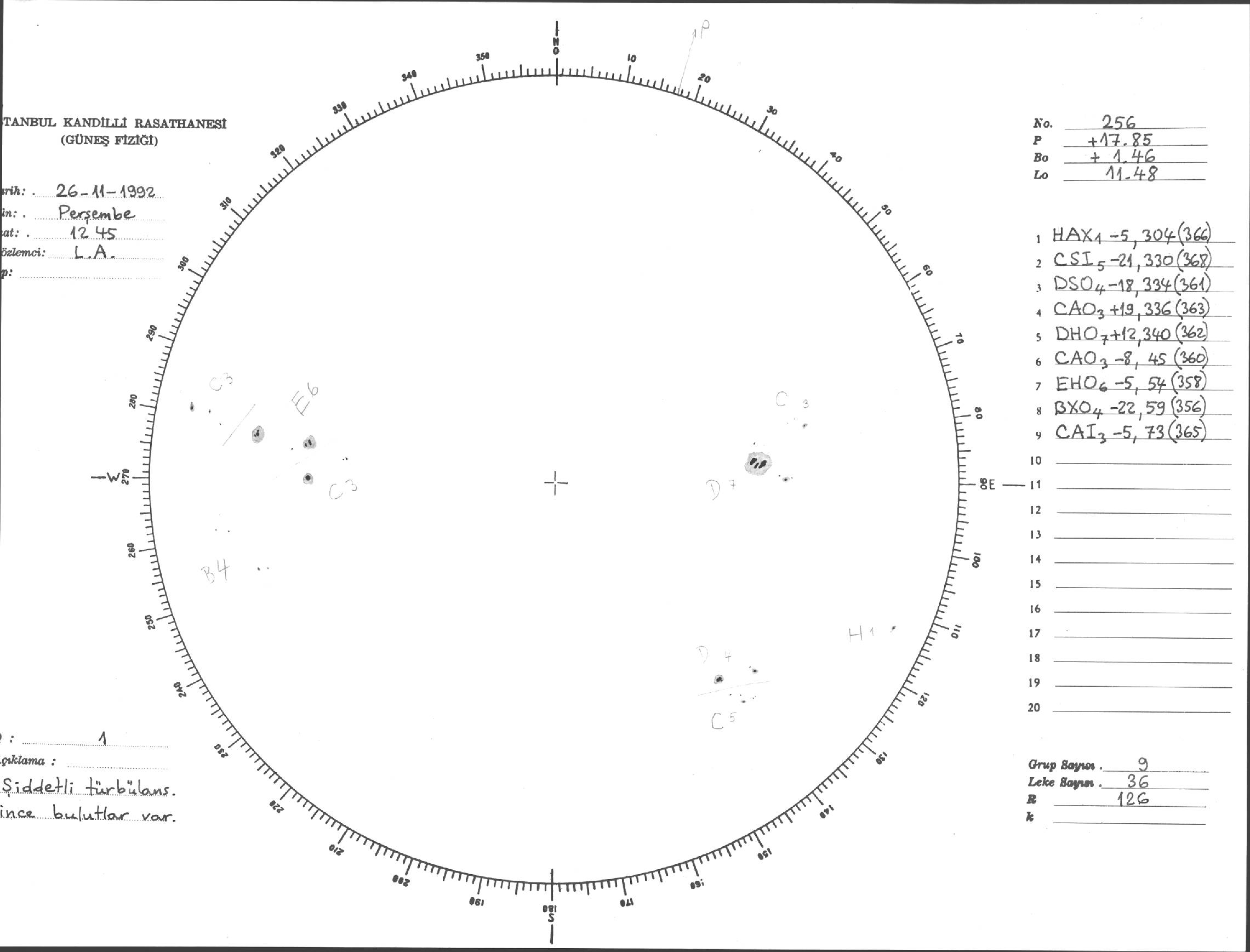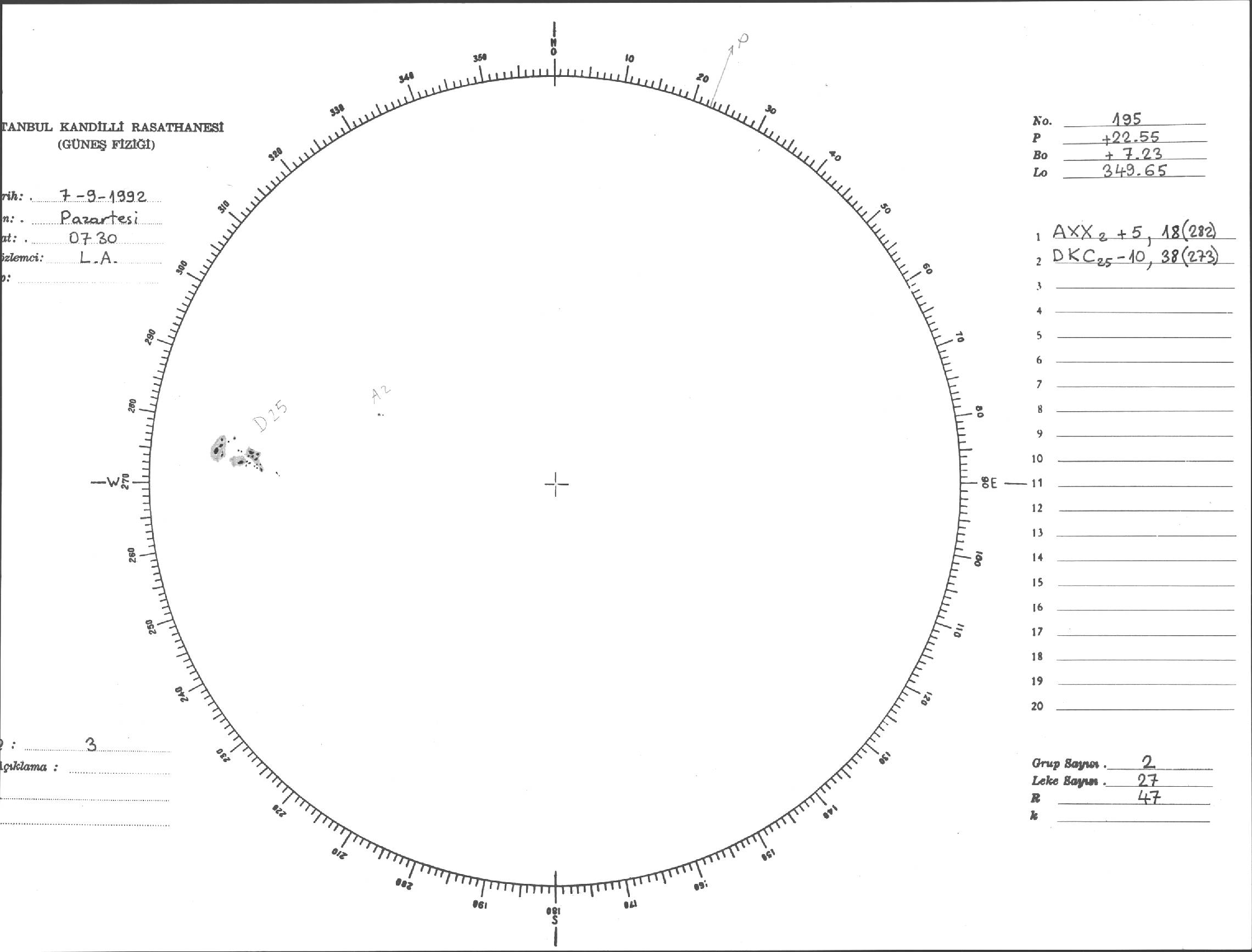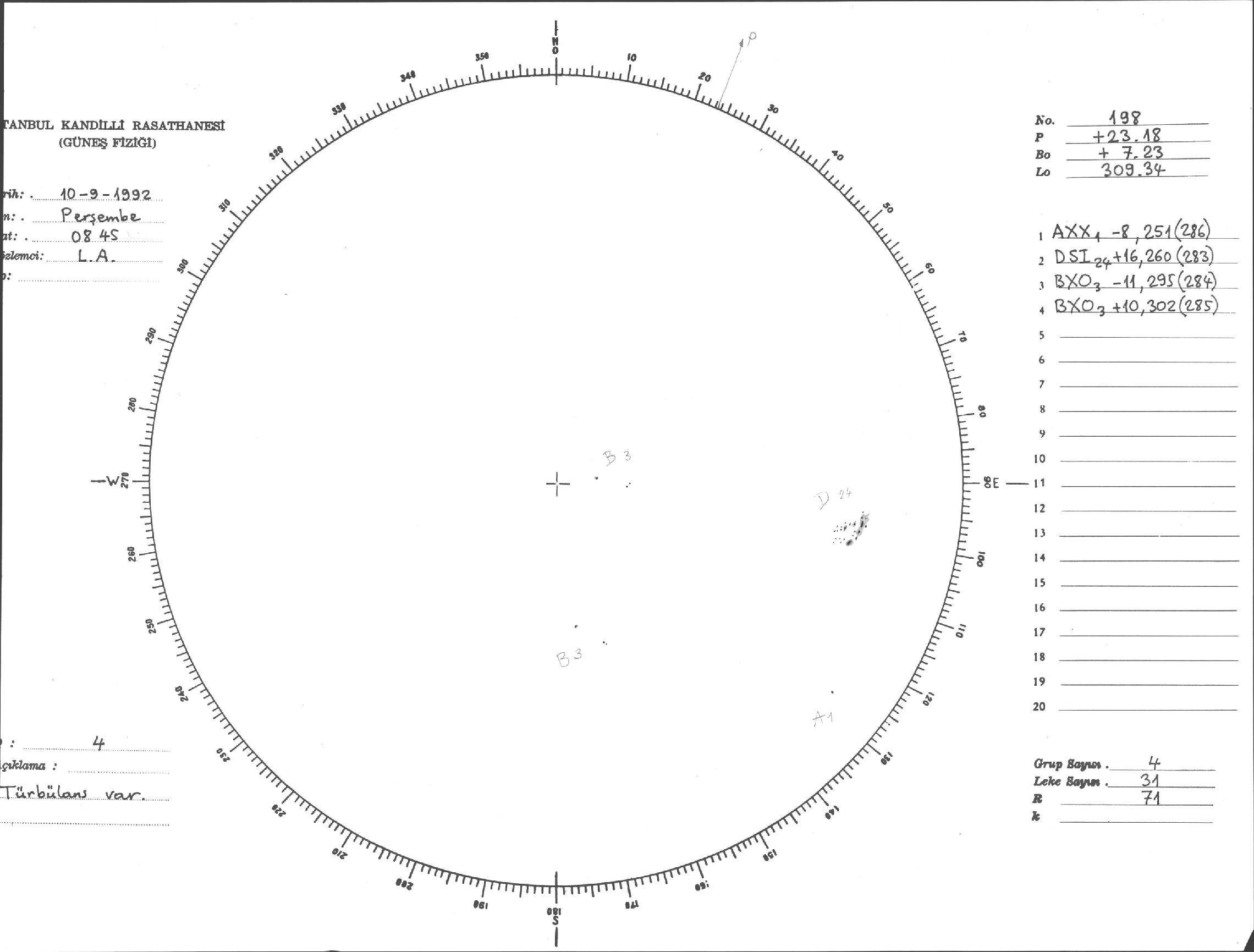 Güneş Lekesi Çizimleri / Kandilli Sunspot Drawings