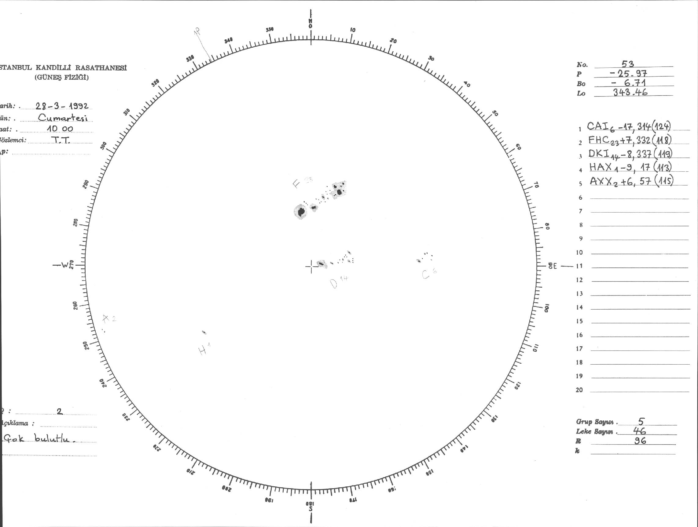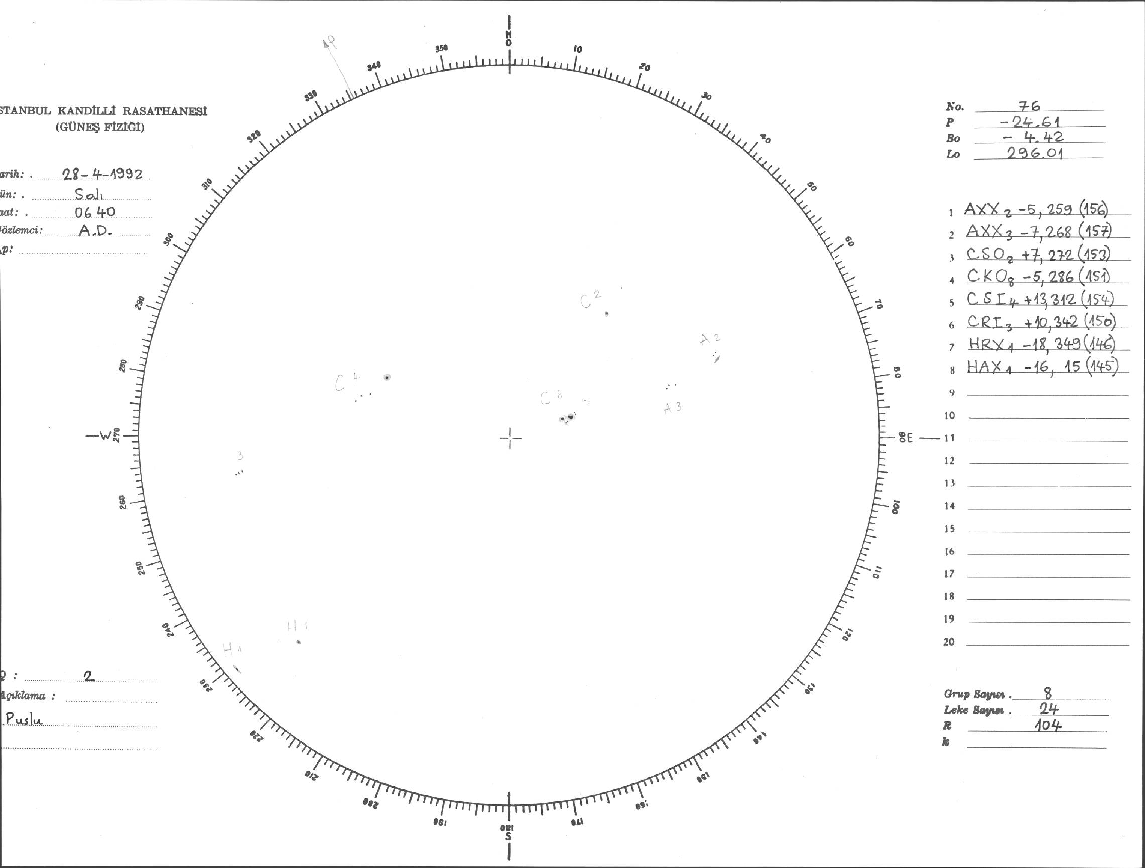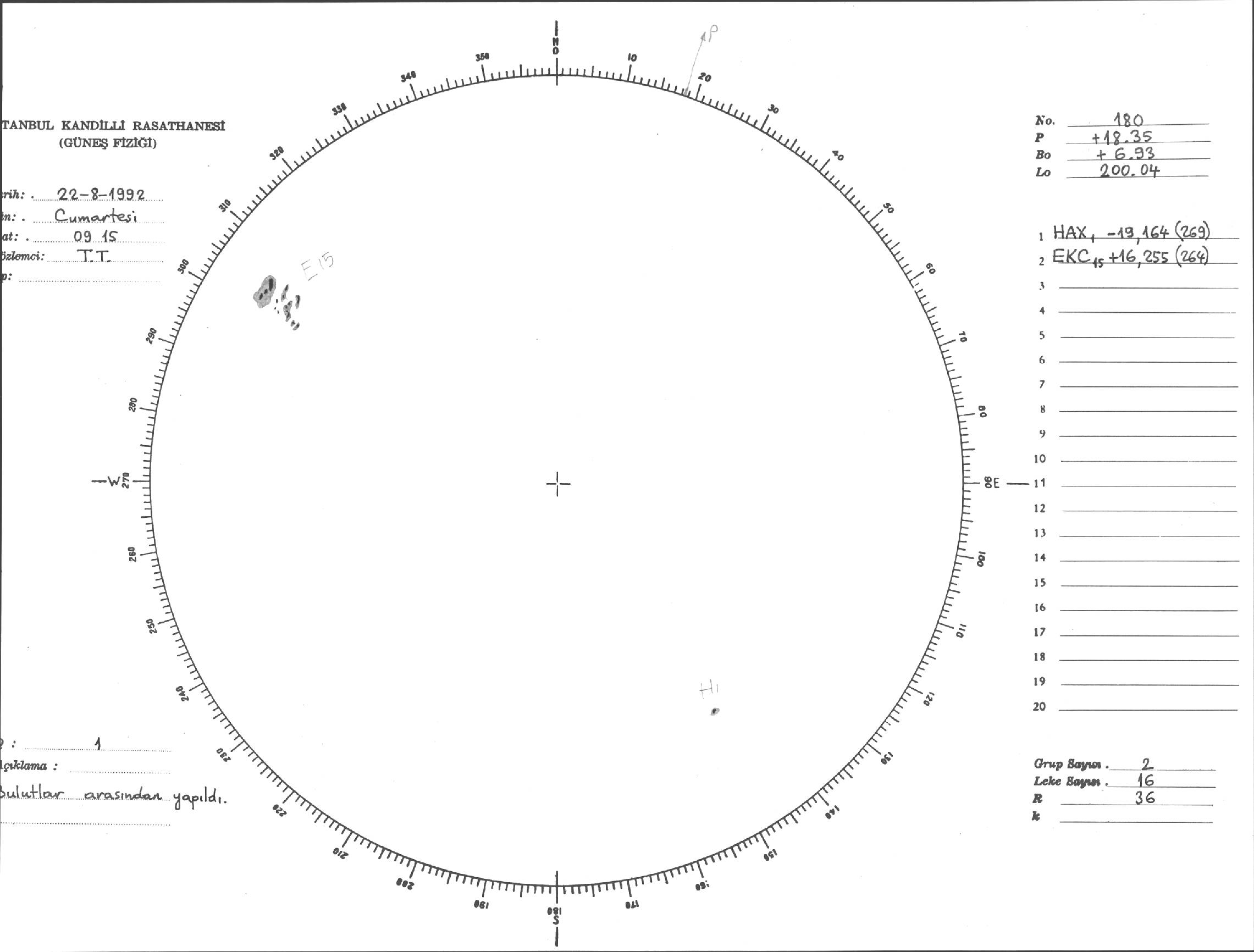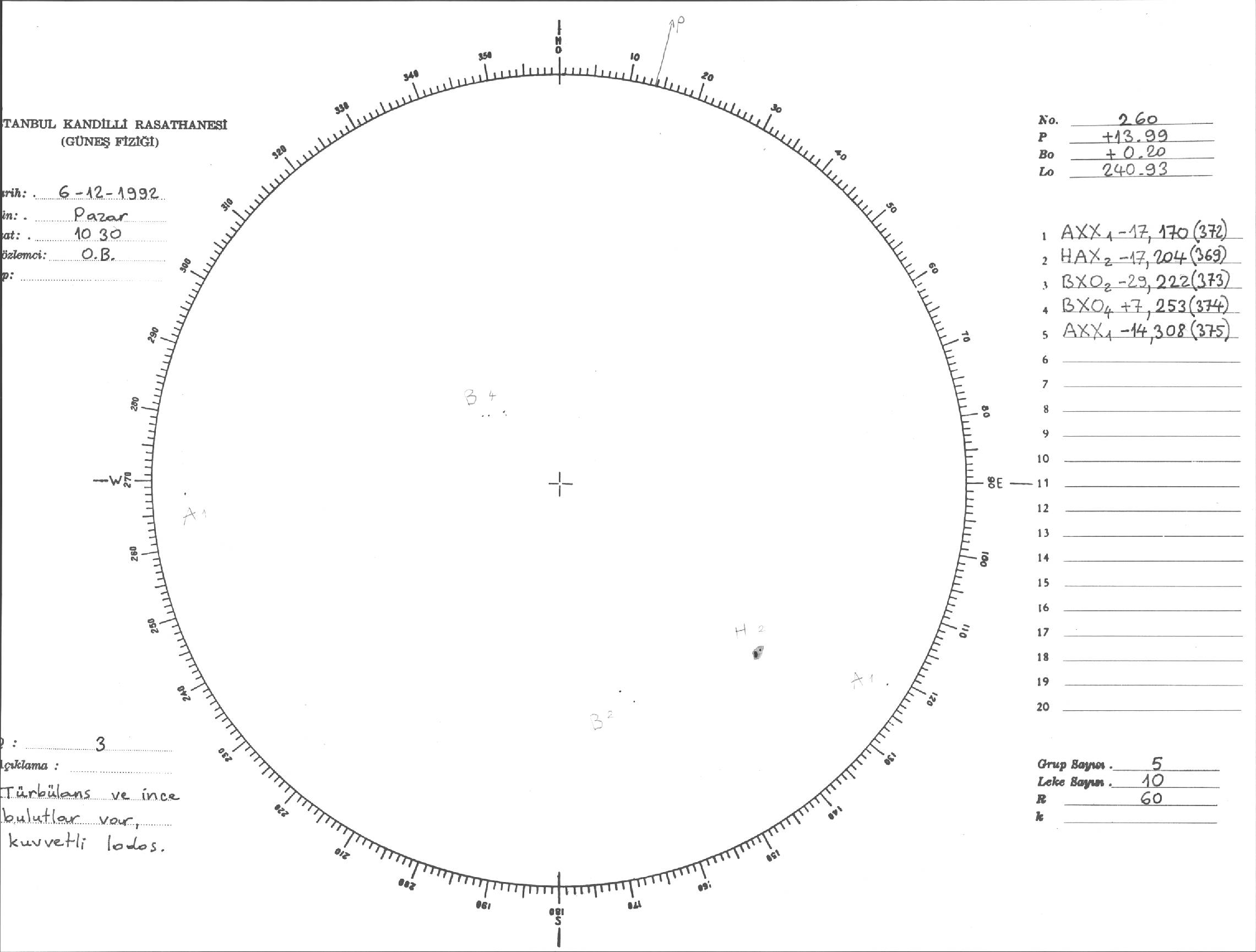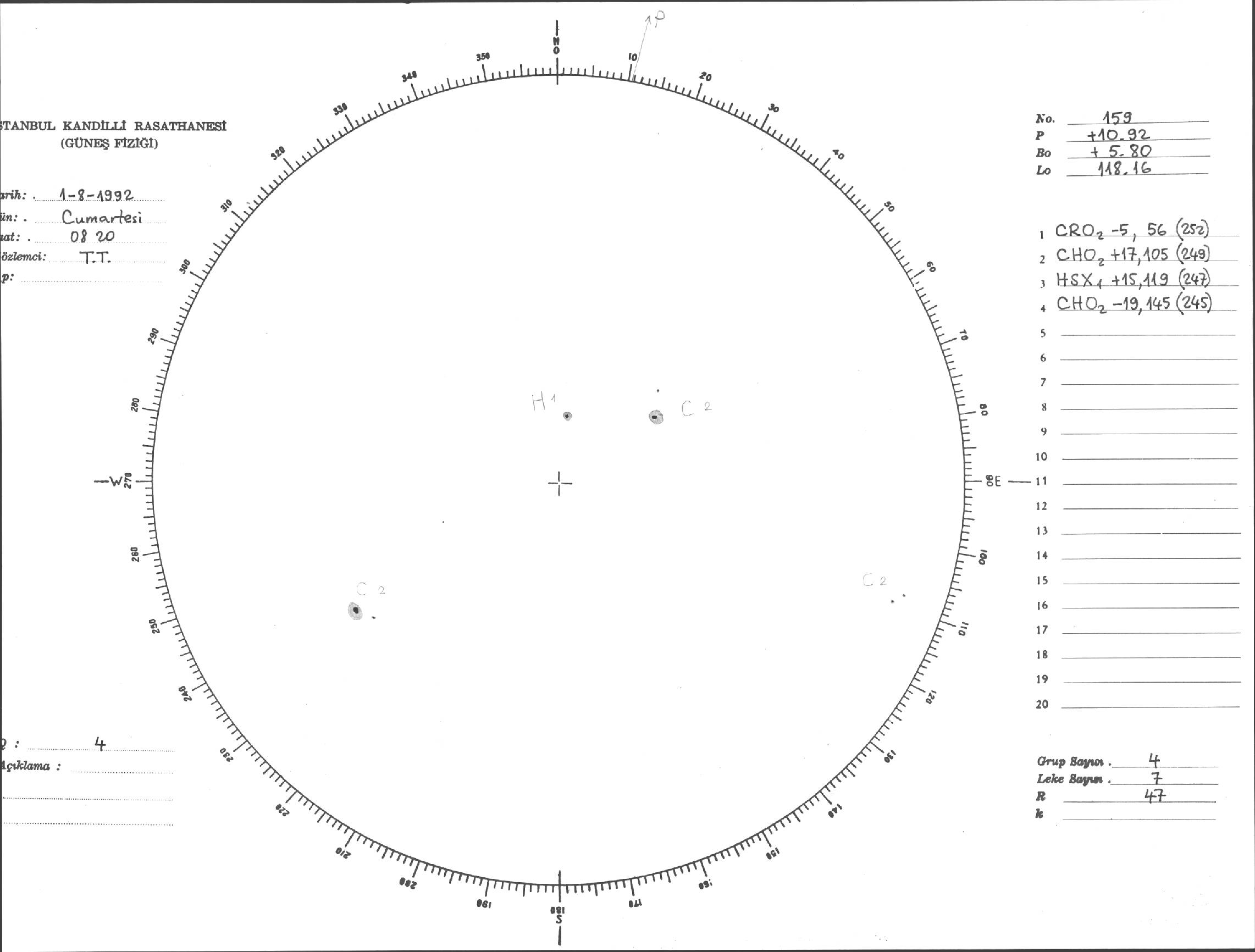 Güneş Lekesi Çizimleri / Kandilli Sunspot Drawings