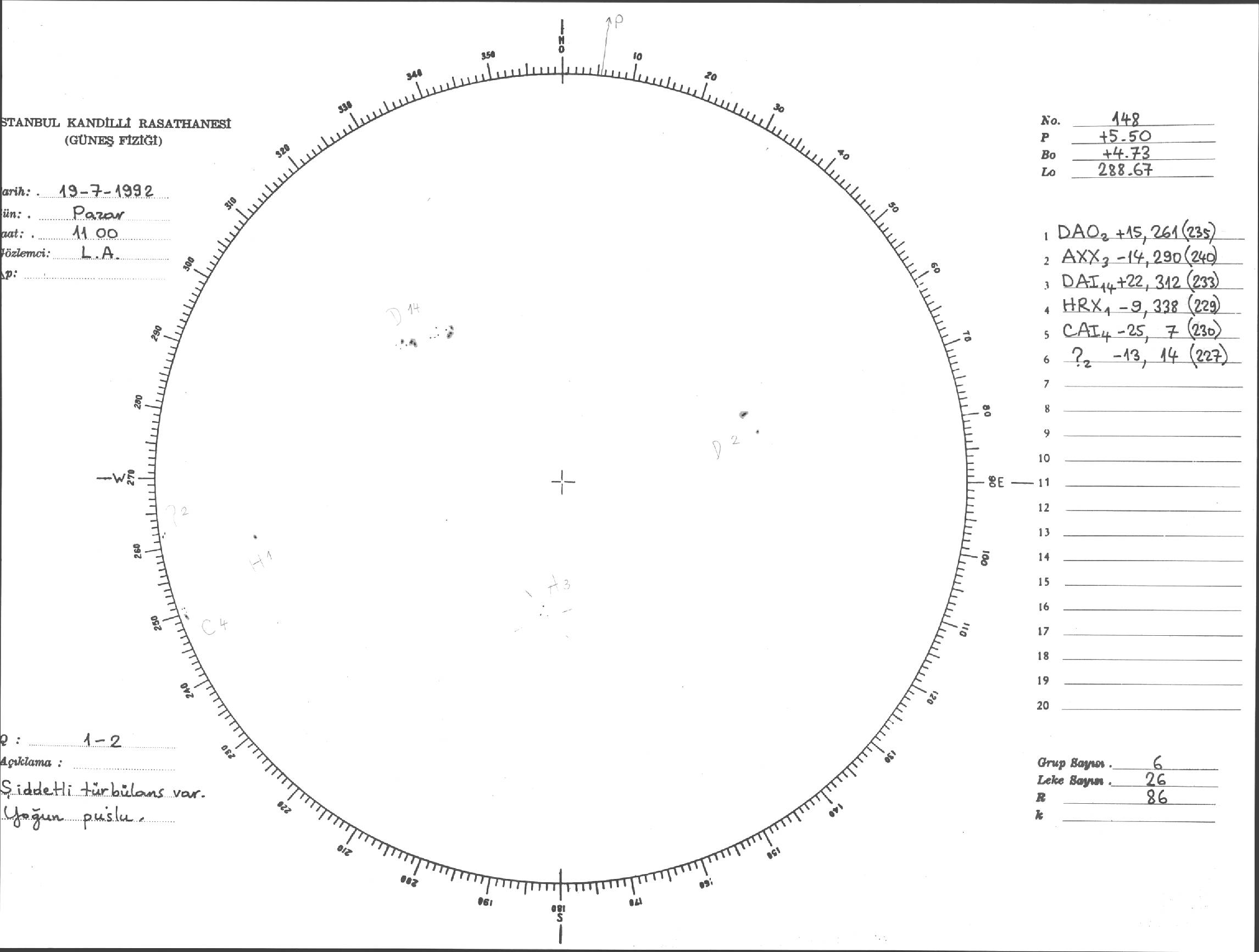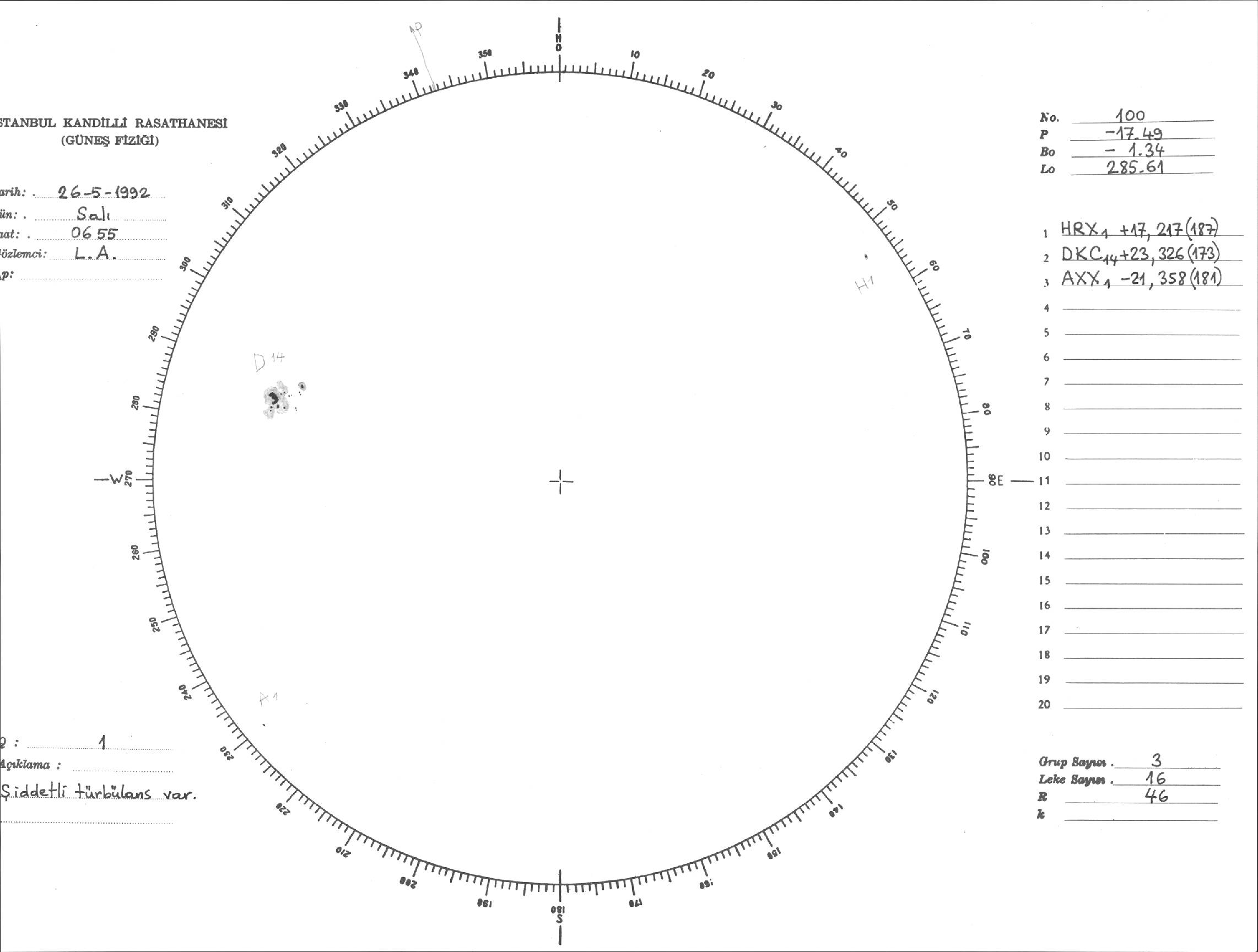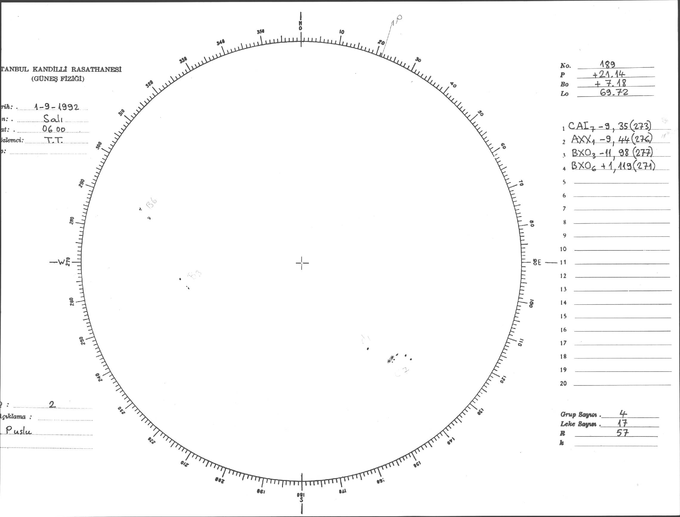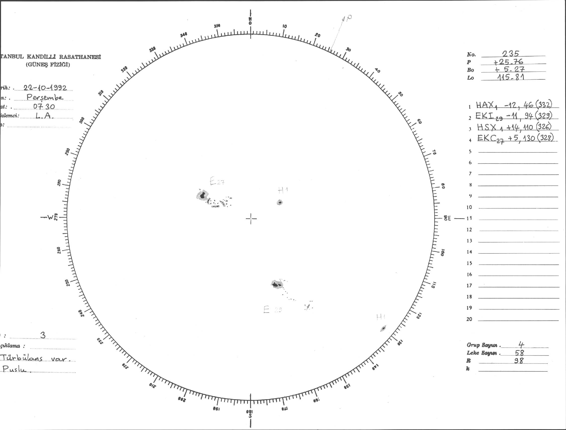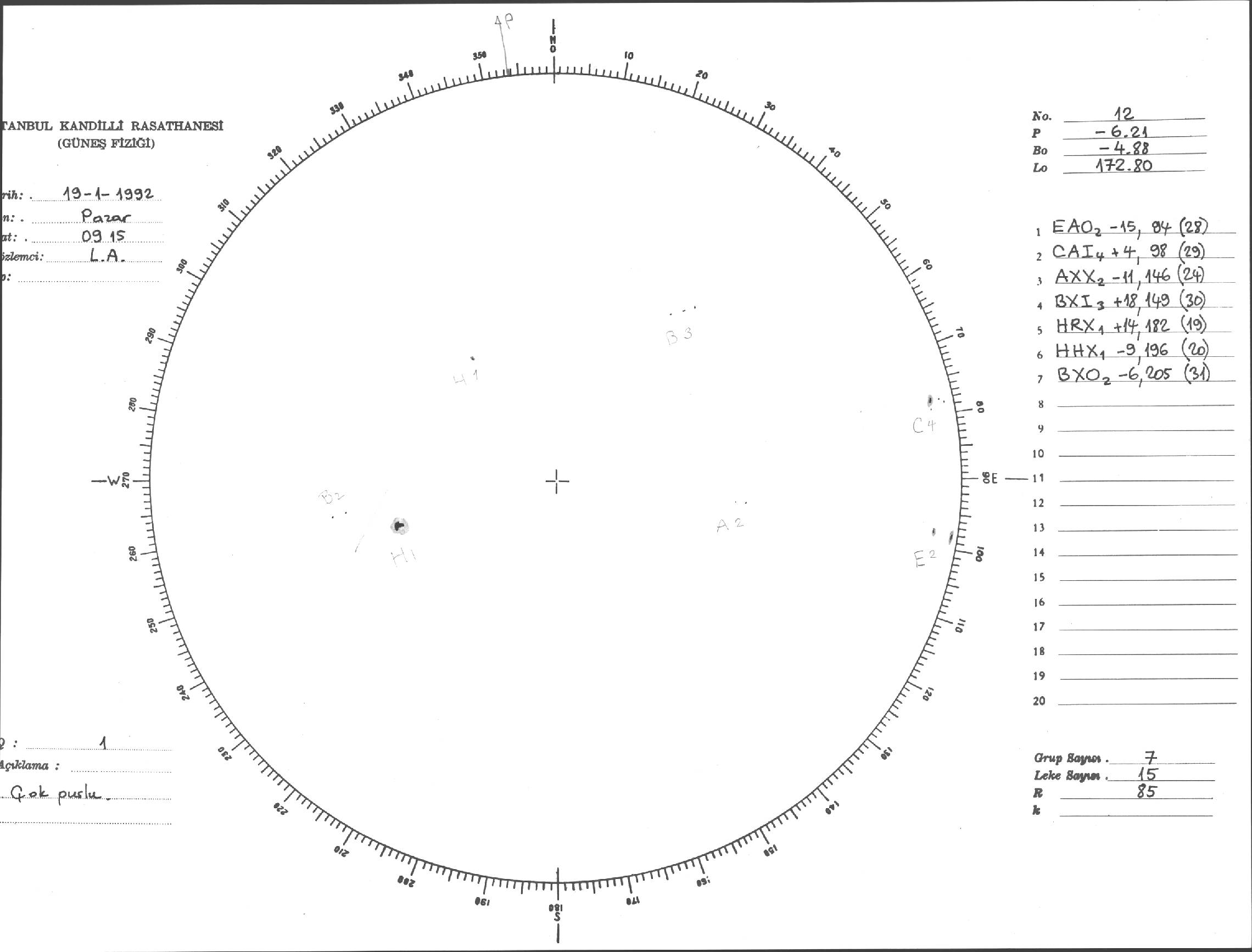 Güneş Lekesi Çizimleri / Kandilli Sunspot Drawings