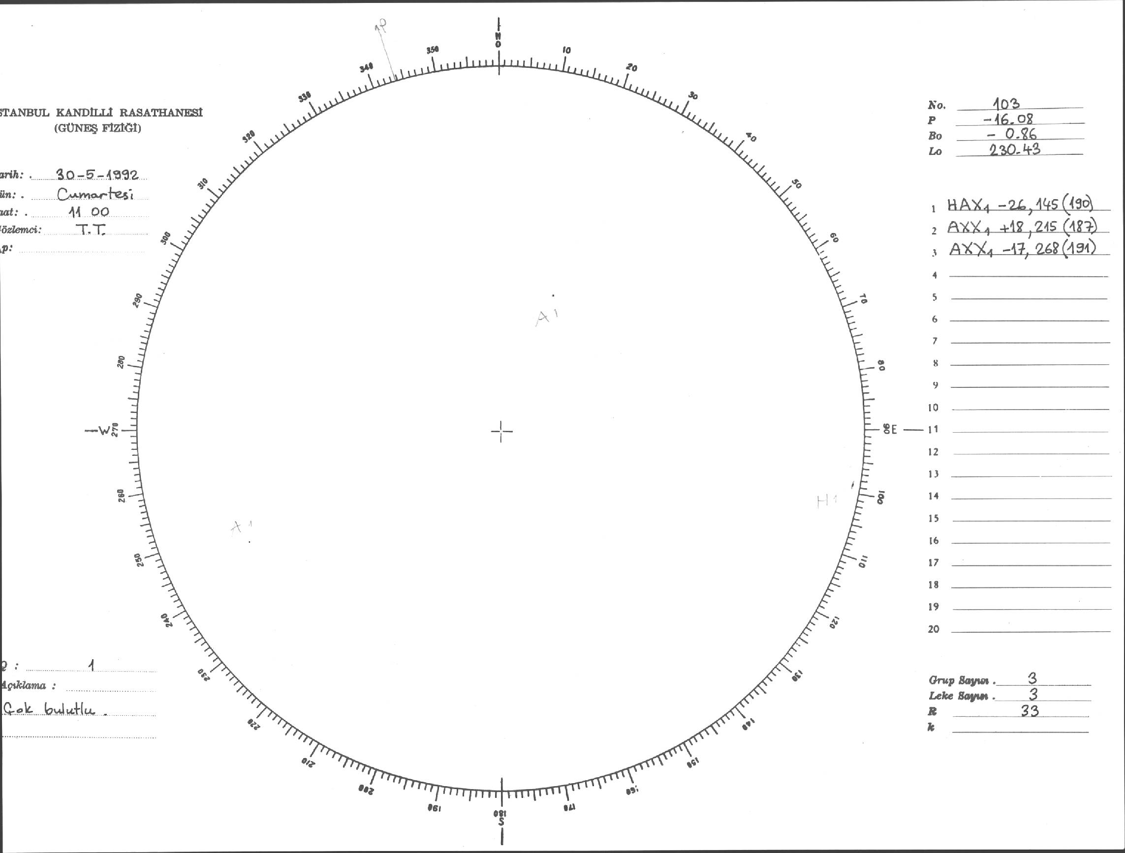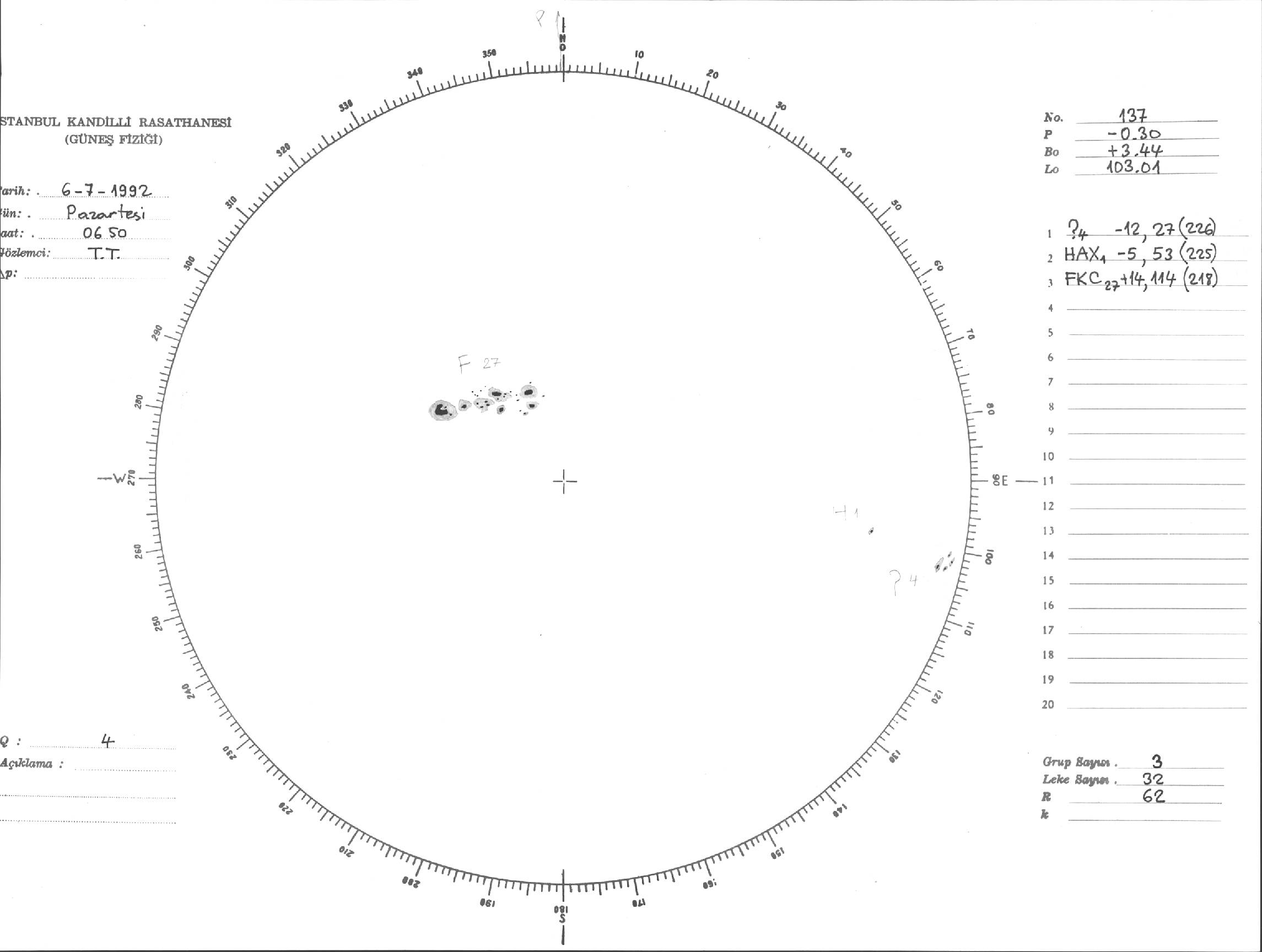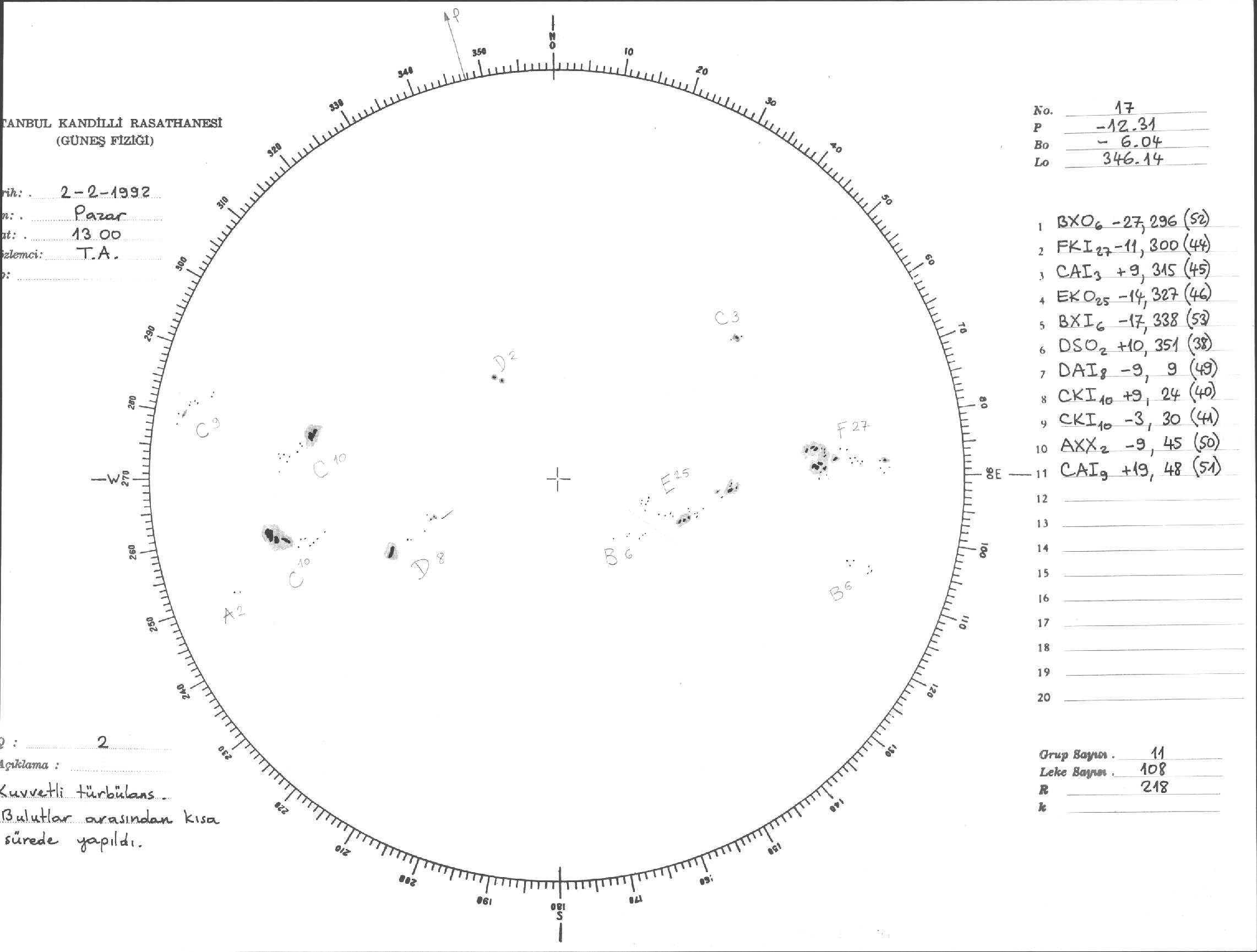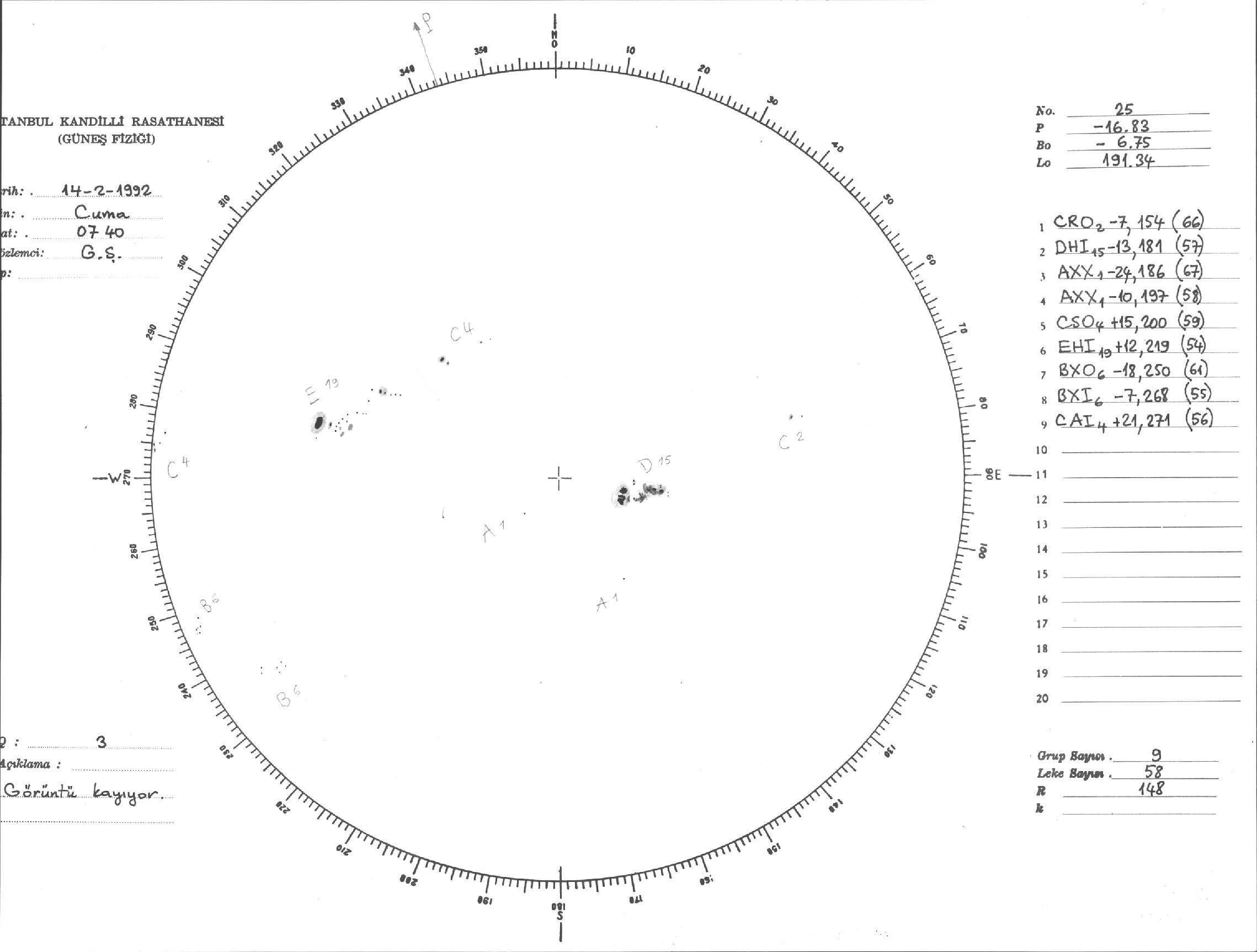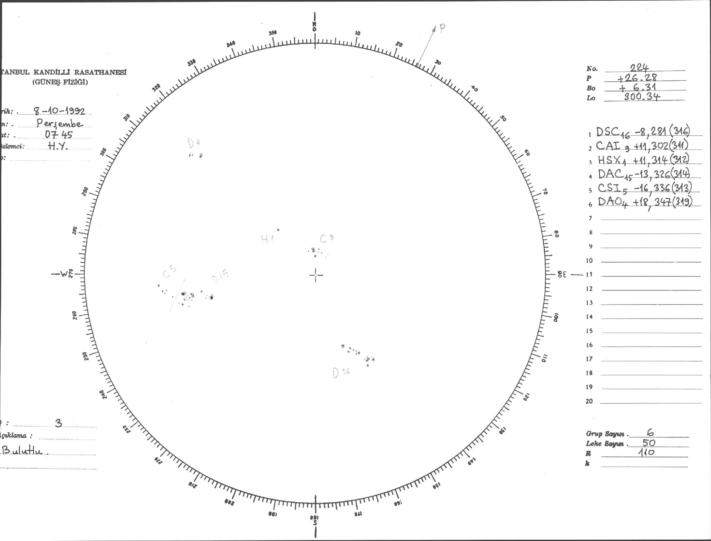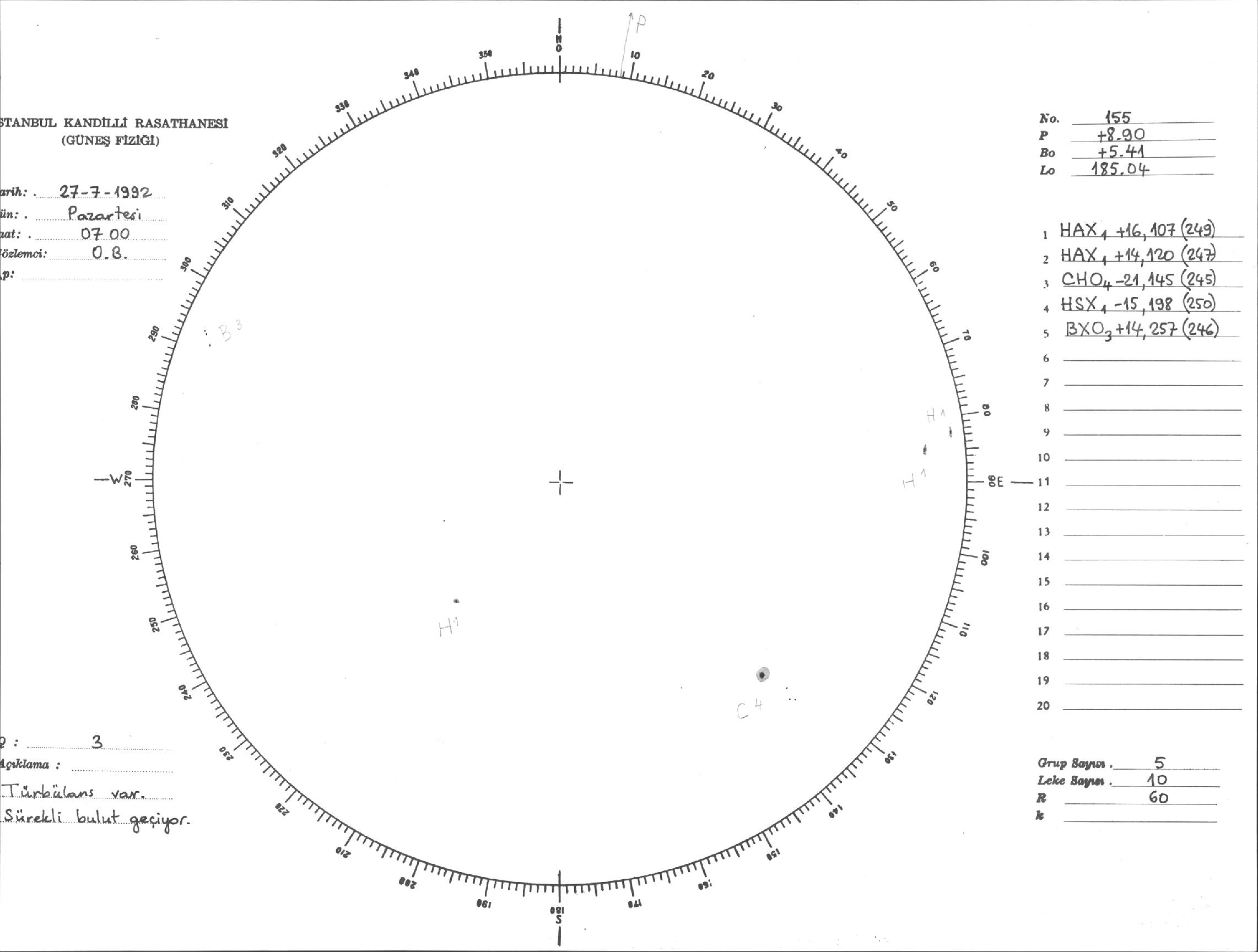 Güneş Lekesi Çizimleri / Kandilli Sunspot Drawings