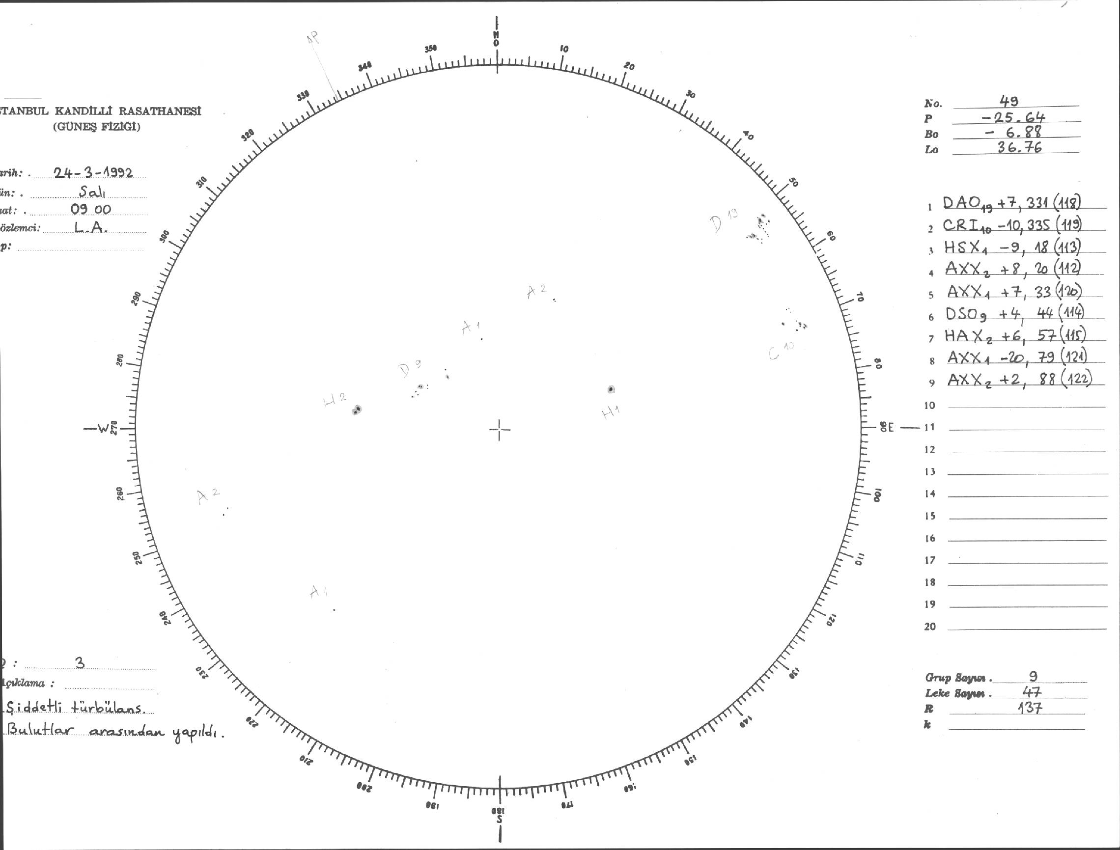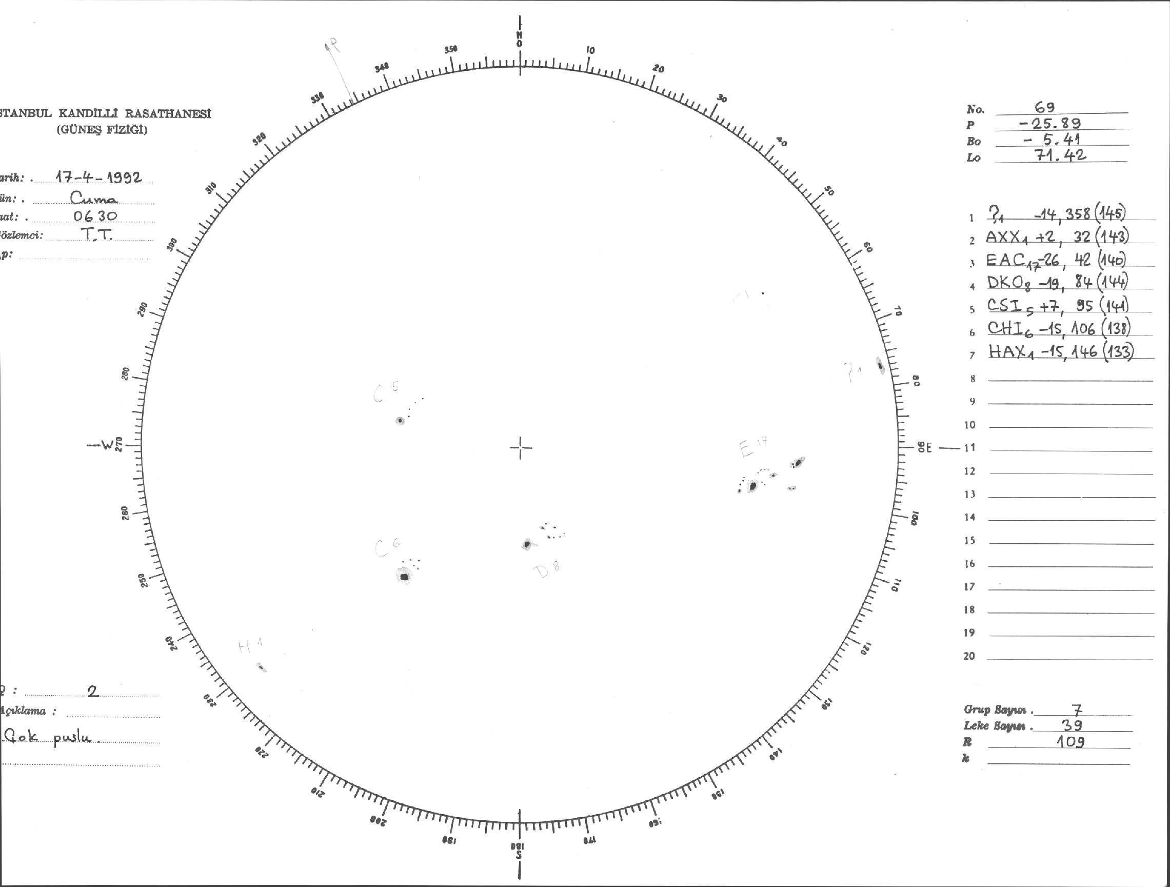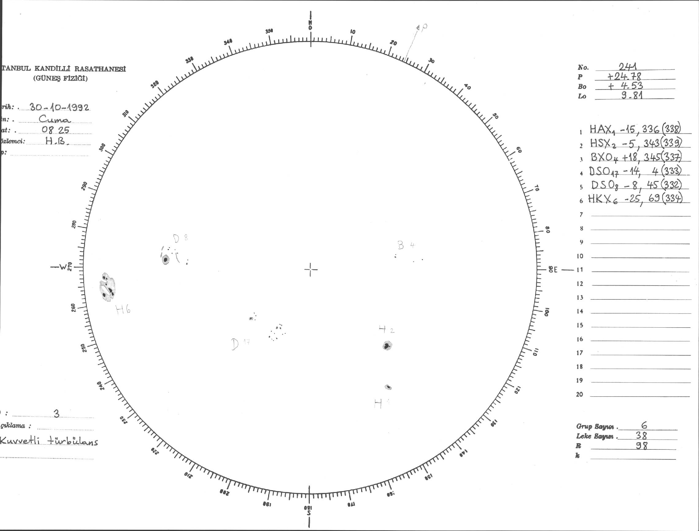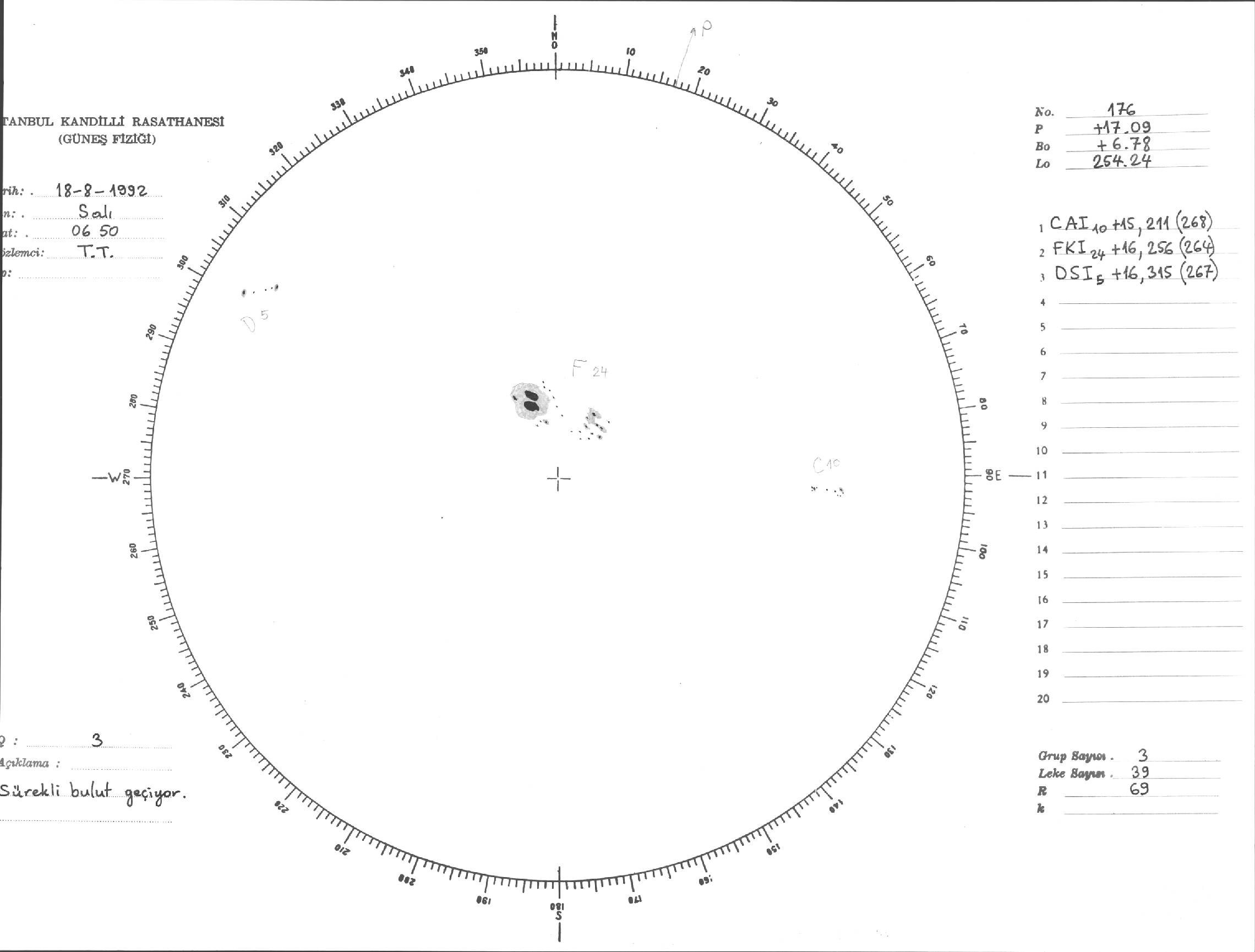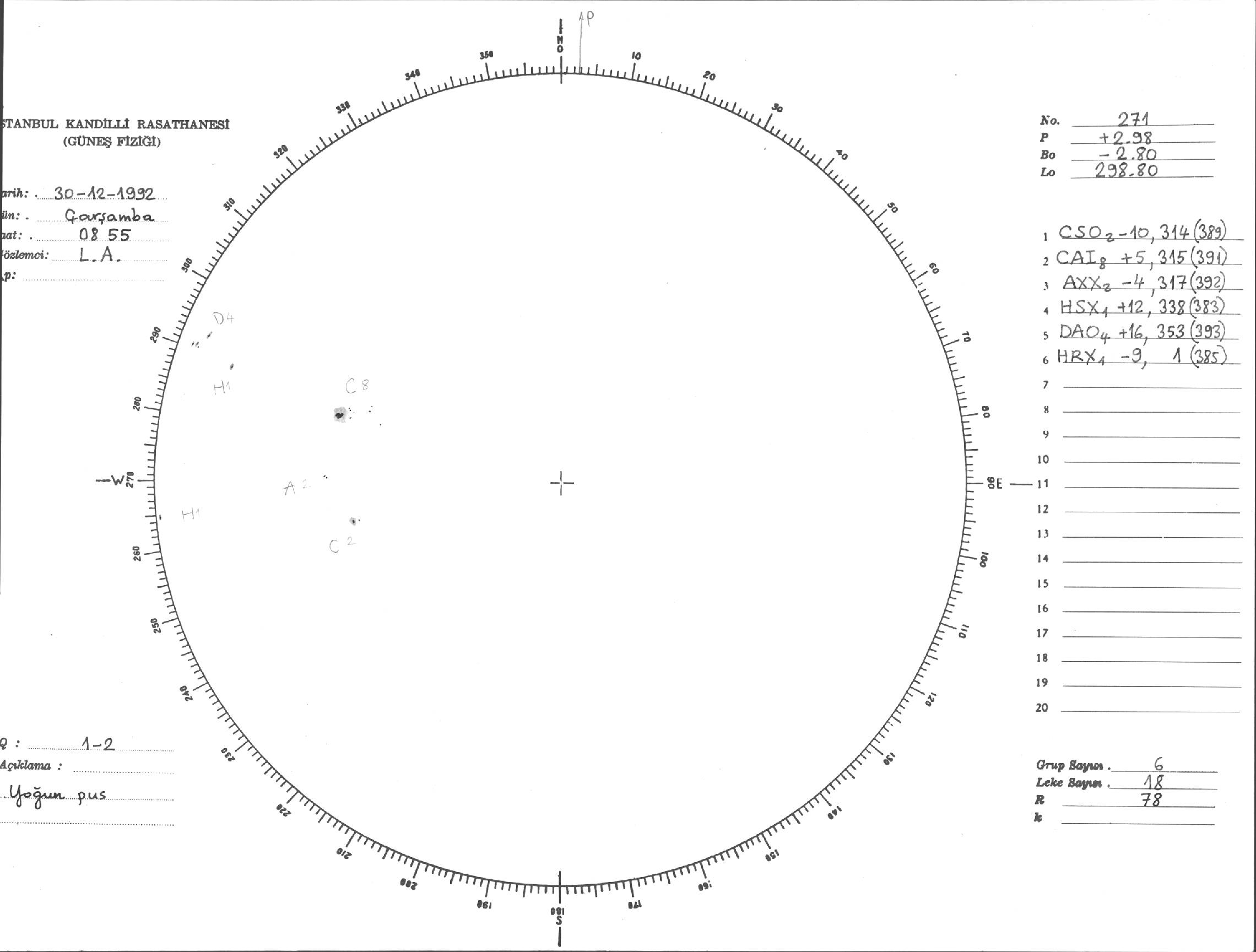 Güneş Lekesi Çizimleri / Kandilli Sunspot Drawings