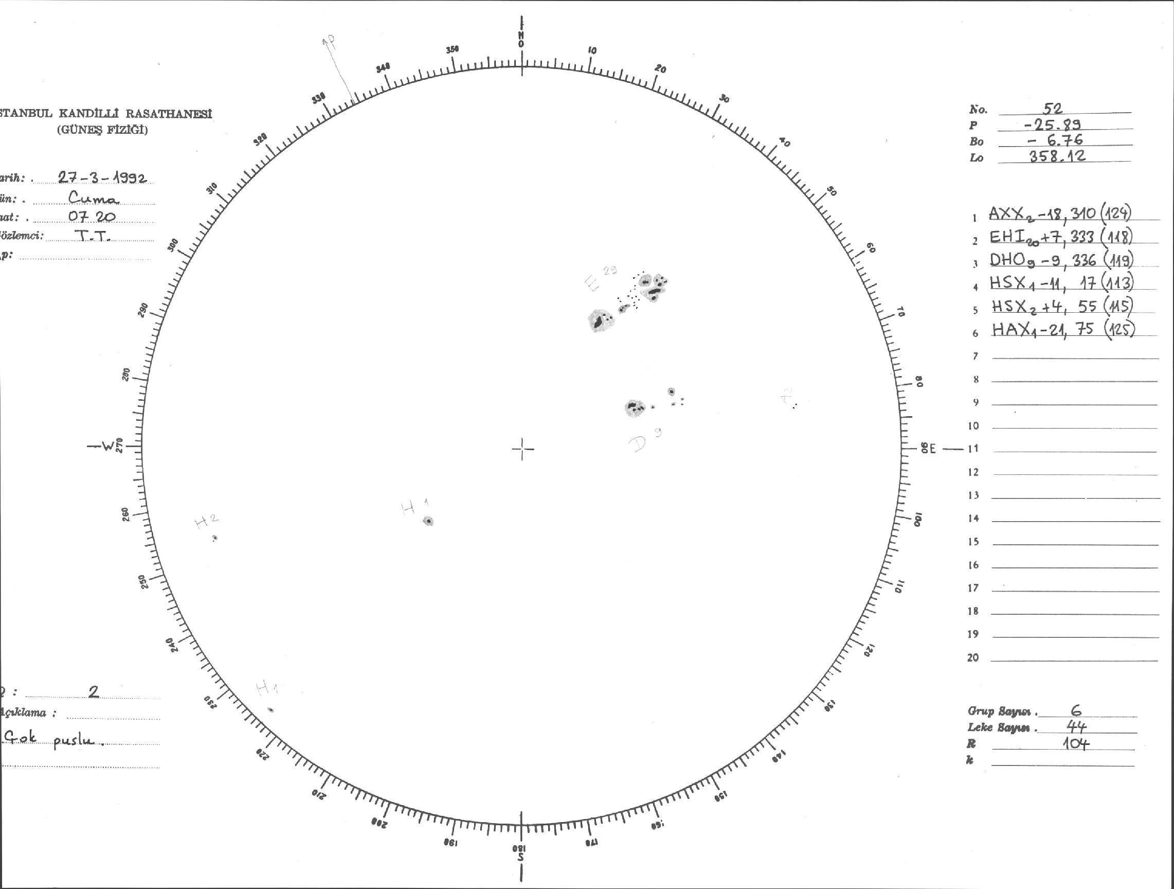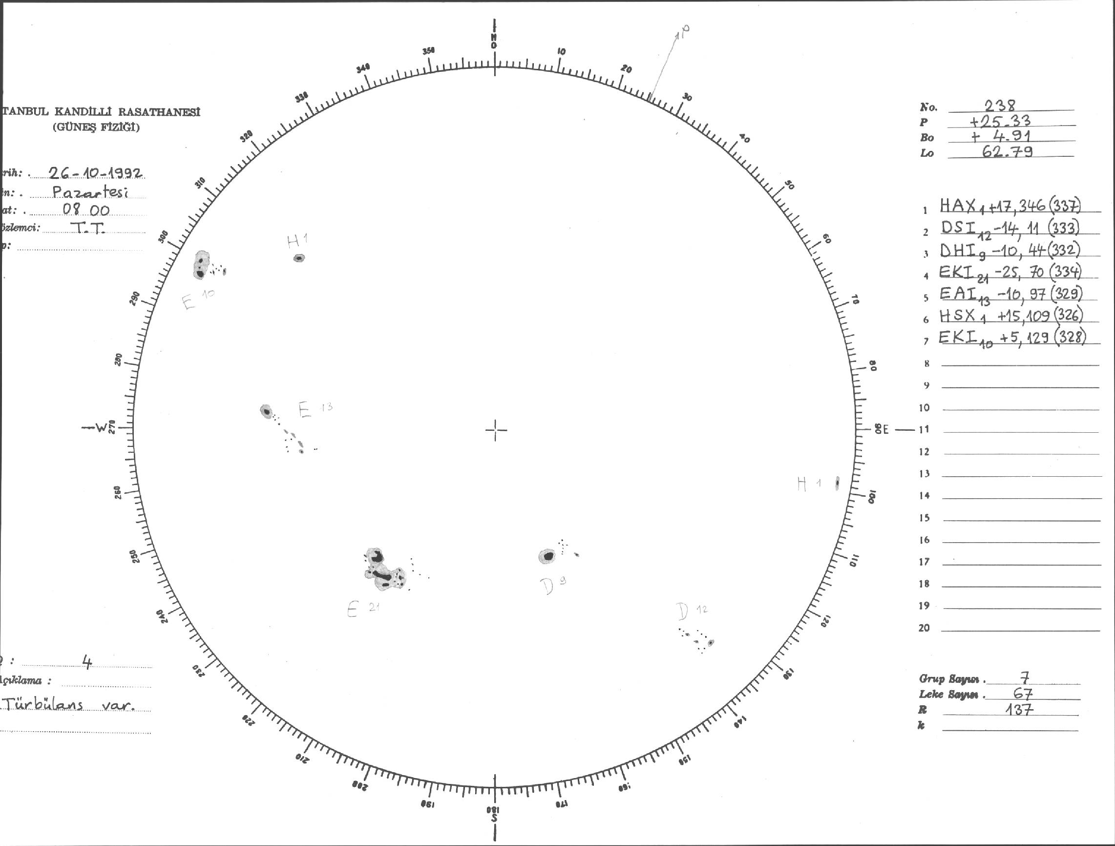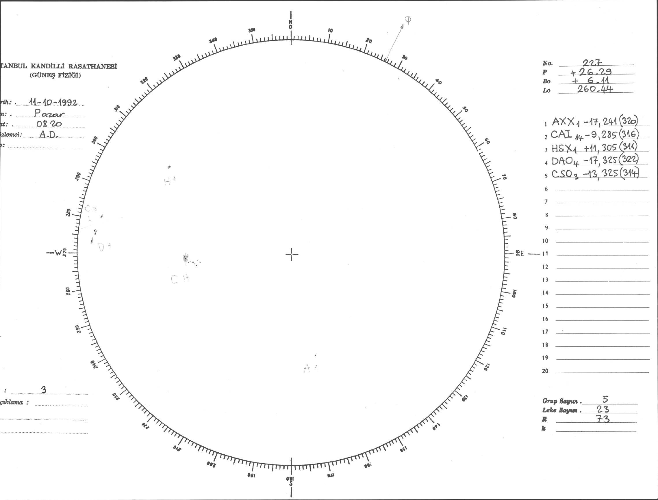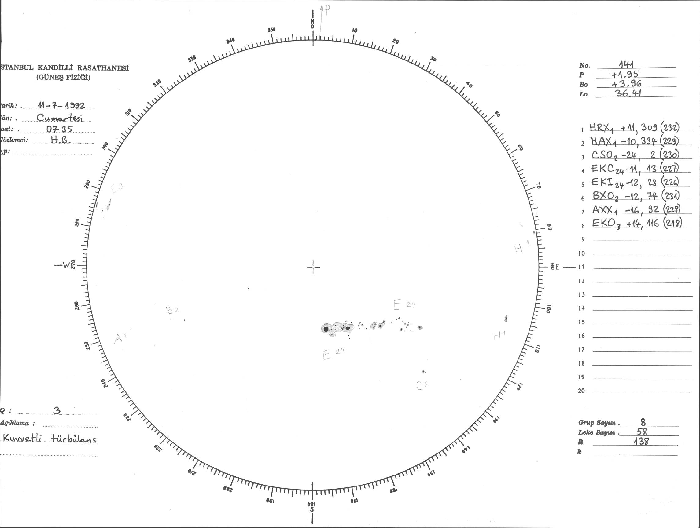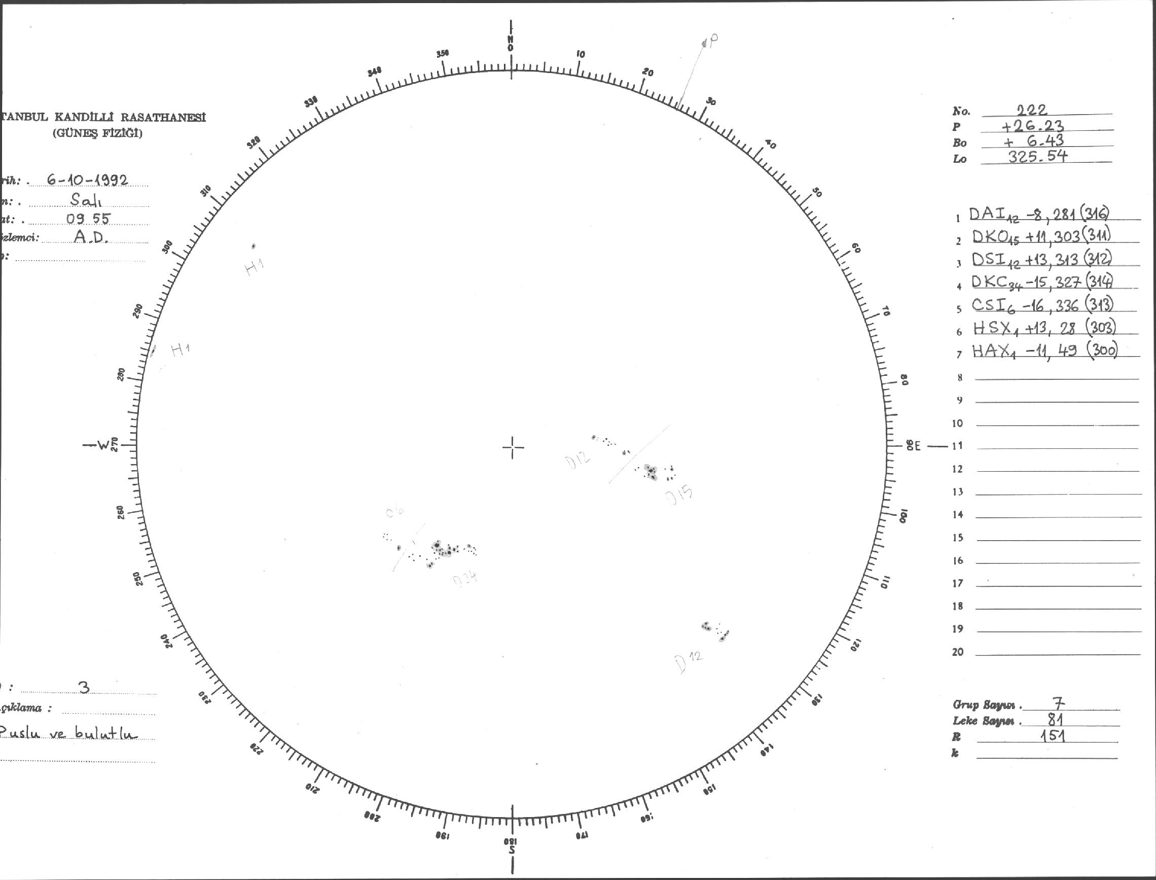 Güneş Lekesi Çizimleri / Kandilli Sunspot Drawings