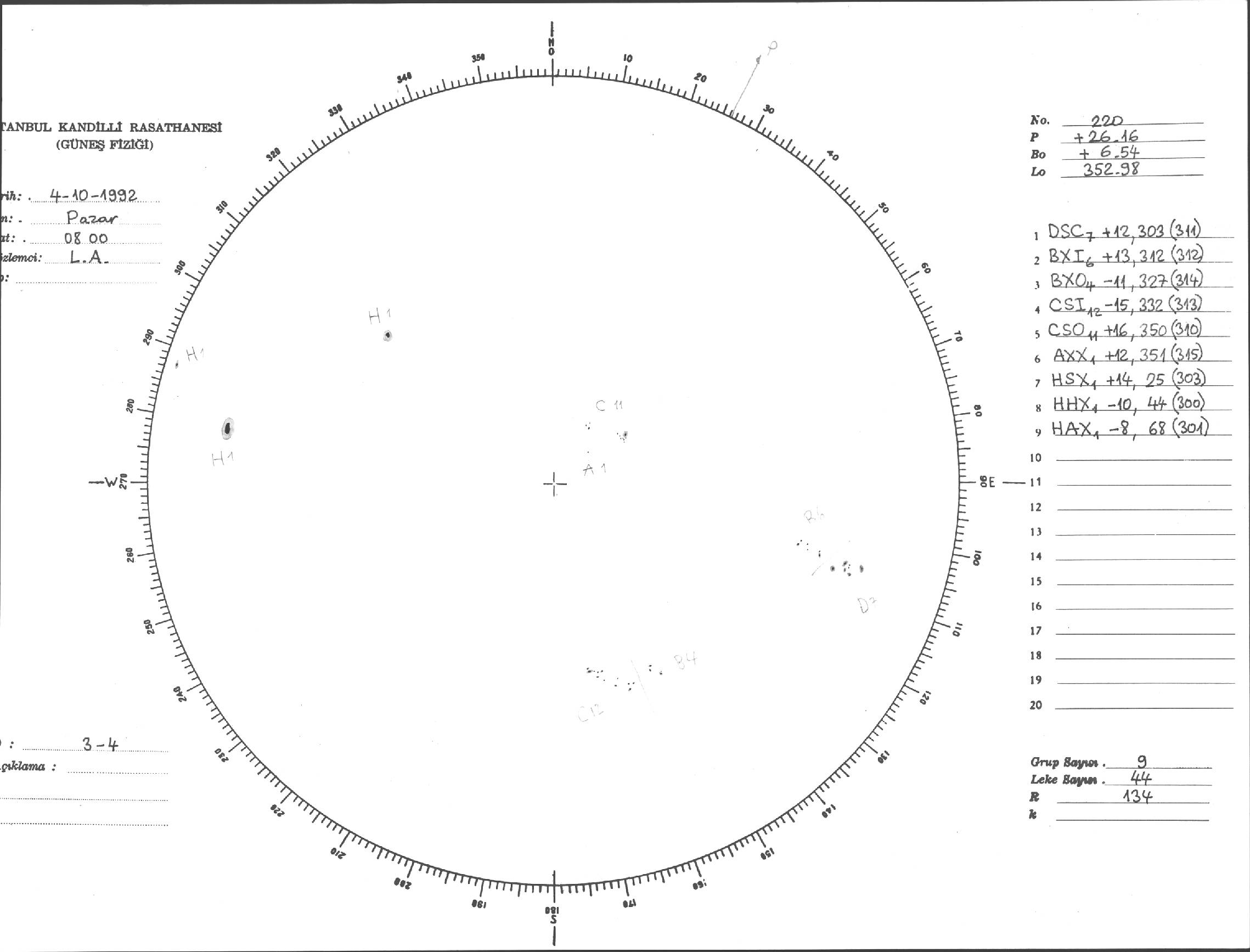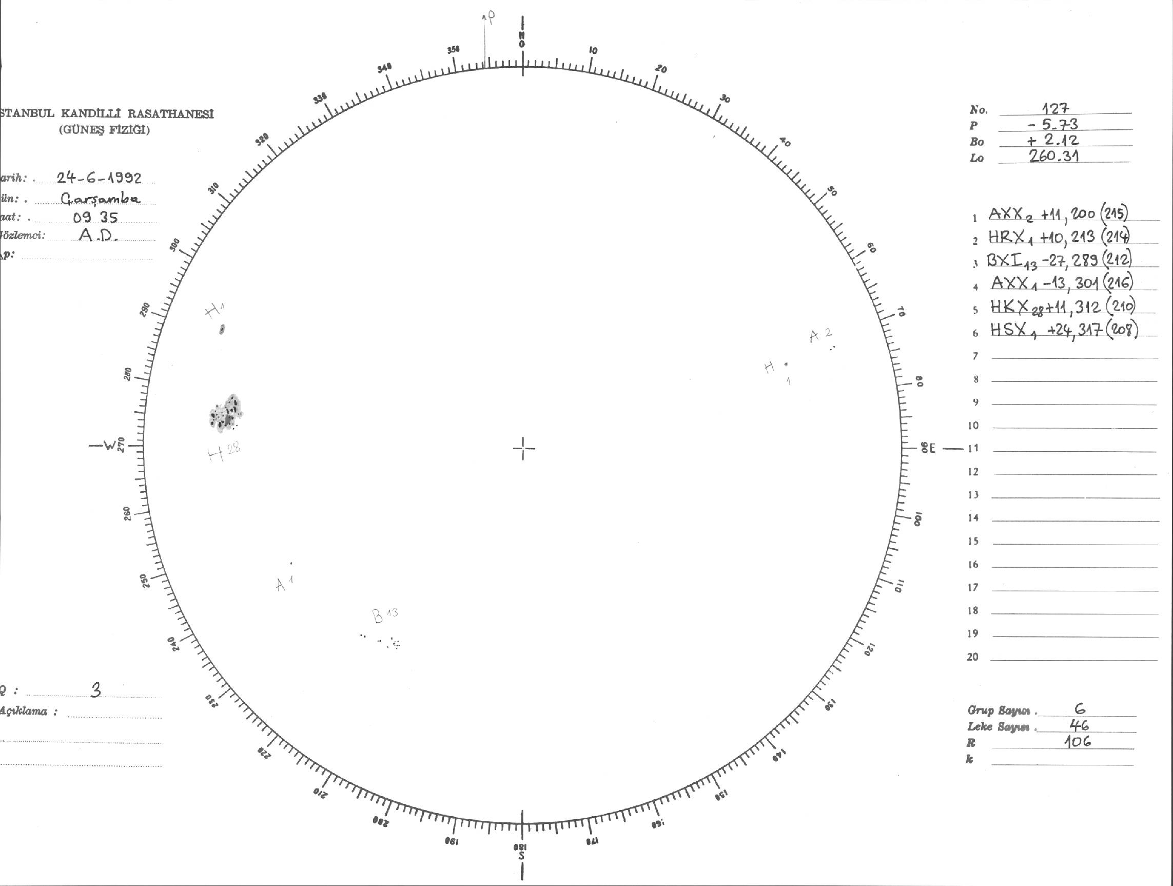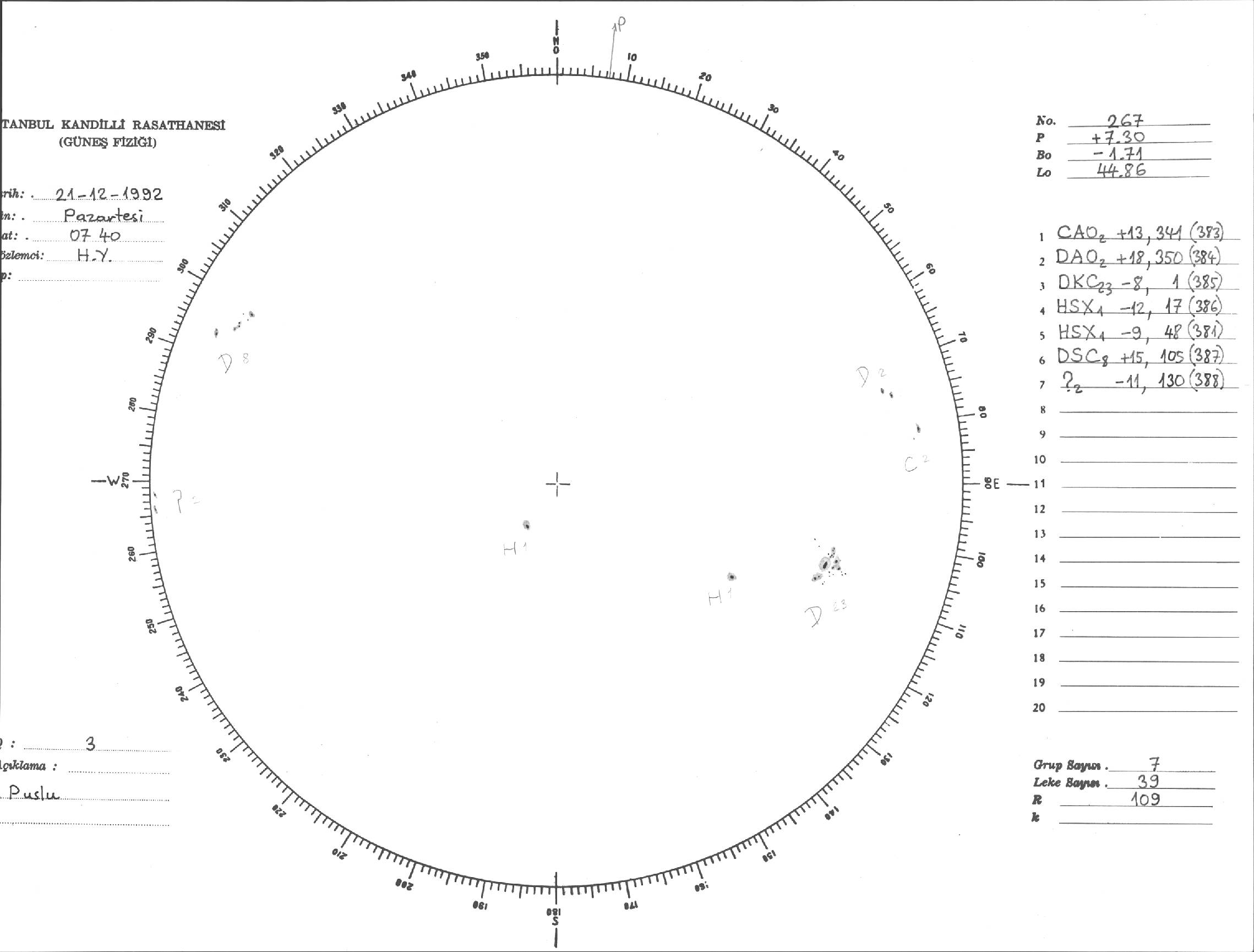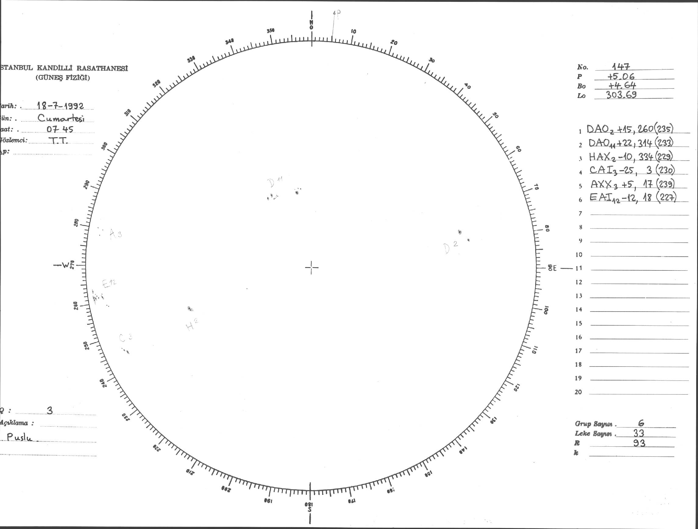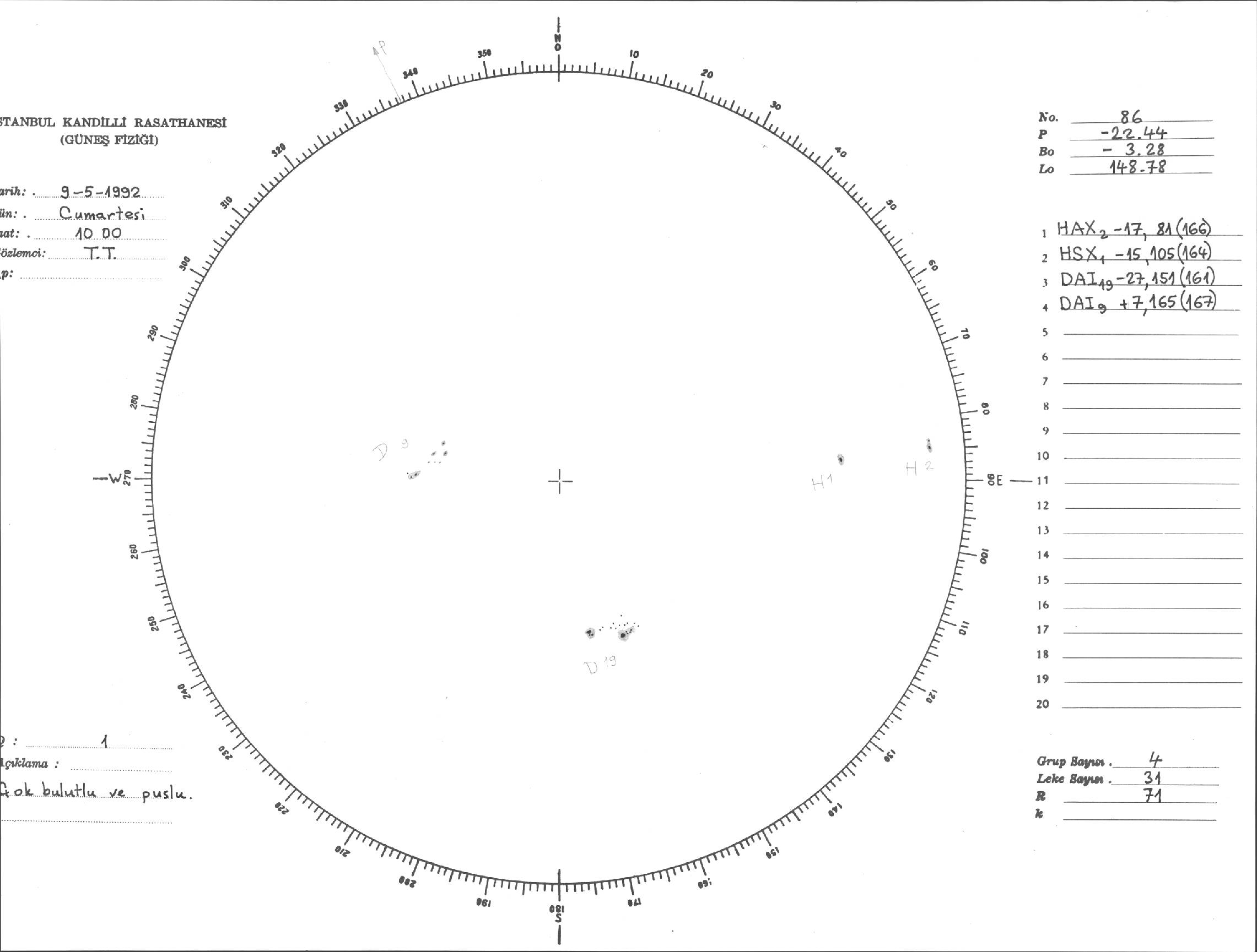 Güneş Lekesi Çizimleri / Kandilli Sunspot Drawings