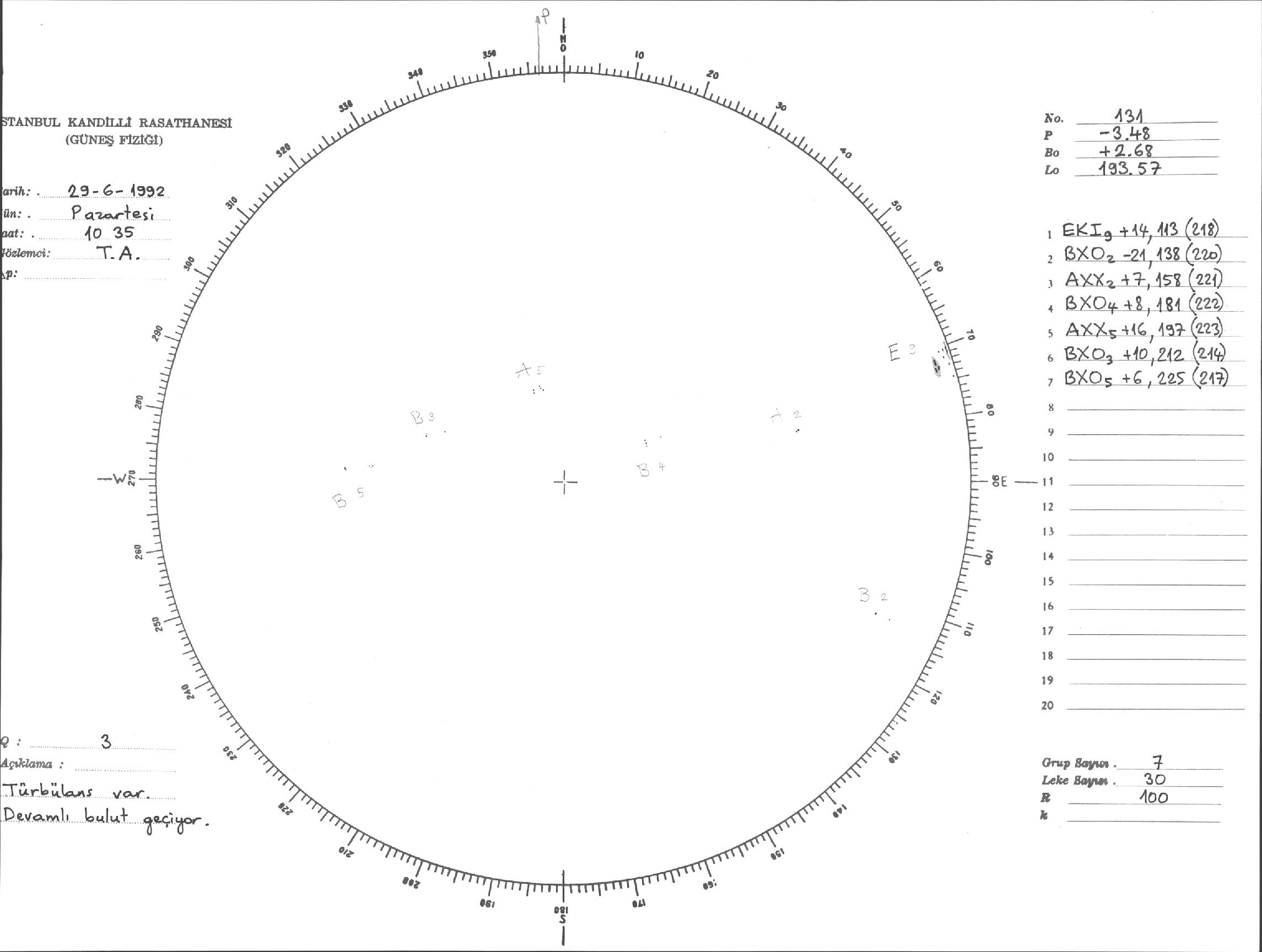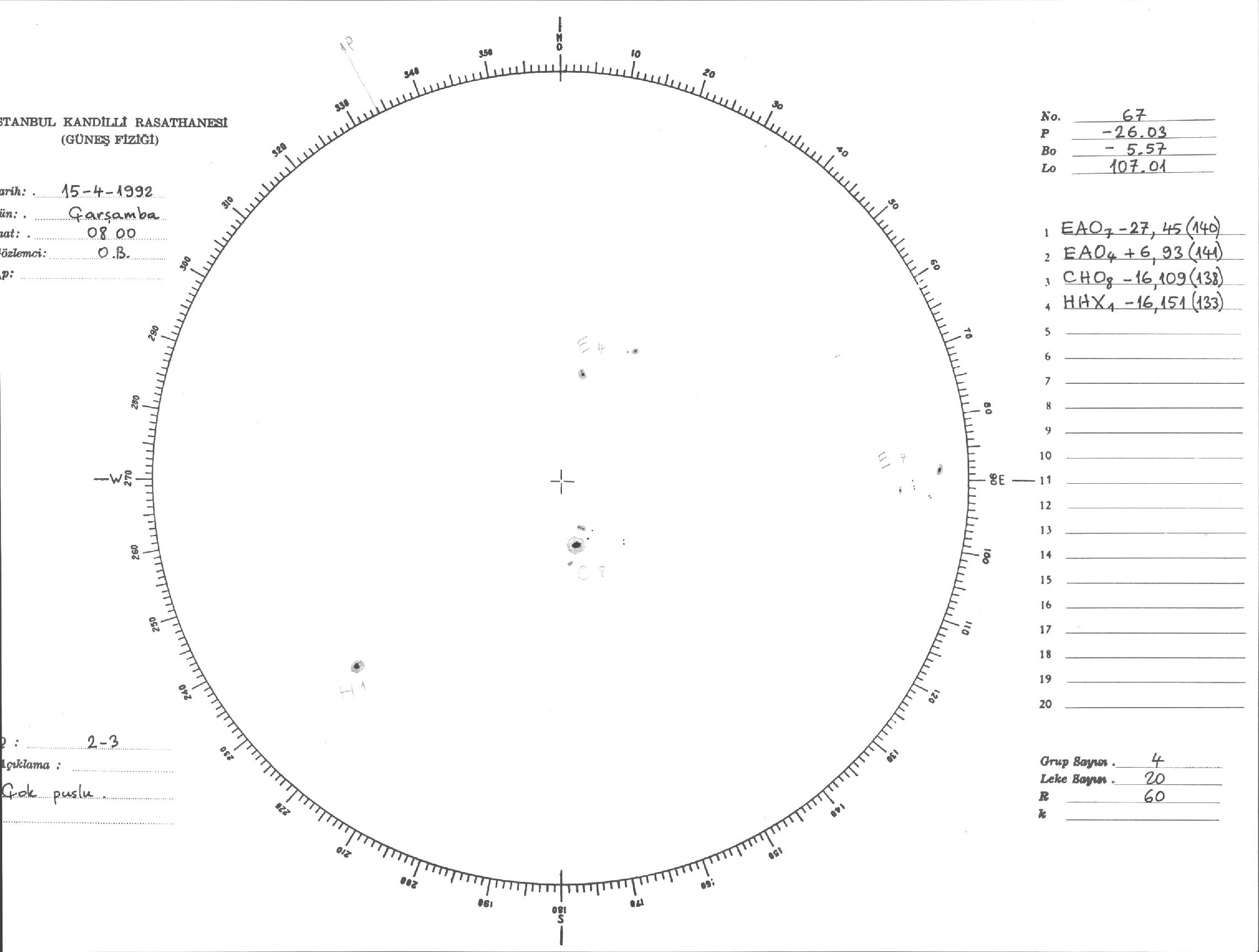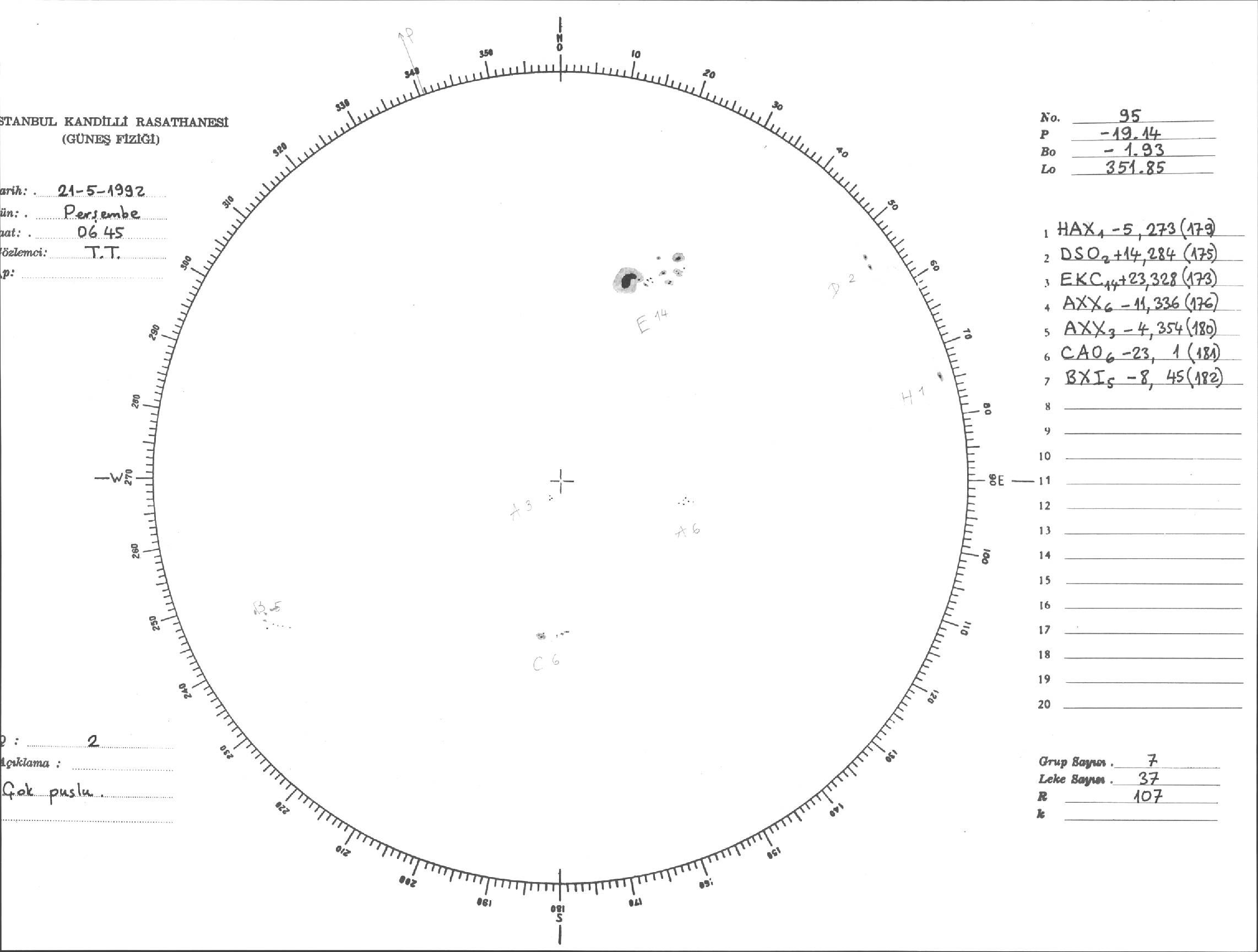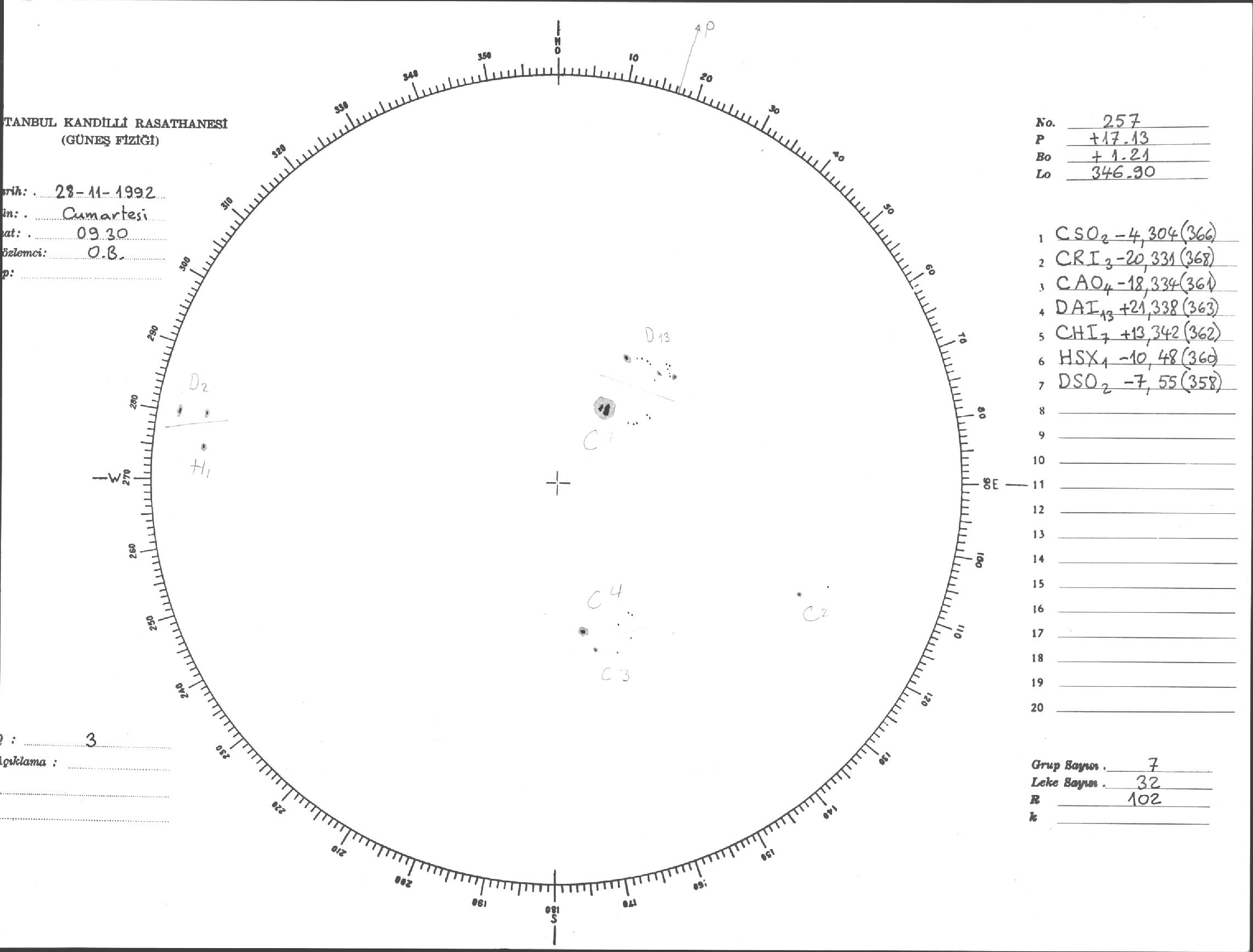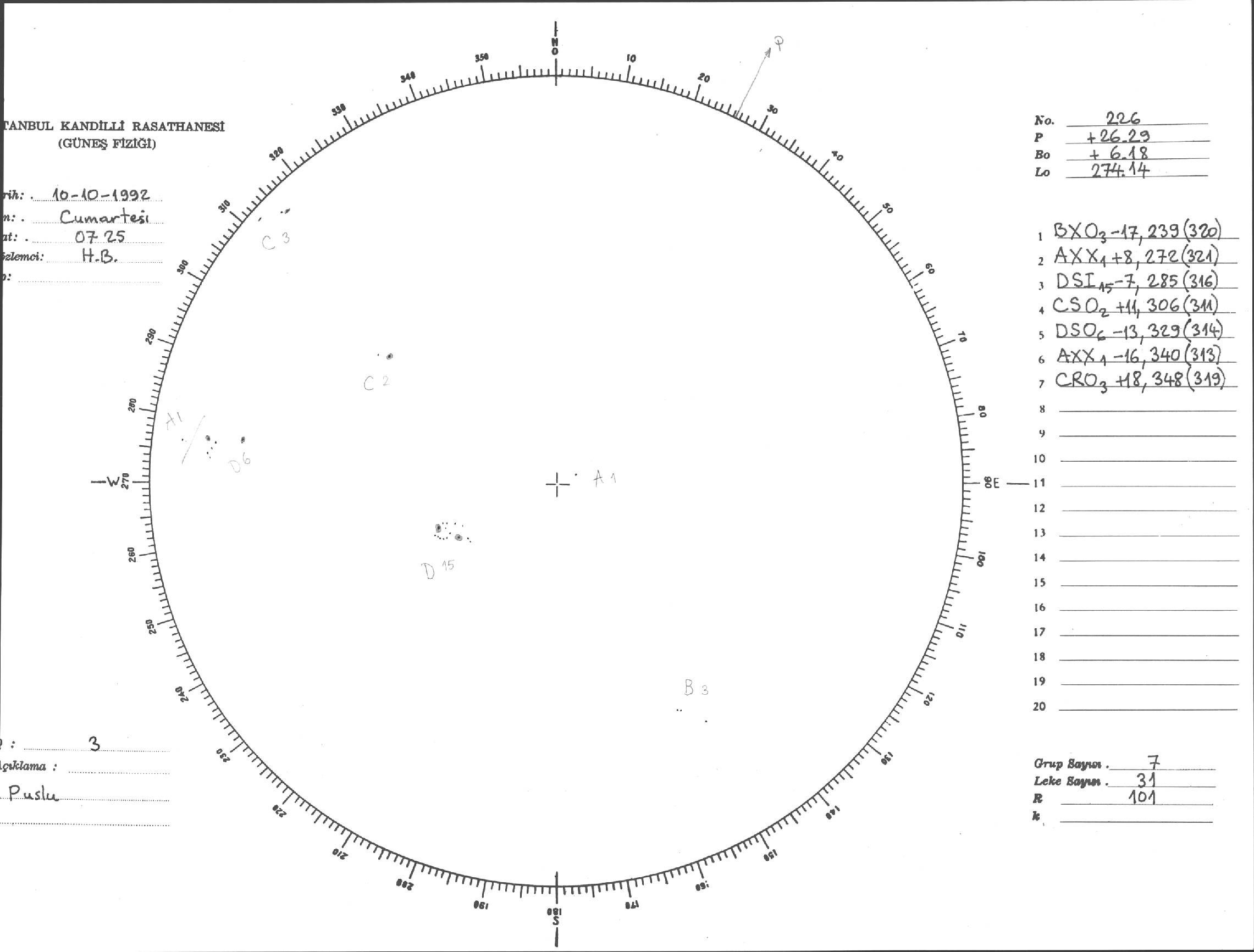 Güneş Lekesi Çizimleri / Kandilli Sunspot Drawings