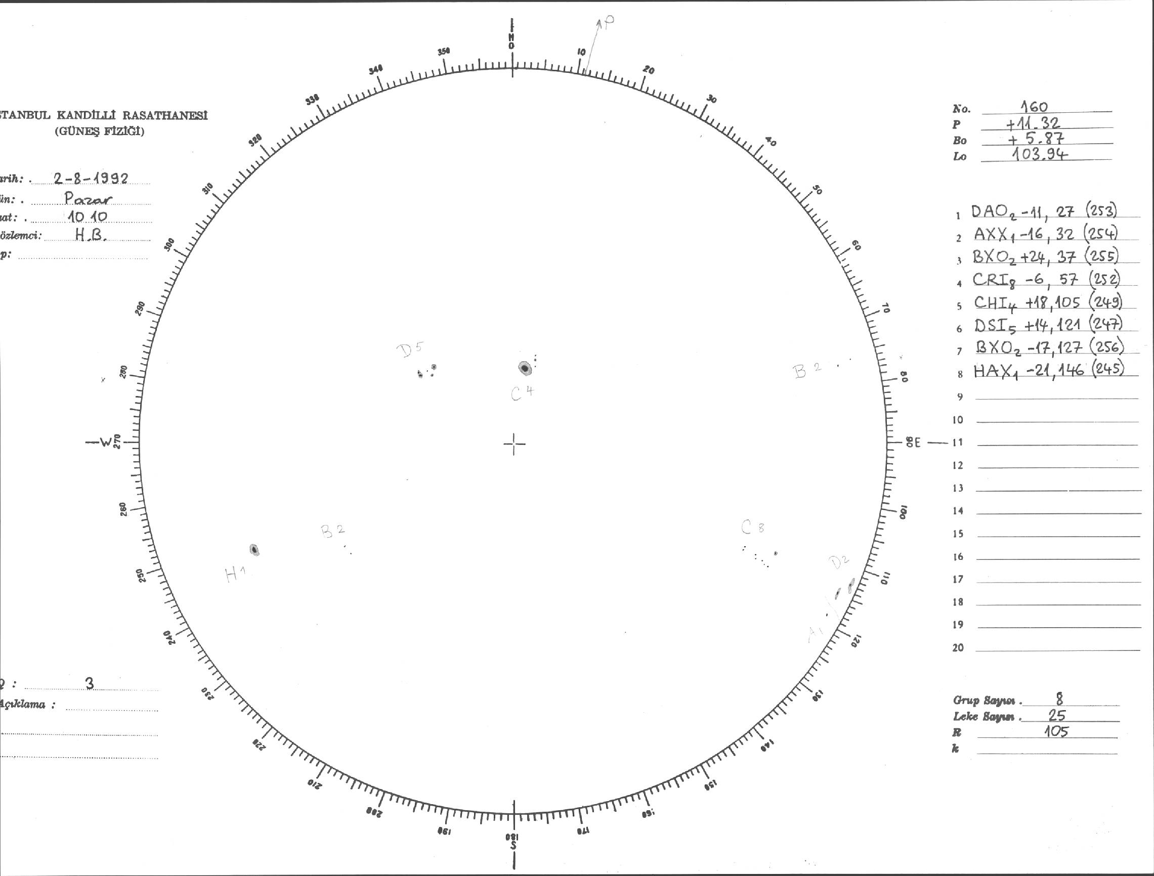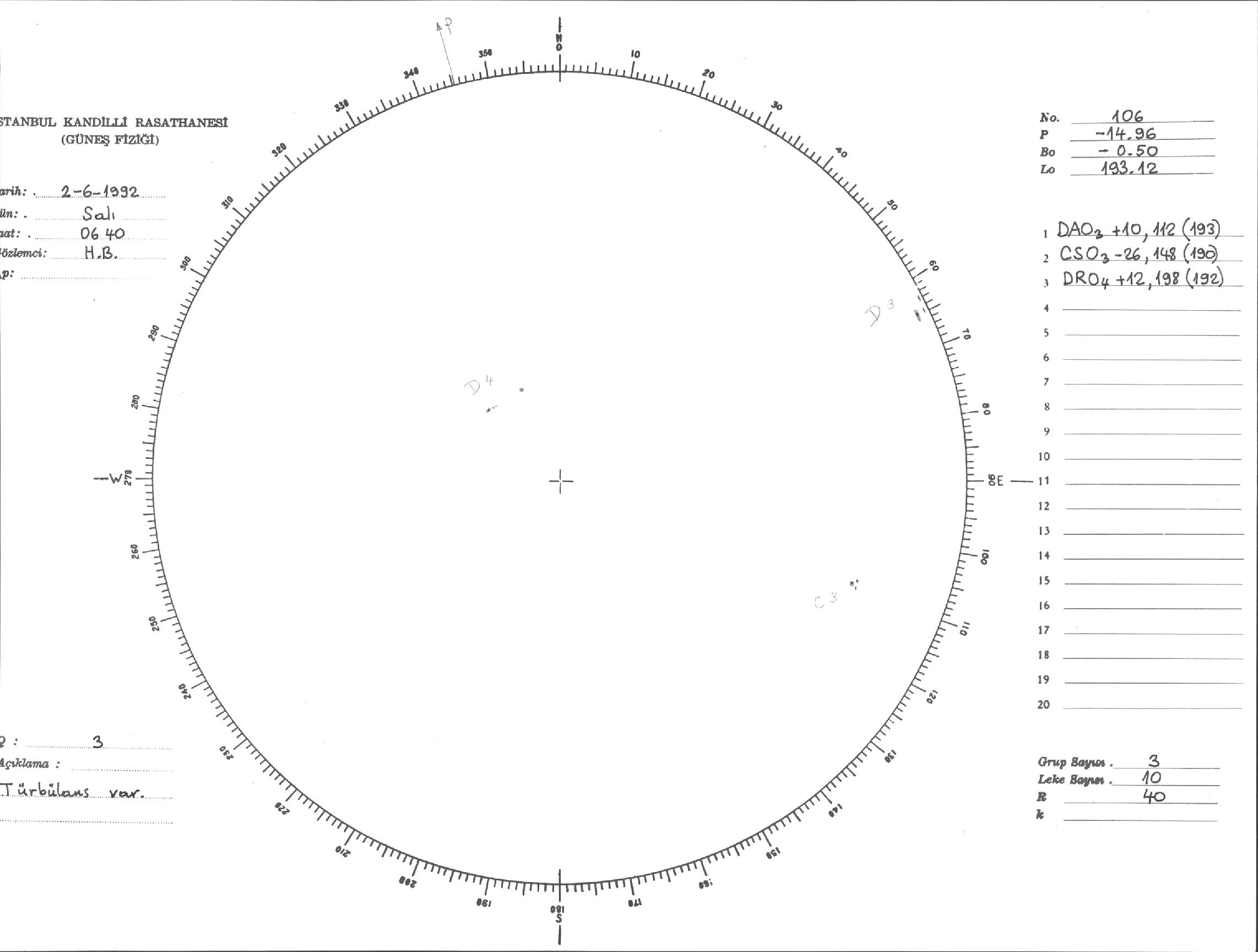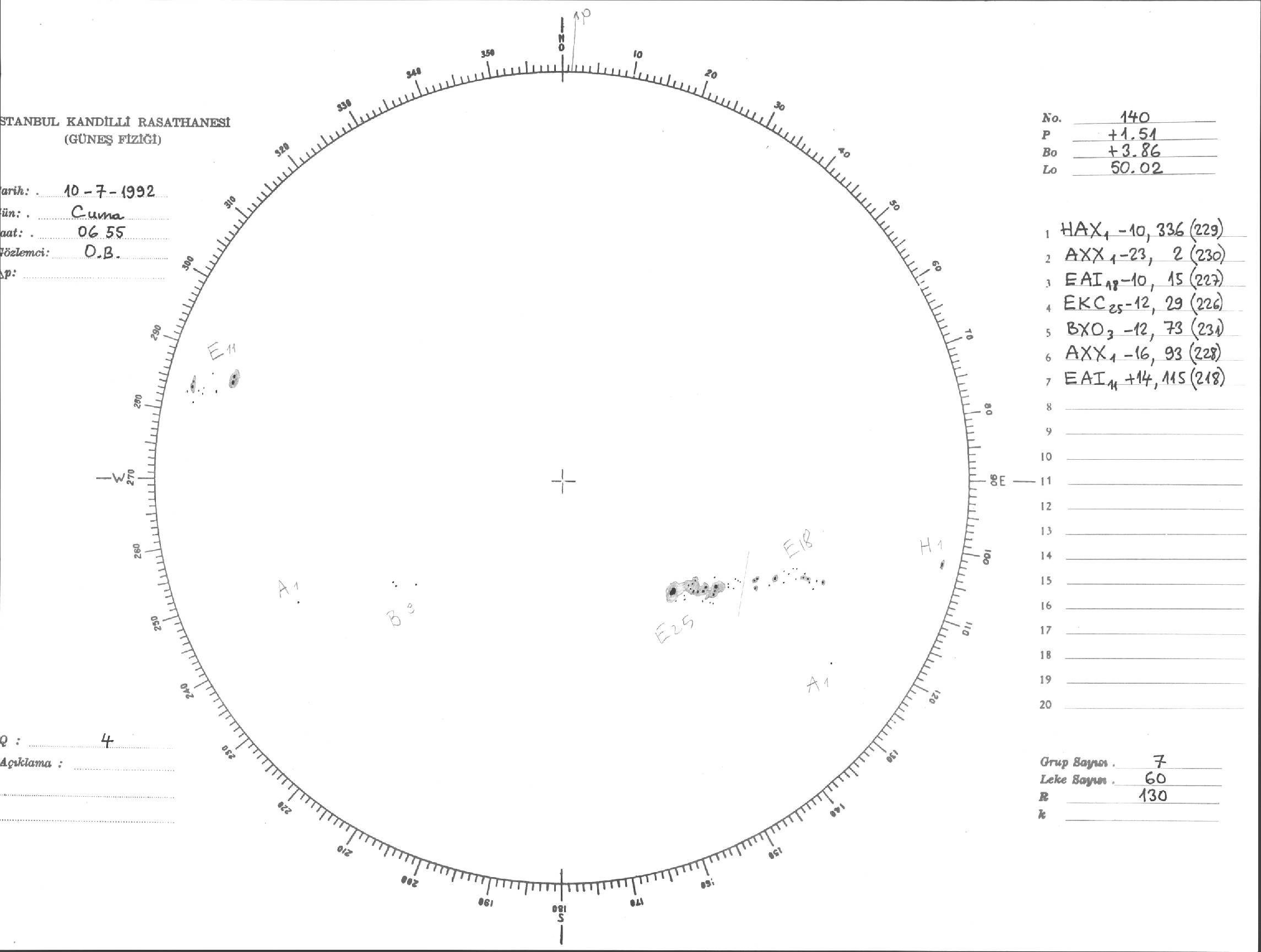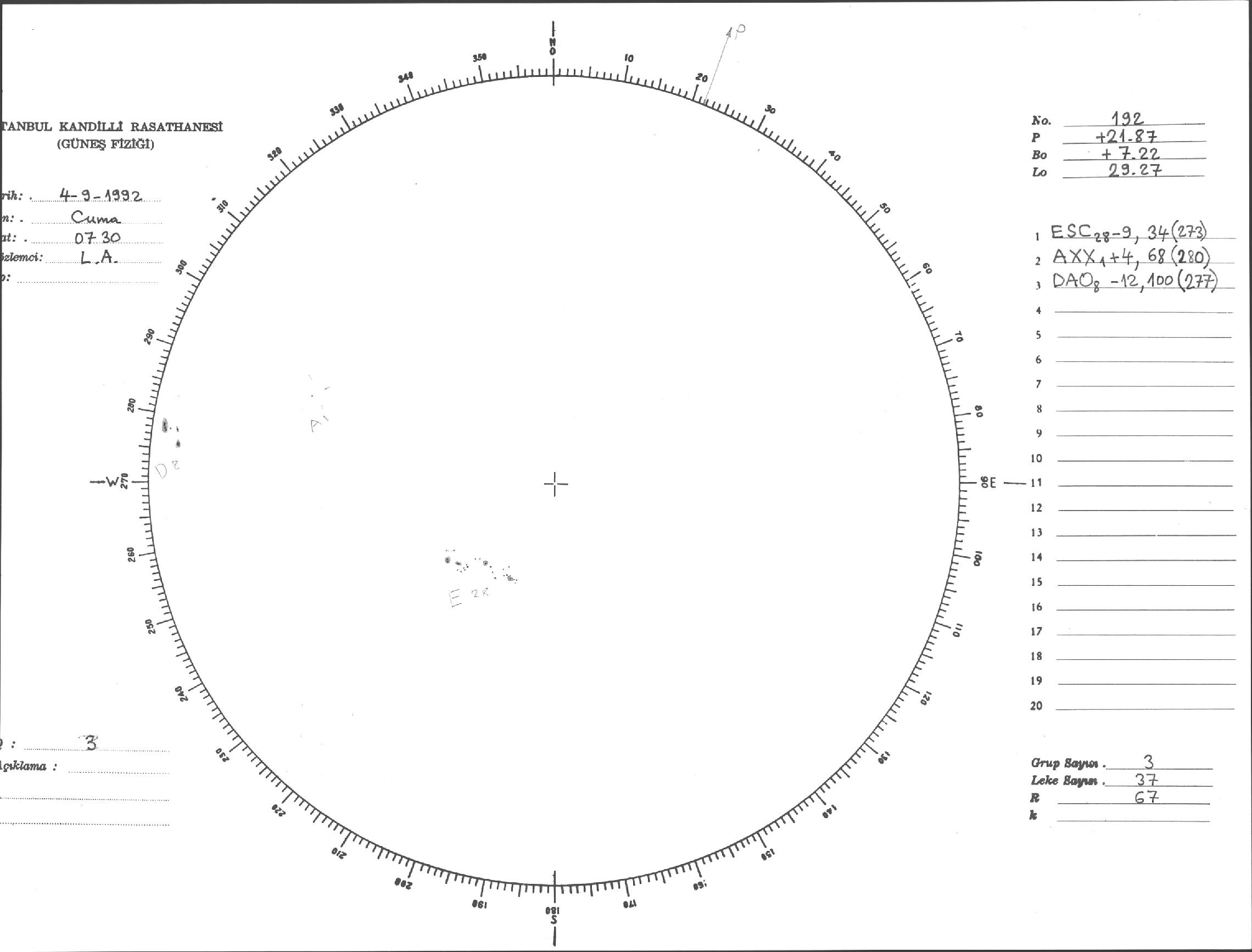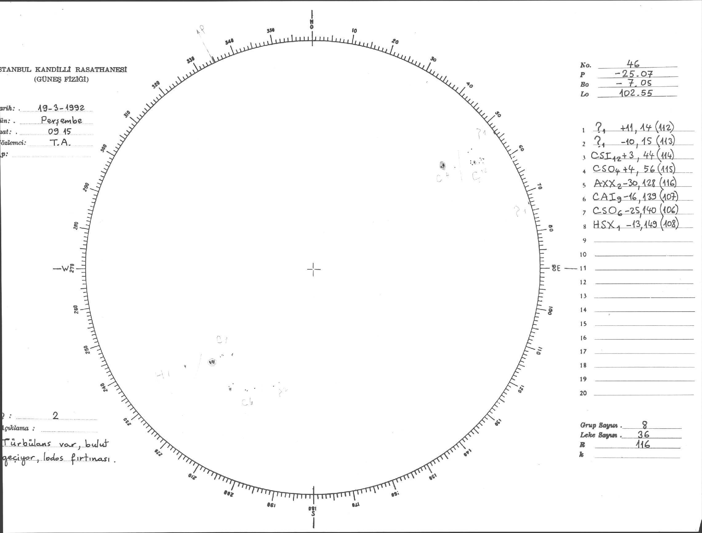 Güneş Lekesi Çizimleri / Kandilli Sunspot Drawings