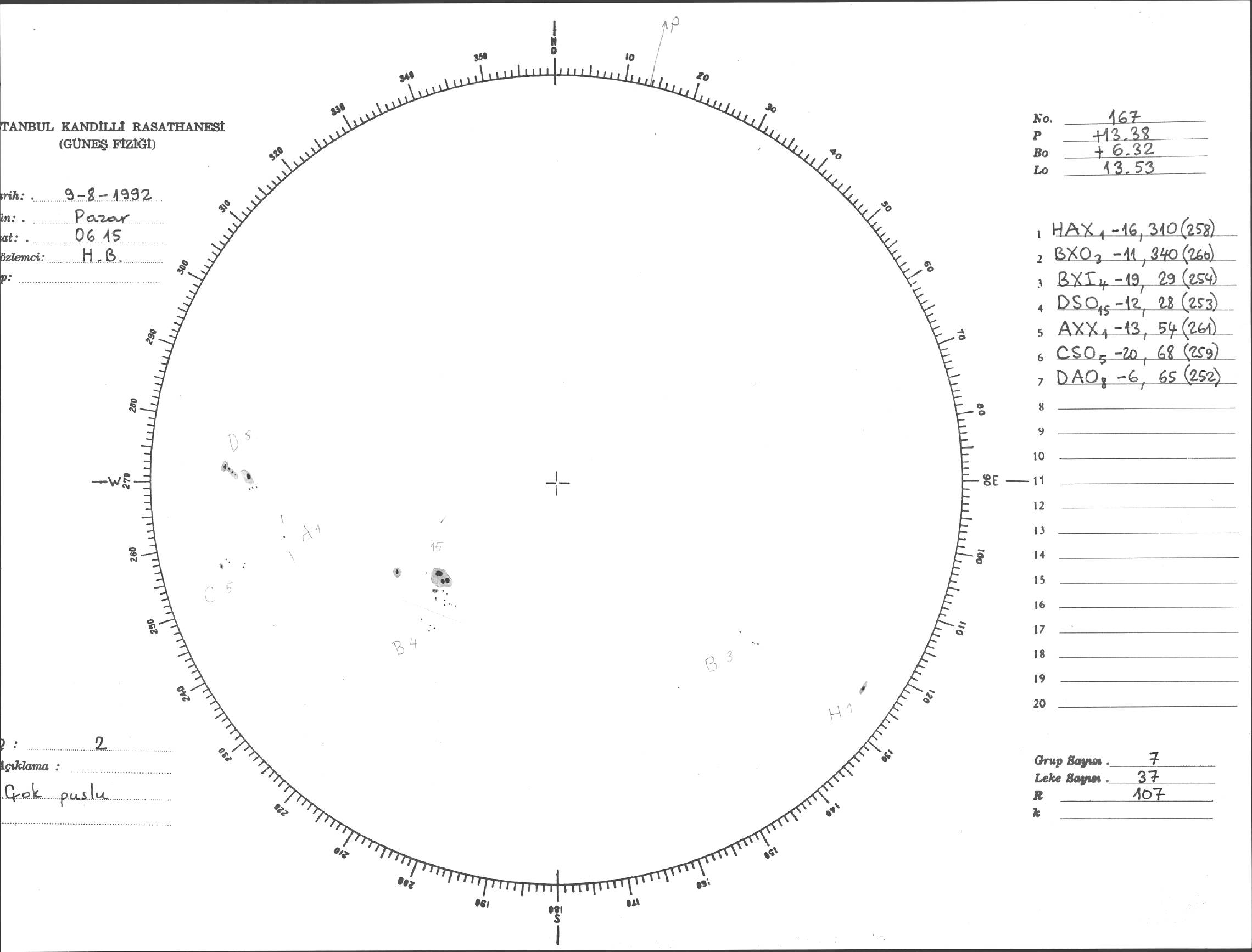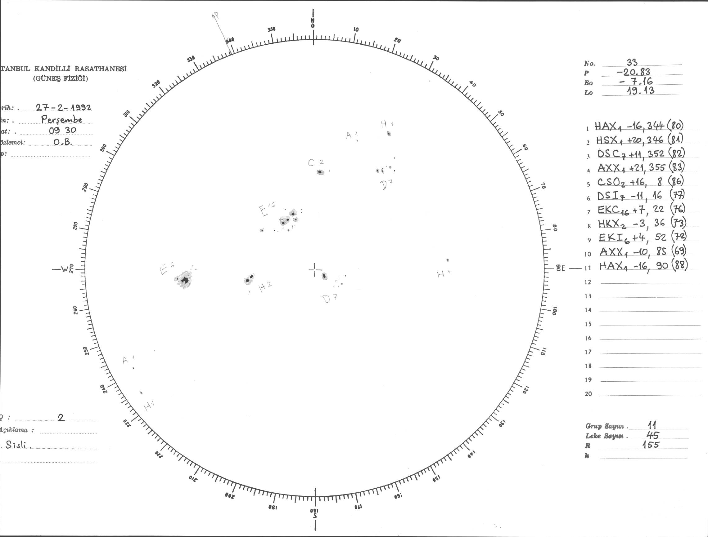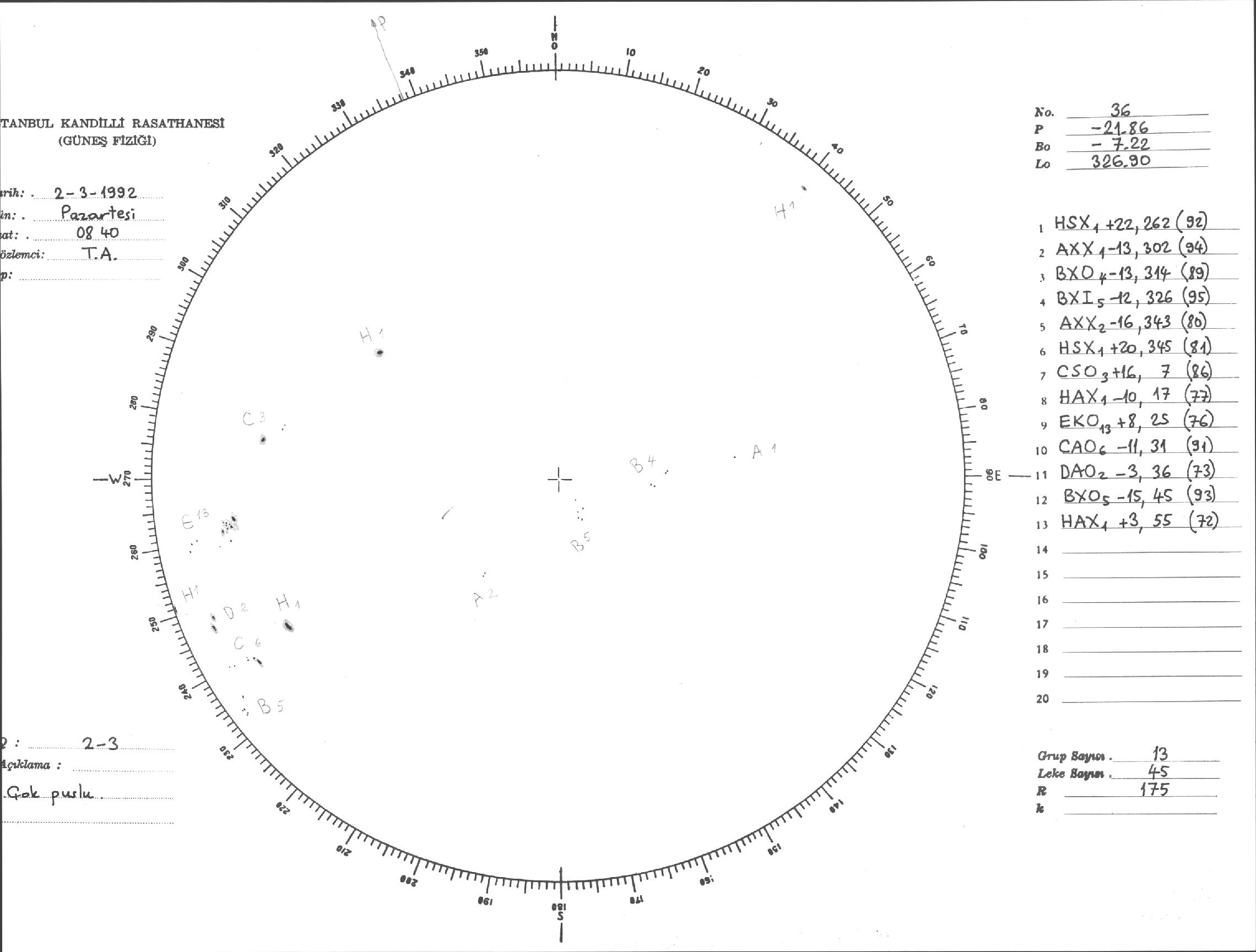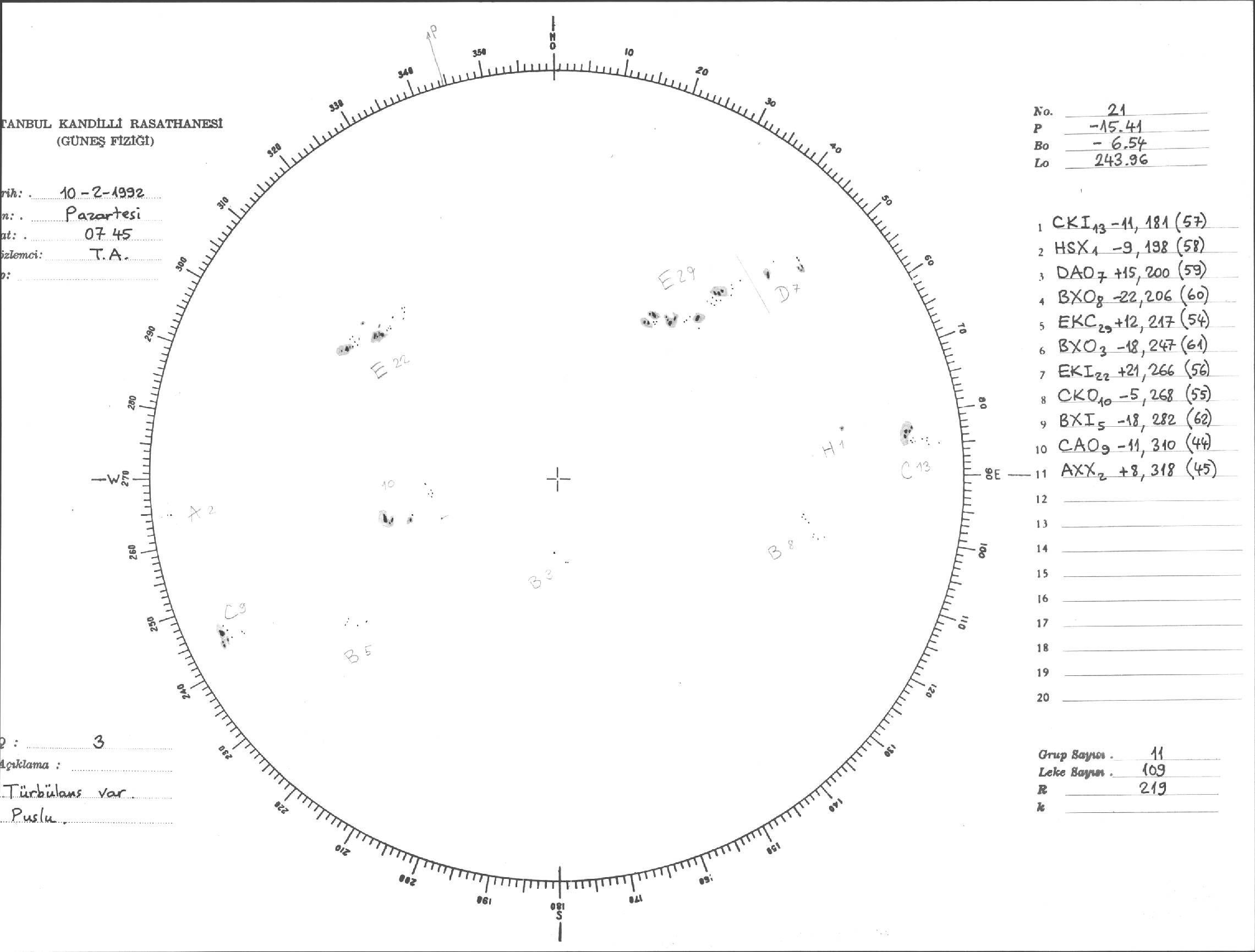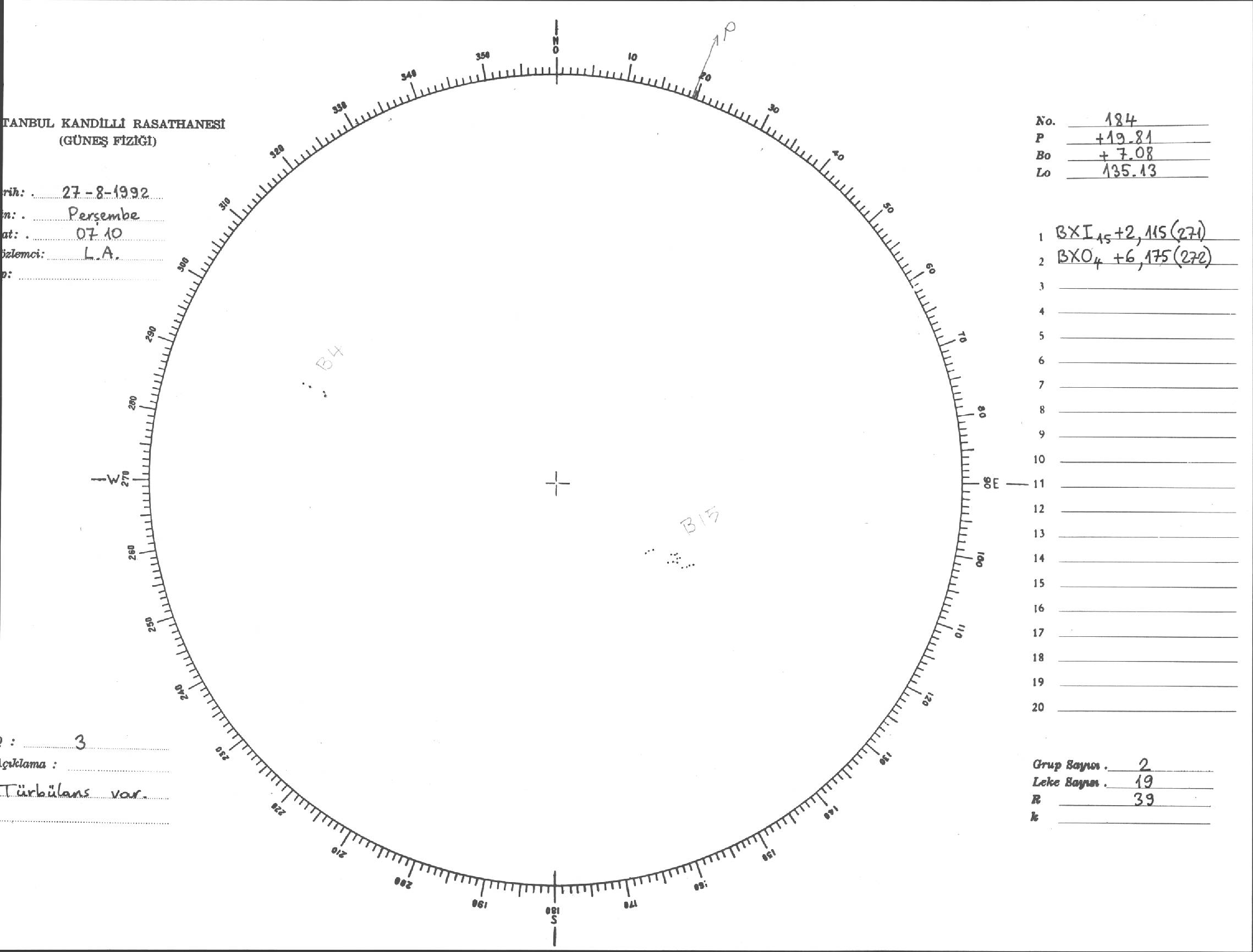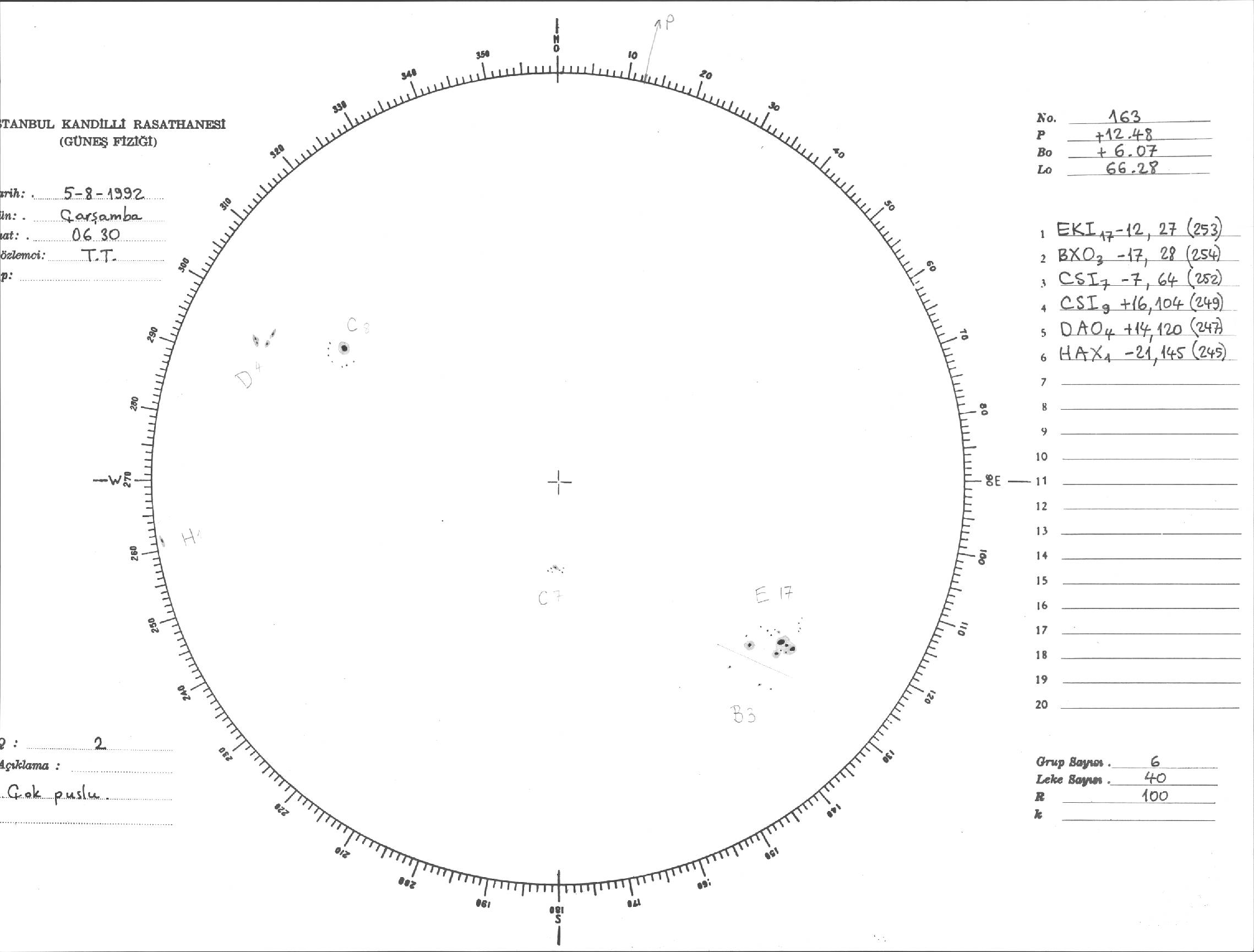 Güneş Lekesi Çizimleri / Kandilli Sunspot Drawings