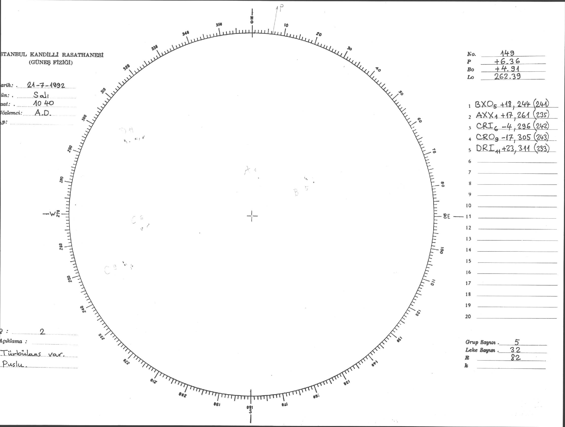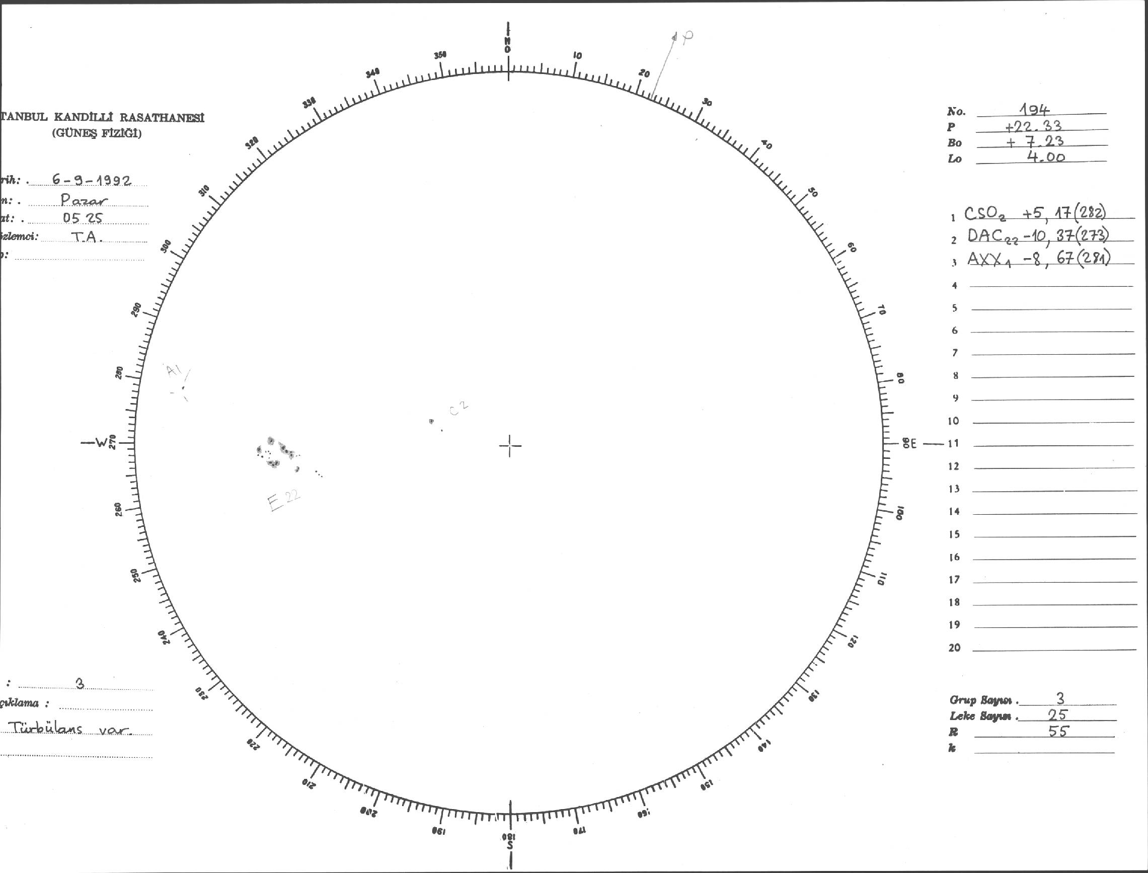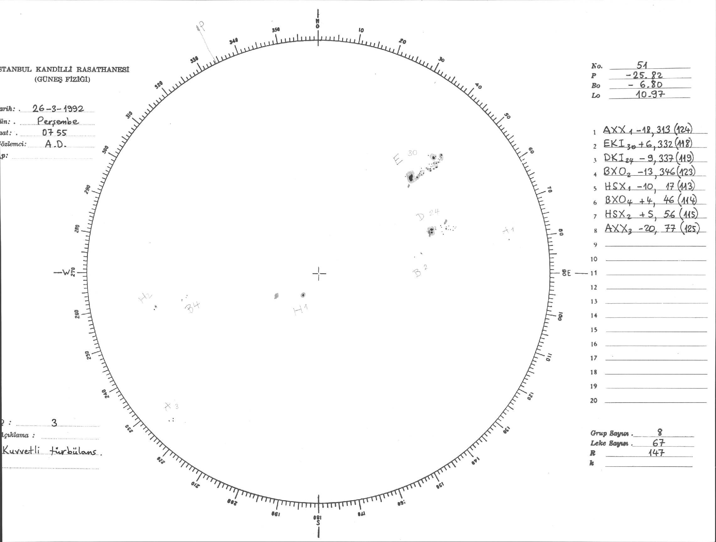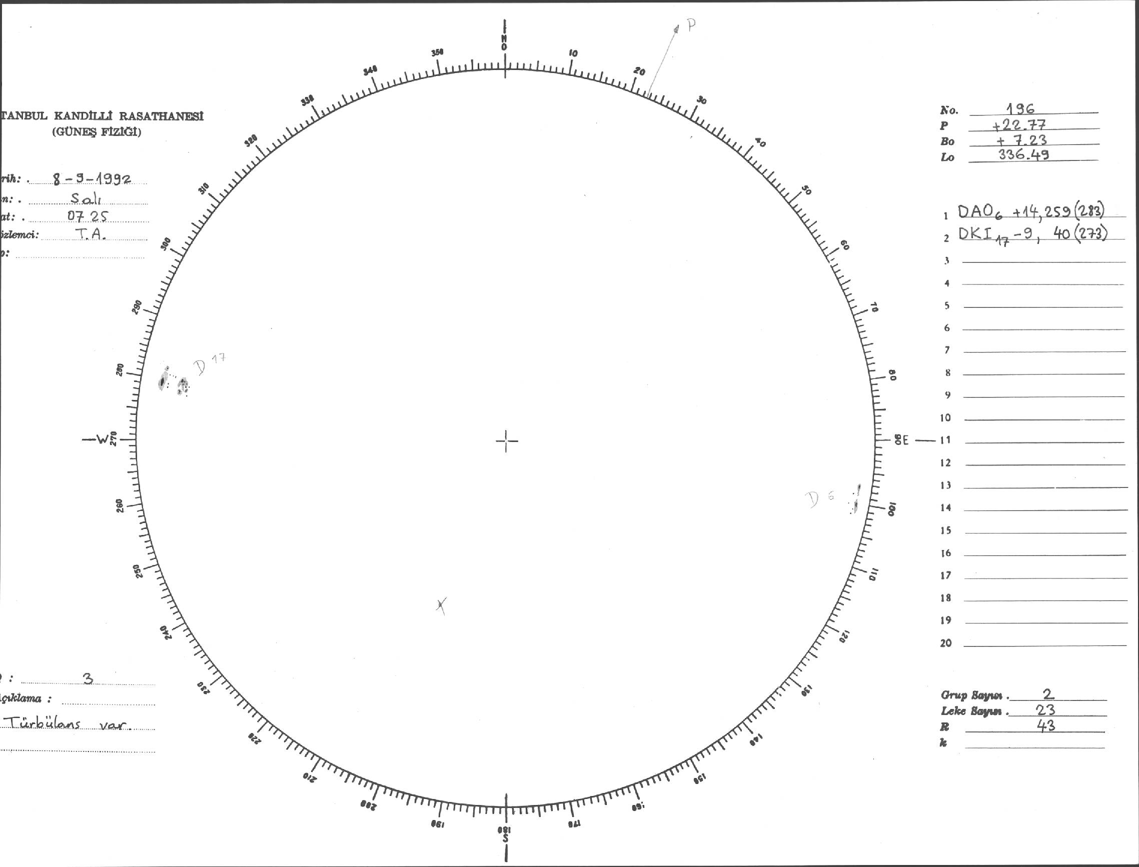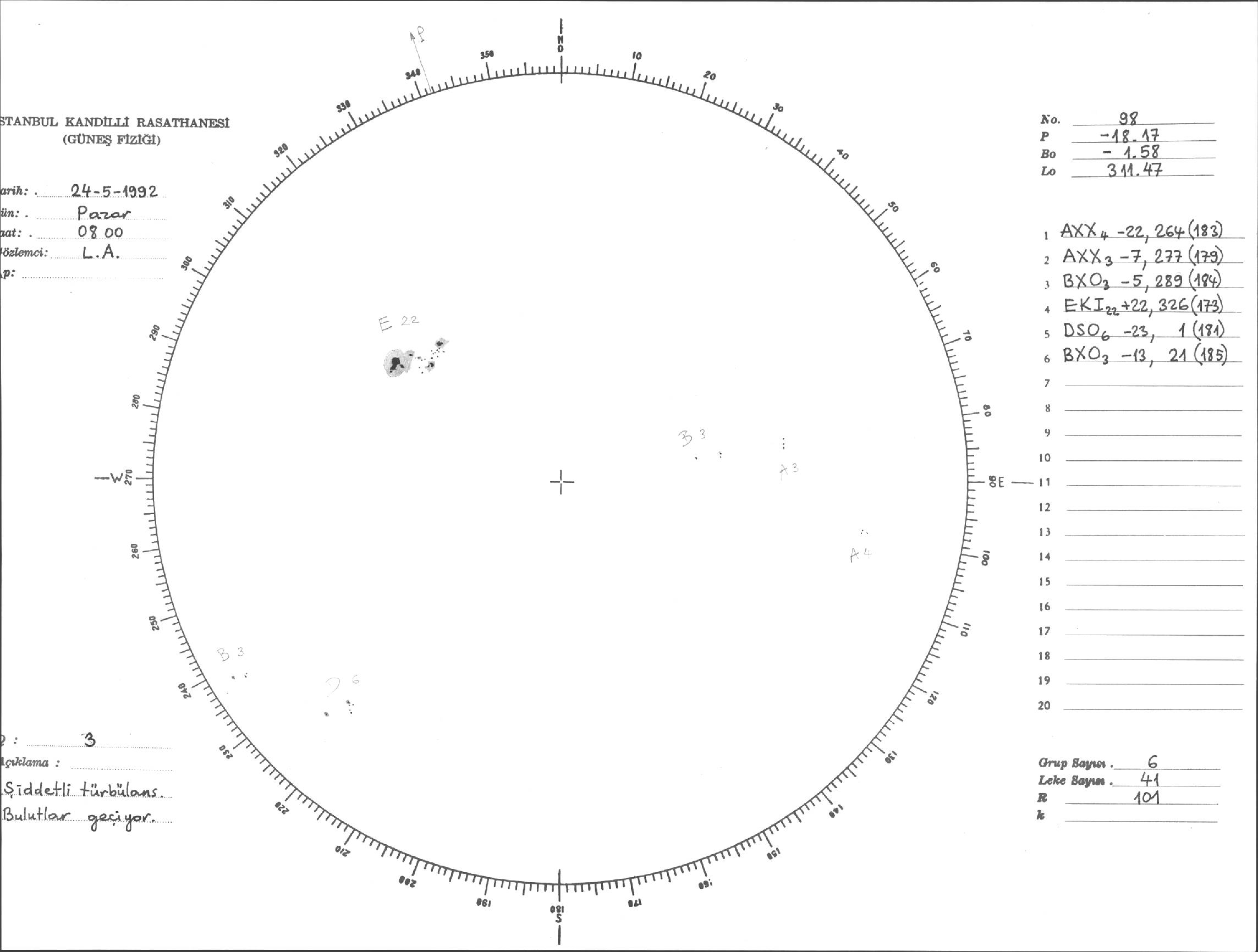 Güneş Lekesi Çizimleri / Kandilli Sunspot Drawings