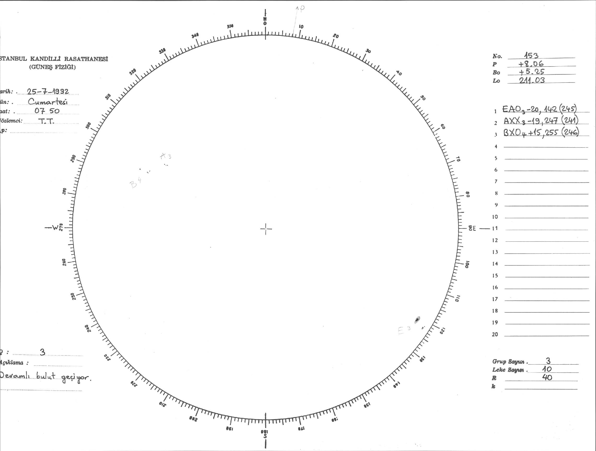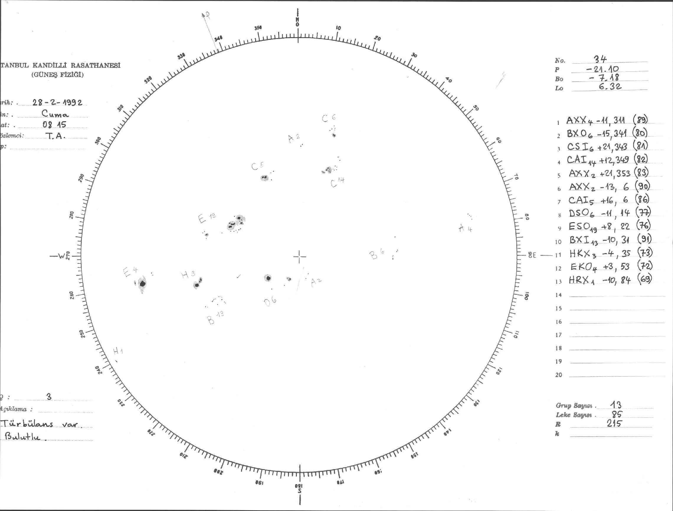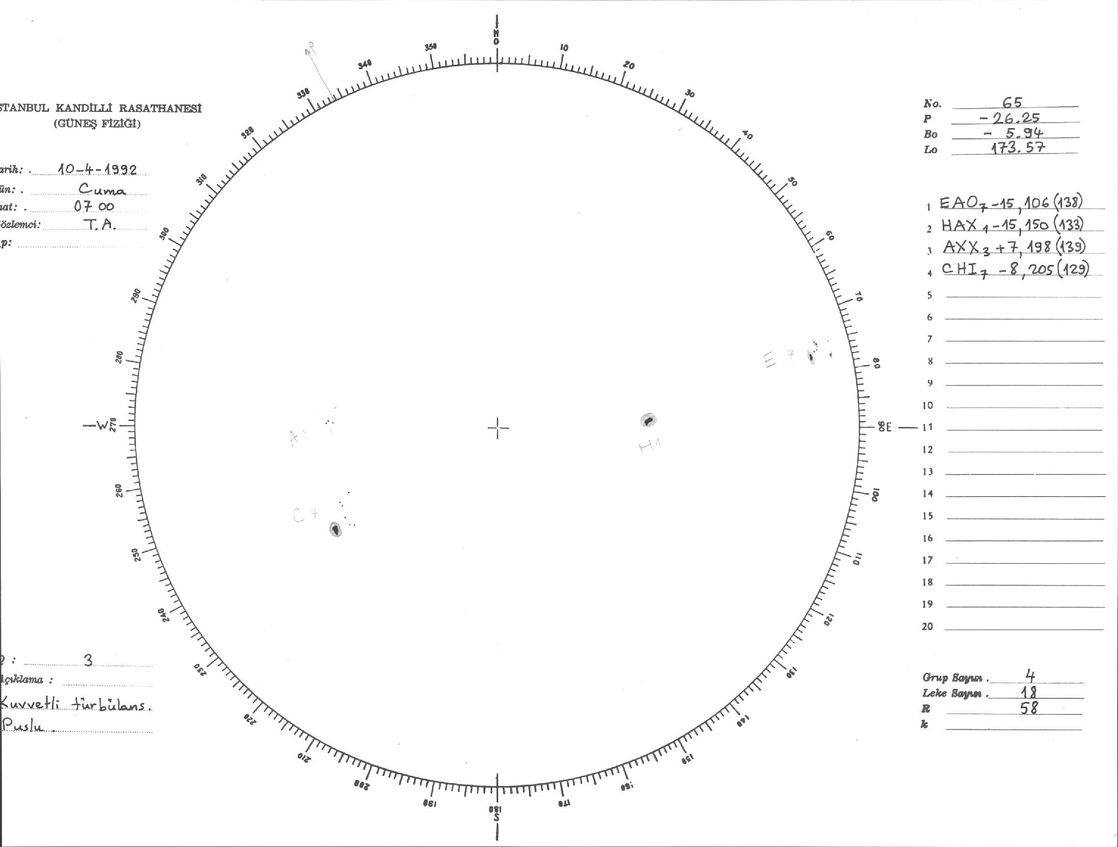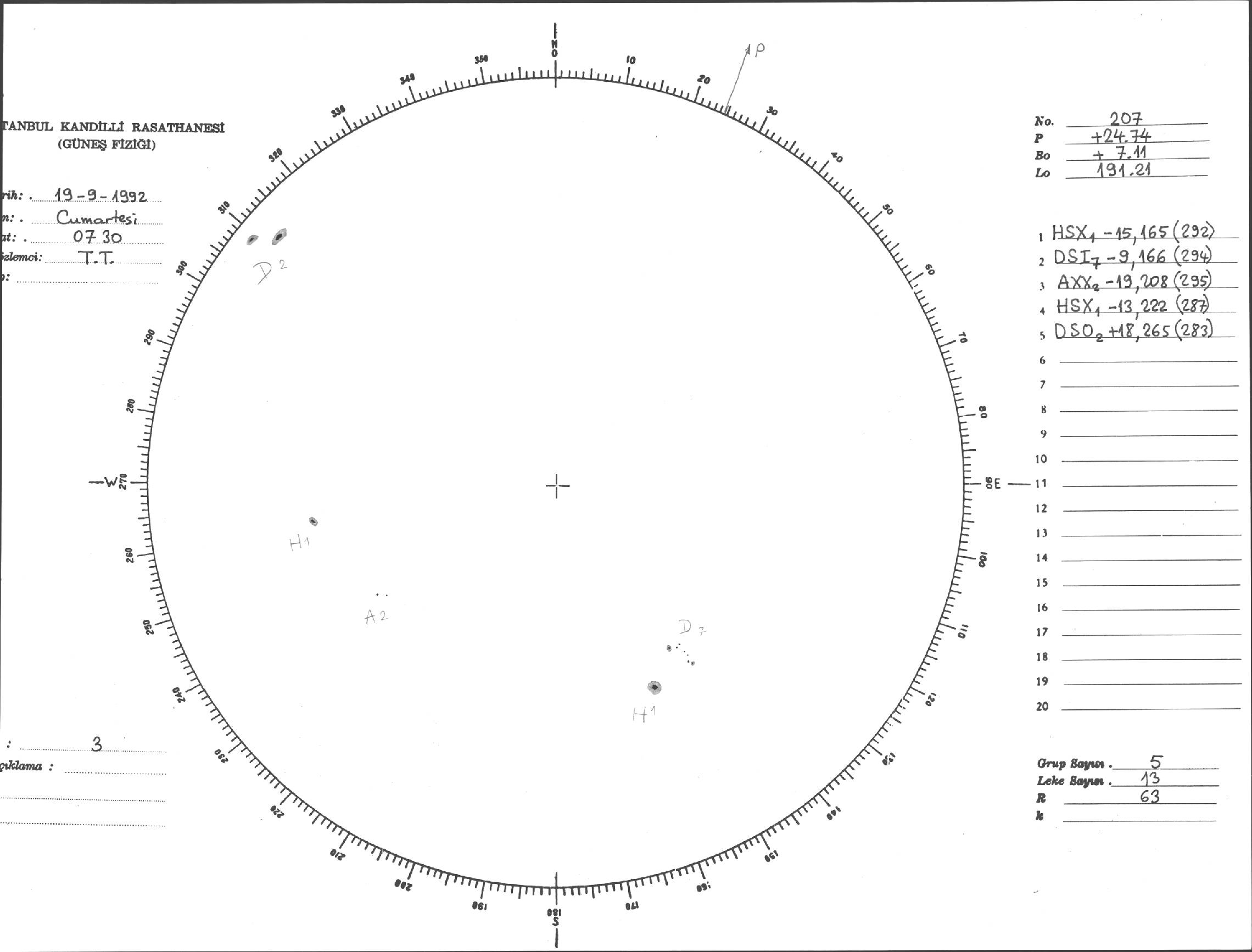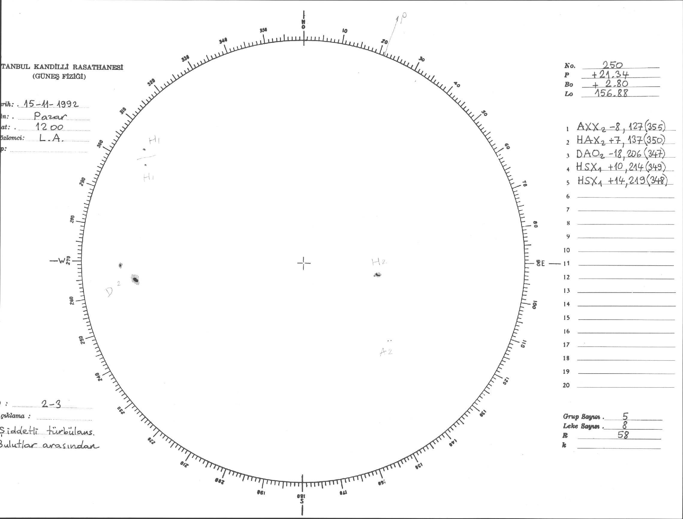 Güneş Lekesi Çizimleri / Kandilli Sunspot Drawings