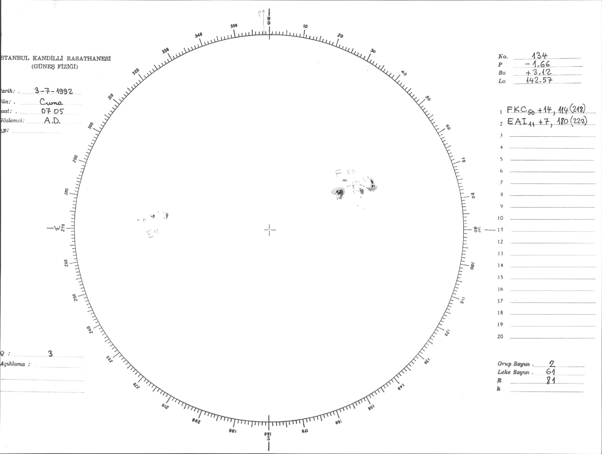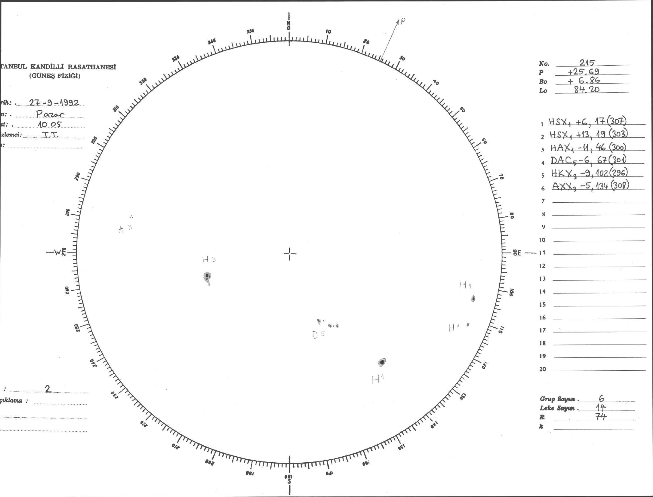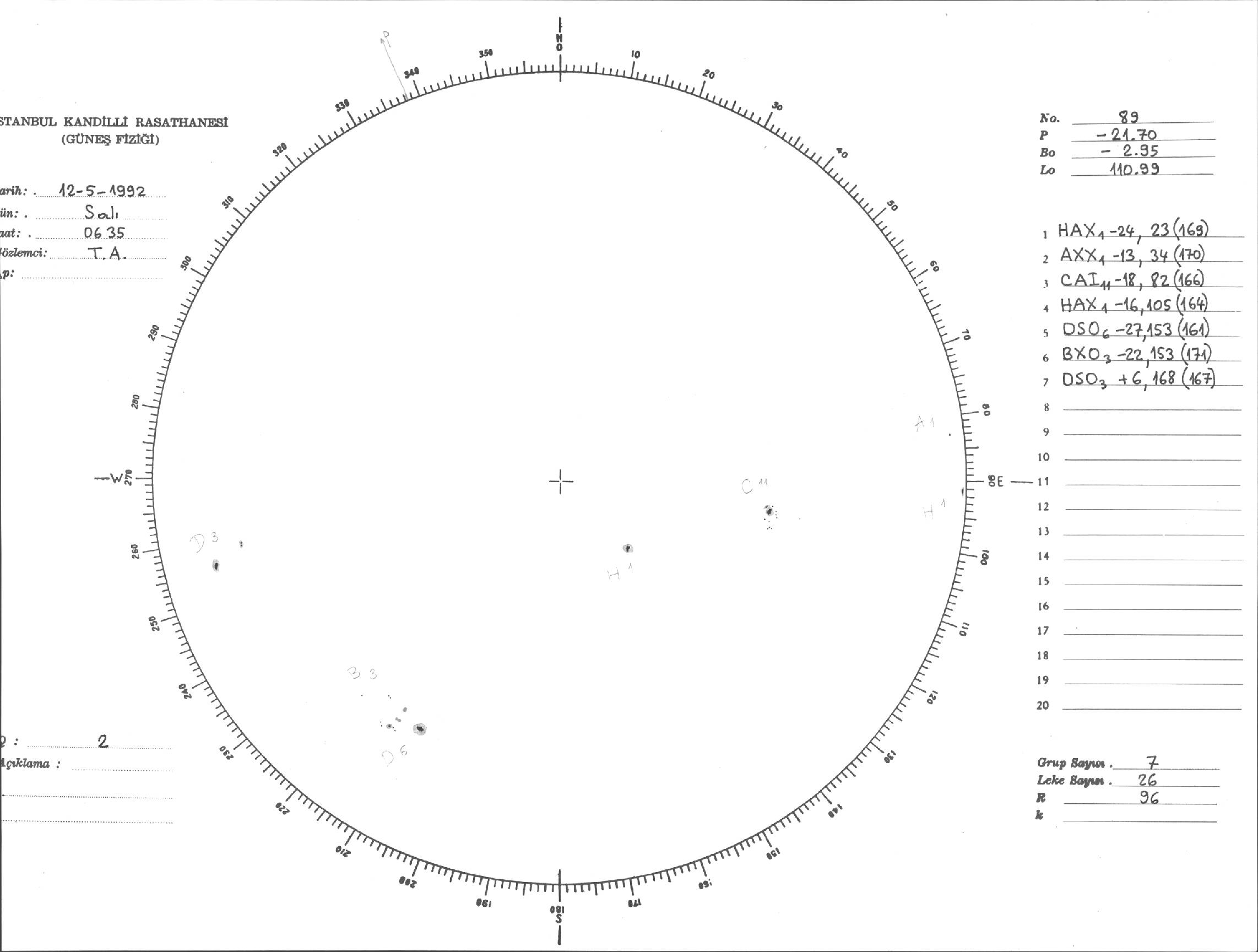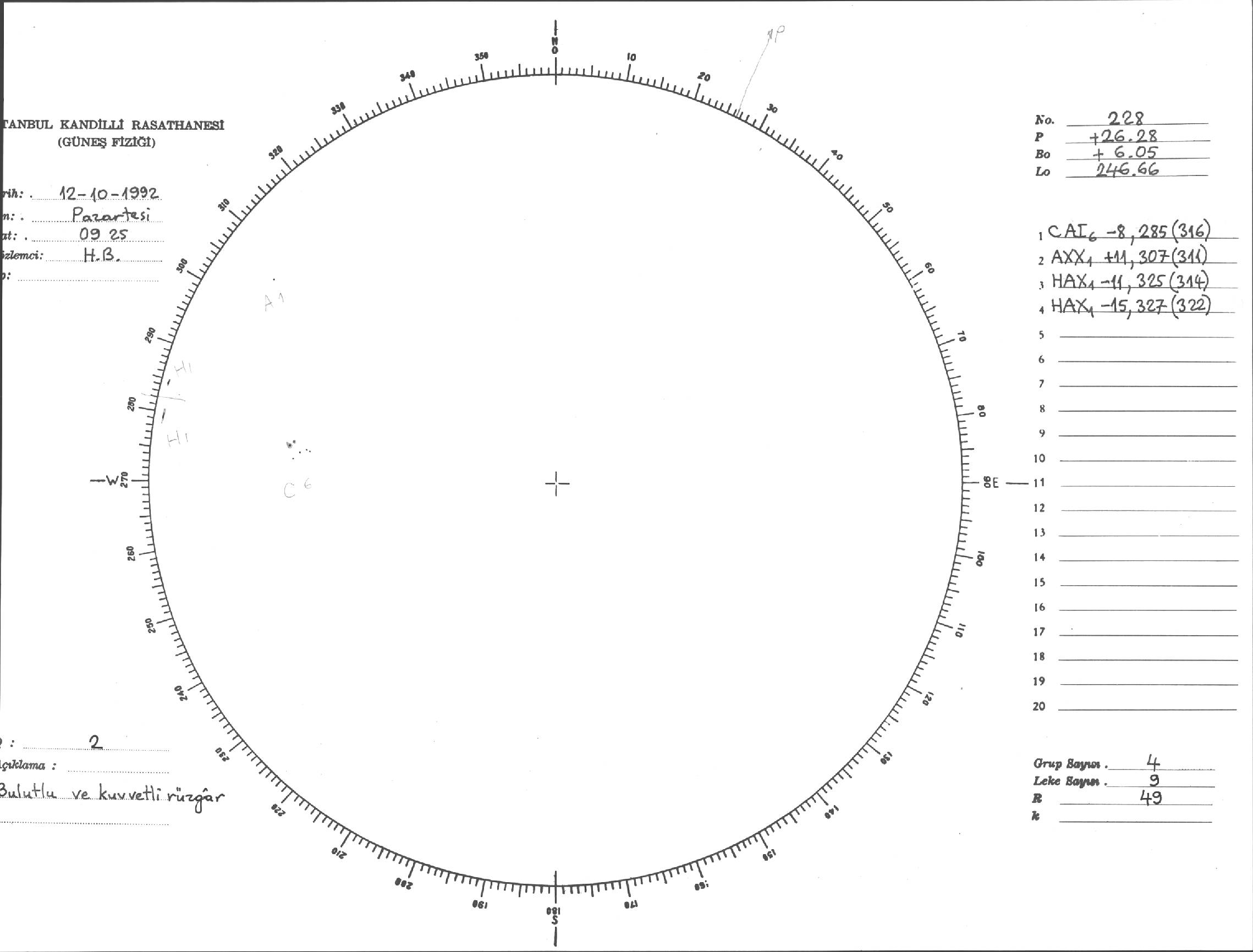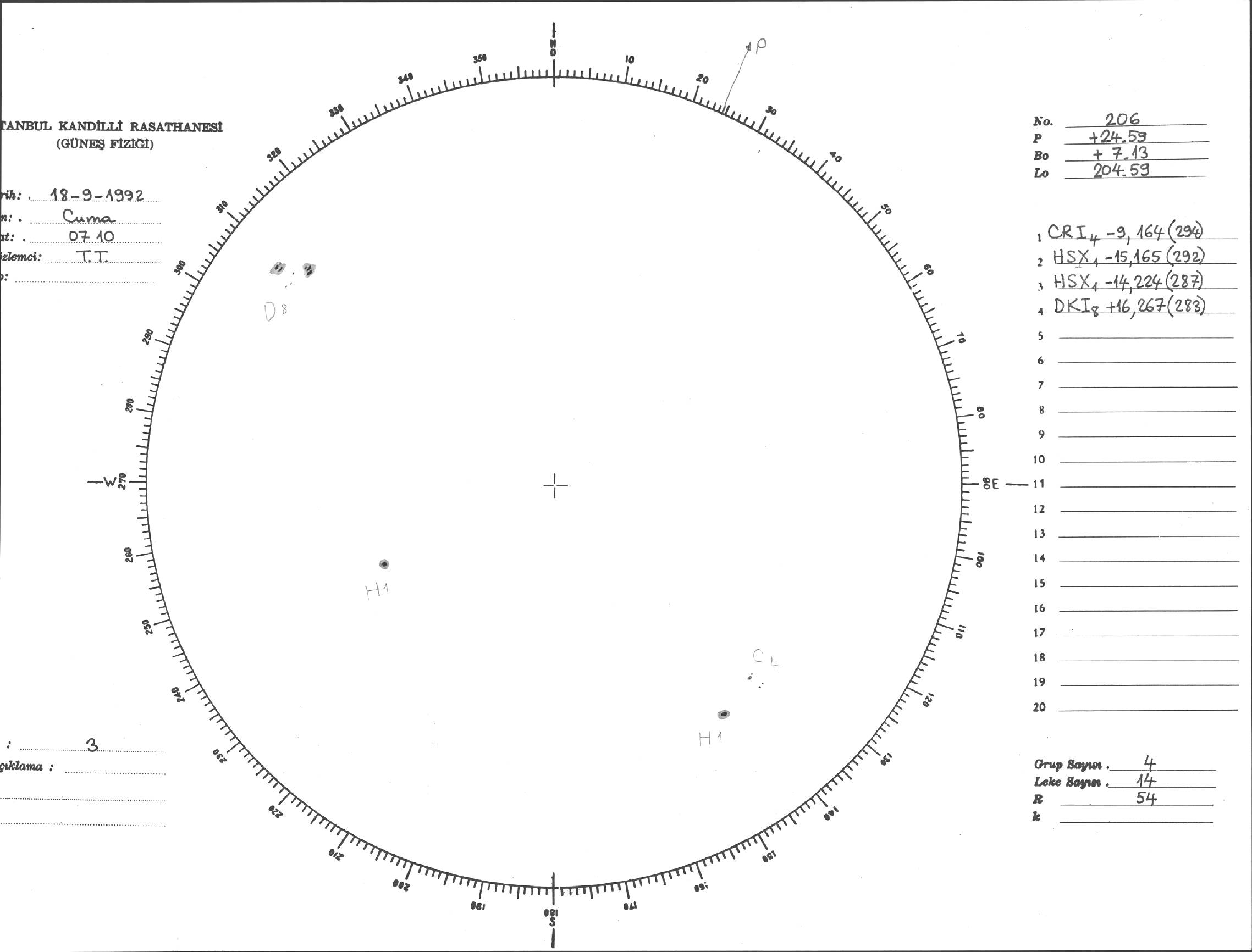 Güneş Lekesi Çizimleri / Kandilli Sunspot Drawings