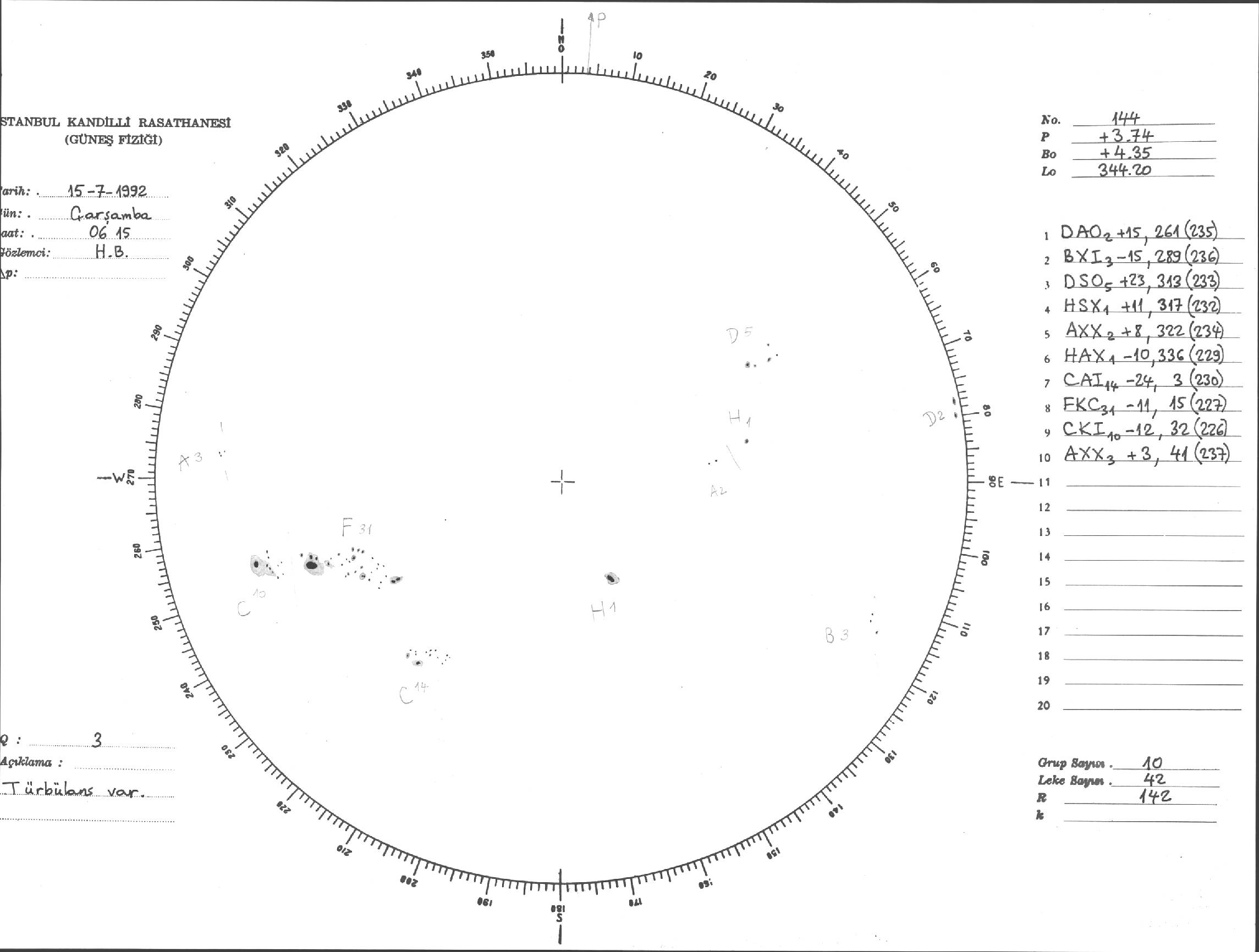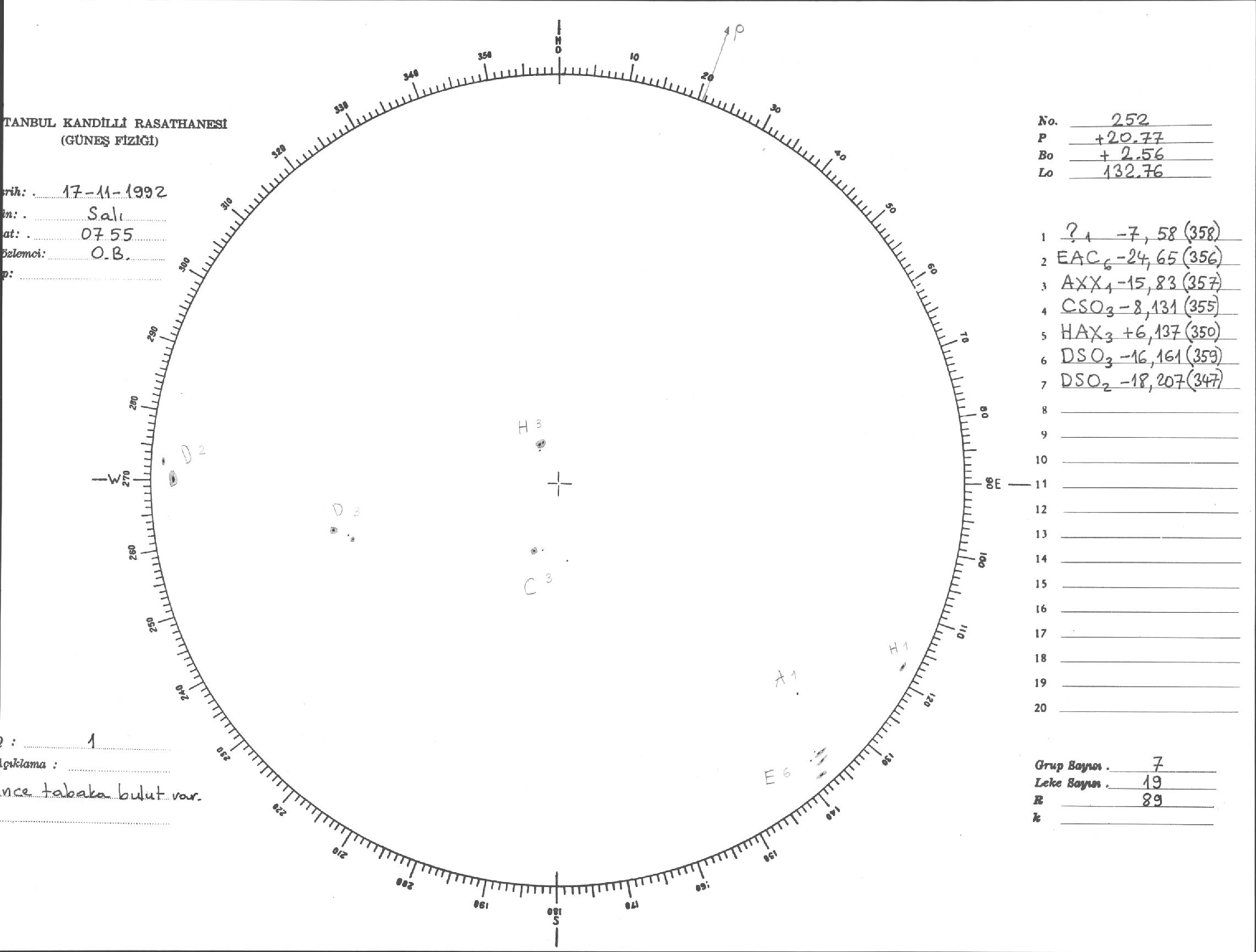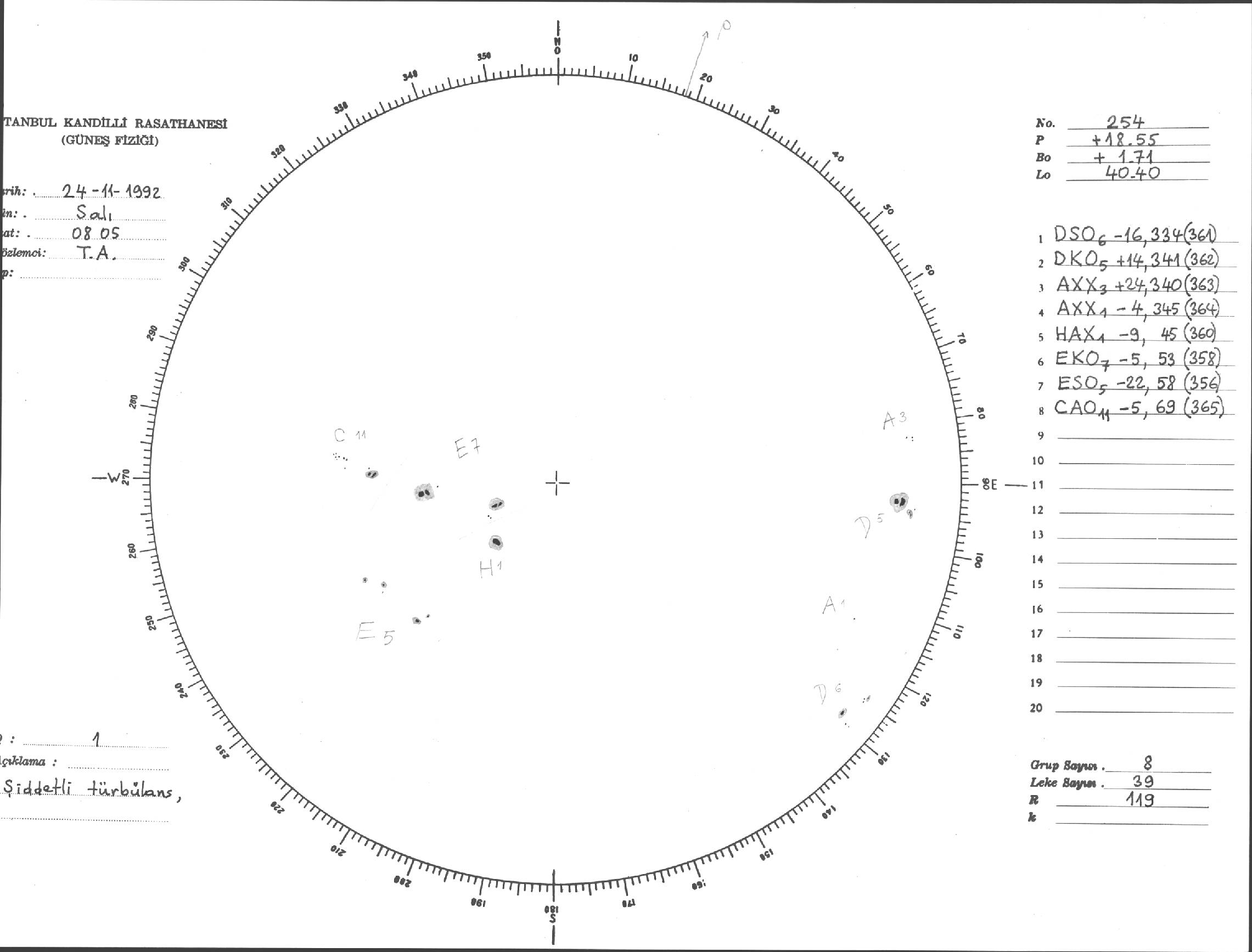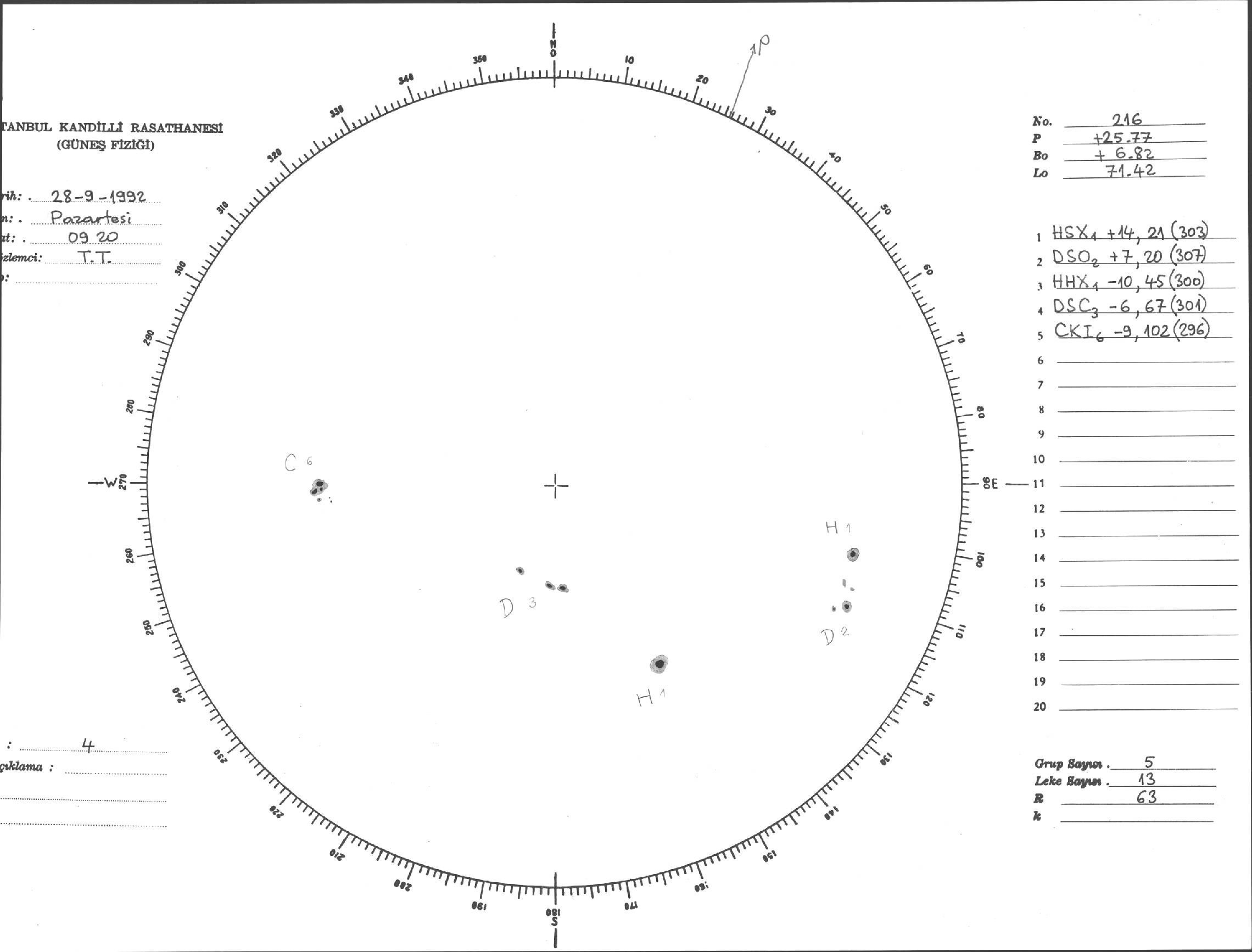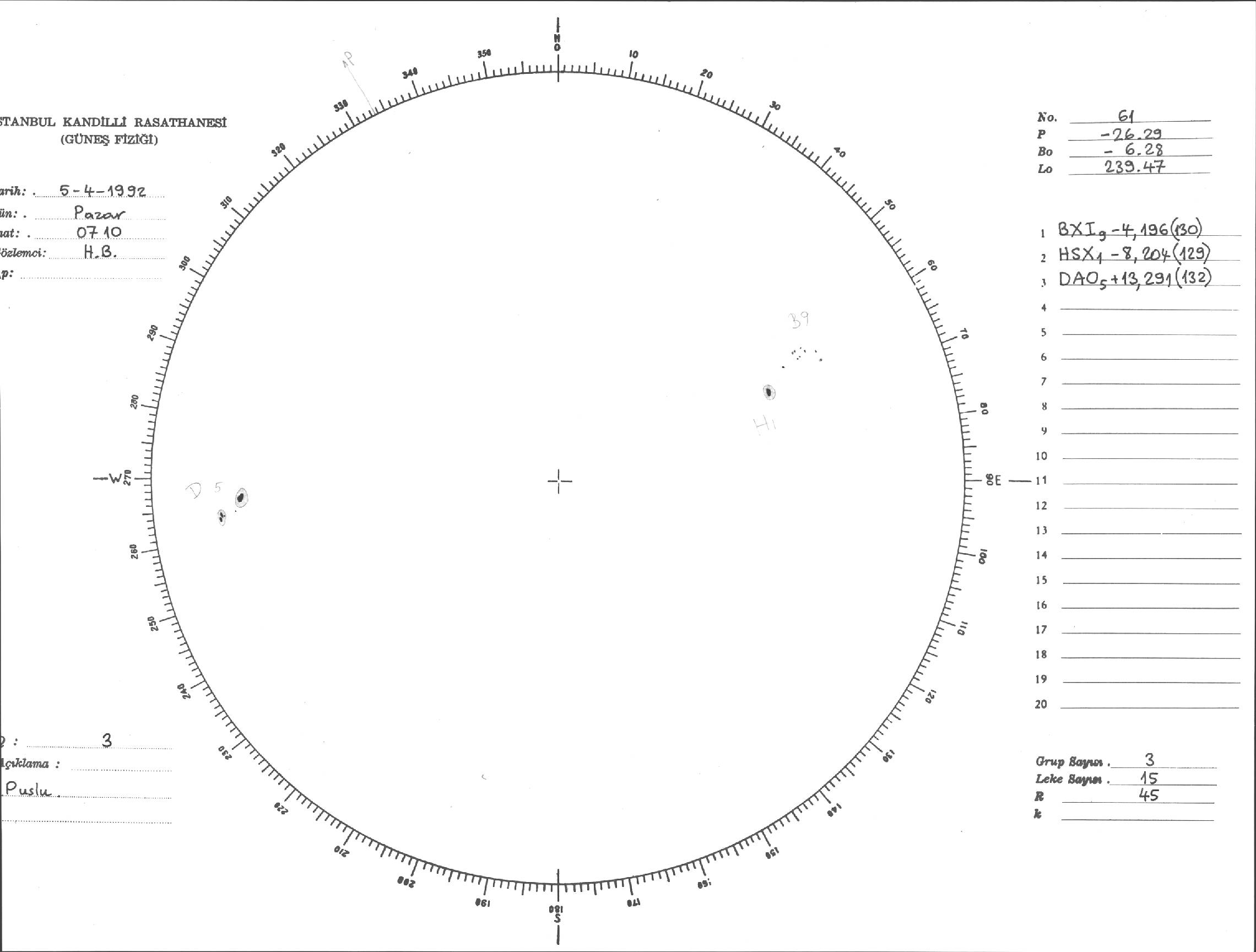 Güneş Lekesi Çizimleri / Kandilli Sunspot Drawings