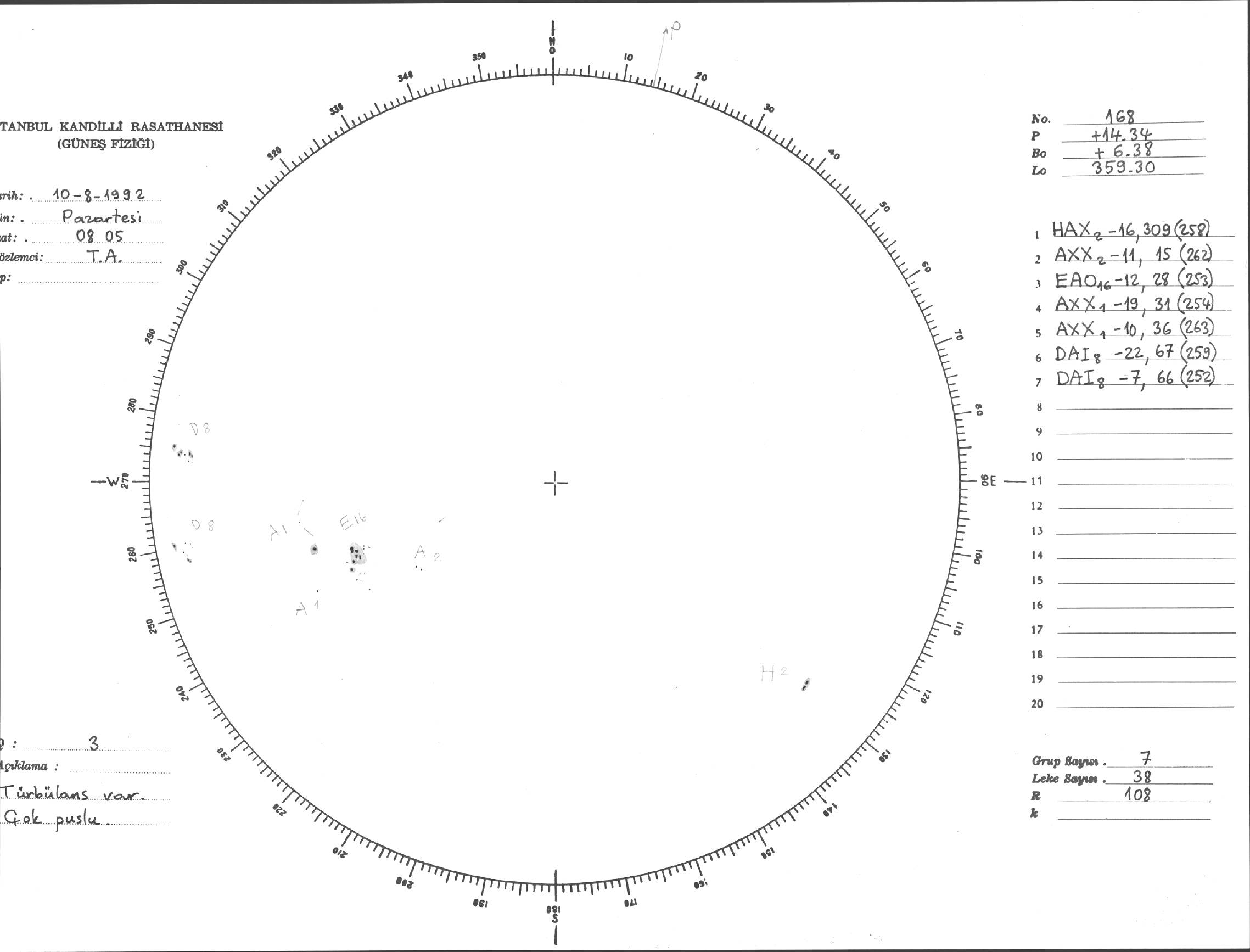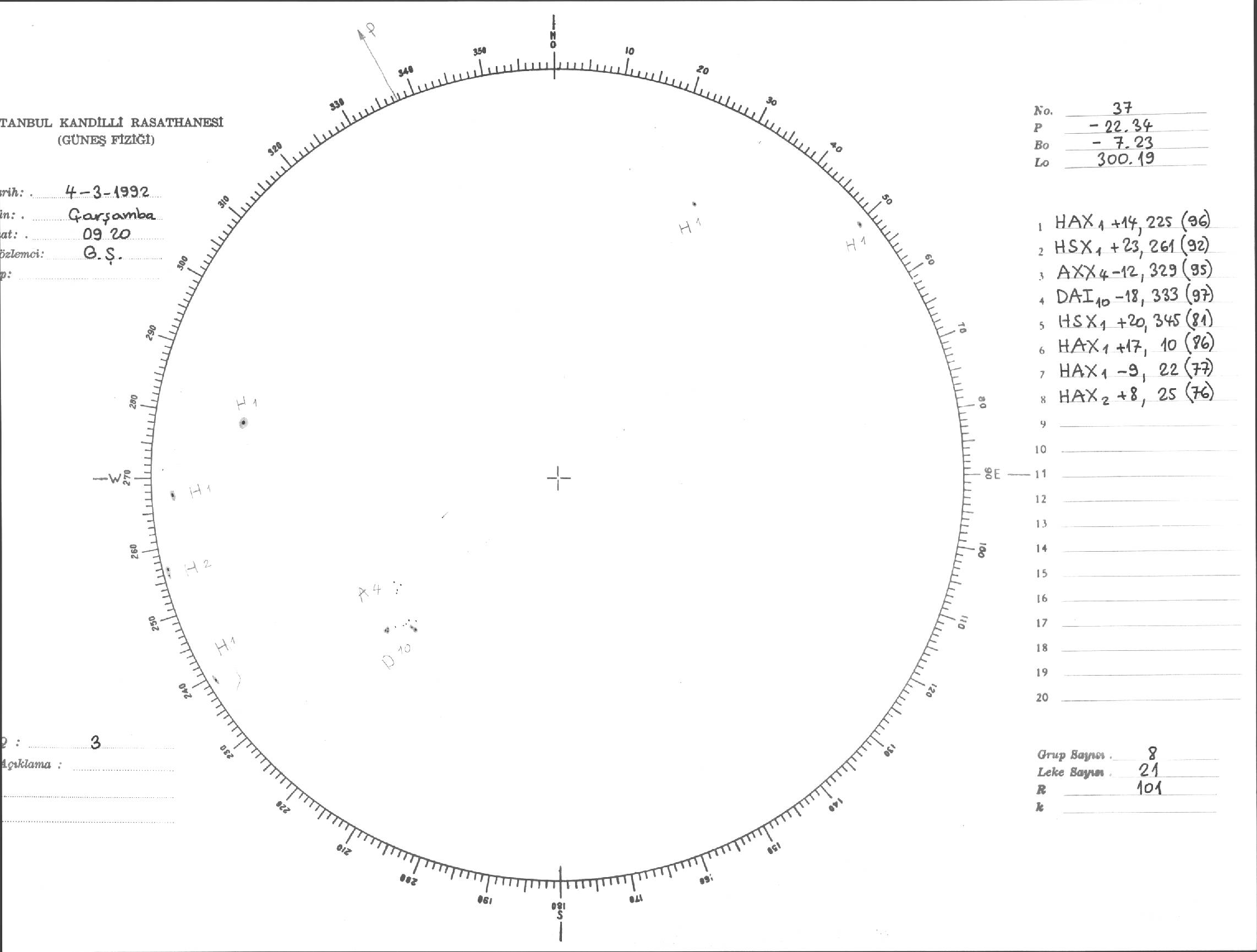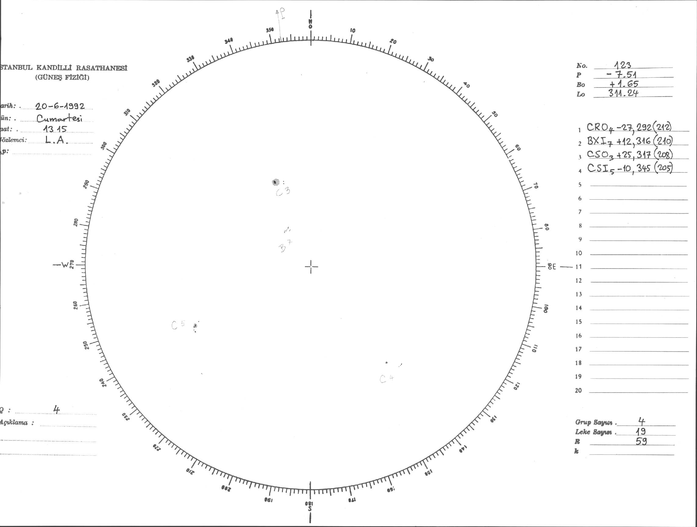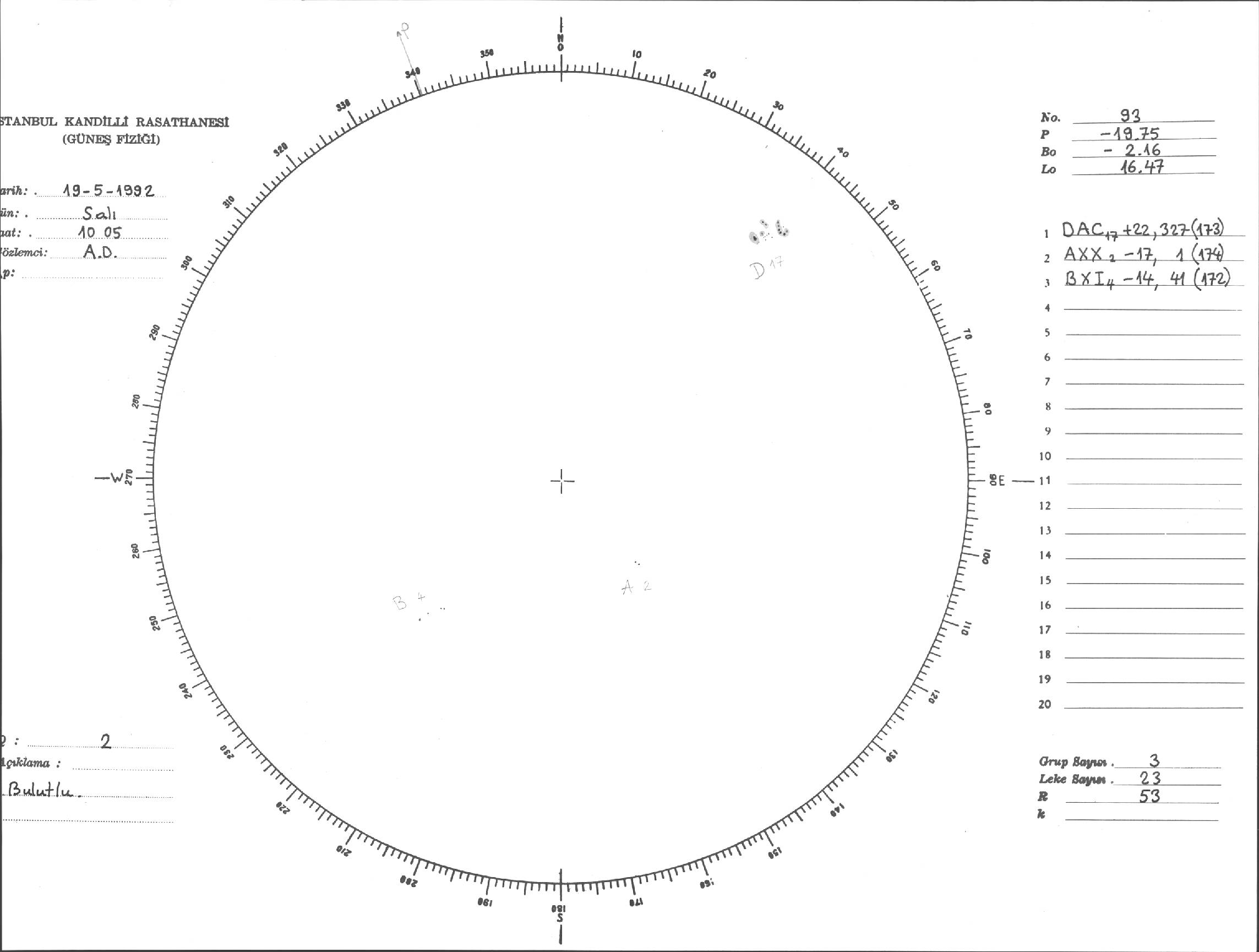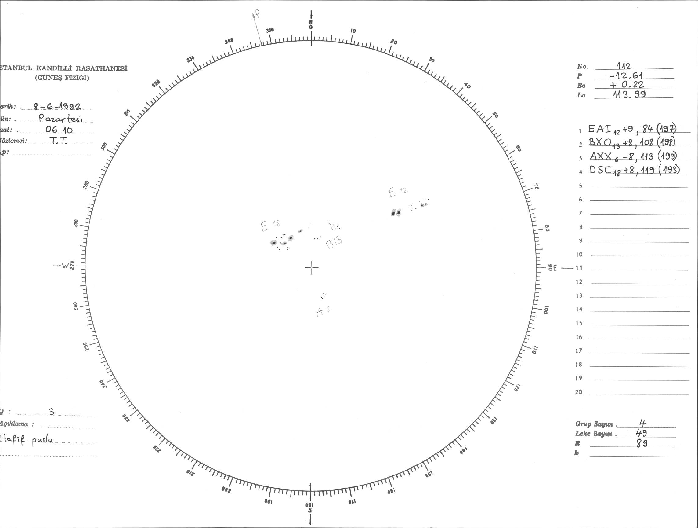Güneş Lekesi Çizimleri / Kandilli Sunspot Drawings