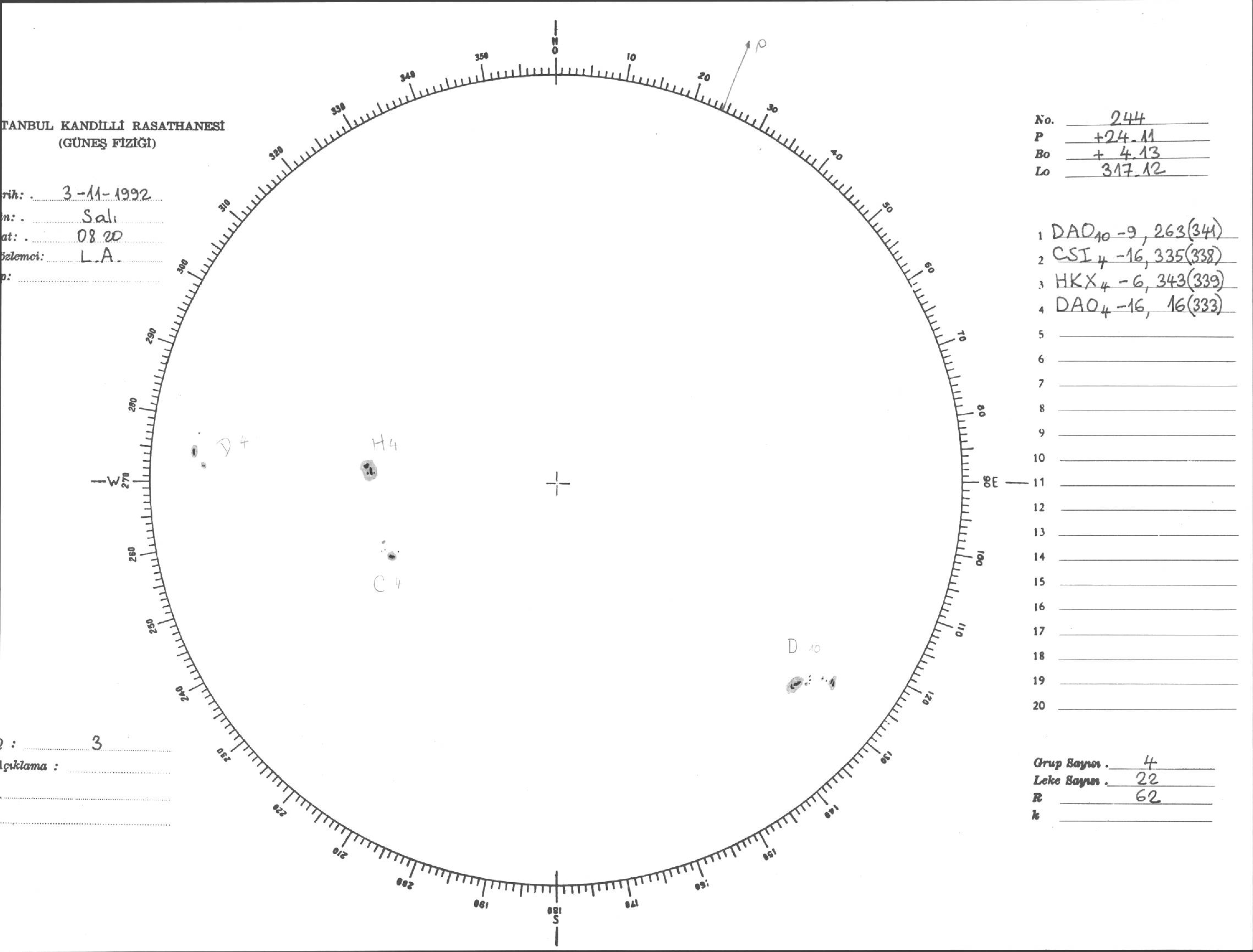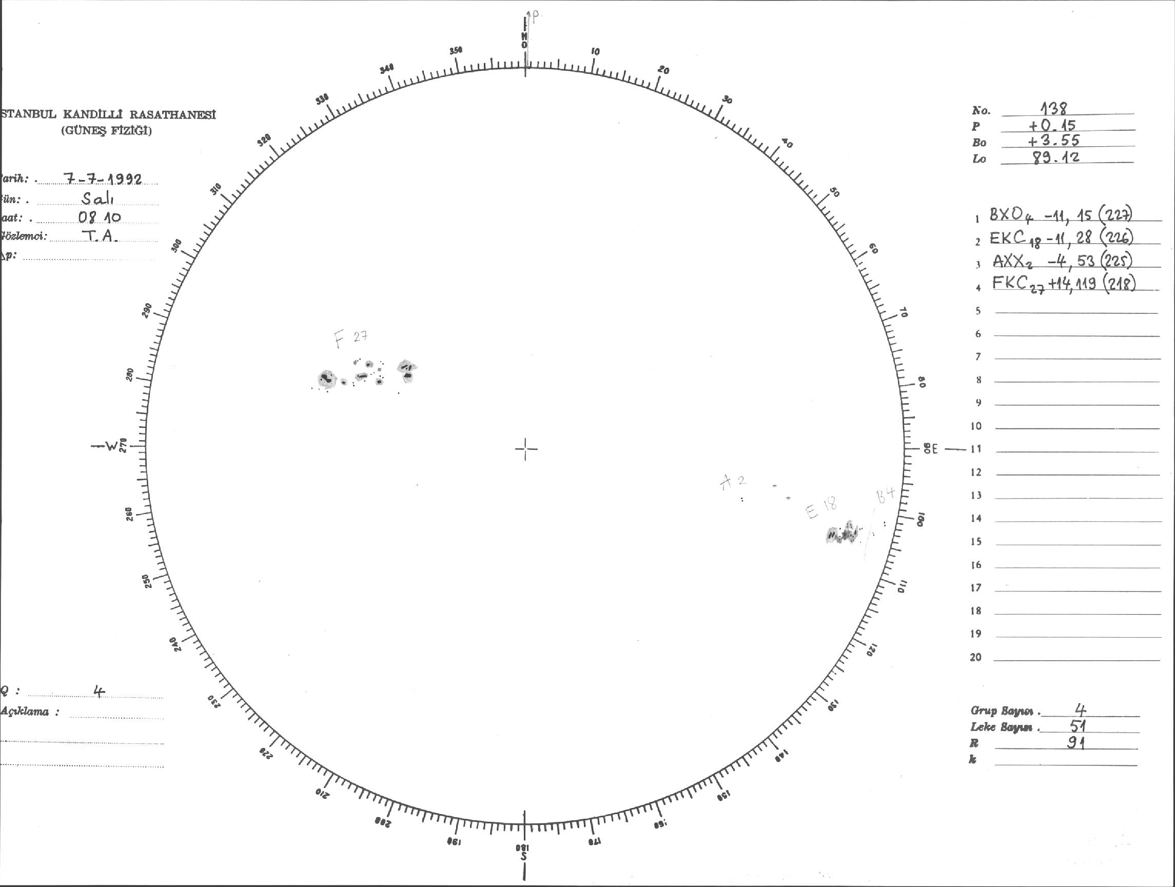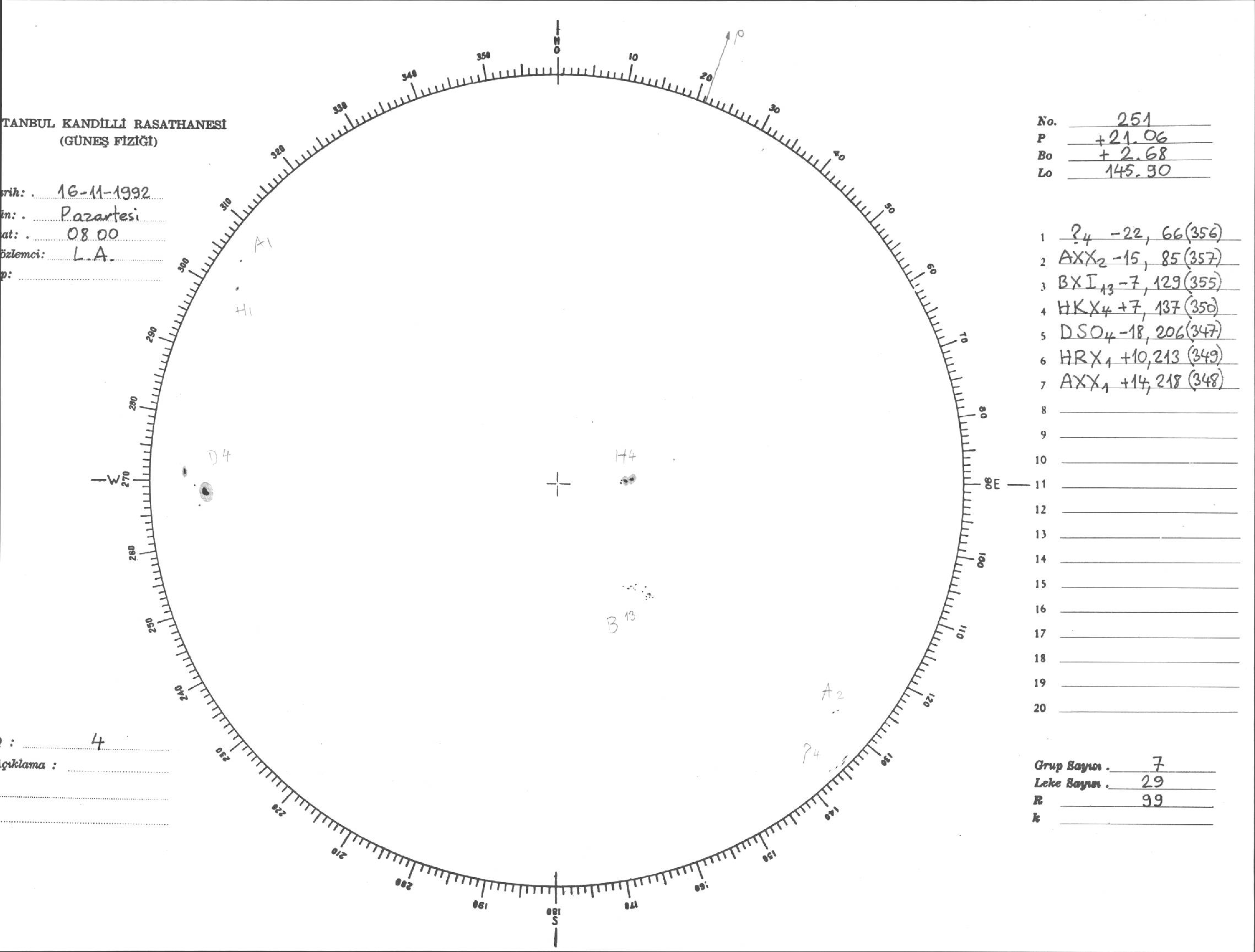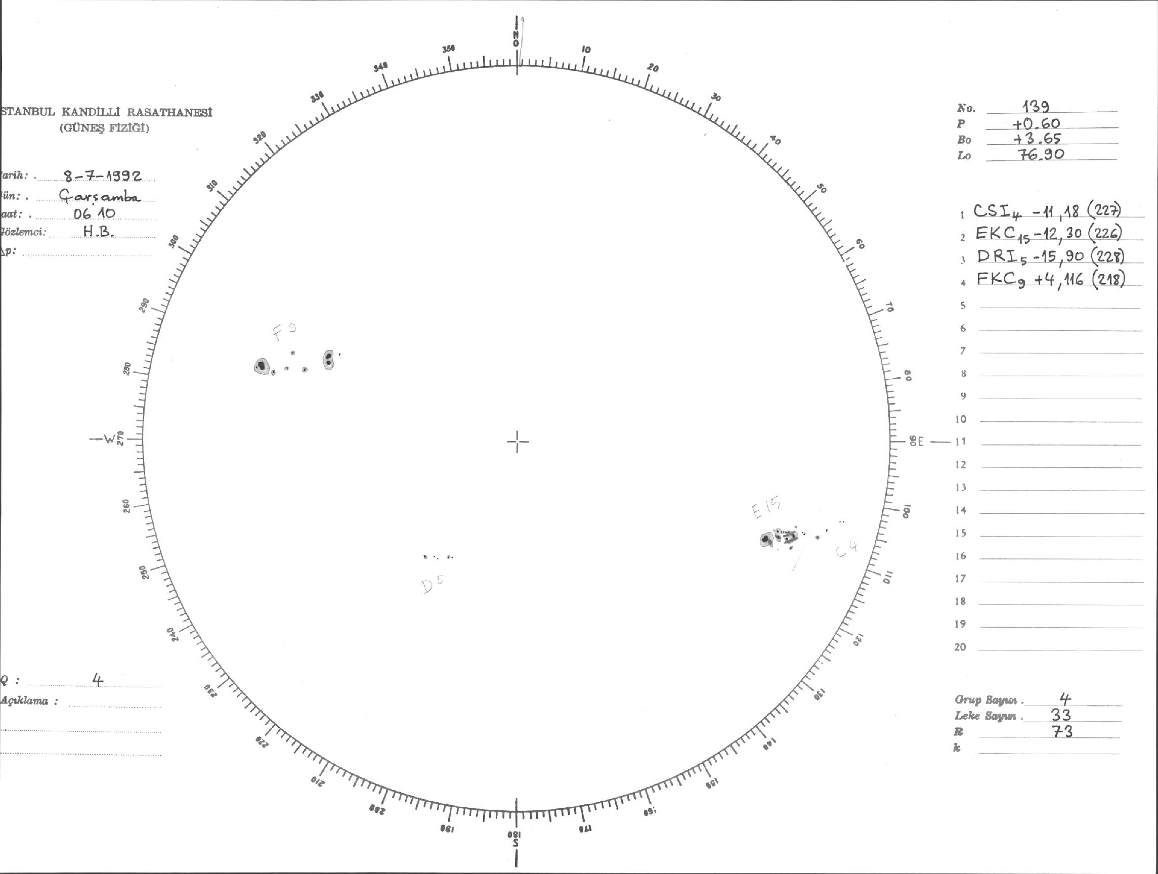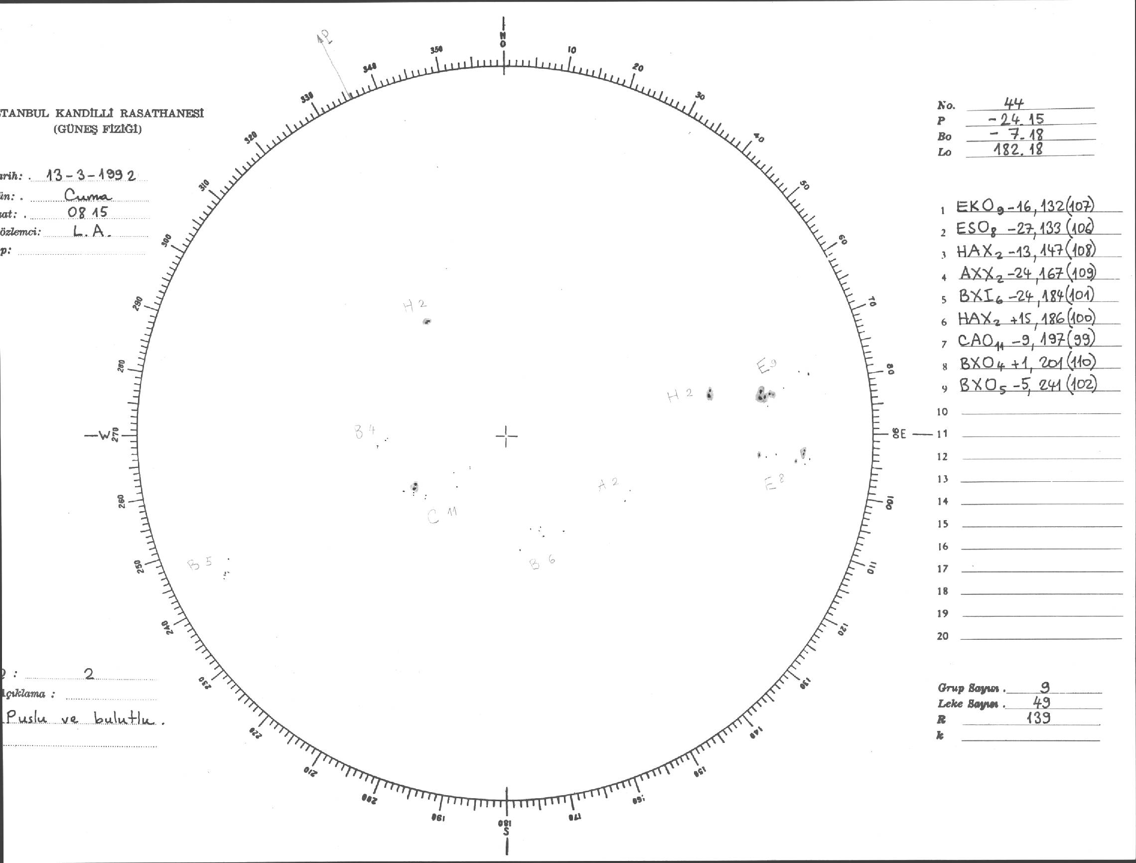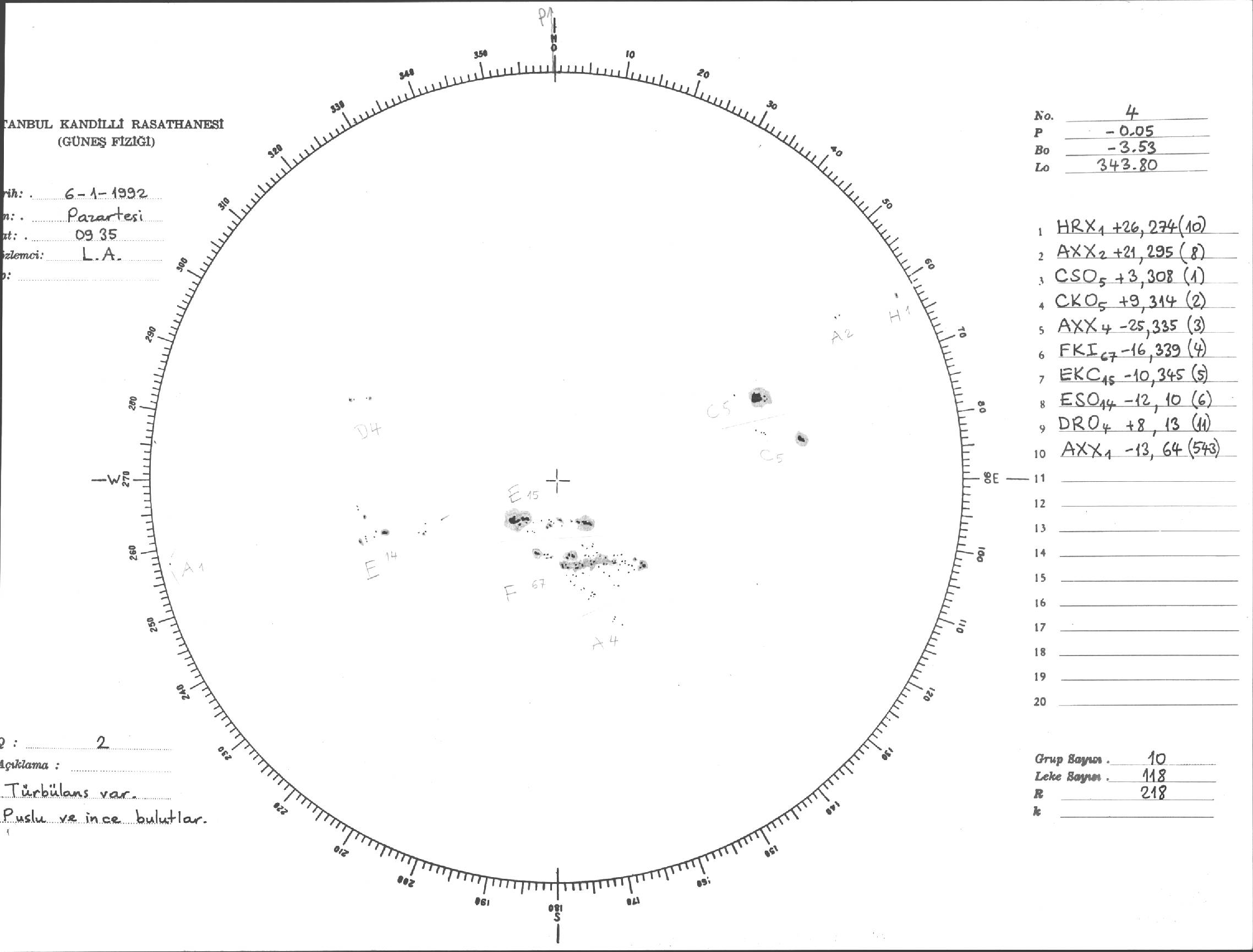 Güneş Lekesi Çizimleri / Kandilli Sunspot Drawings