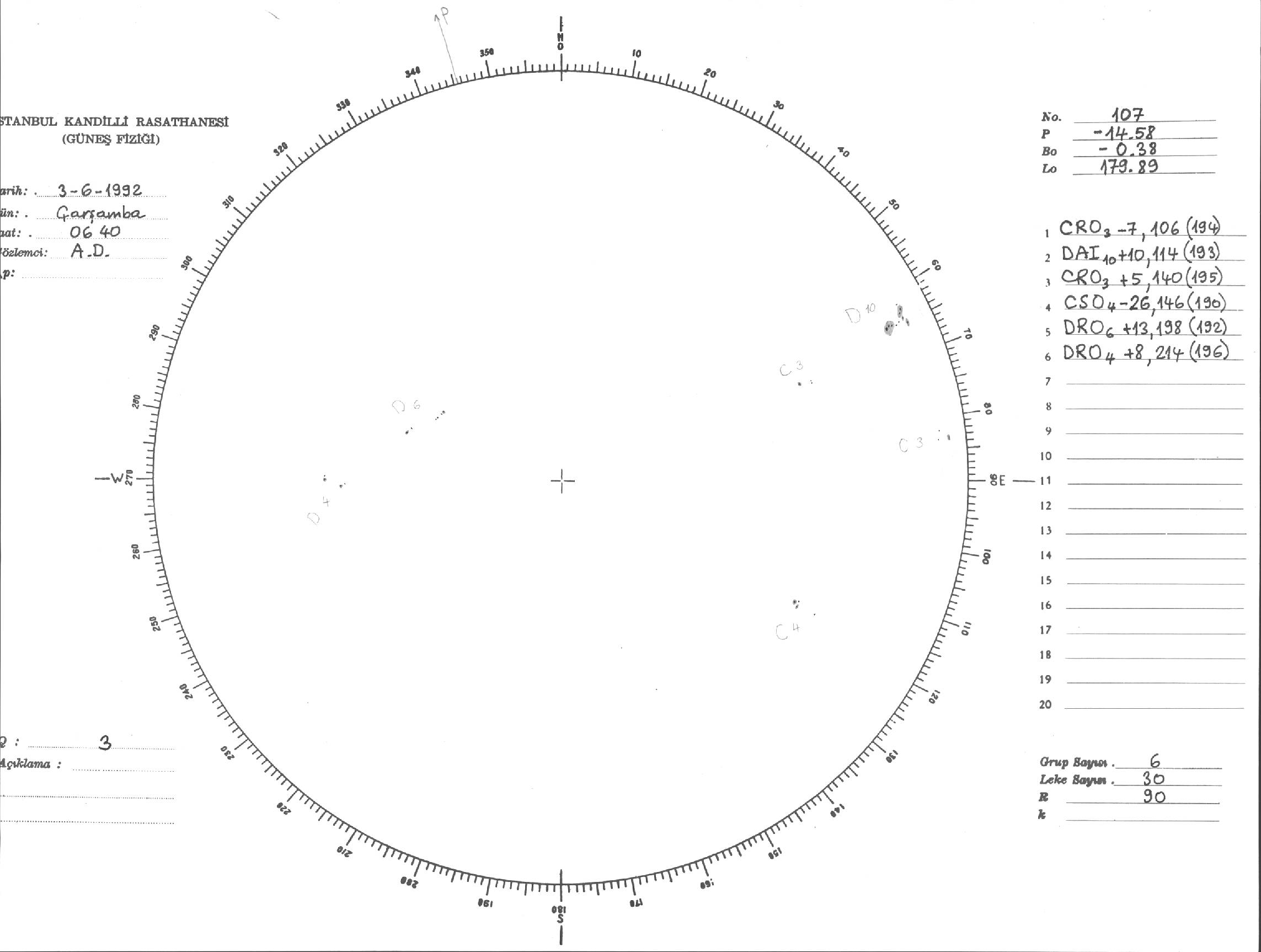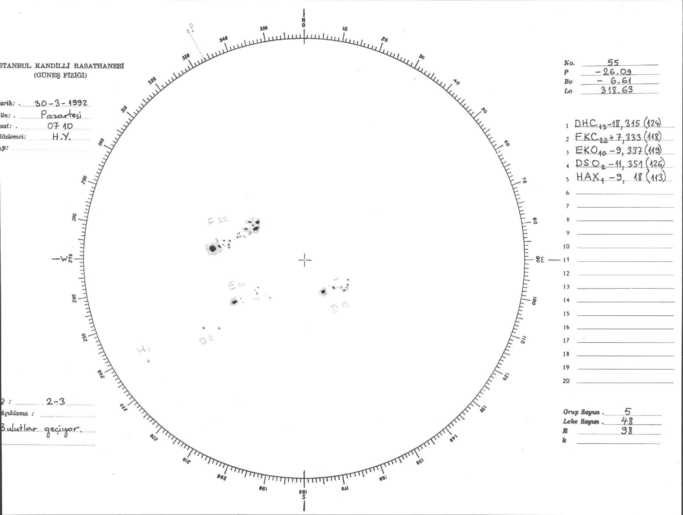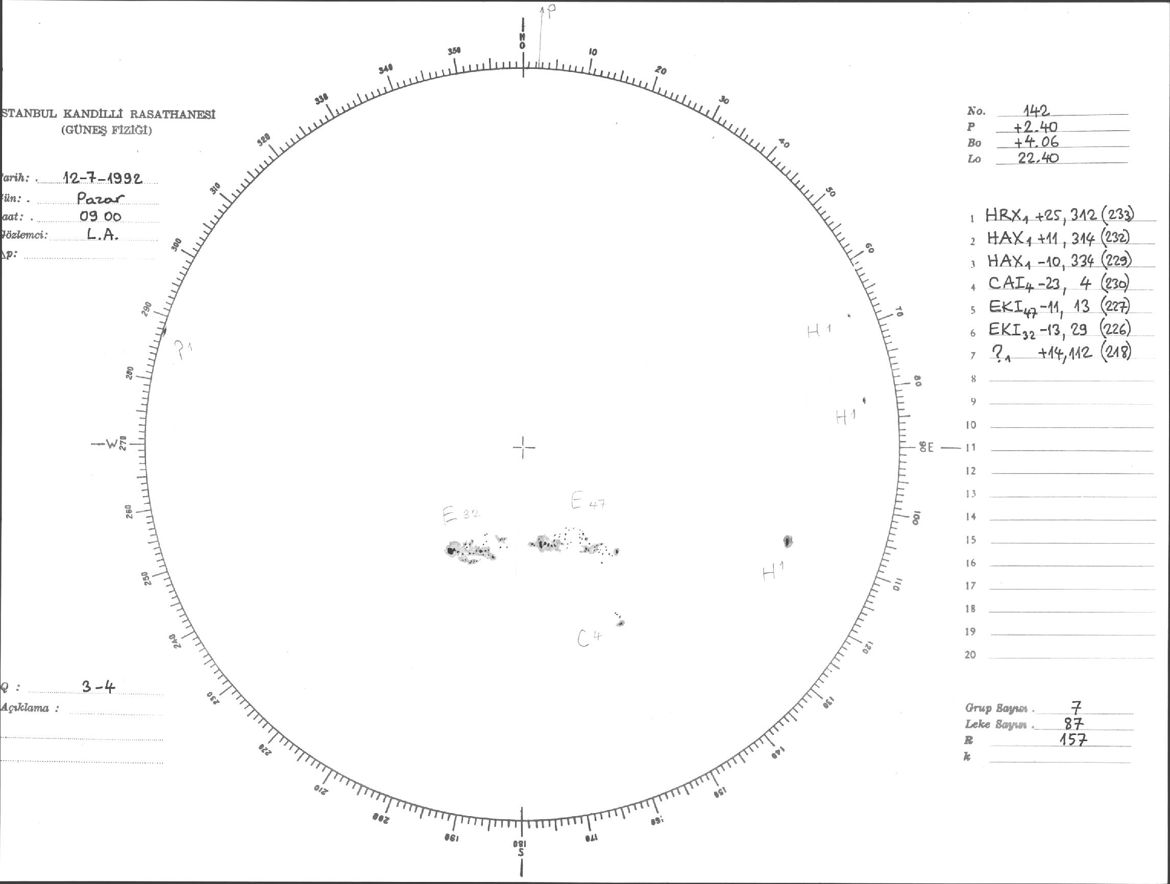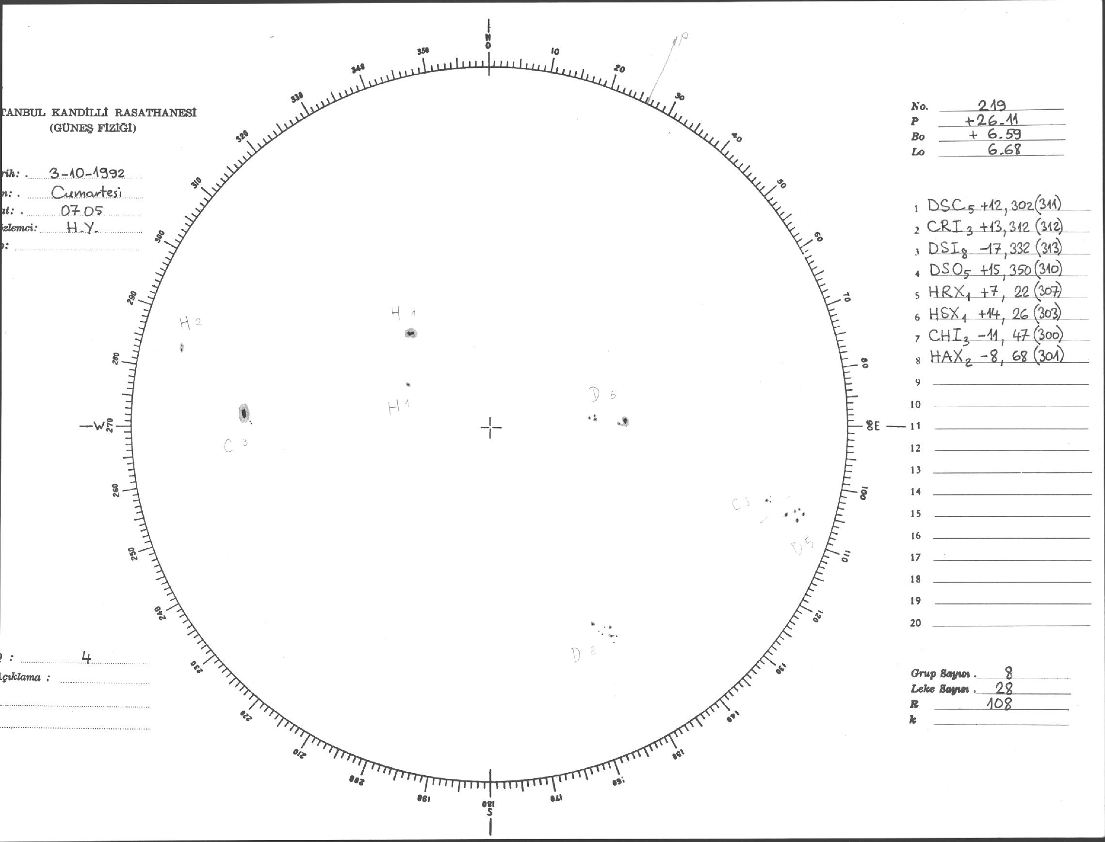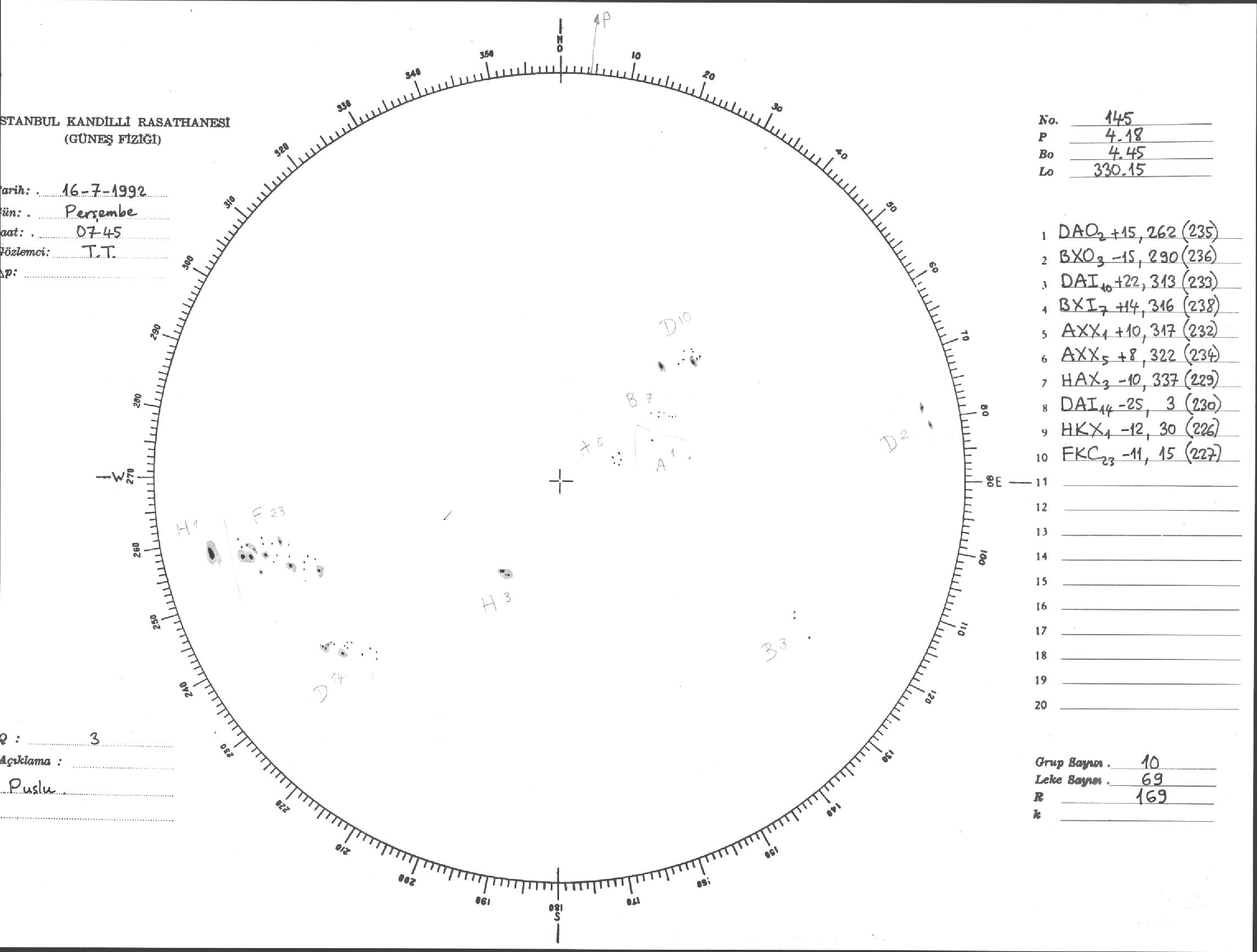 Güneş Lekesi Çizimleri / Kandilli Sunspot Drawings