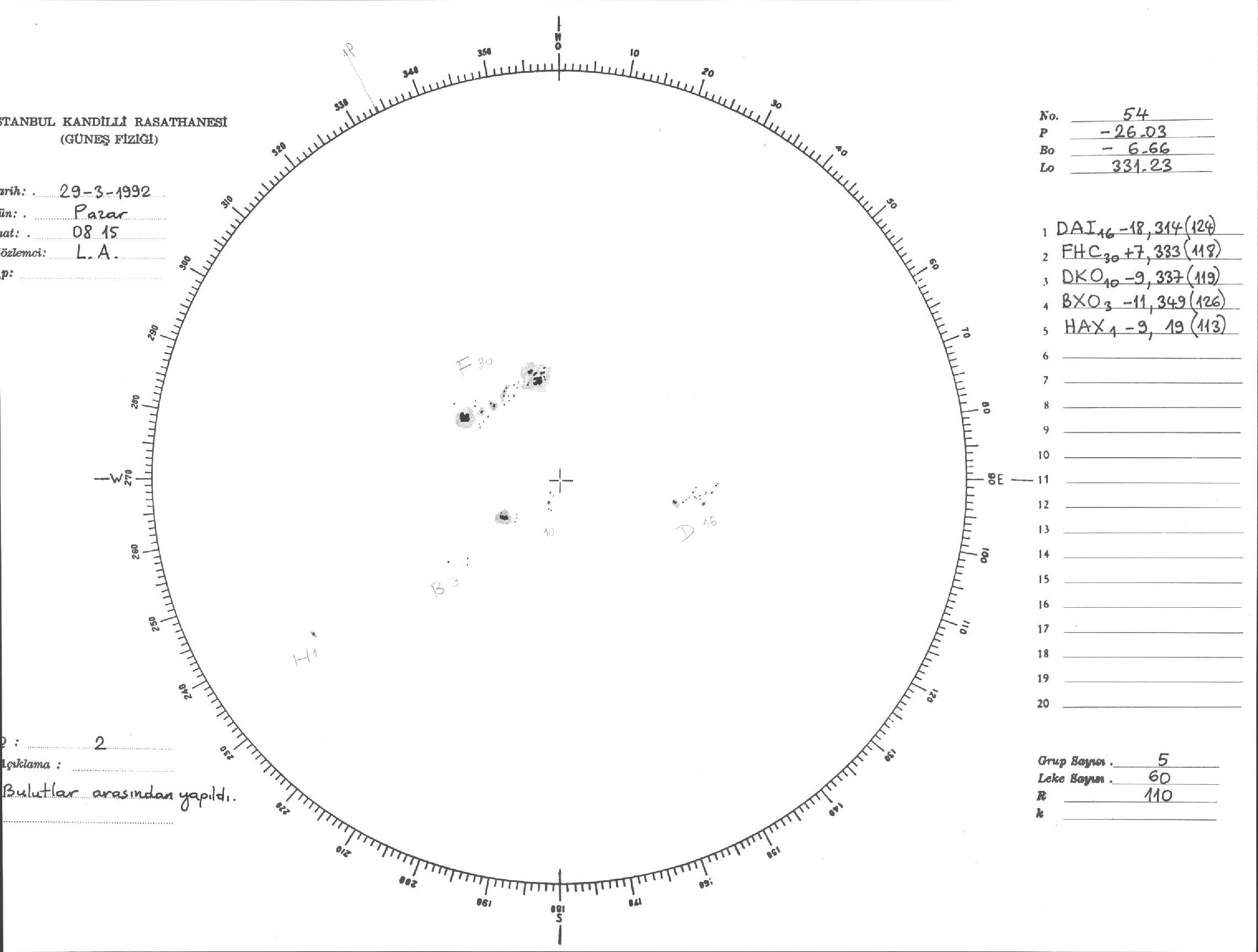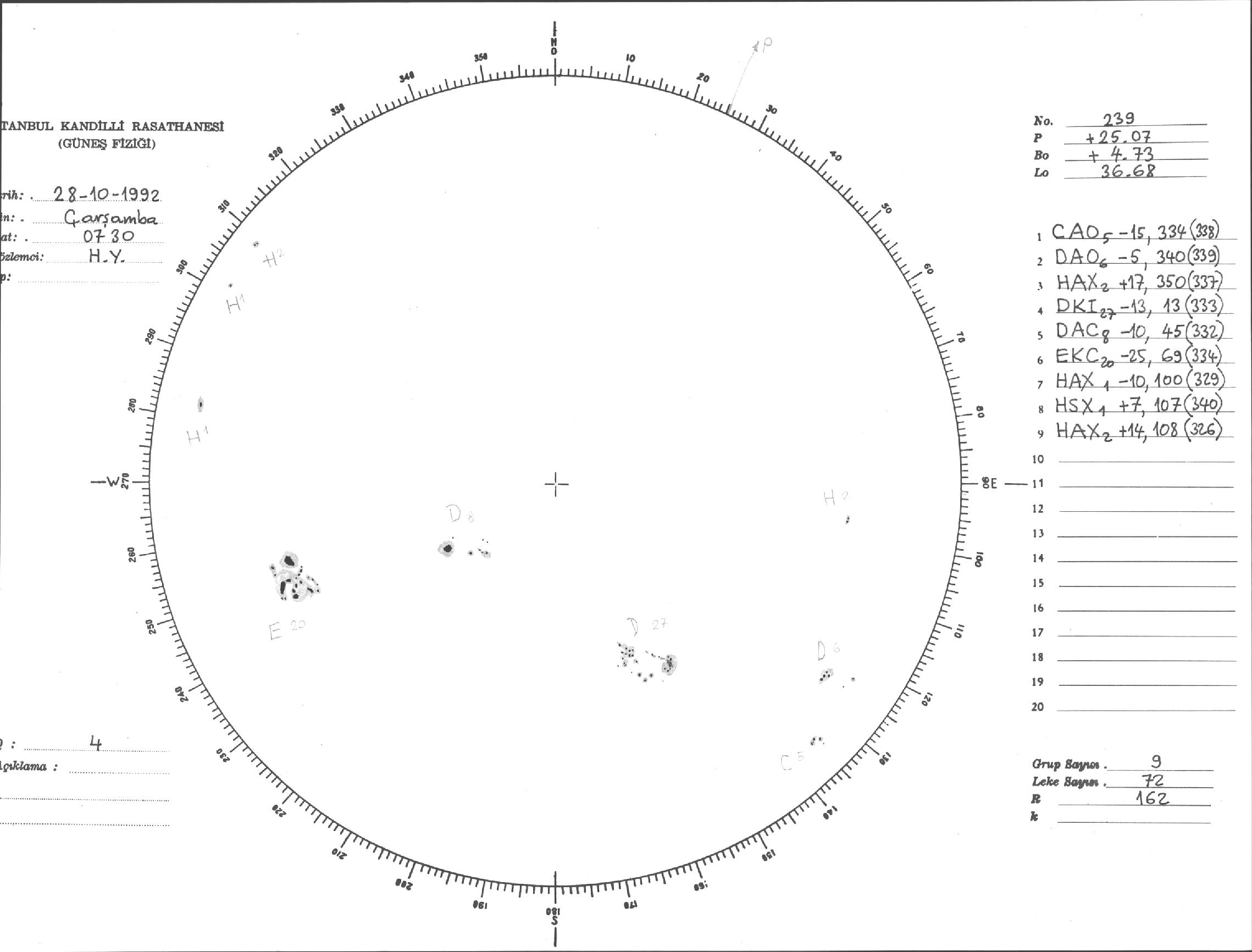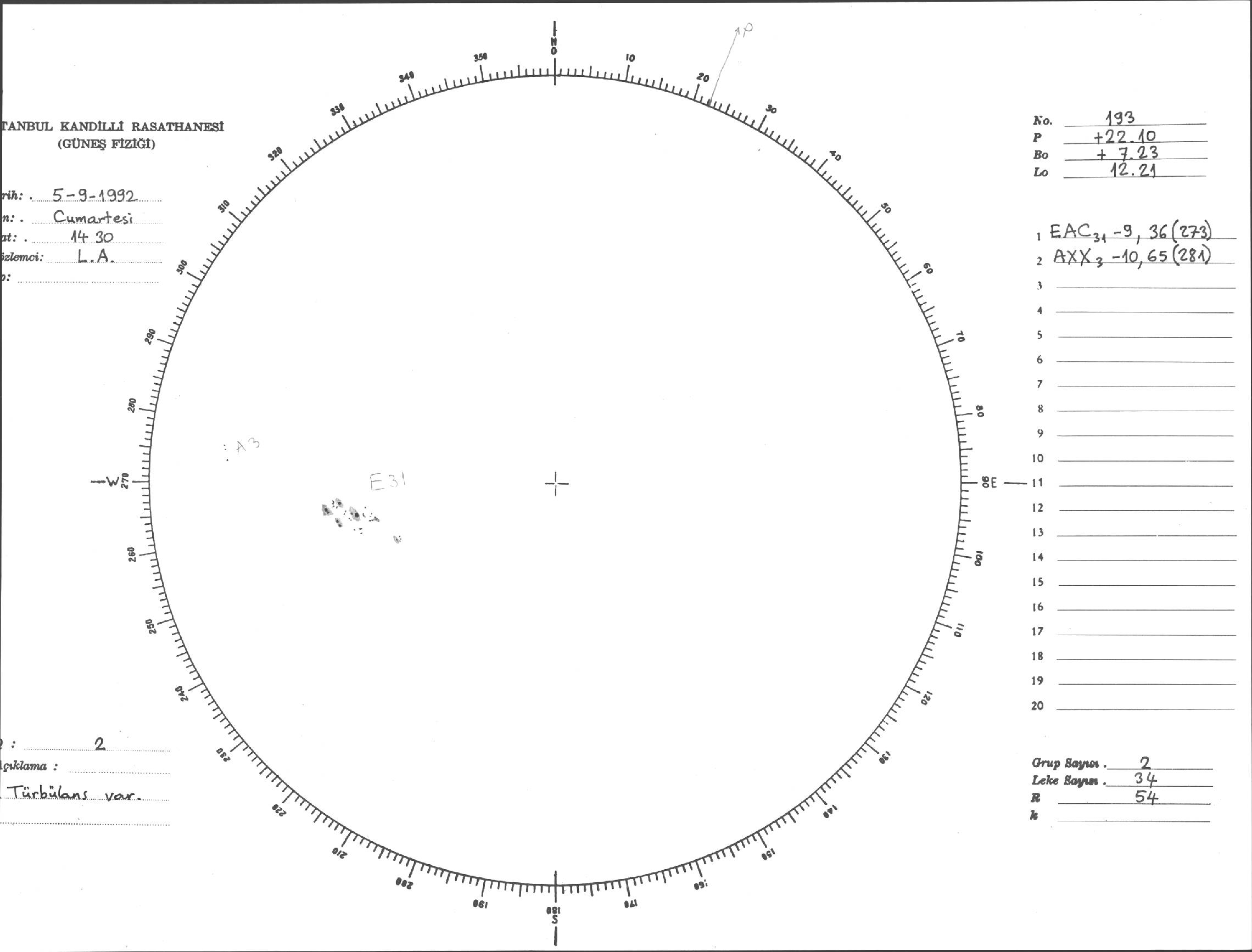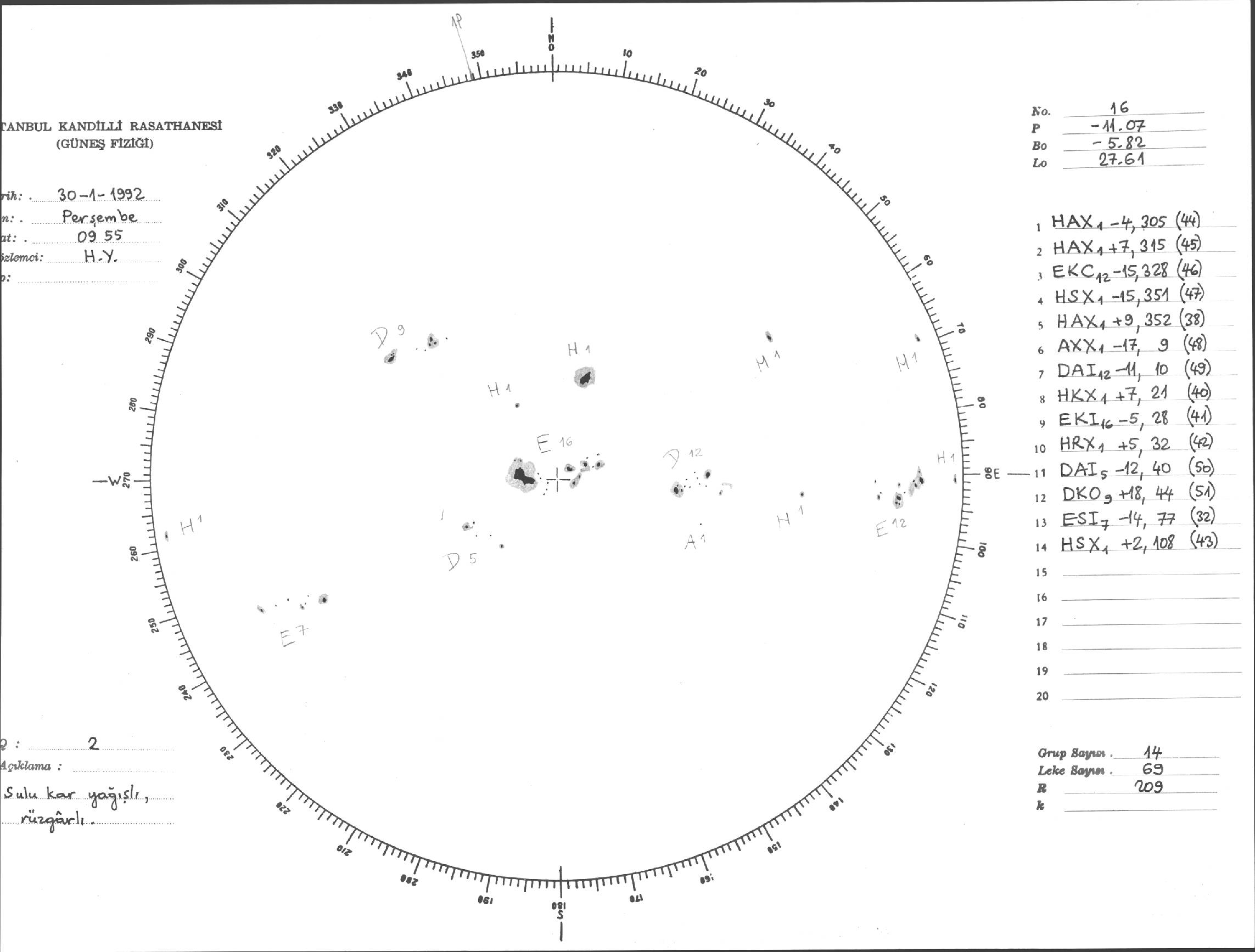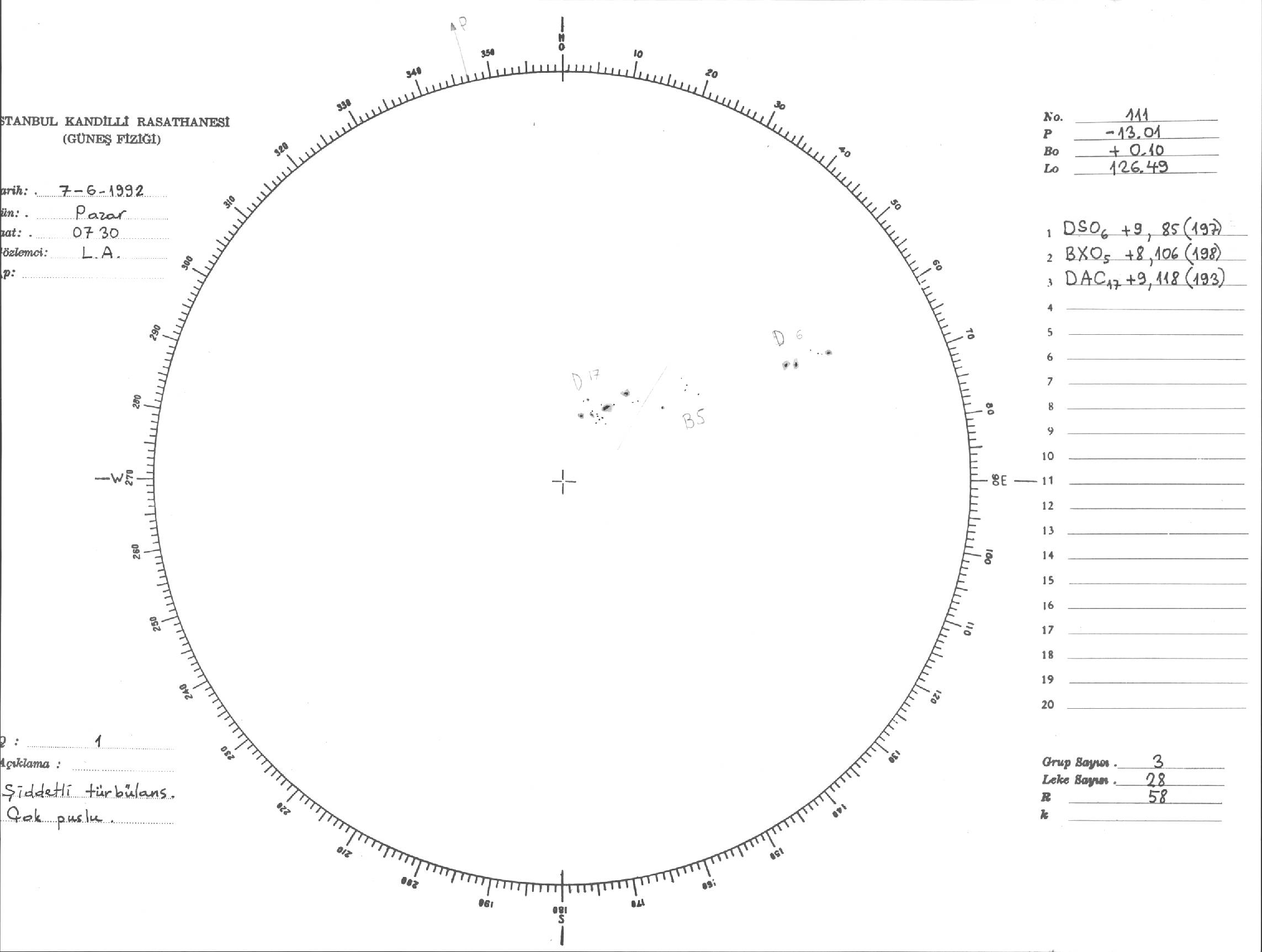 Güneş Lekesi Çizimleri / Kandilli Sunspot Drawings