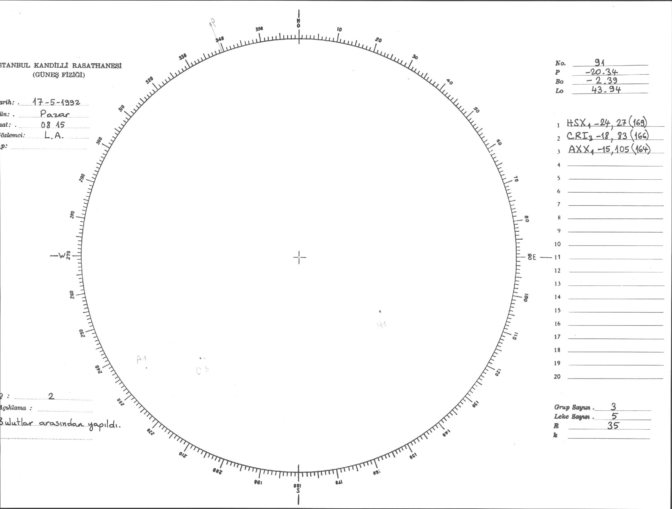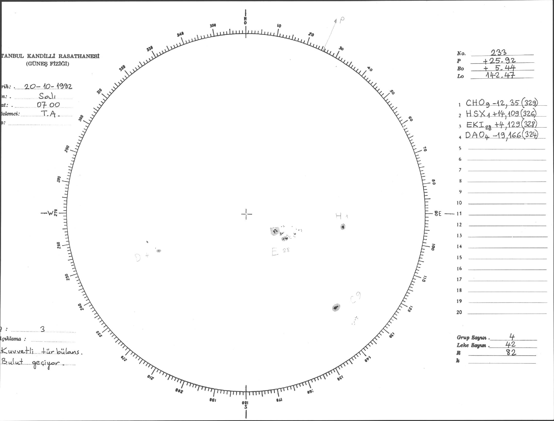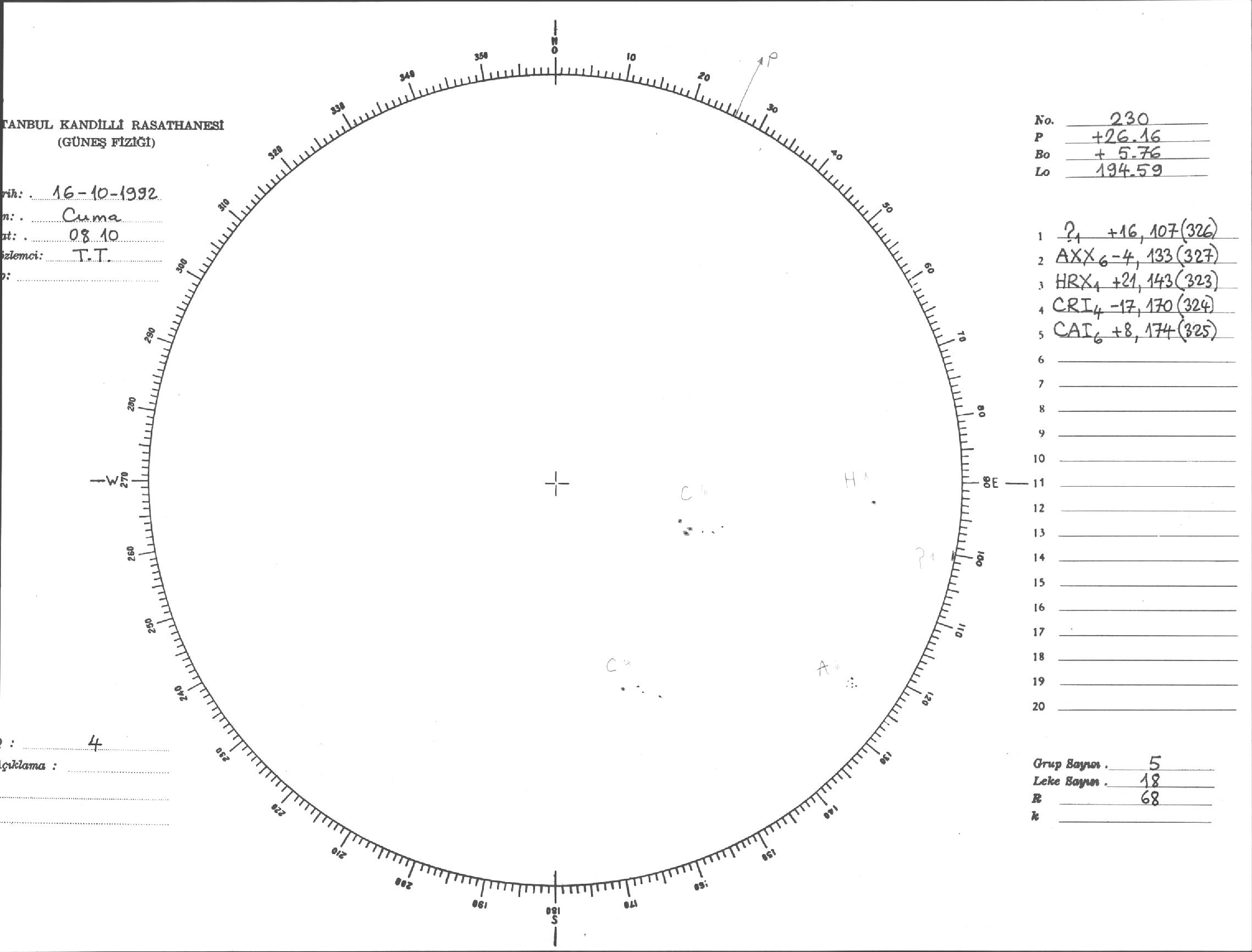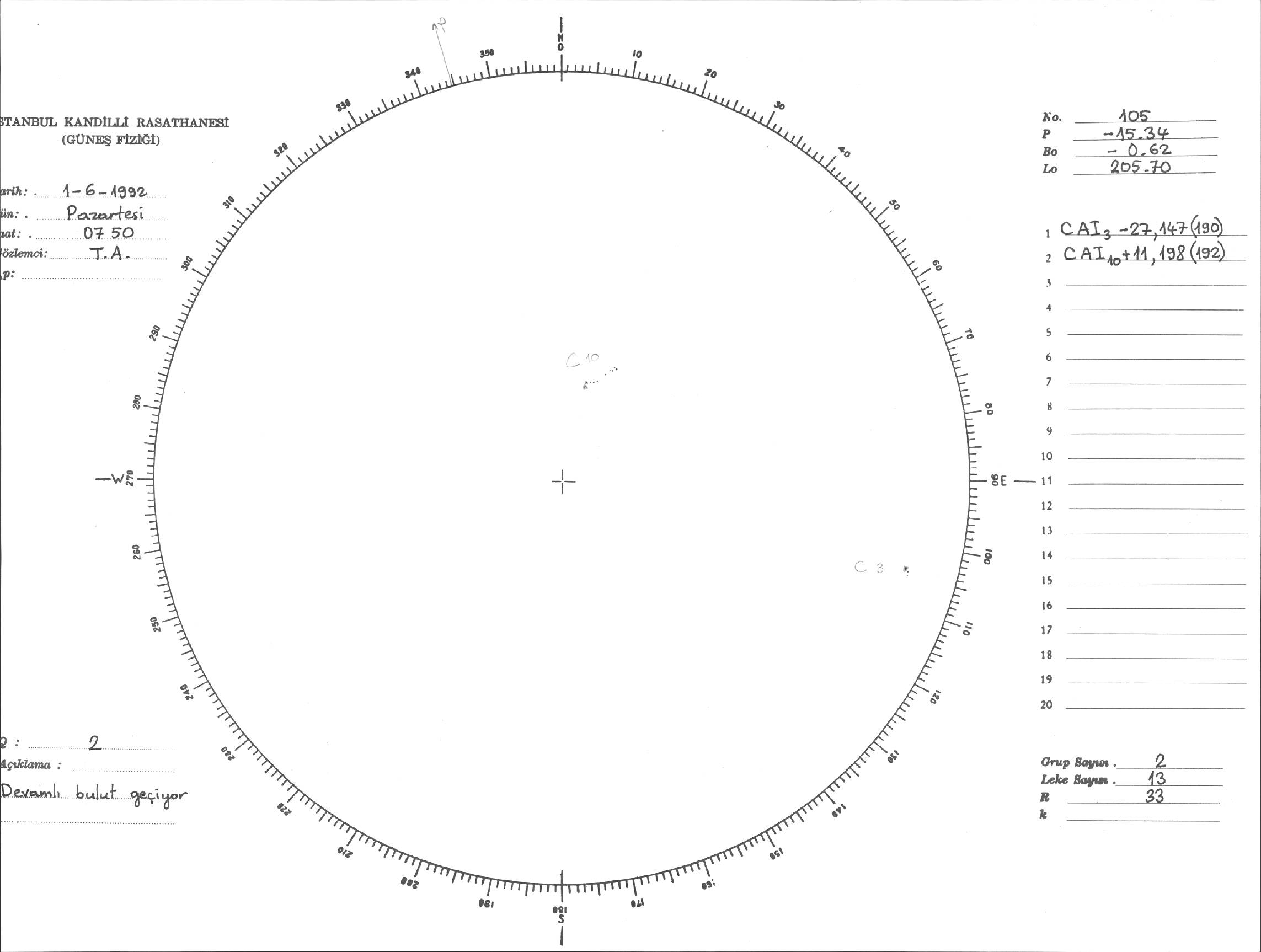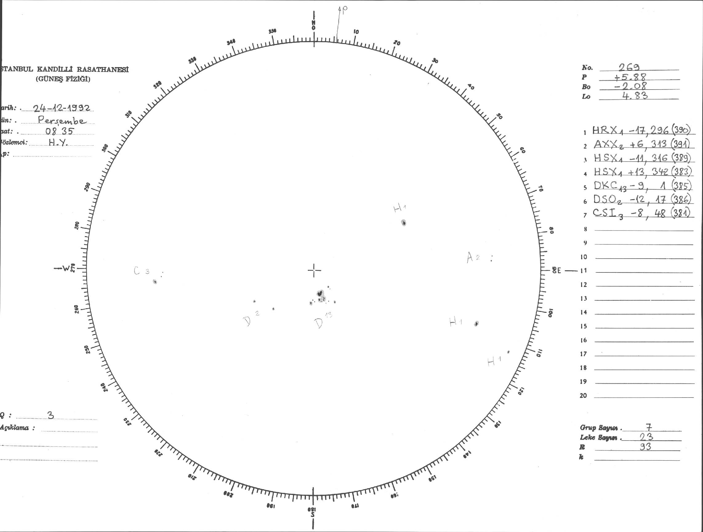 Güneş Lekesi Çizimleri / Kandilli Sunspot Drawings
