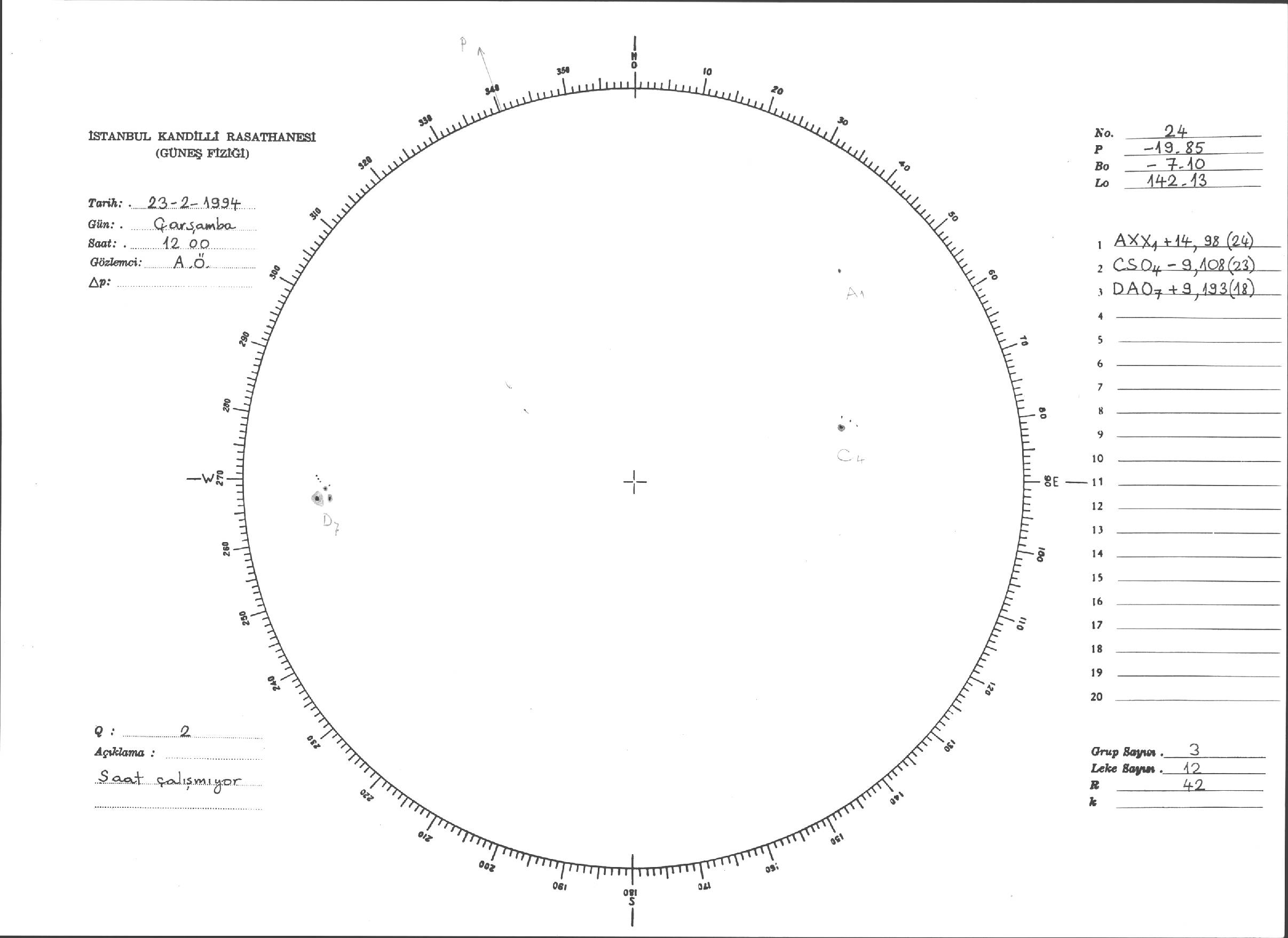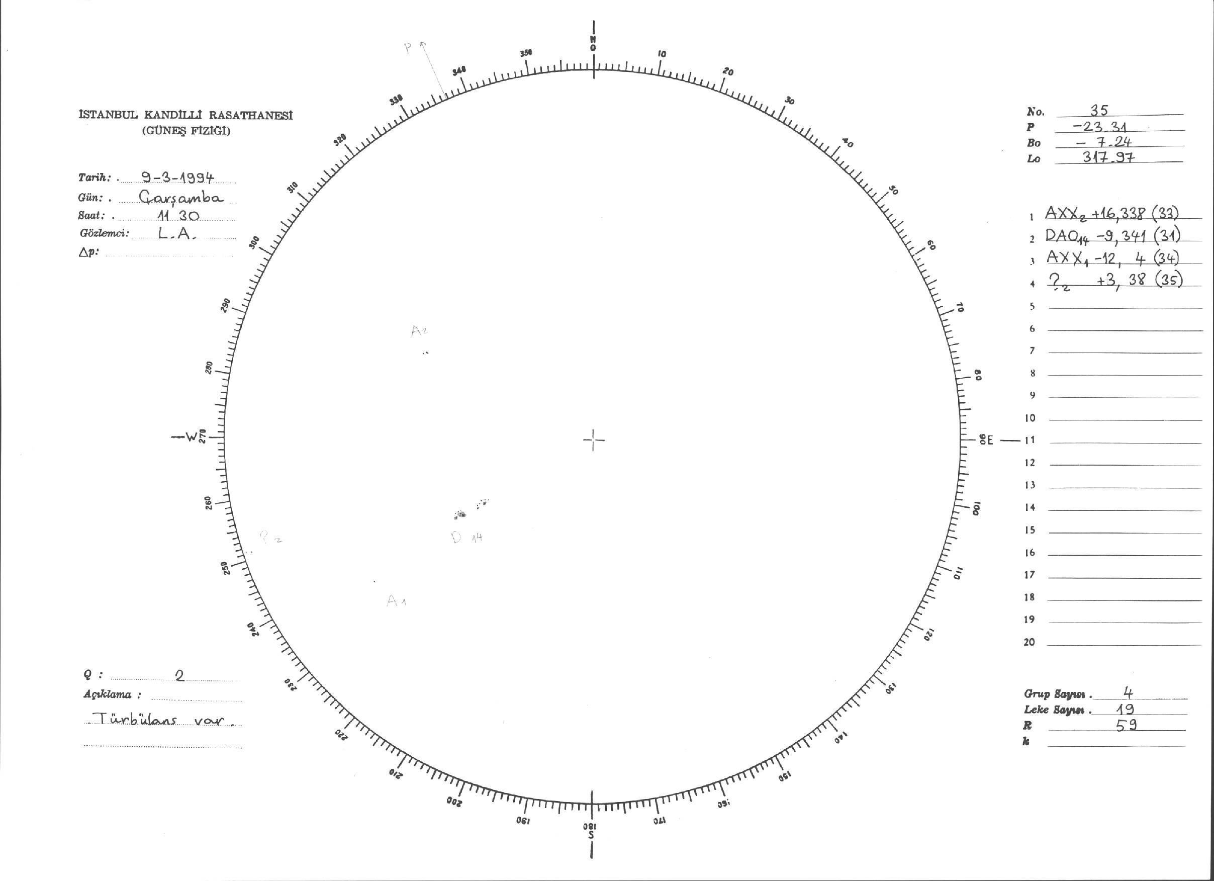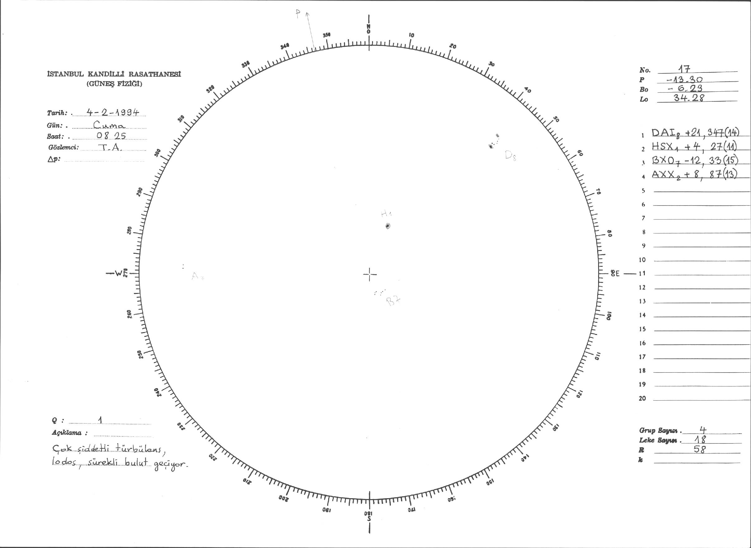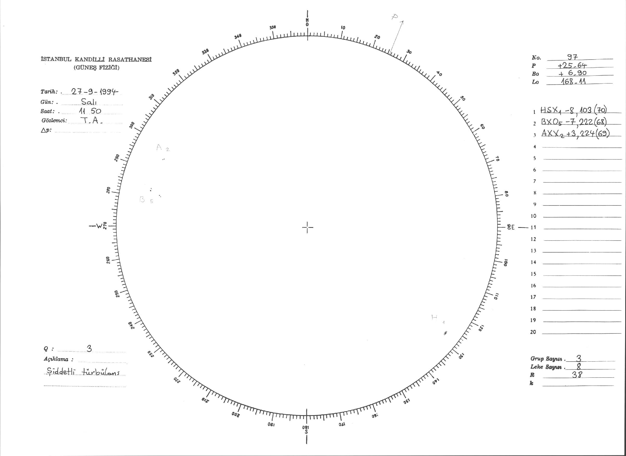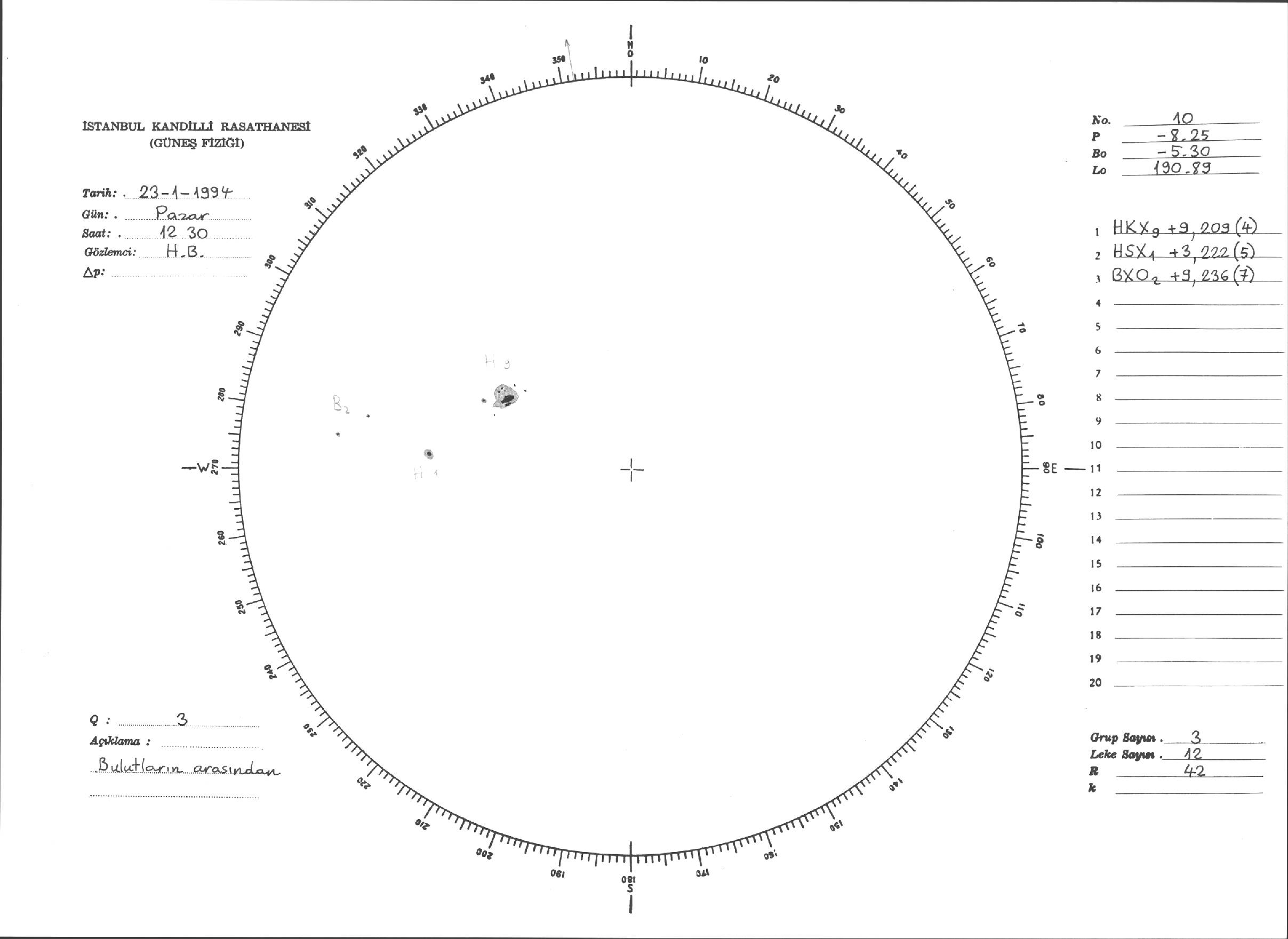 Güneş Lekesi Çizimleri / Kandilli Sunspot Drawings