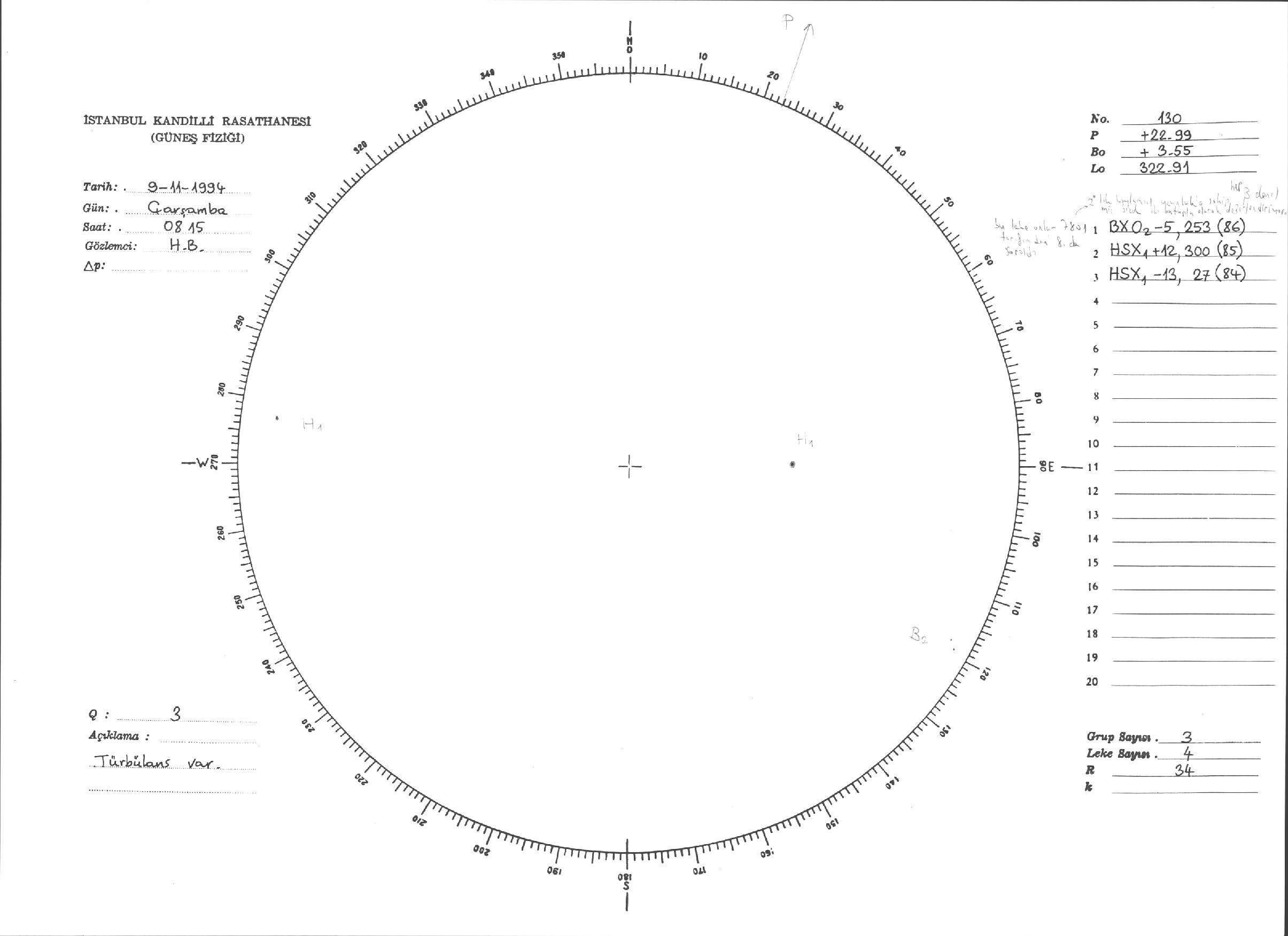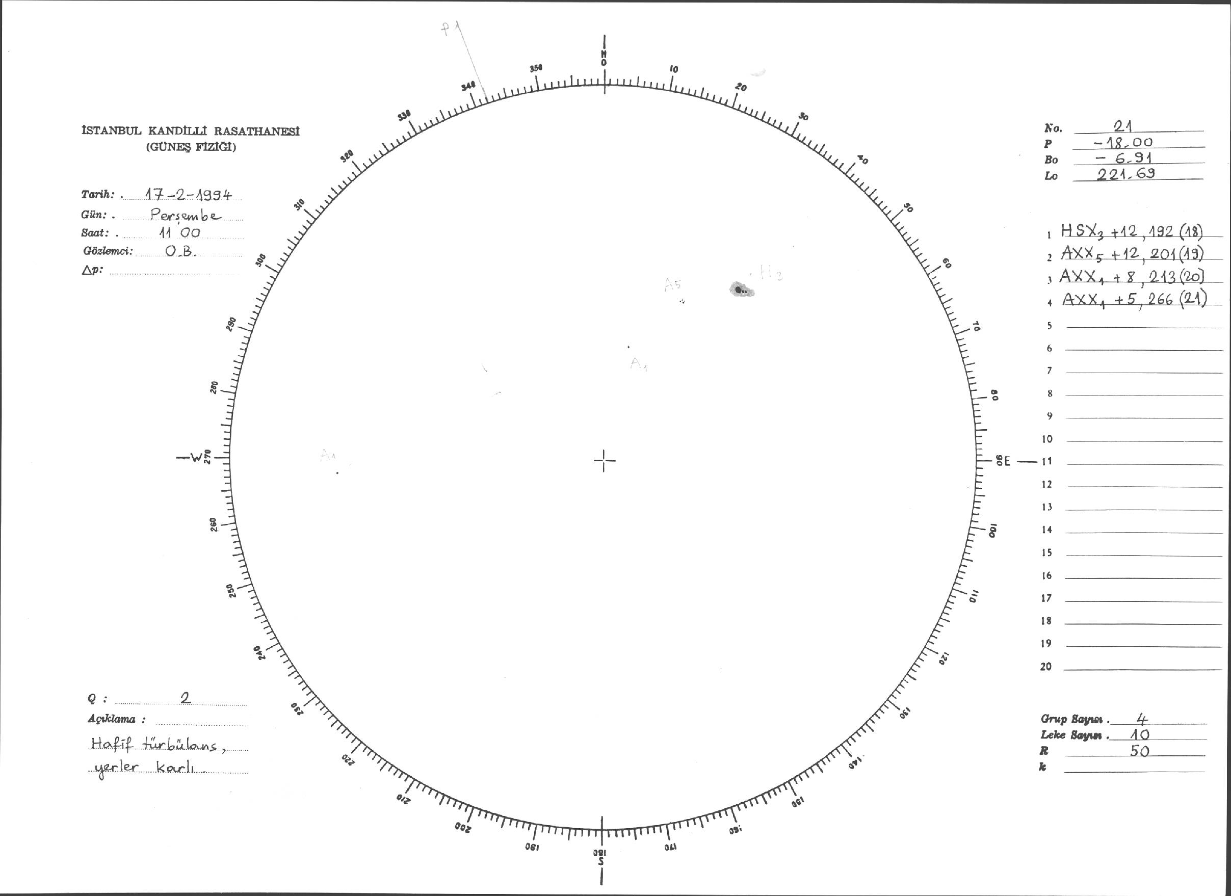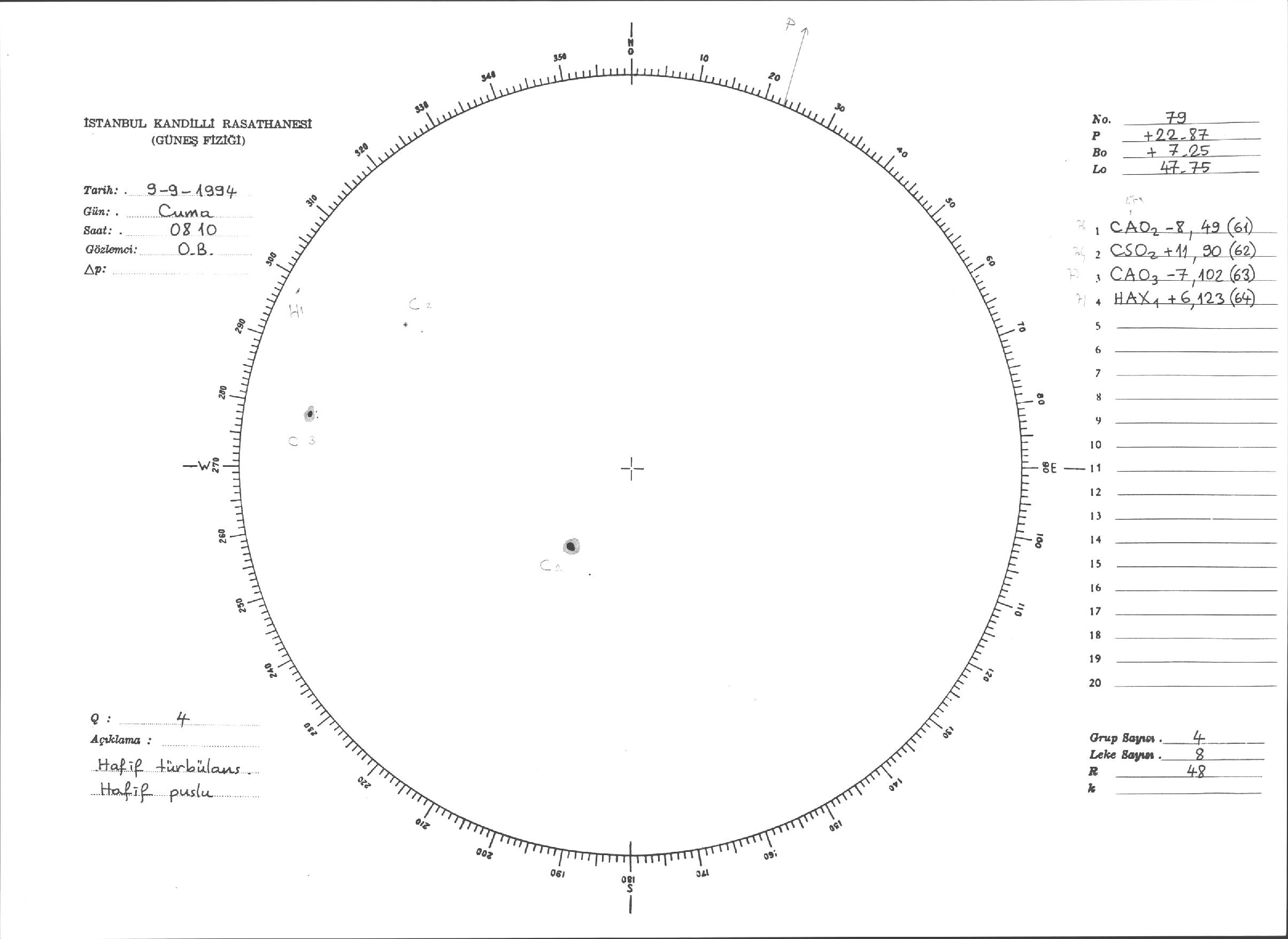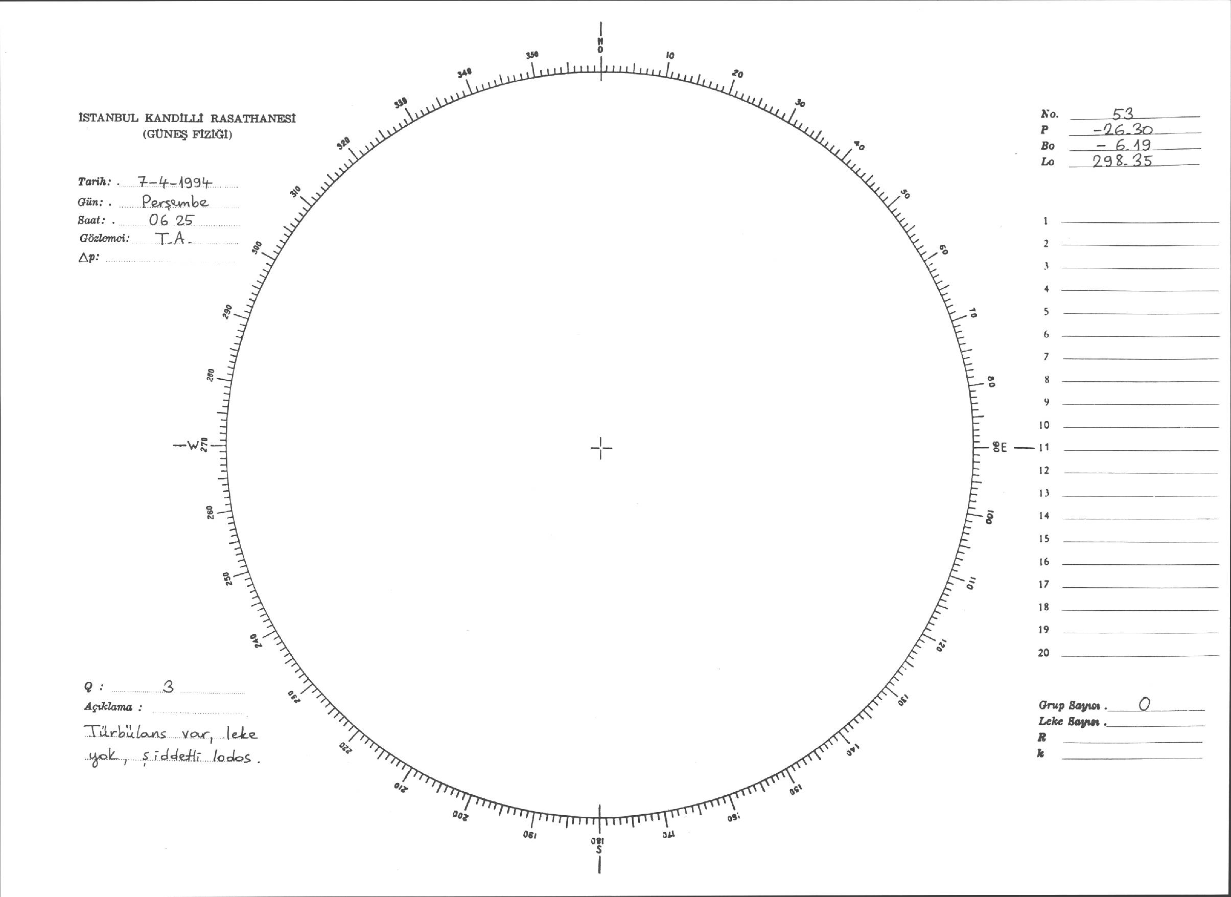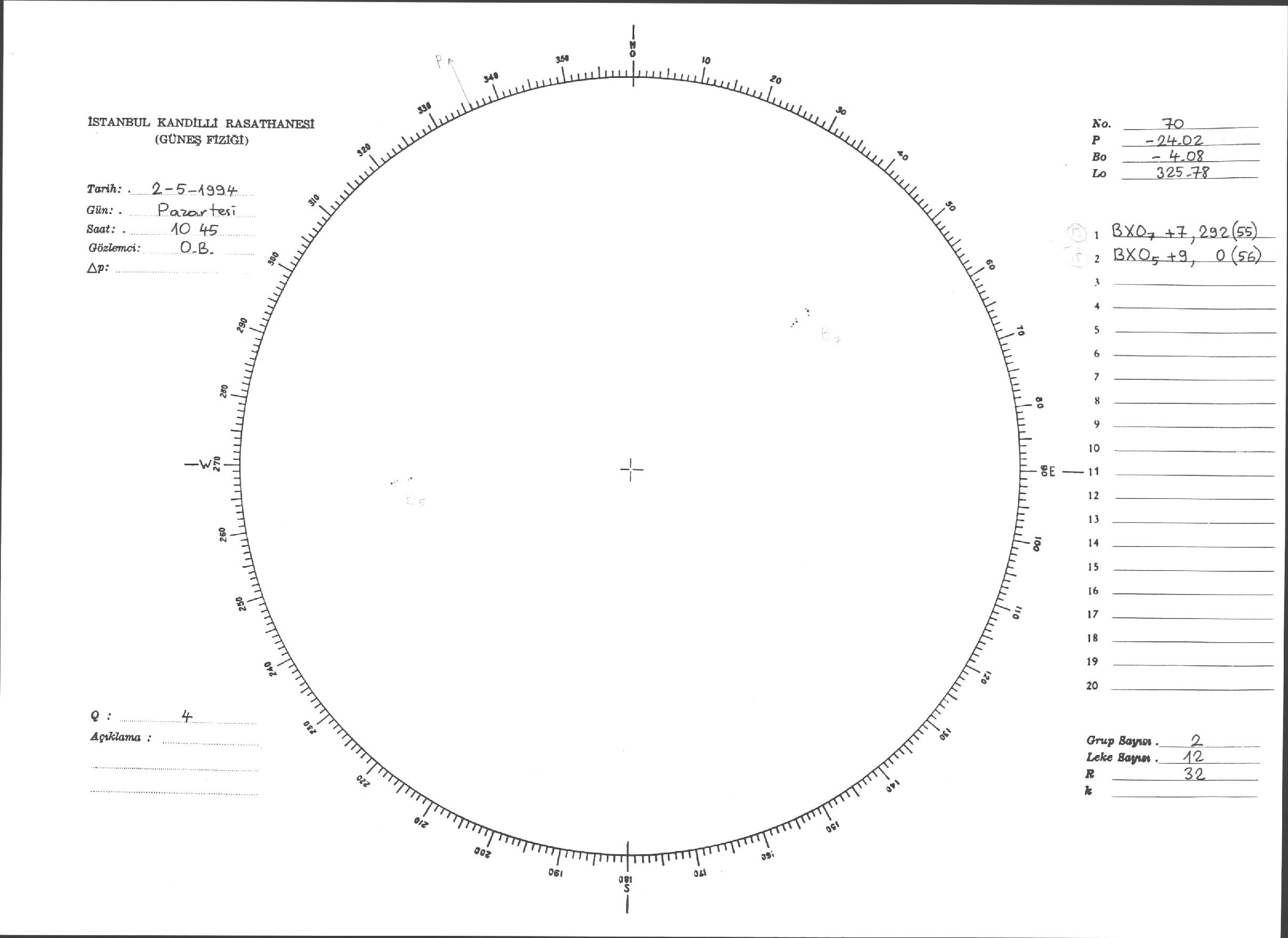 Güneş Lekesi Çizimleri / Kandilli Sunspot Drawings