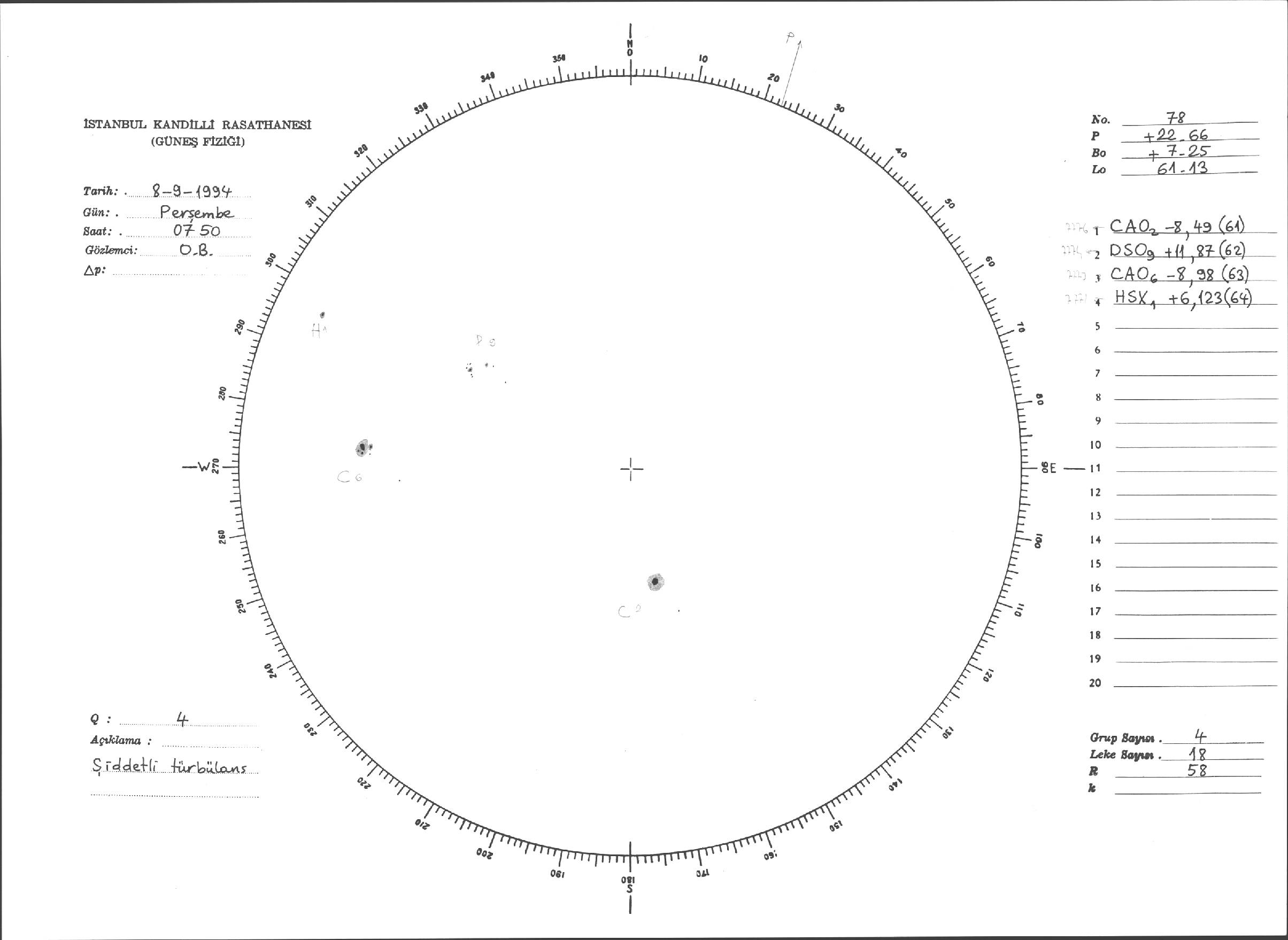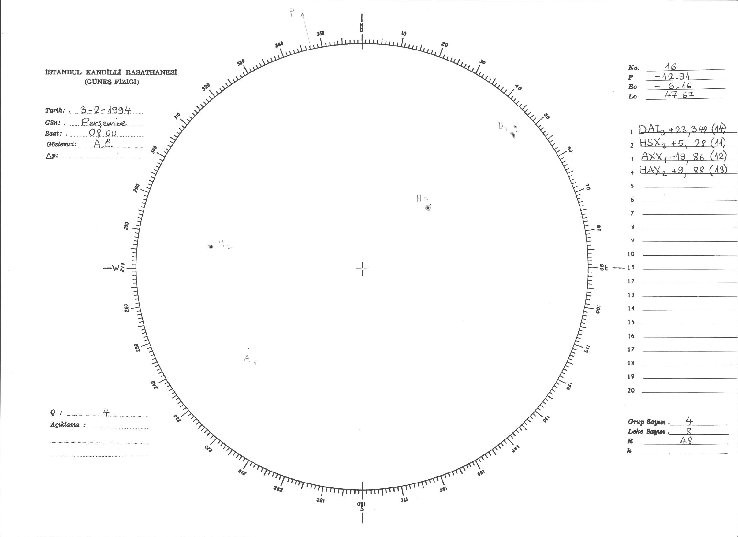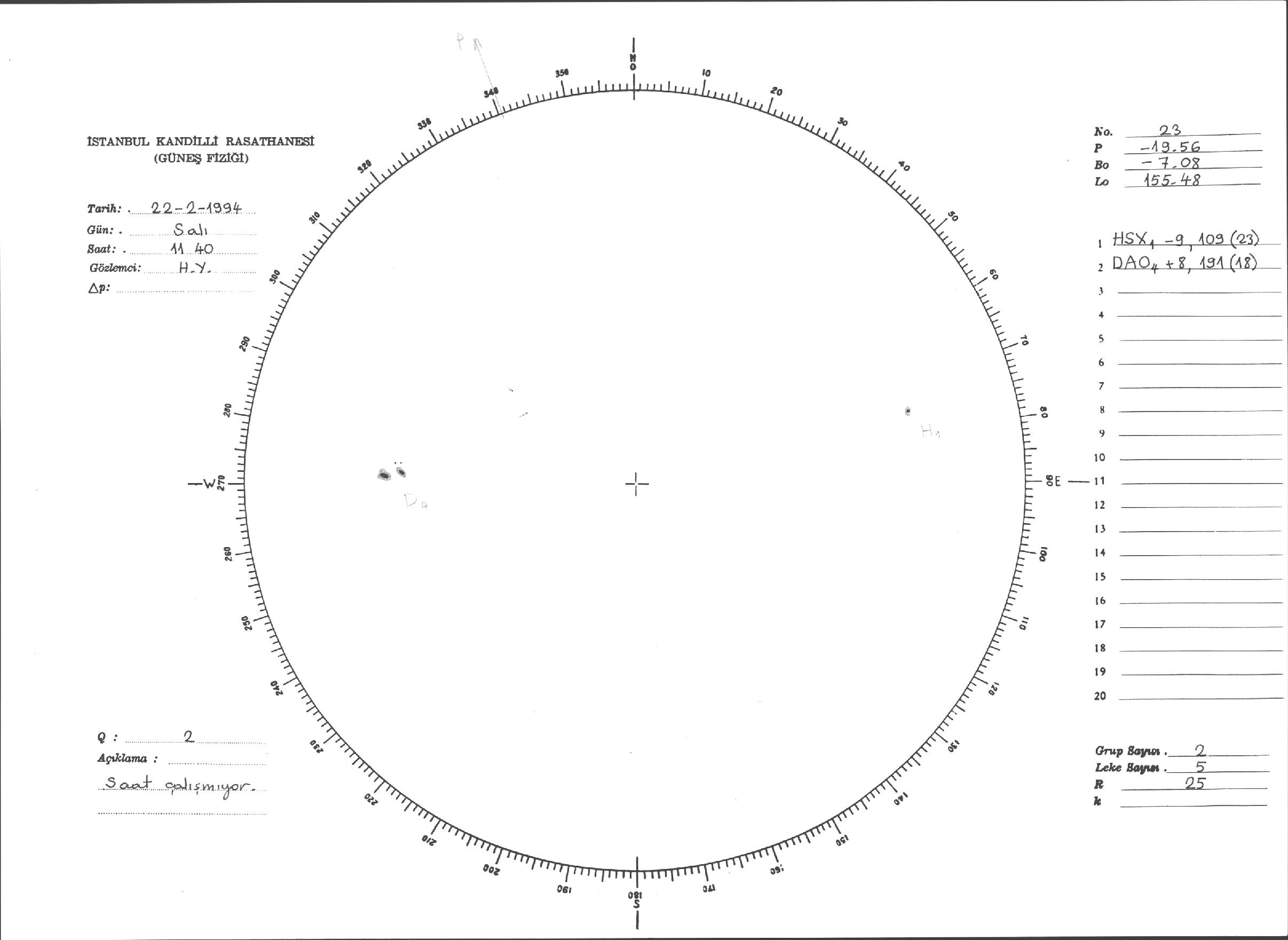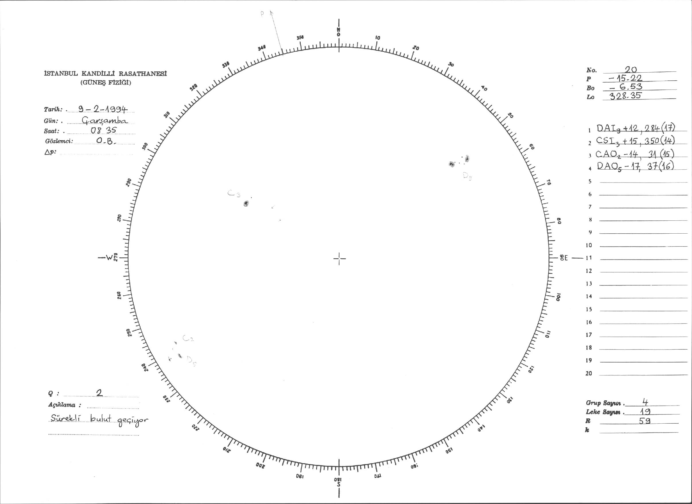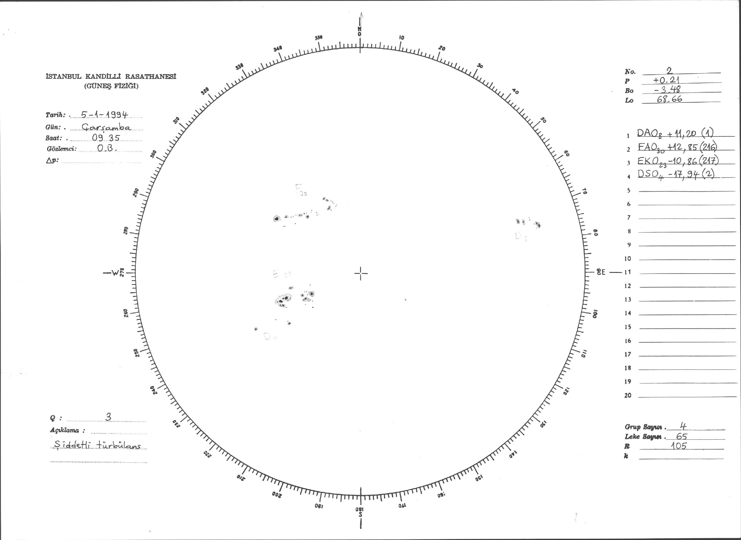 Güneş Lekesi Çizimleri / Kandilli Sunspot Drawings