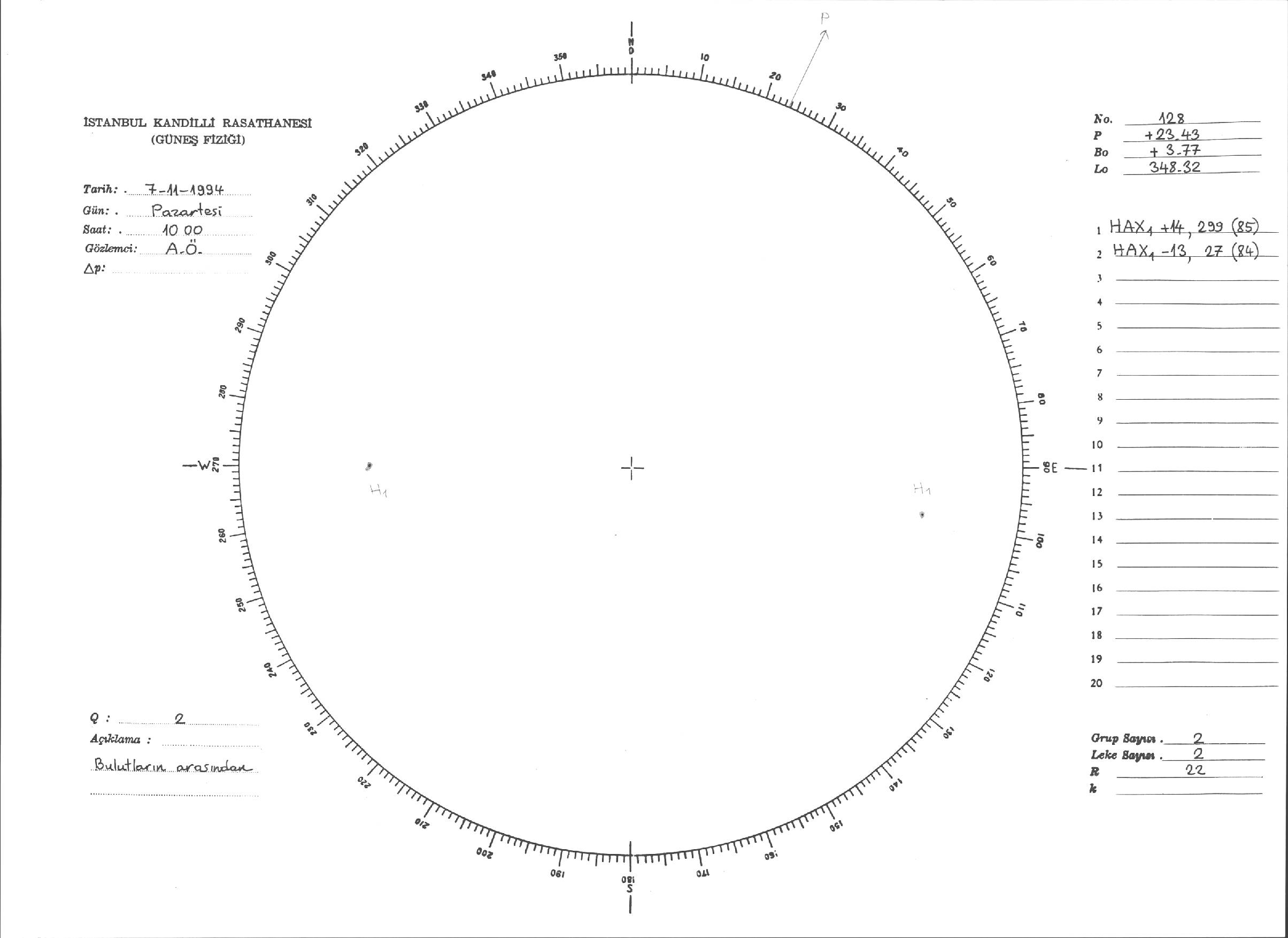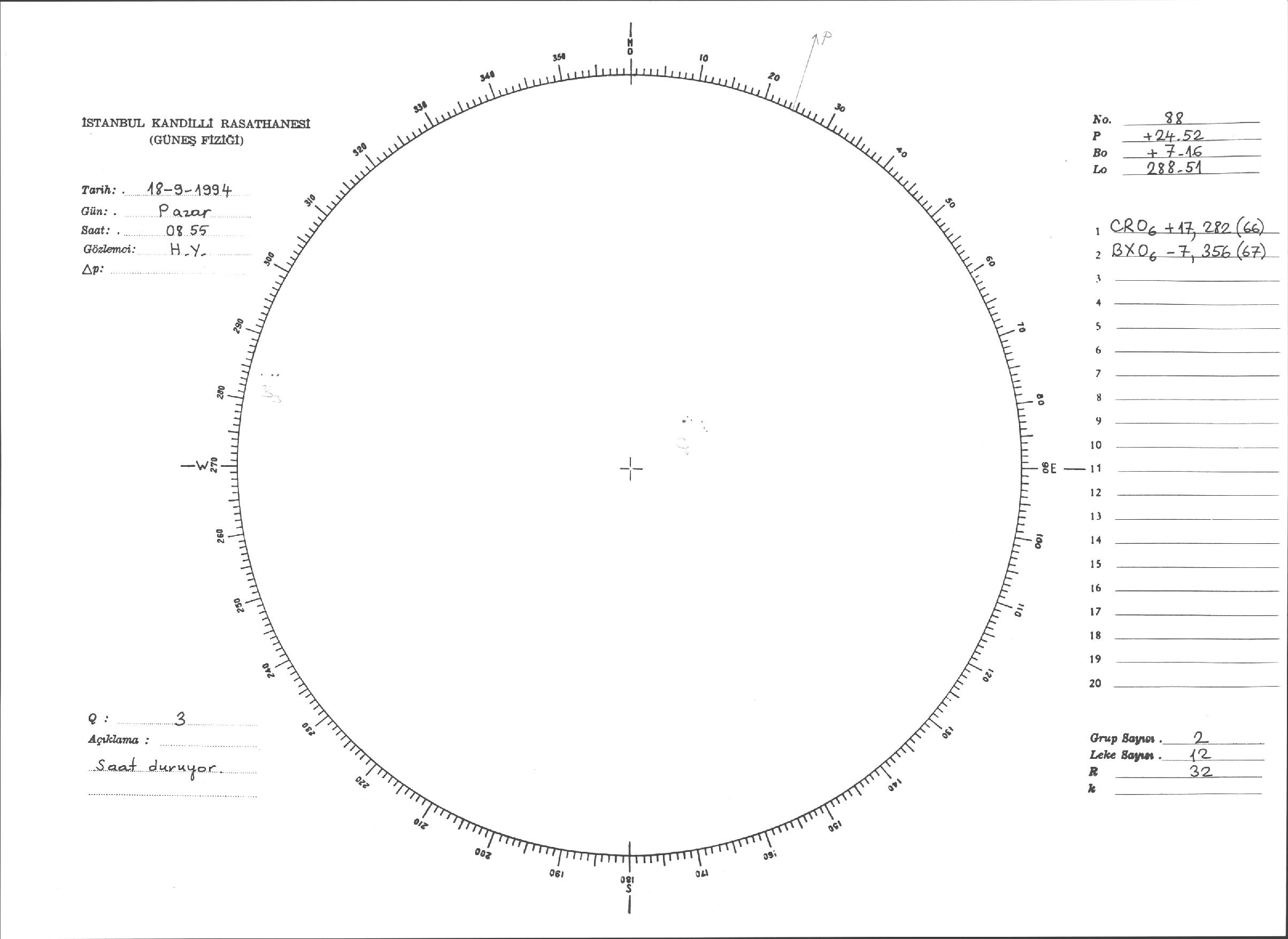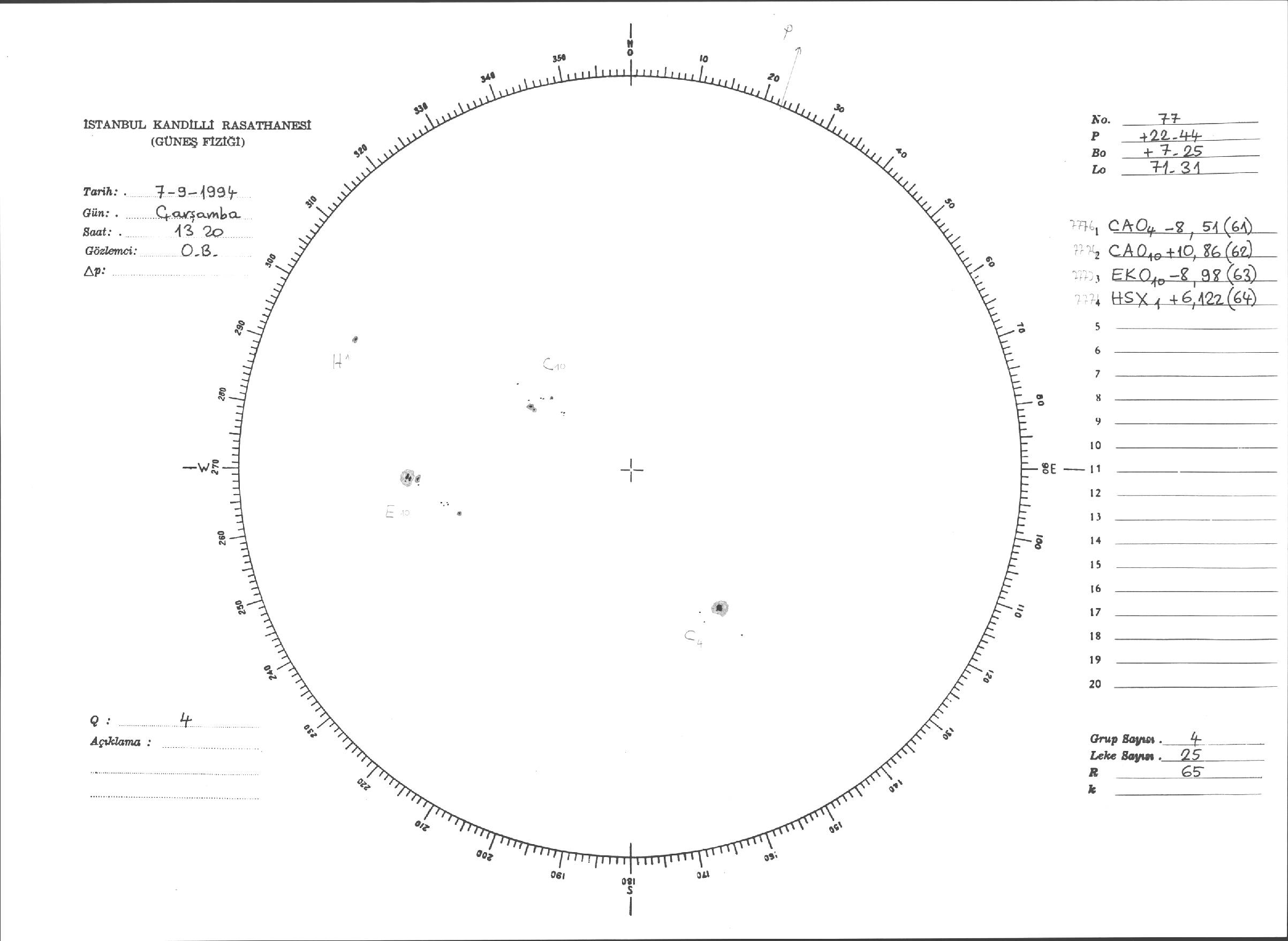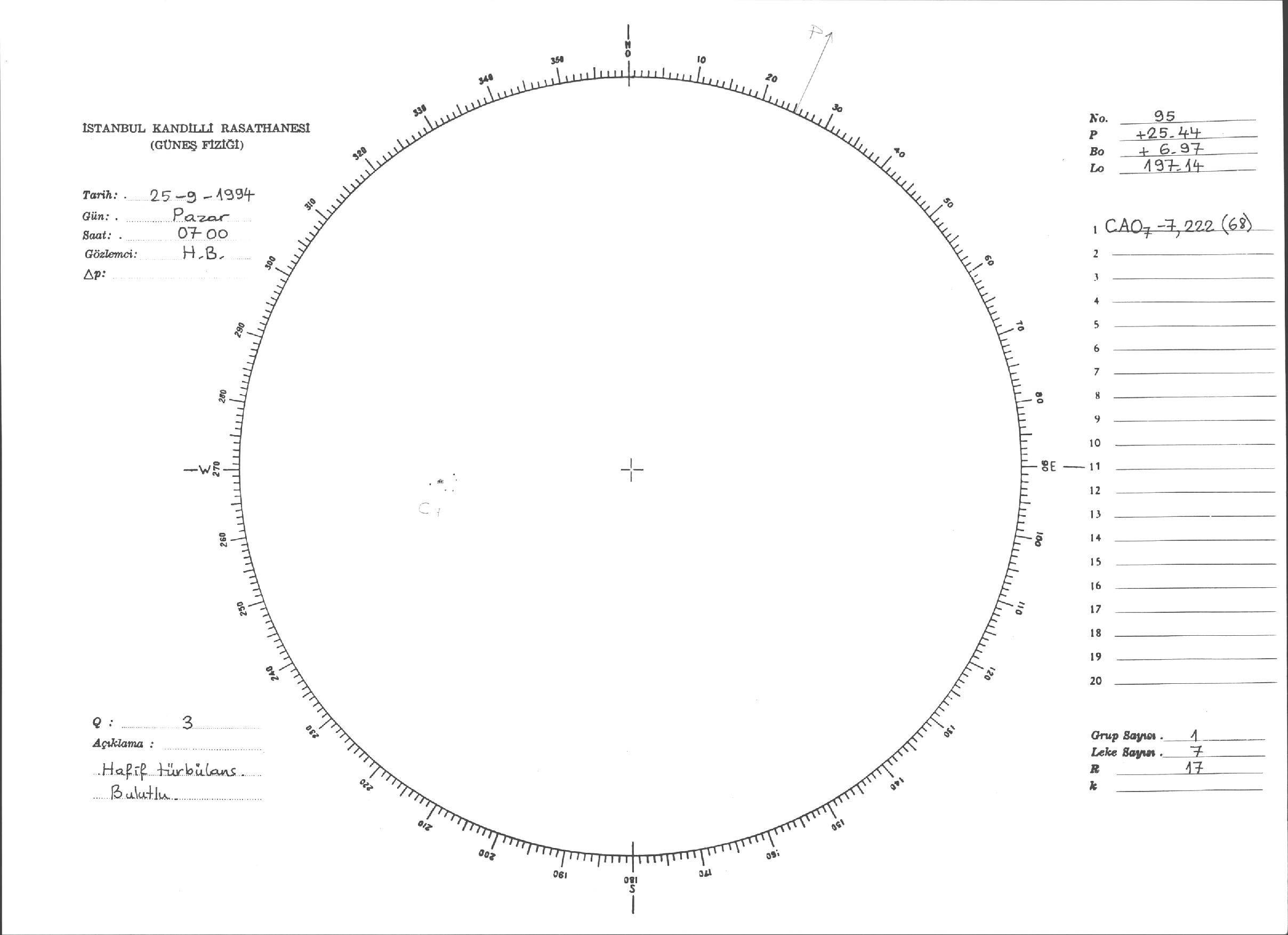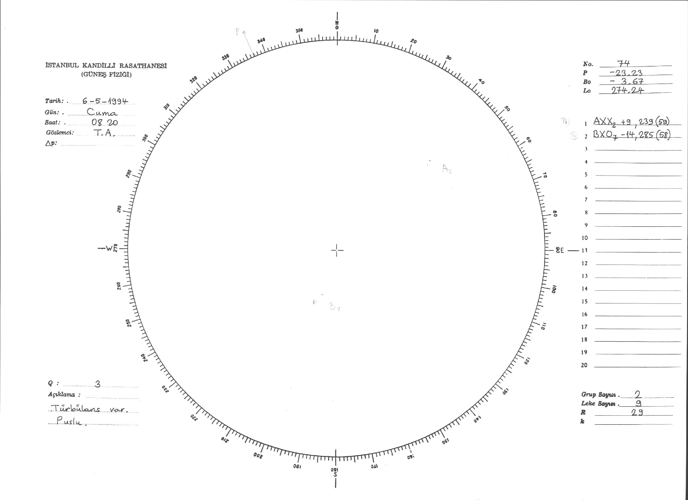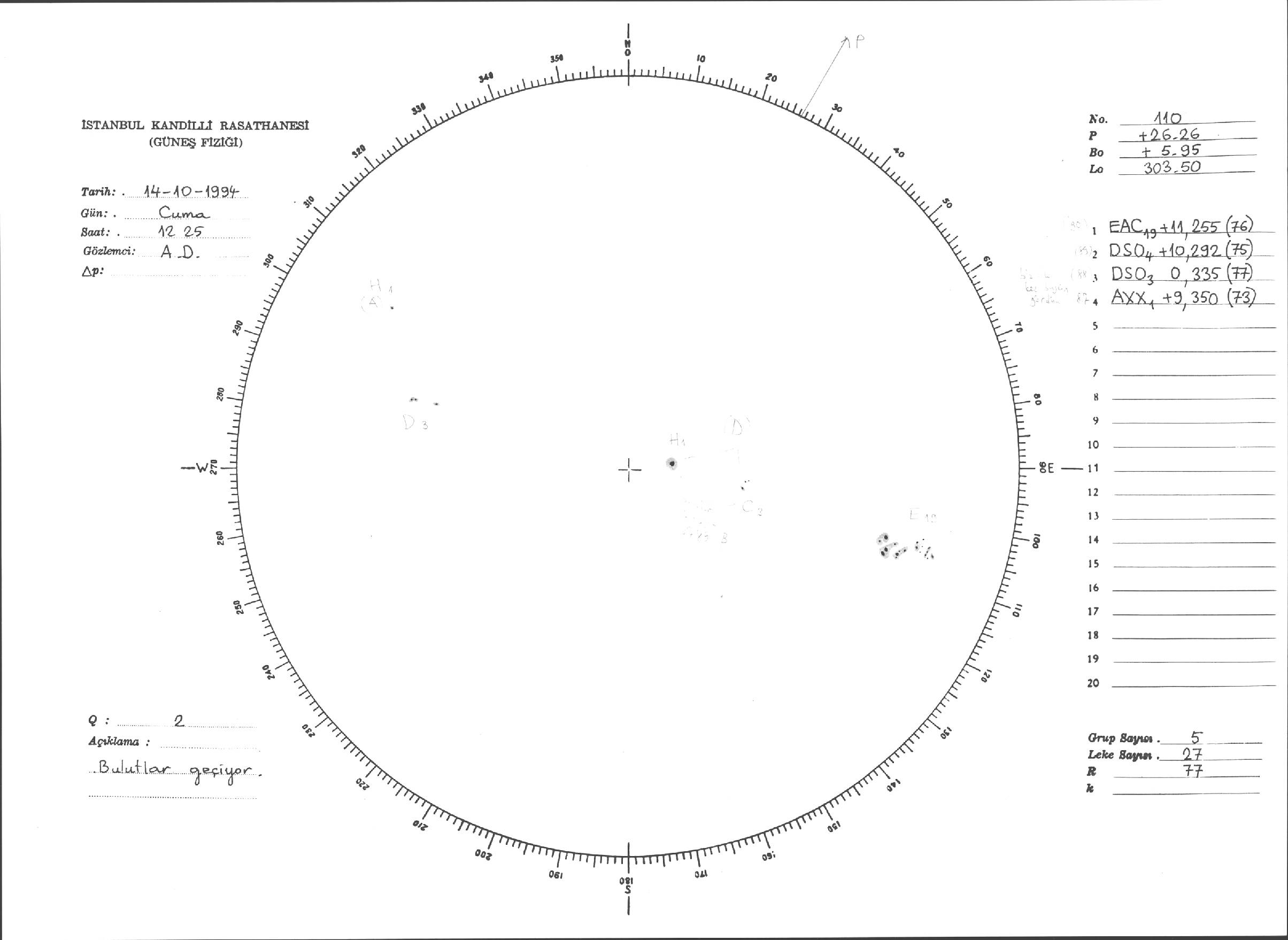 Güneş Lekesi Çizimleri / Kandilli Sunspot Drawings