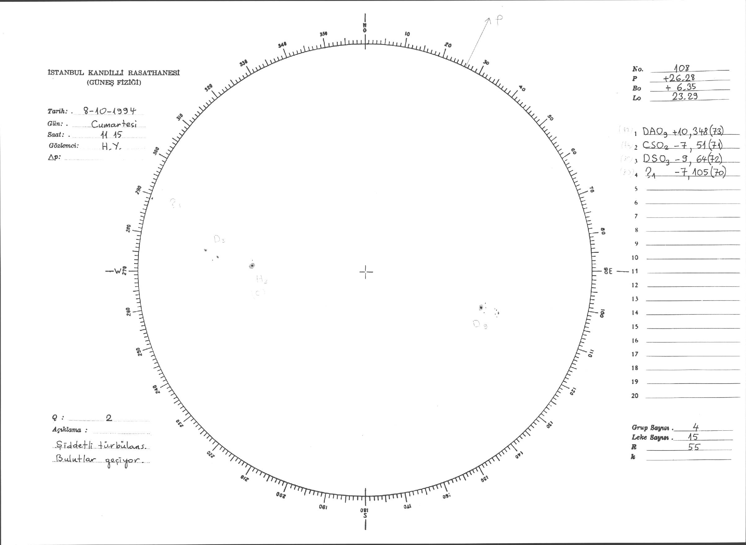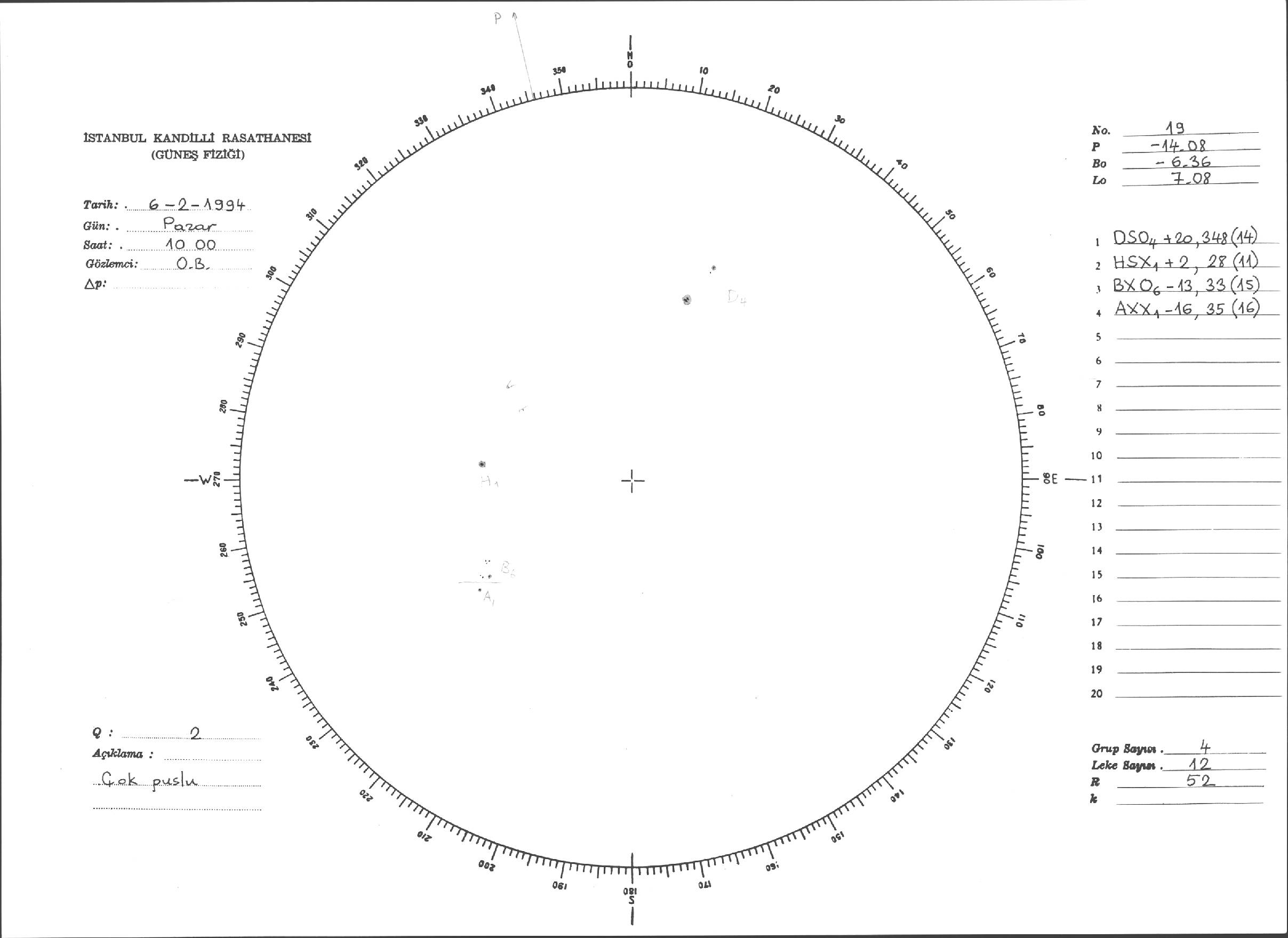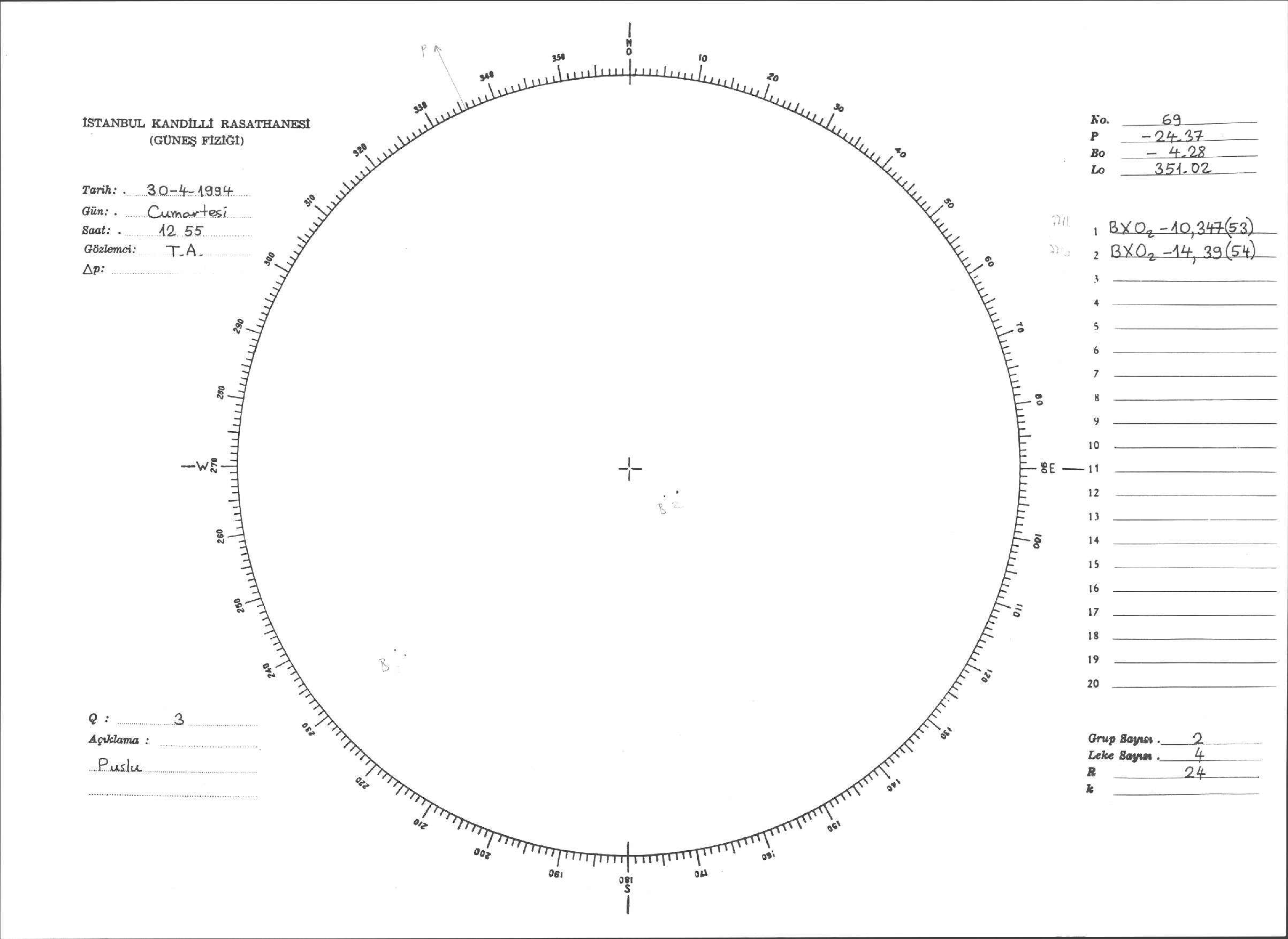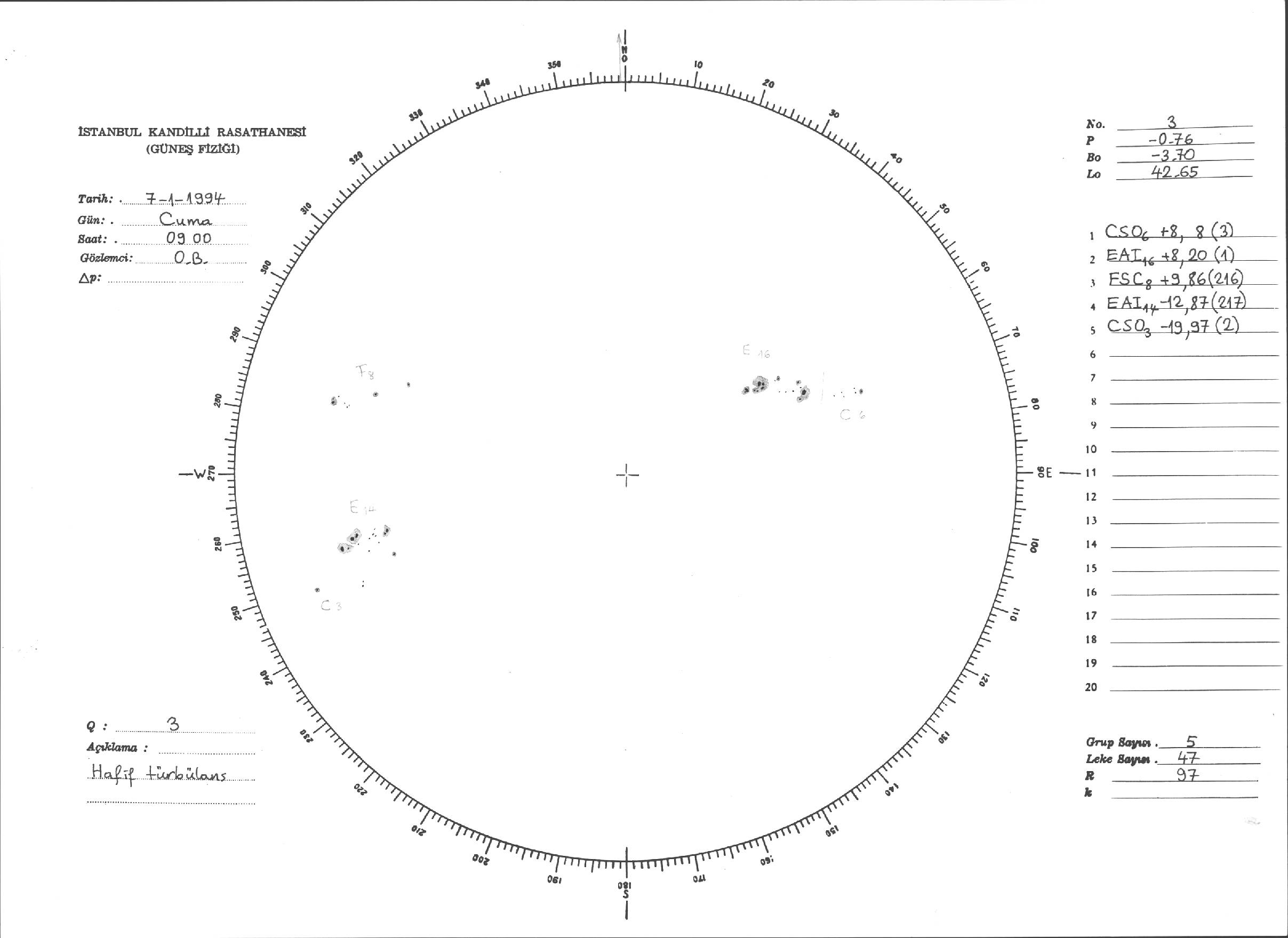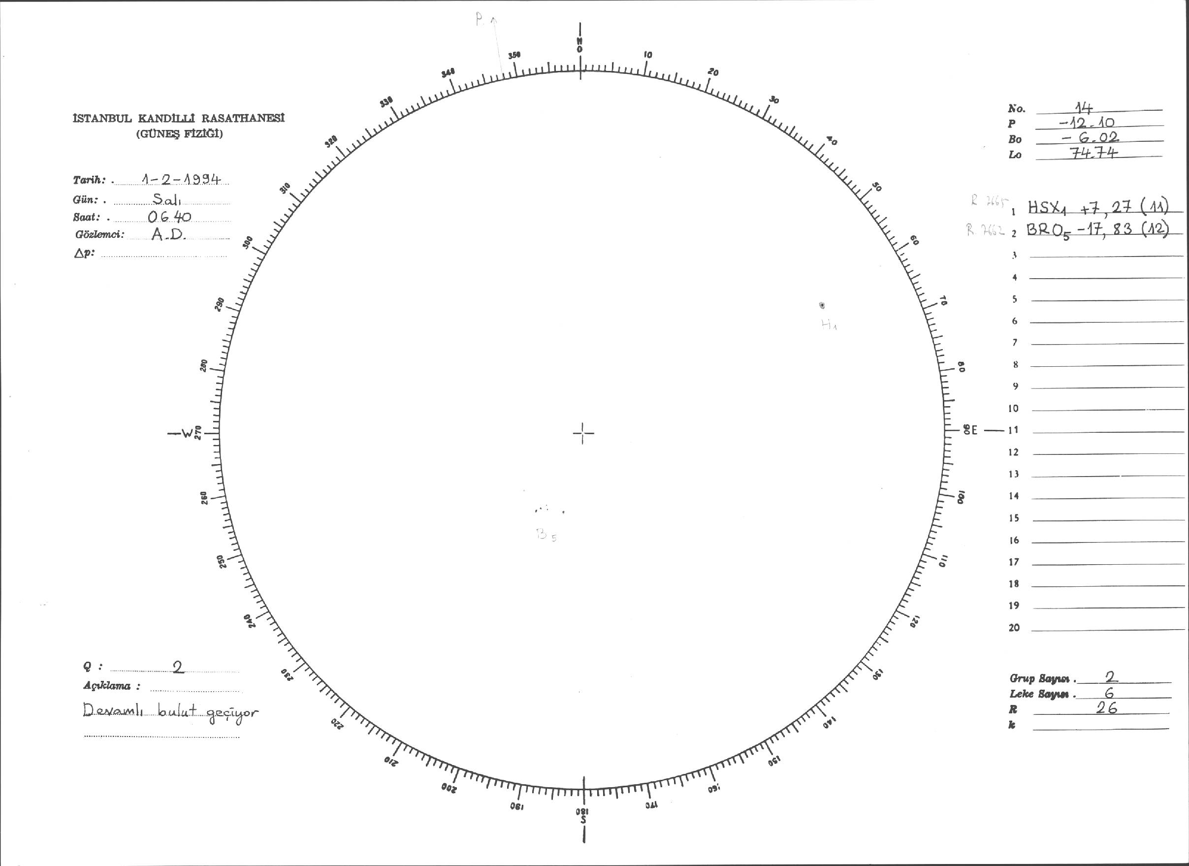 Güneş Lekesi Çizimleri / Kandilli Sunspot Drawings