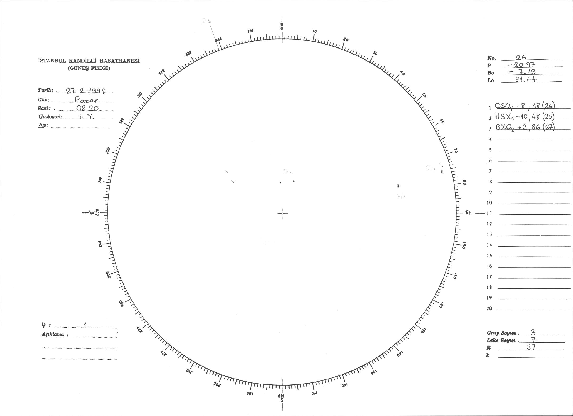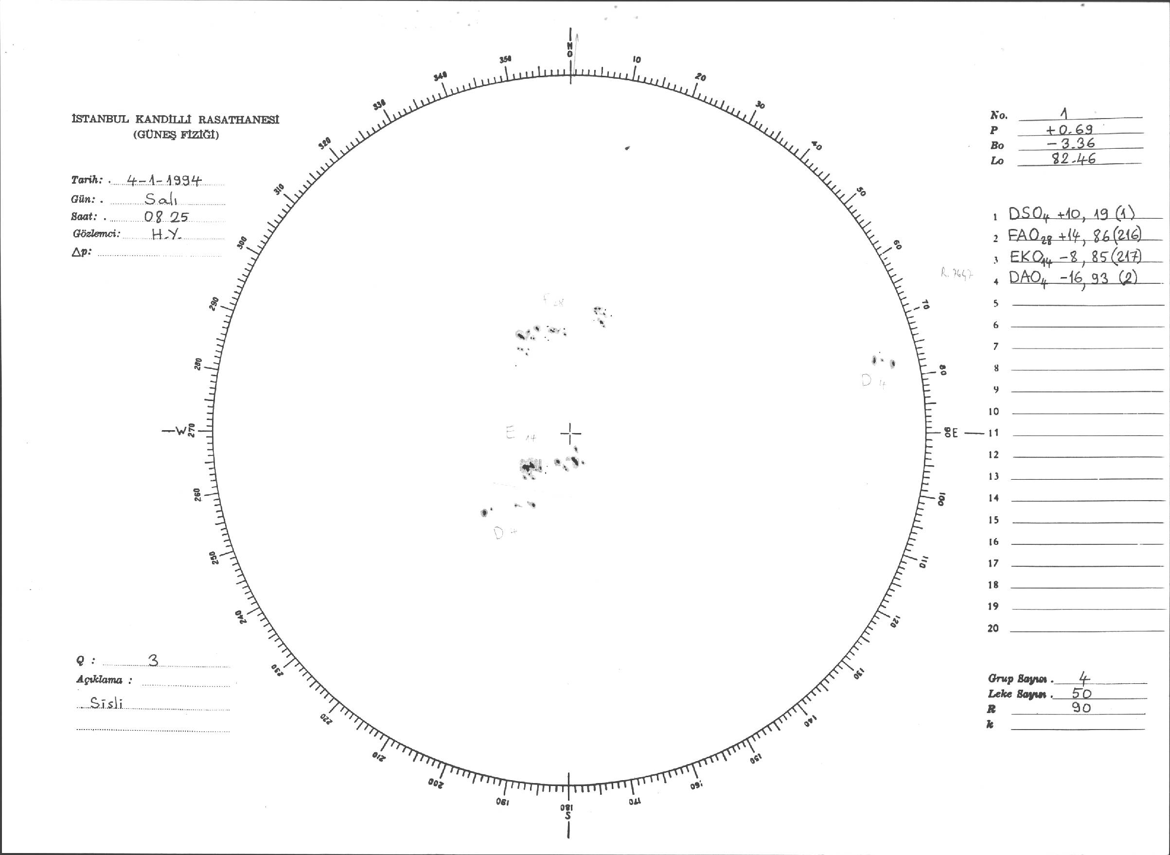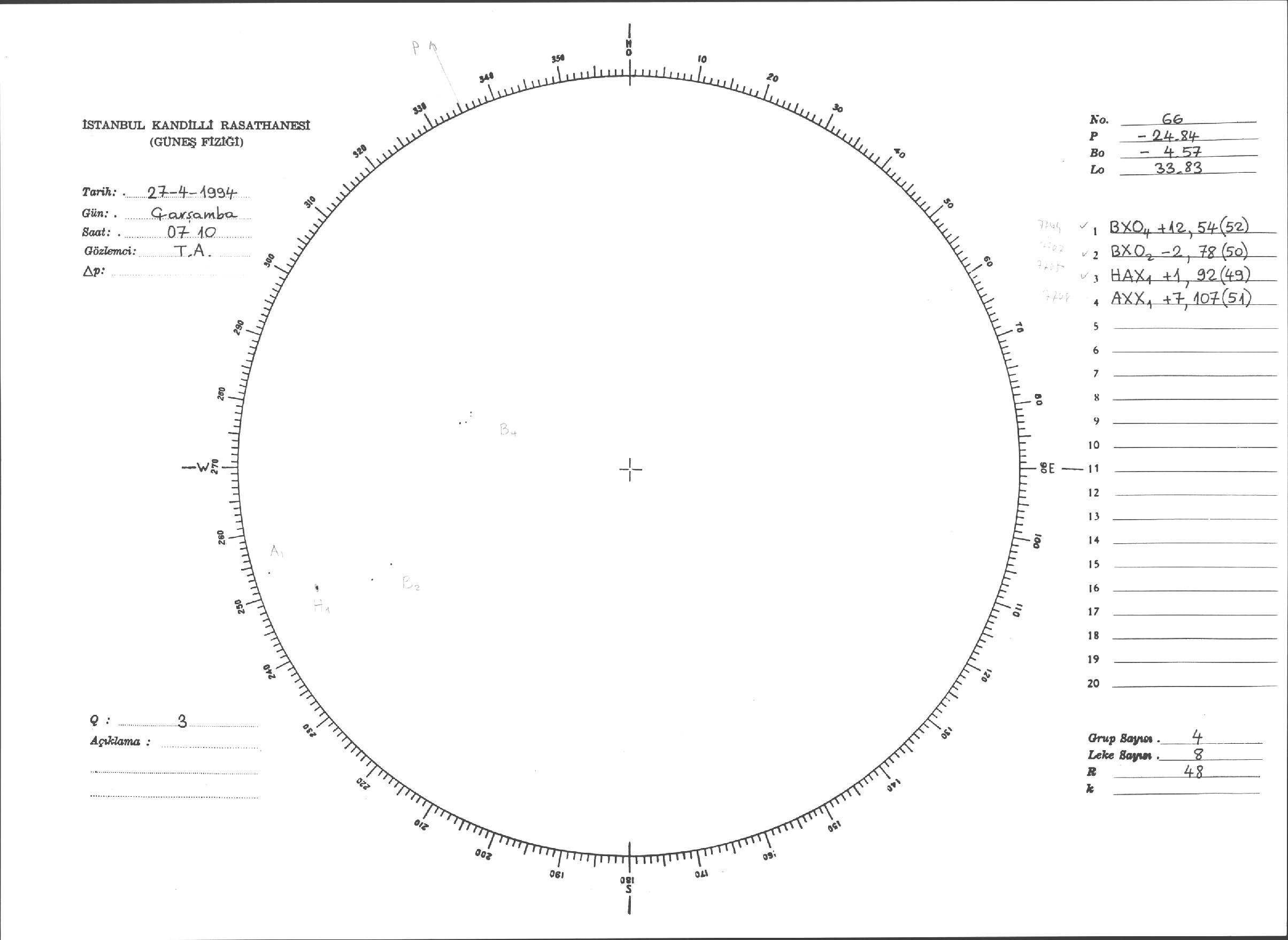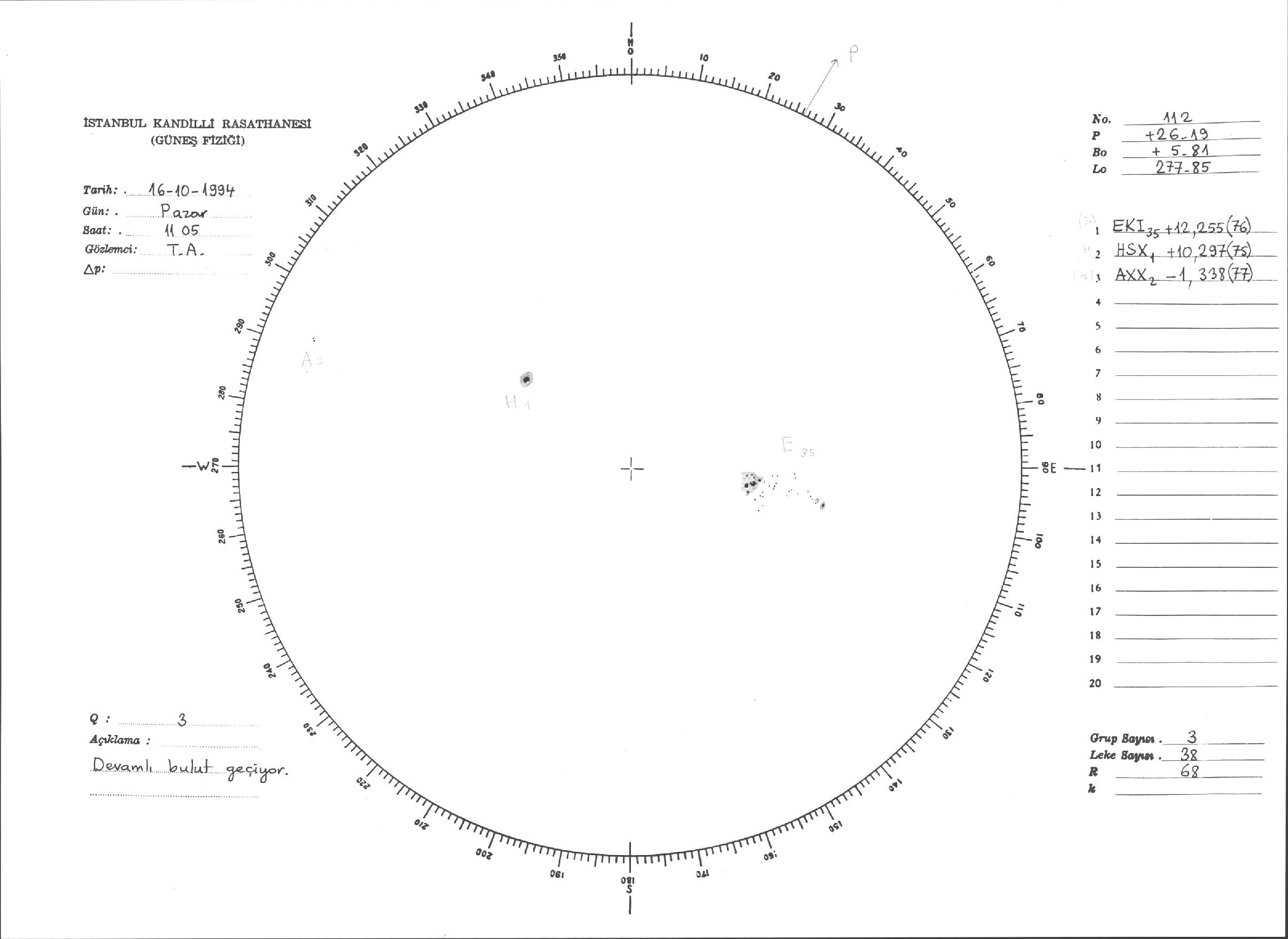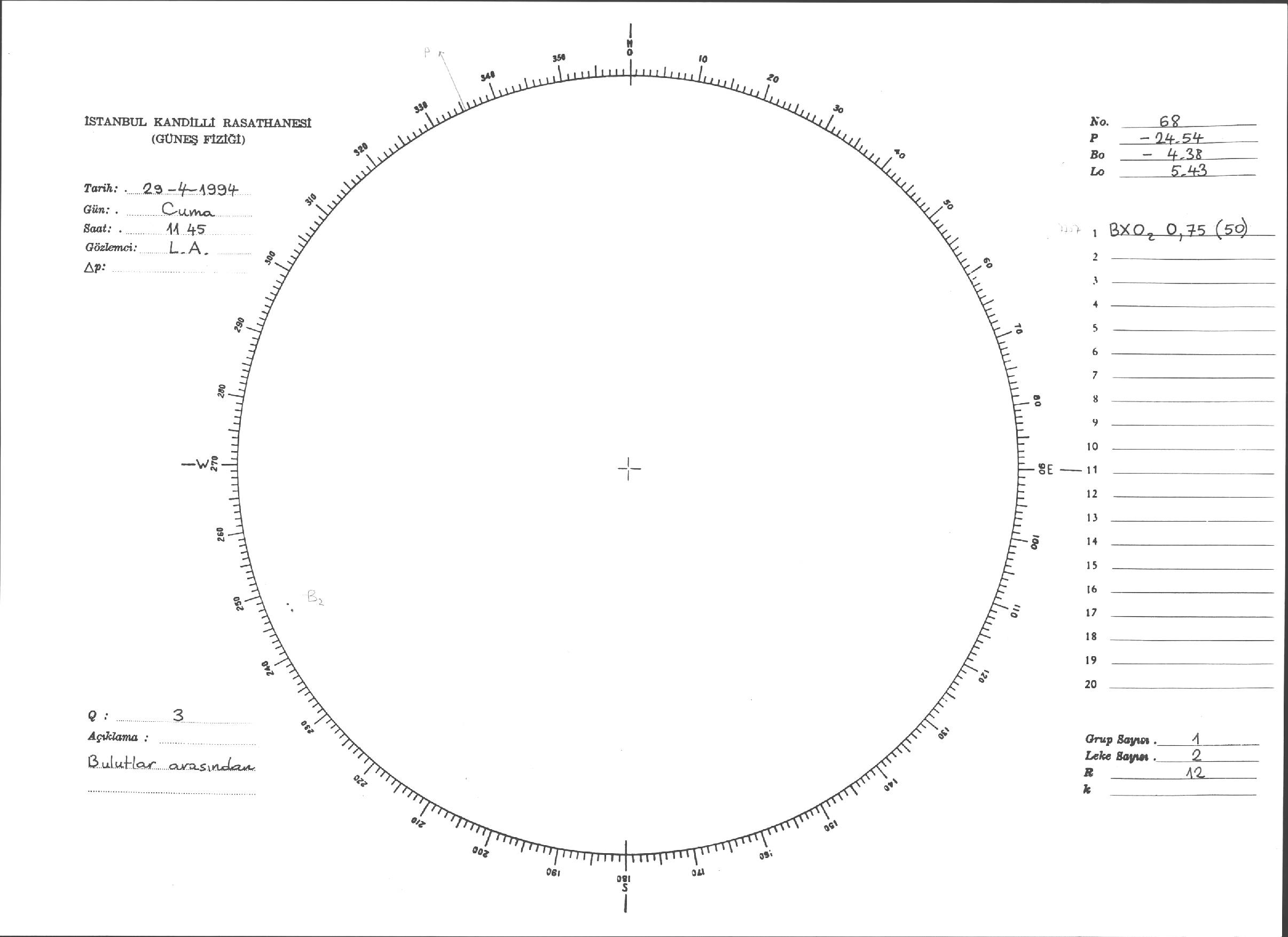 Güneş Lekesi Çizimleri / Kandilli Sunspot Drawings