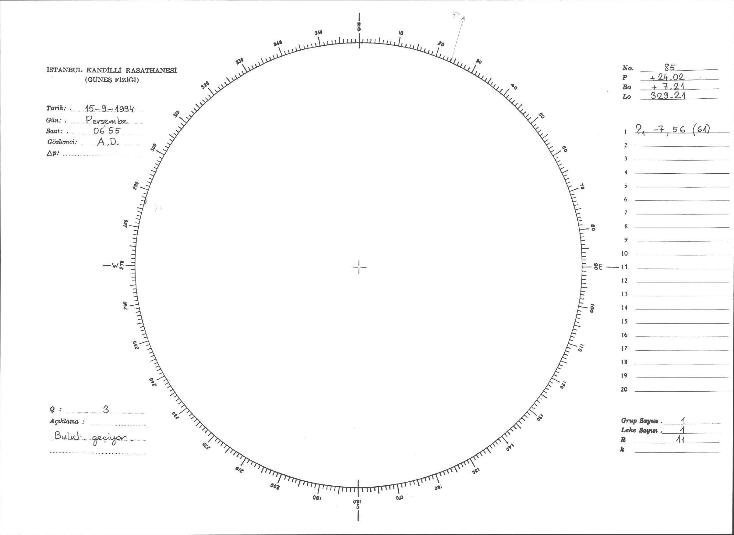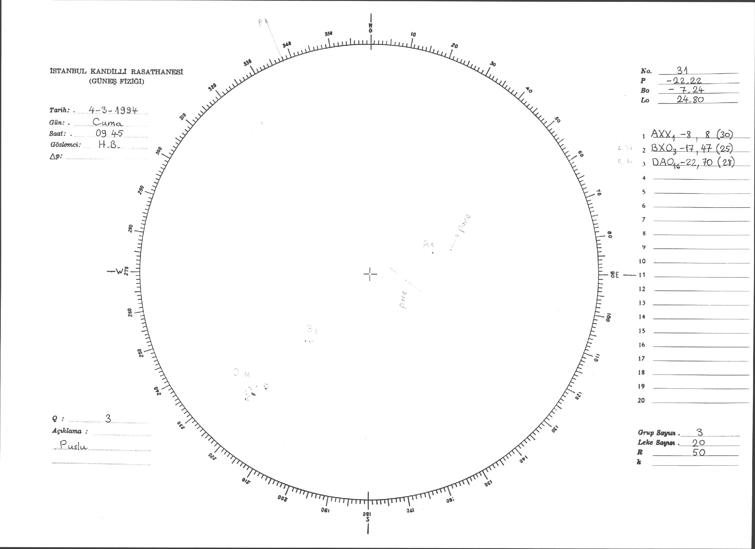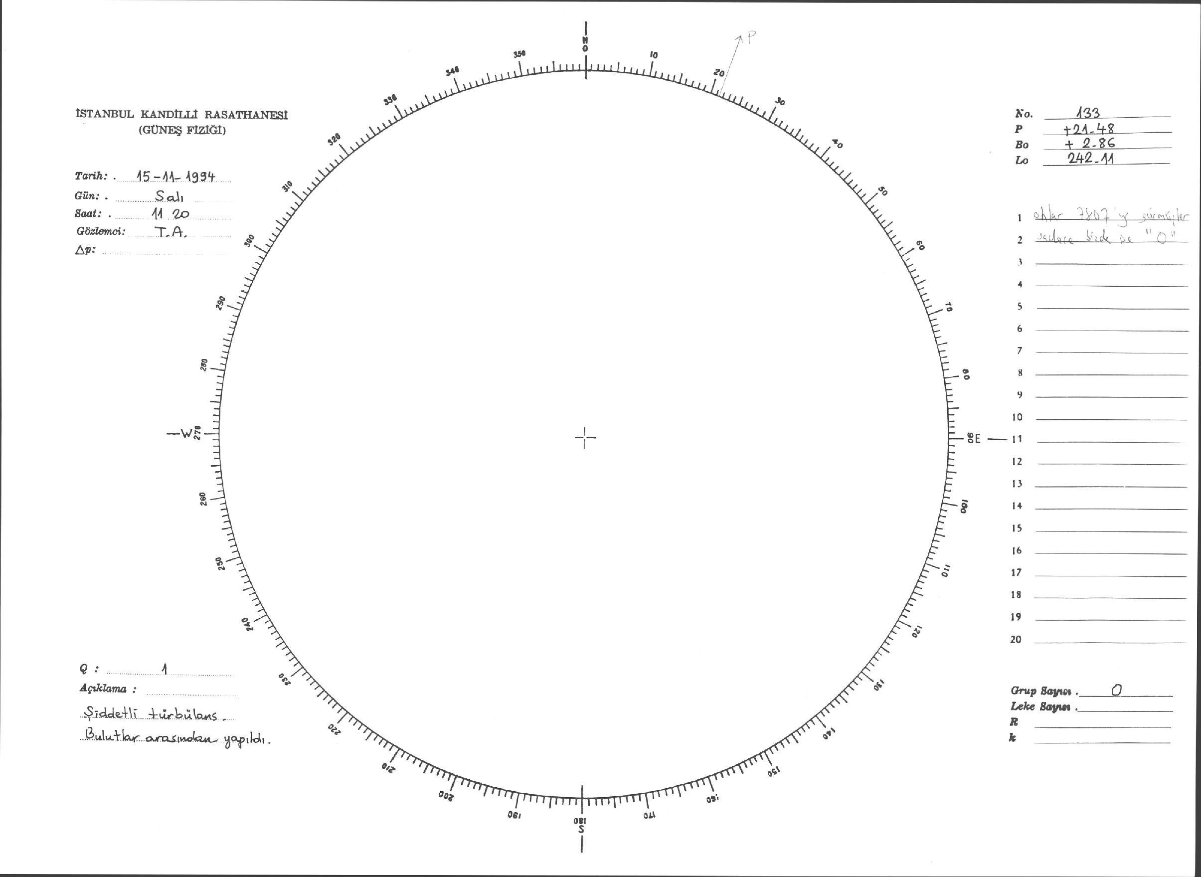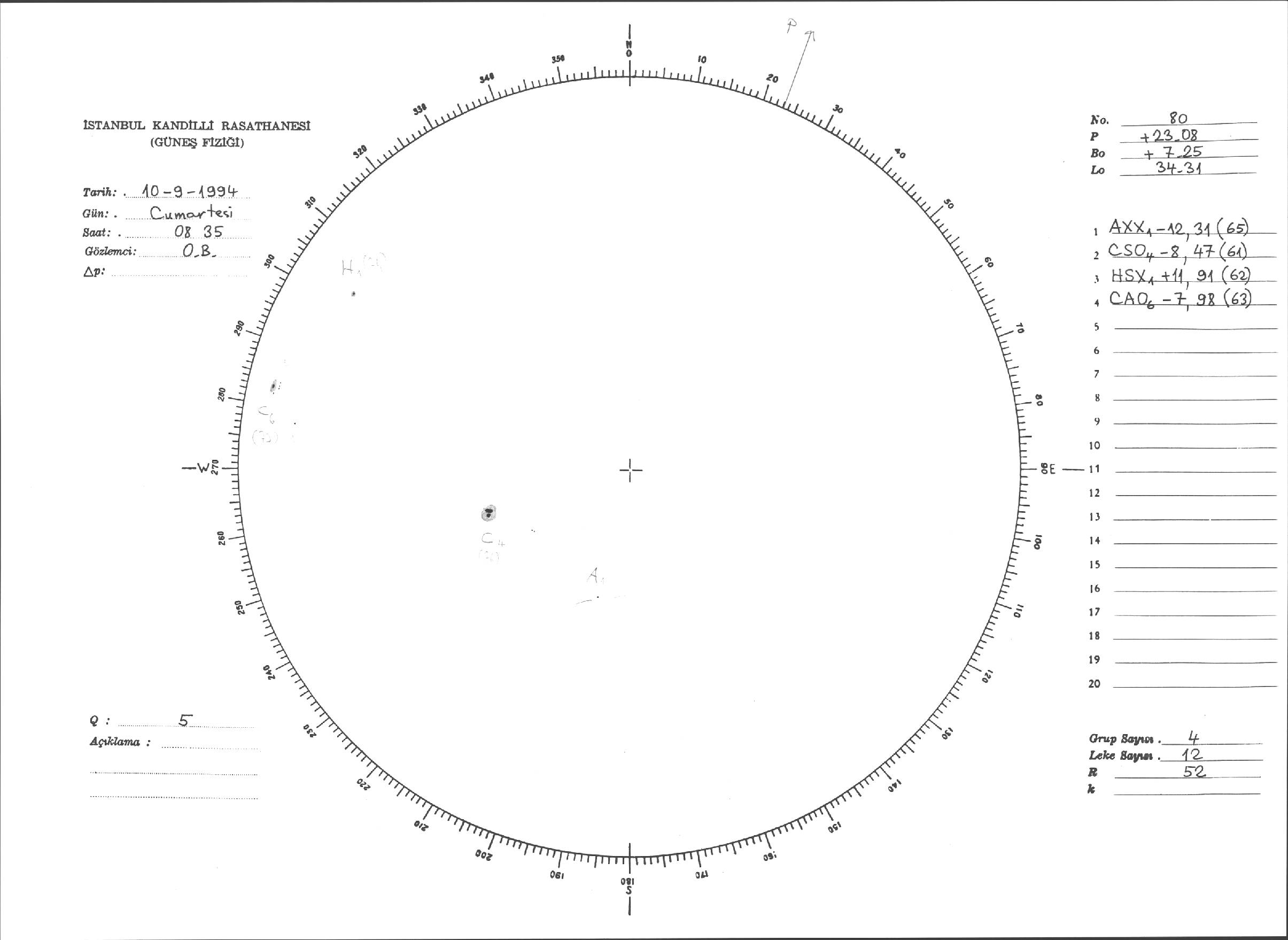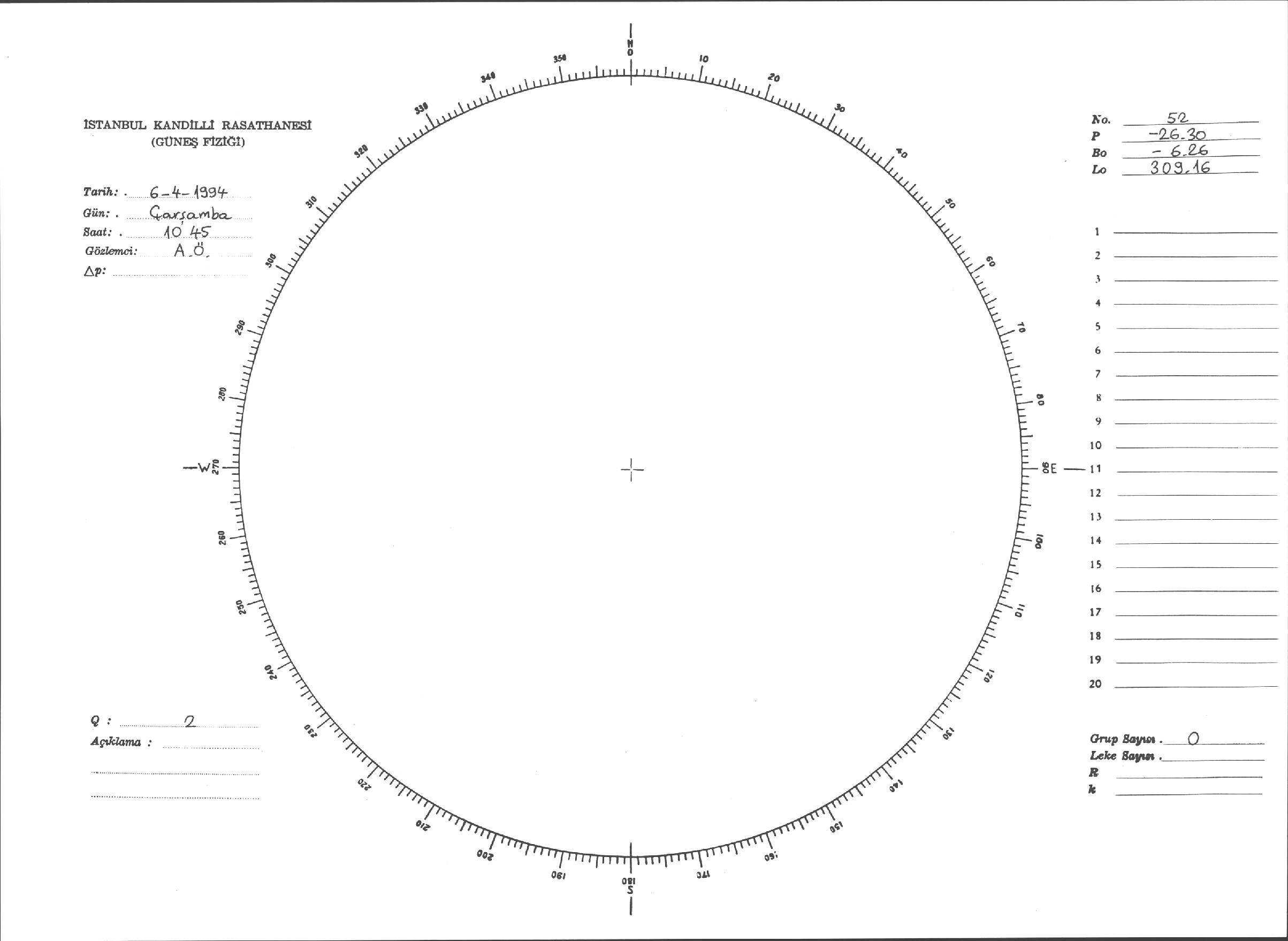 Güneş Lekesi Çizimleri / Kandilli Sunspot Drawings