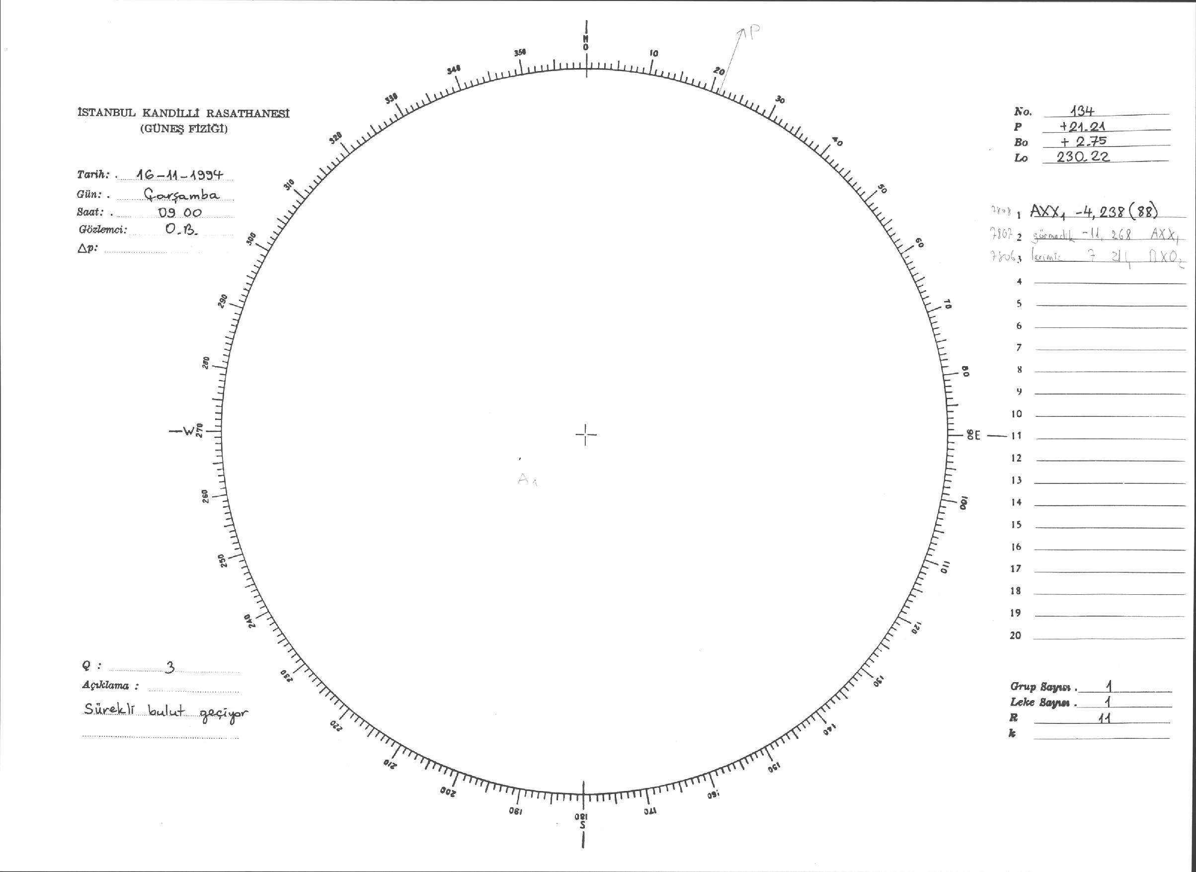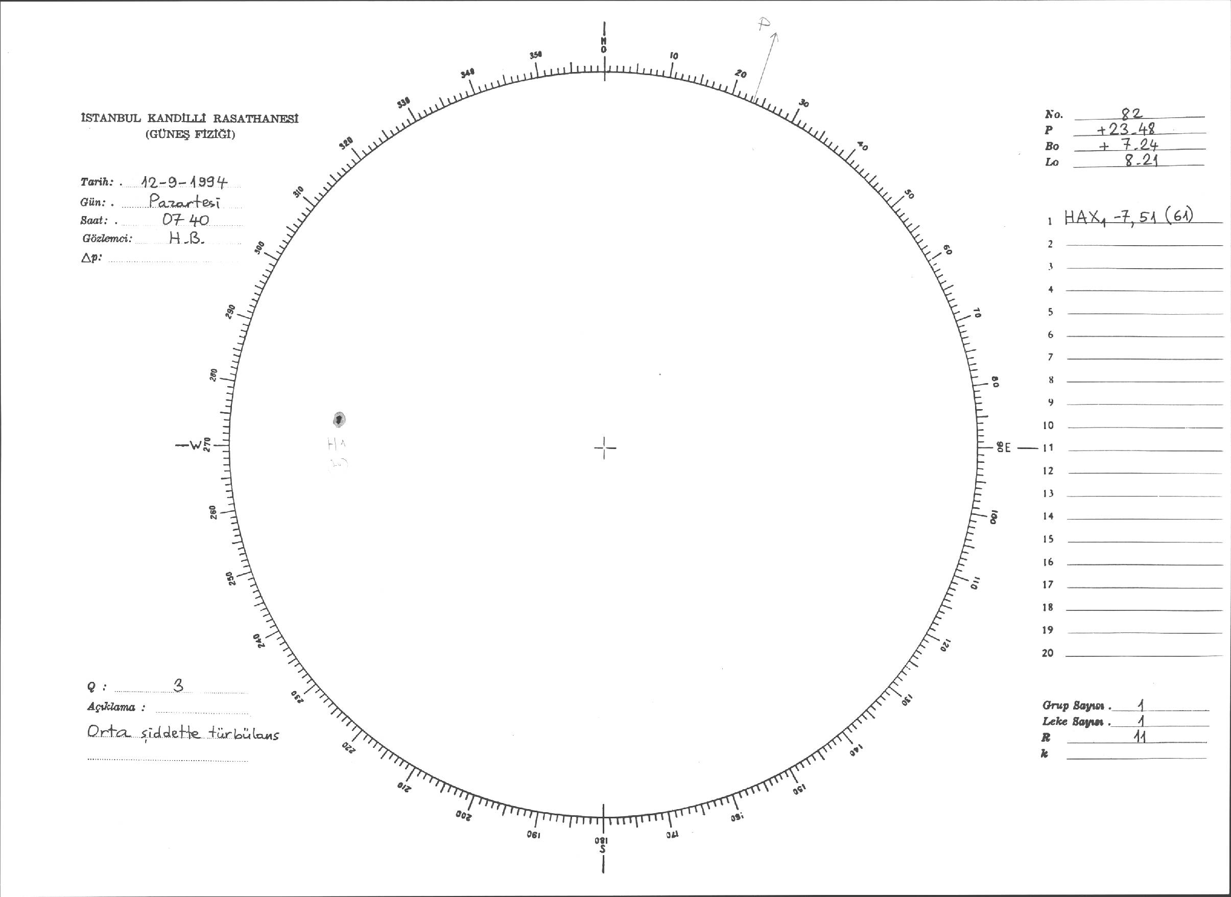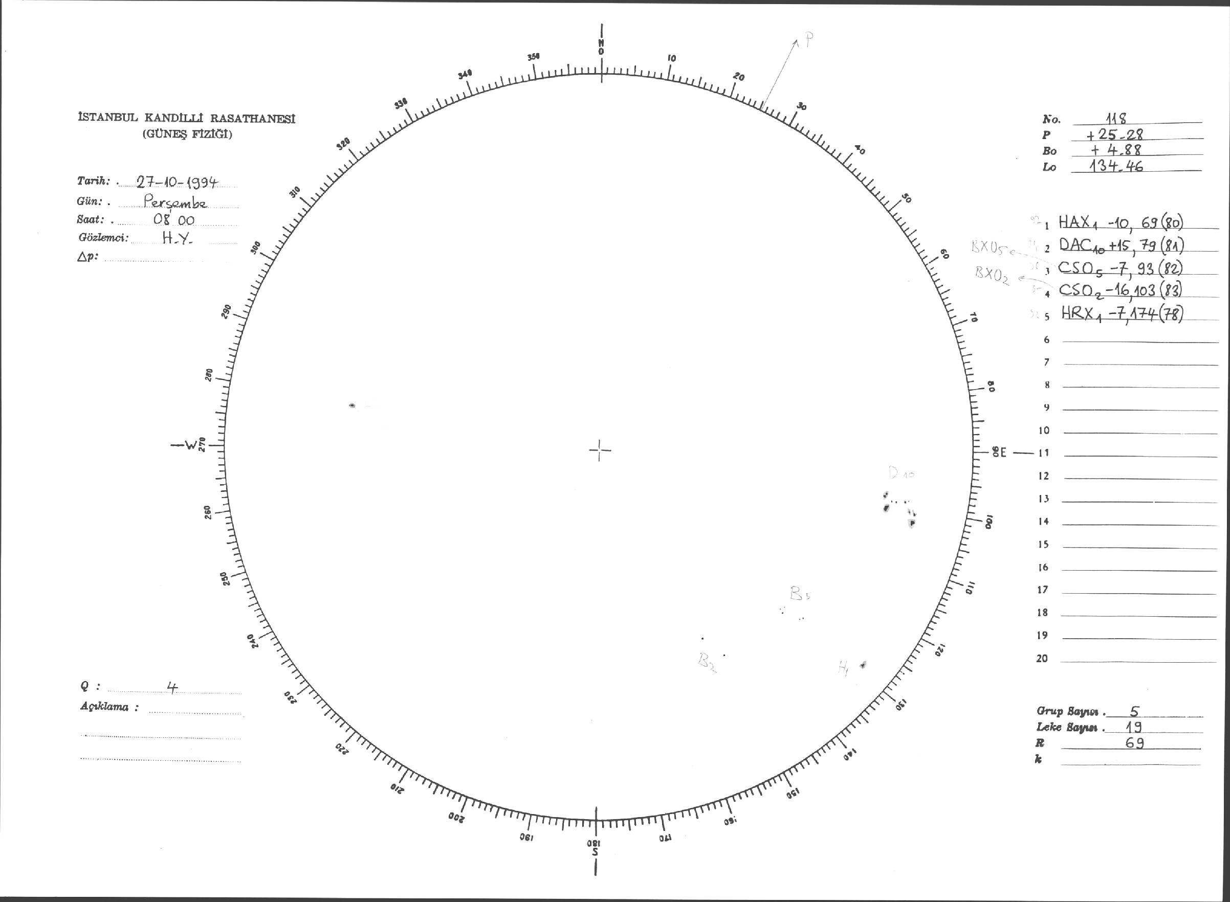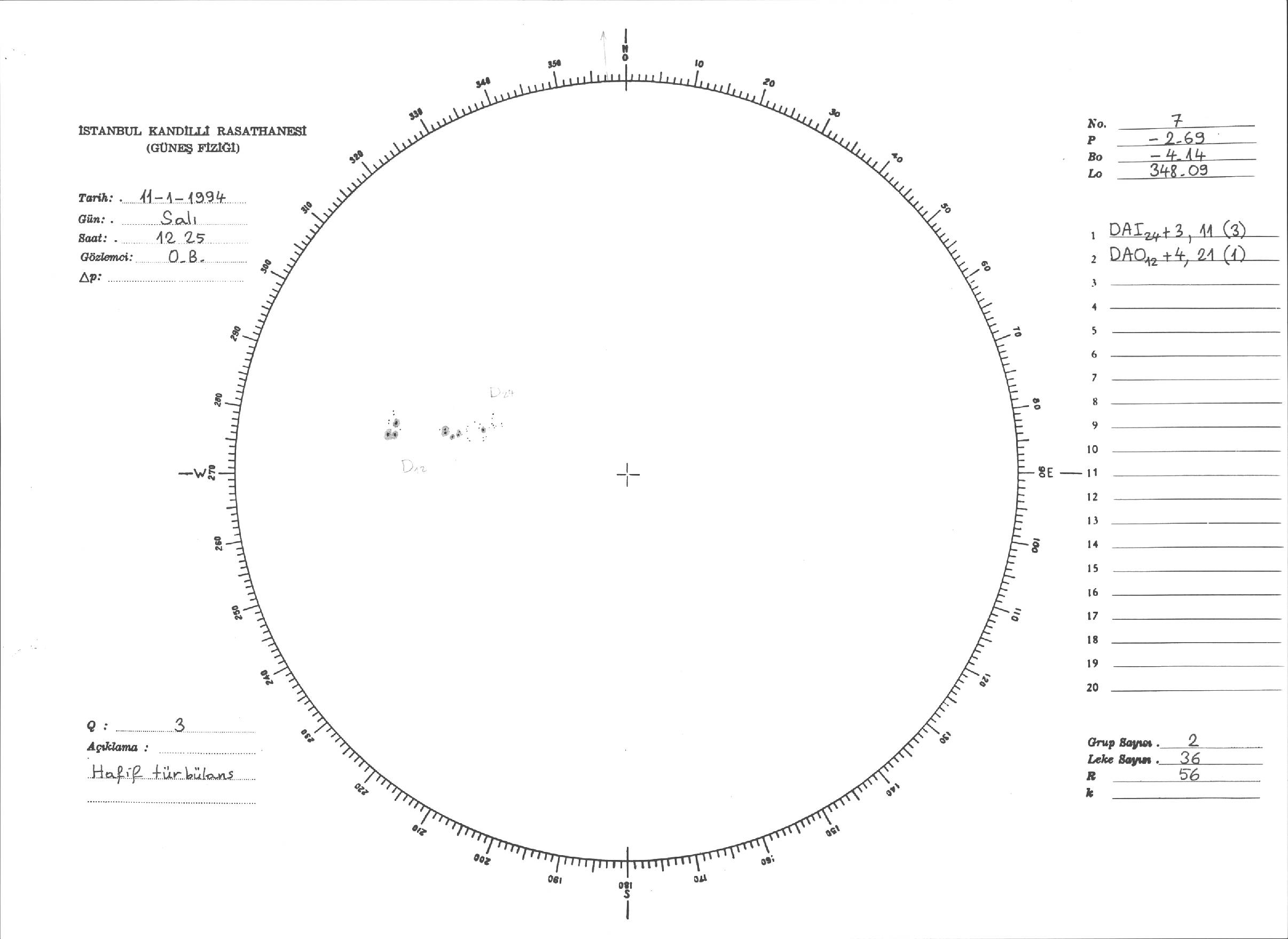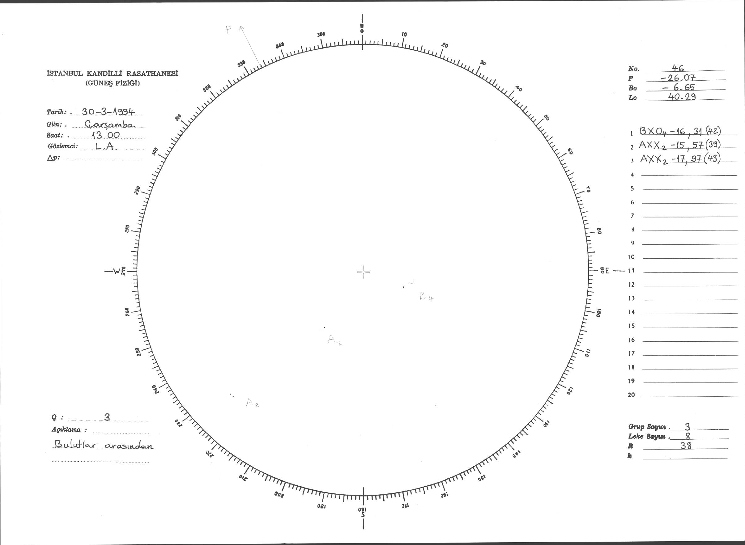 Güneş Lekesi Çizimleri / Kandilli Sunspot Drawings