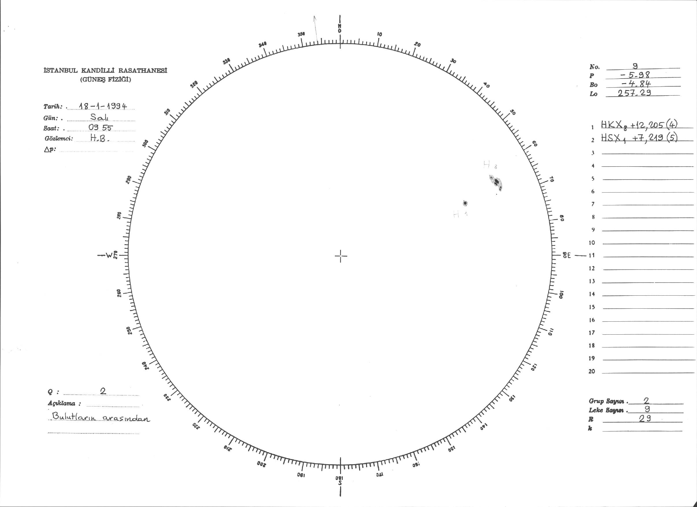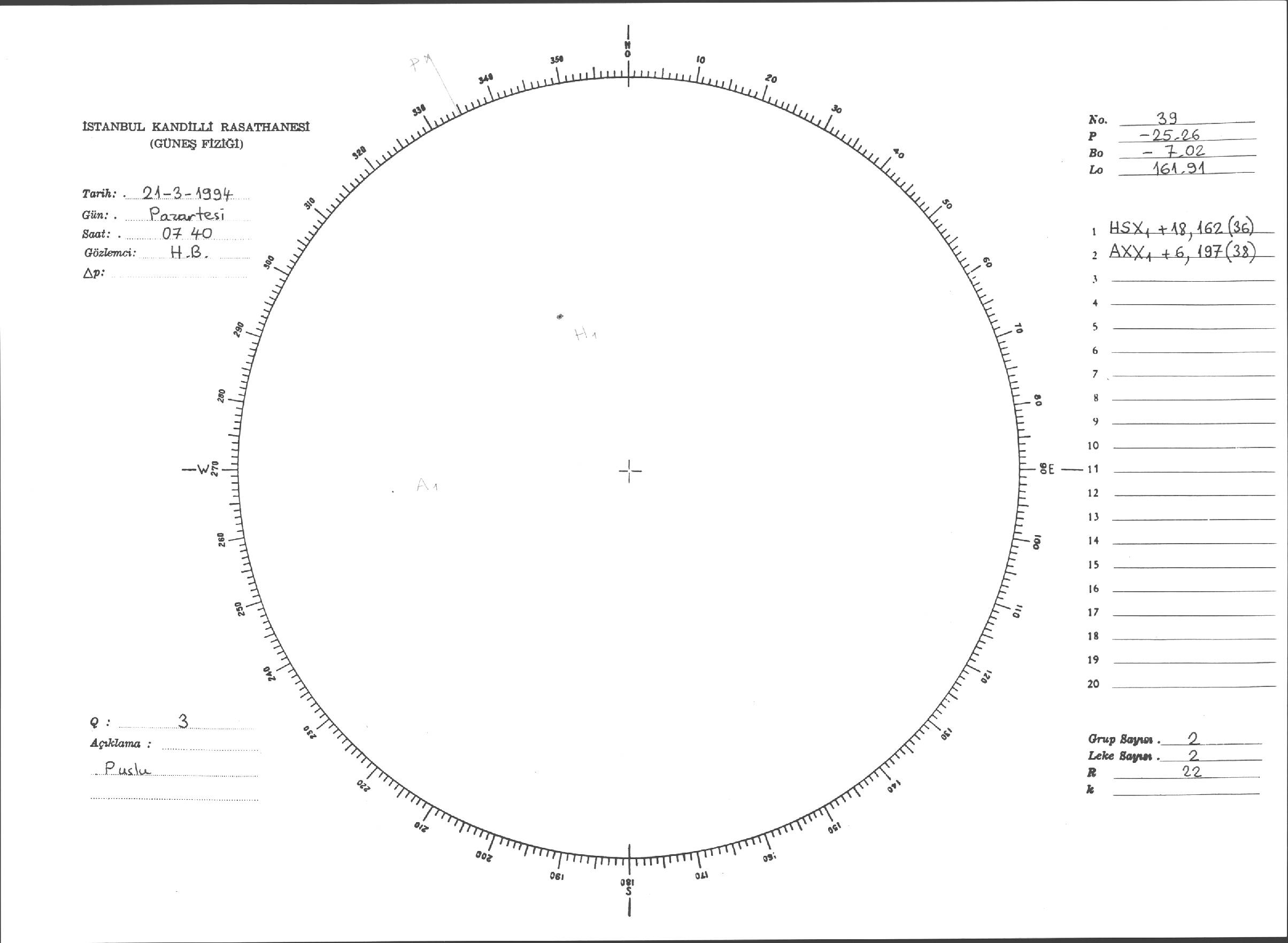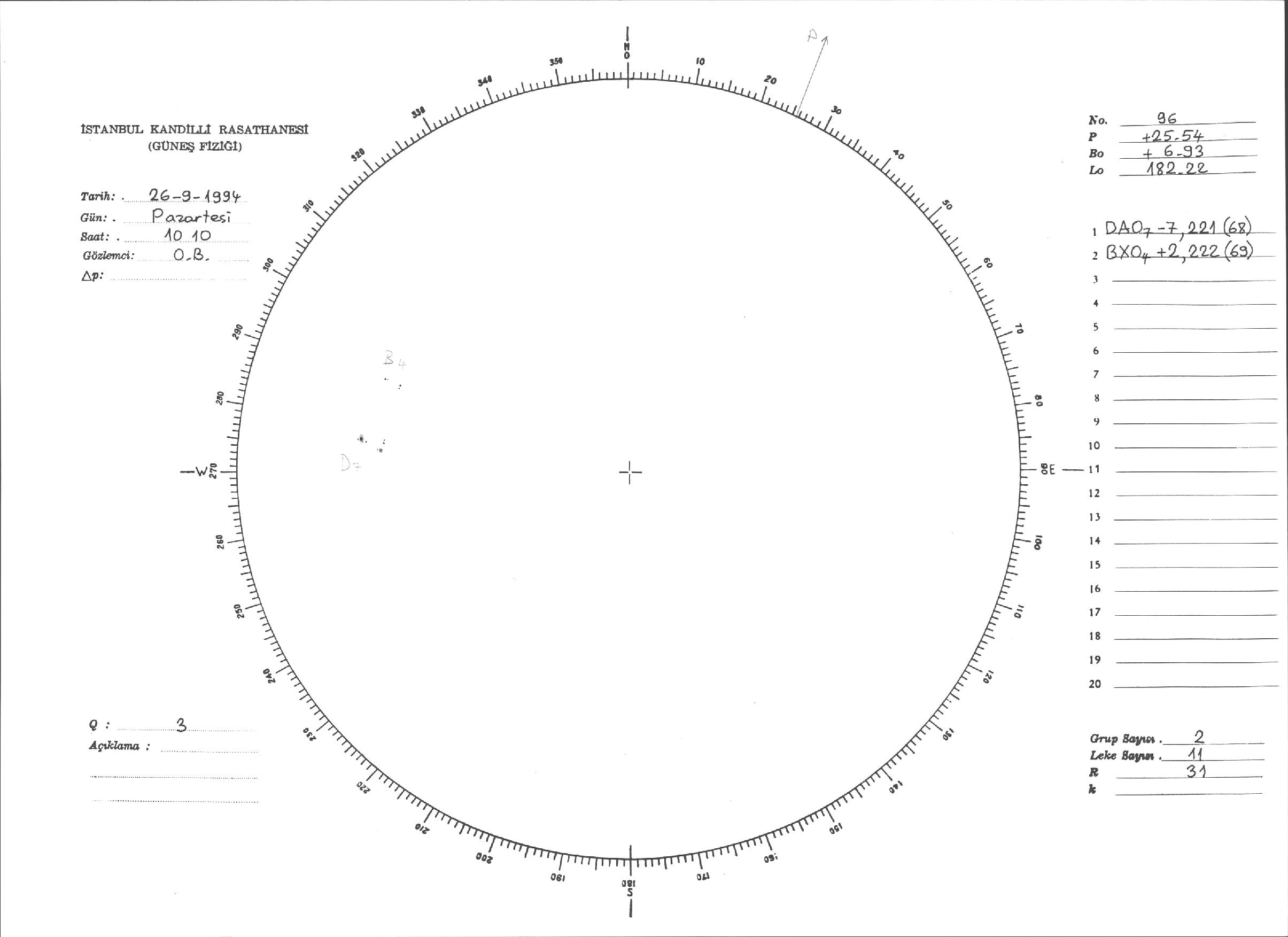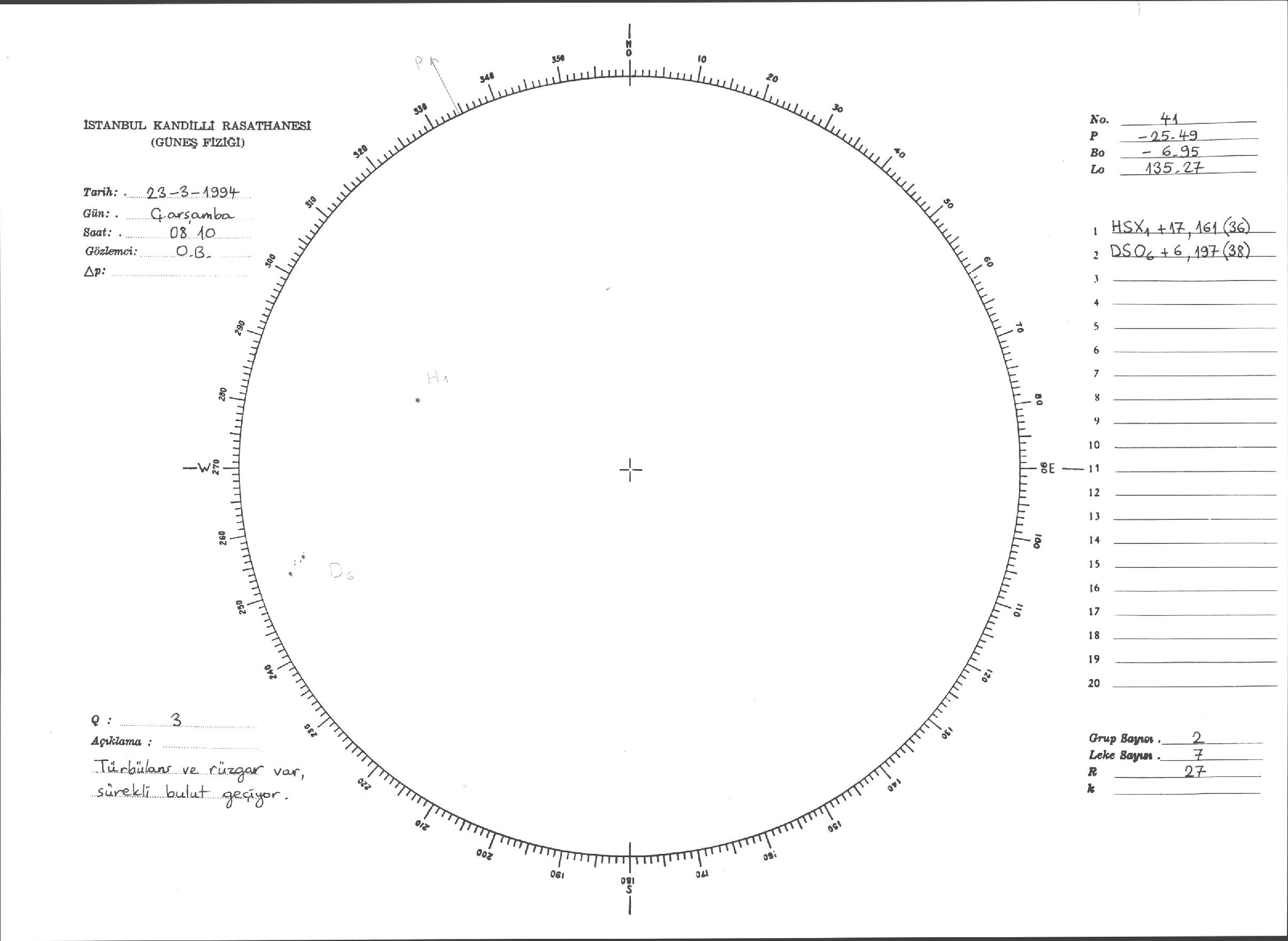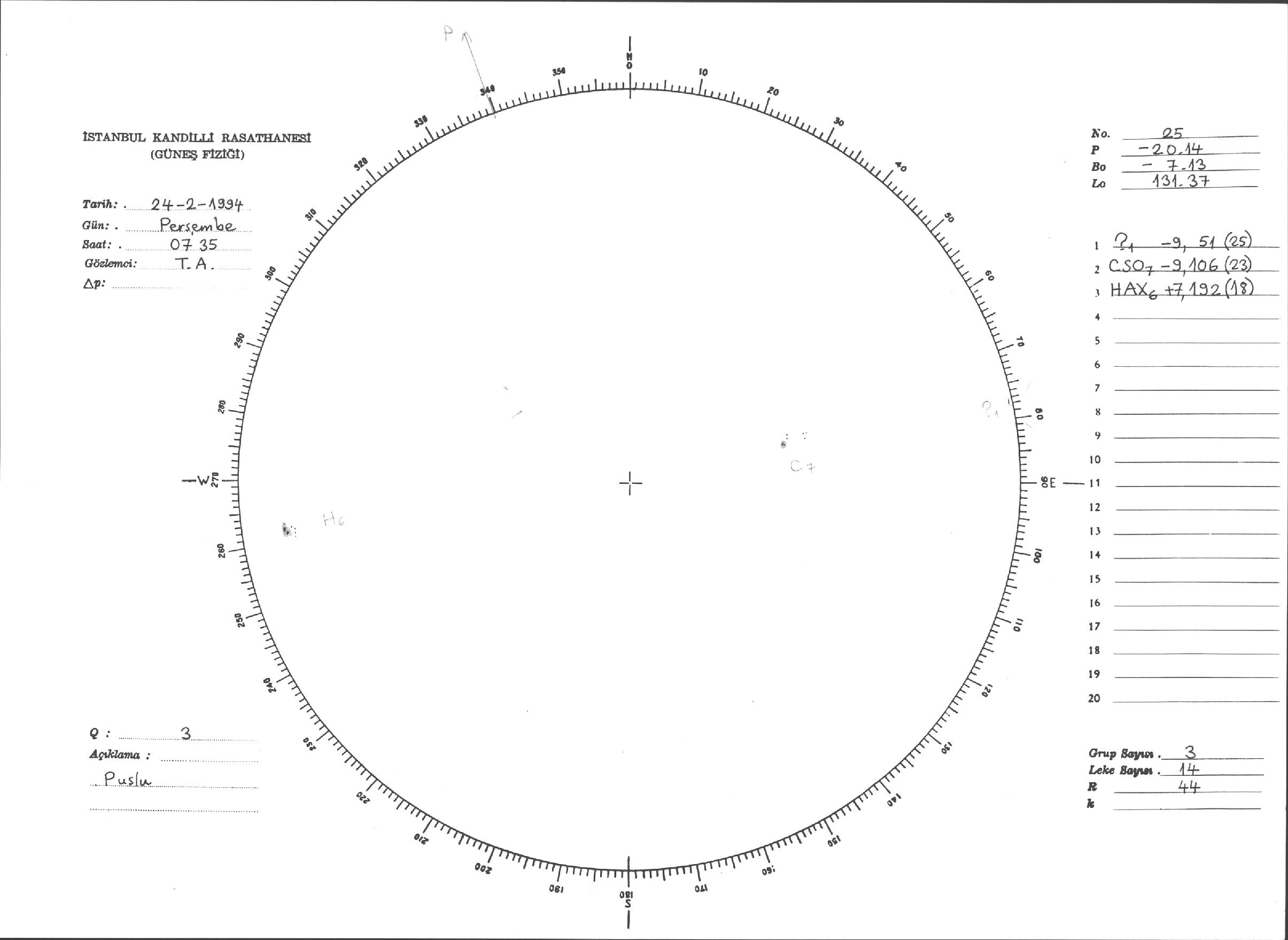 Güneş Lekesi Çizimleri / Kandilli Sunspot Drawings